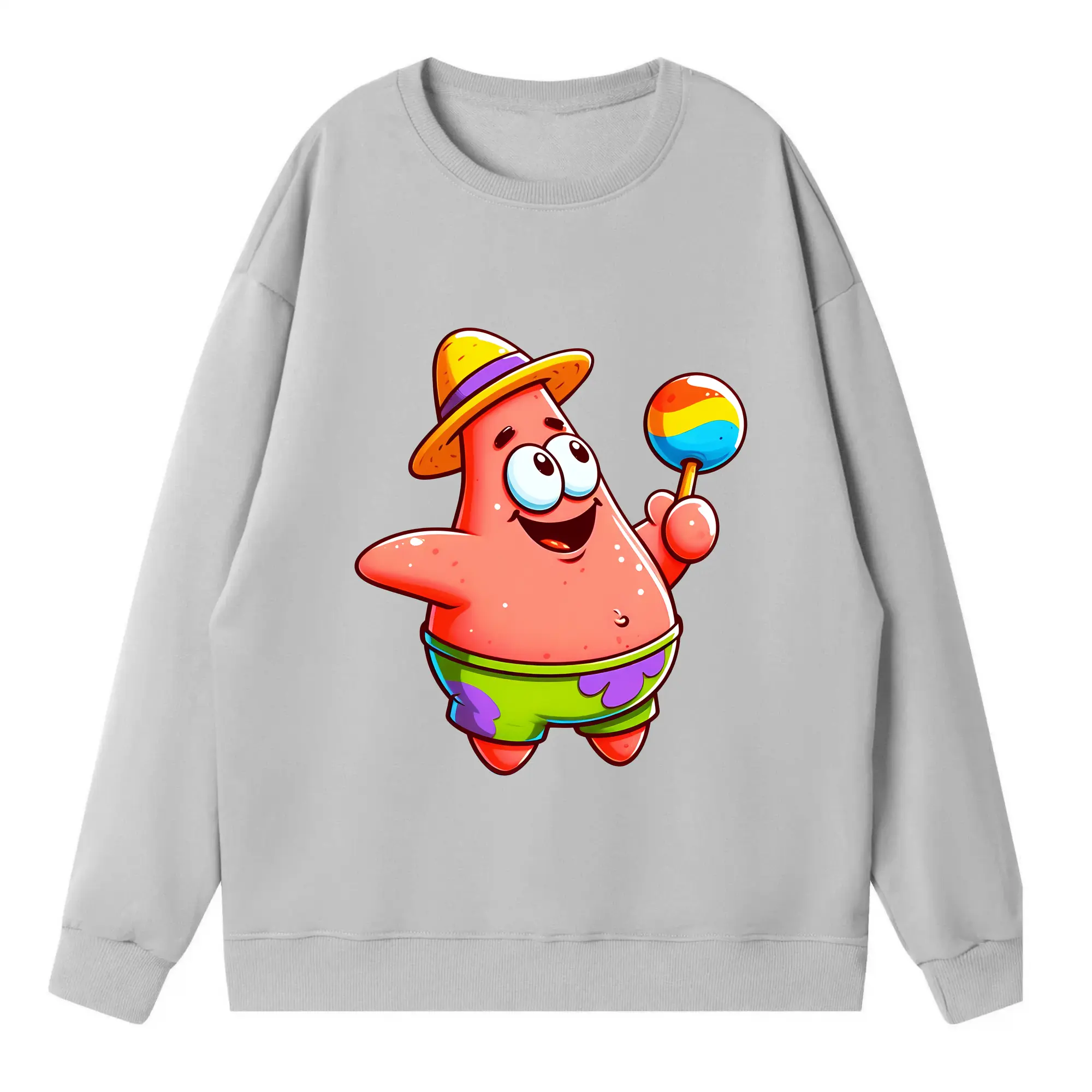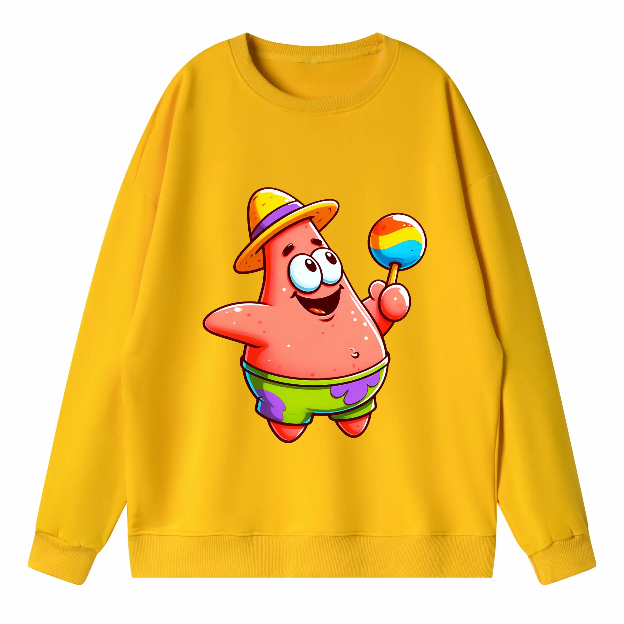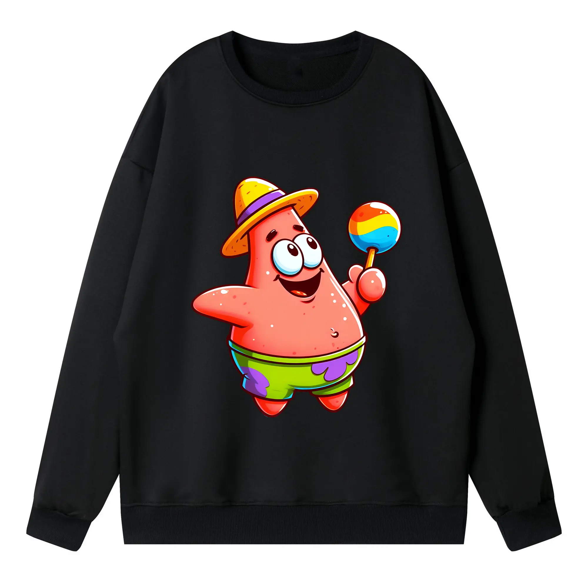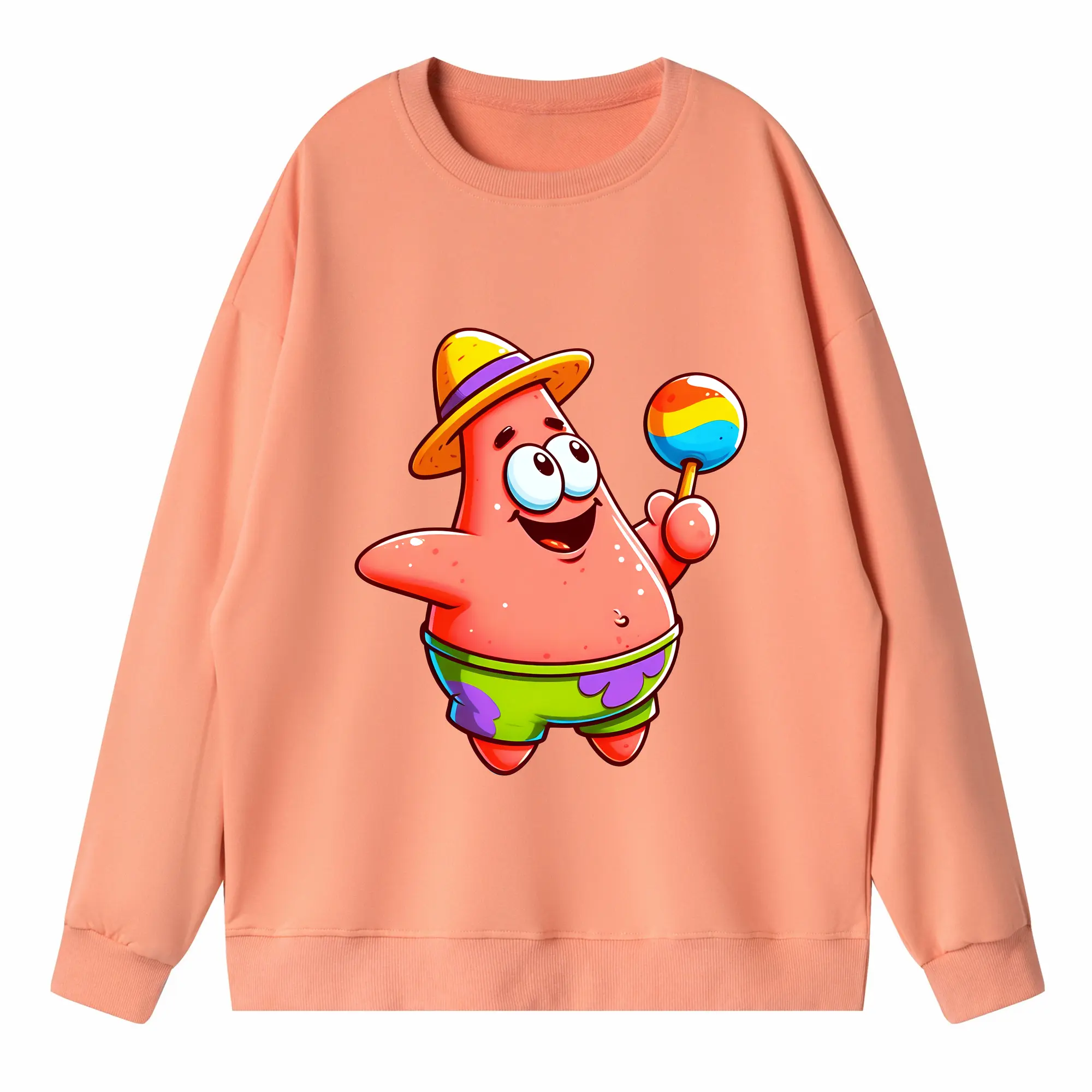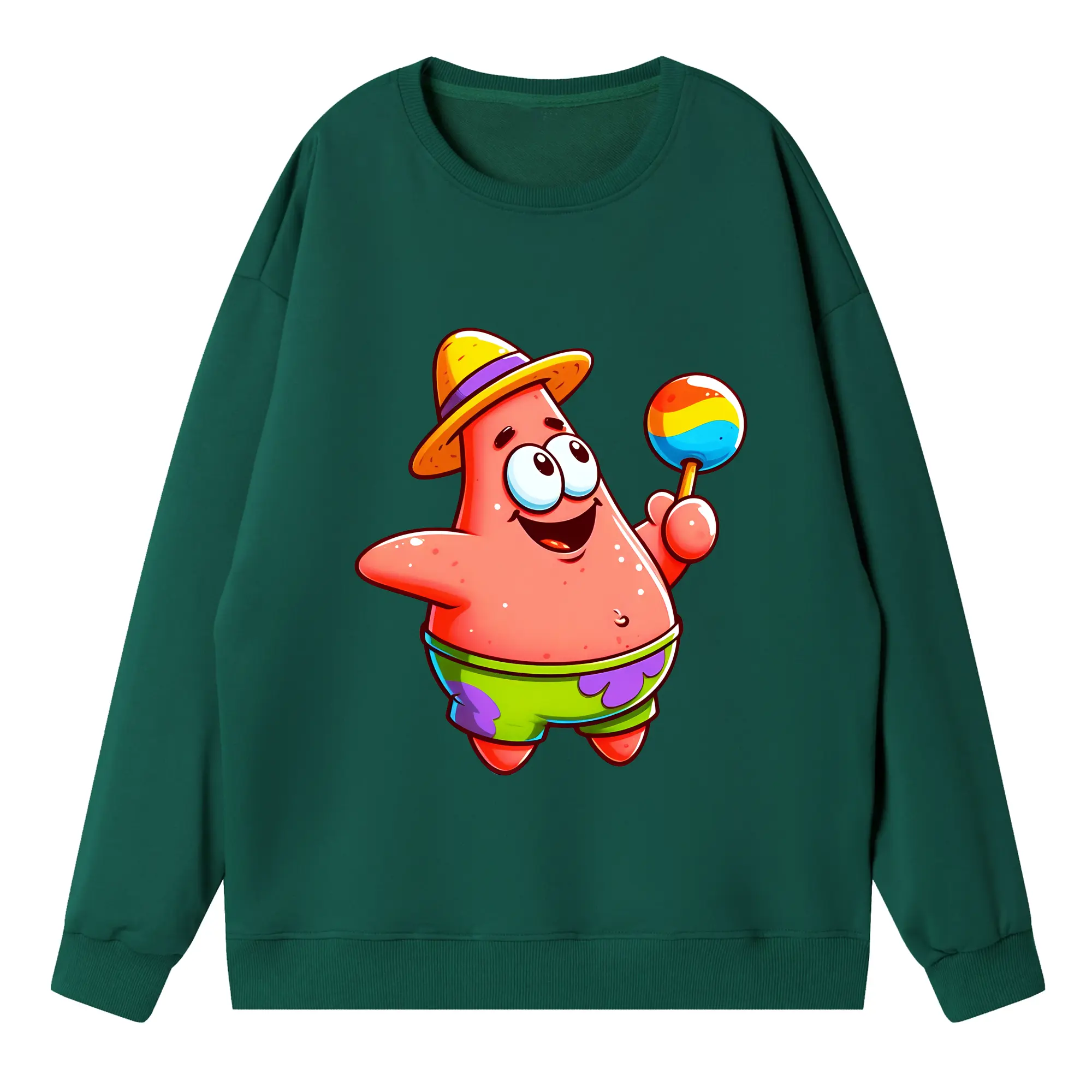 スポンジボブ グッズ パトリック・スター - 高品質 クルーネック スウェット ・ コットン59% ポリエステル41% ・ ユニセックス 長袖 トレーナー ・ カジュアル デイリー スポーツ 散歩用