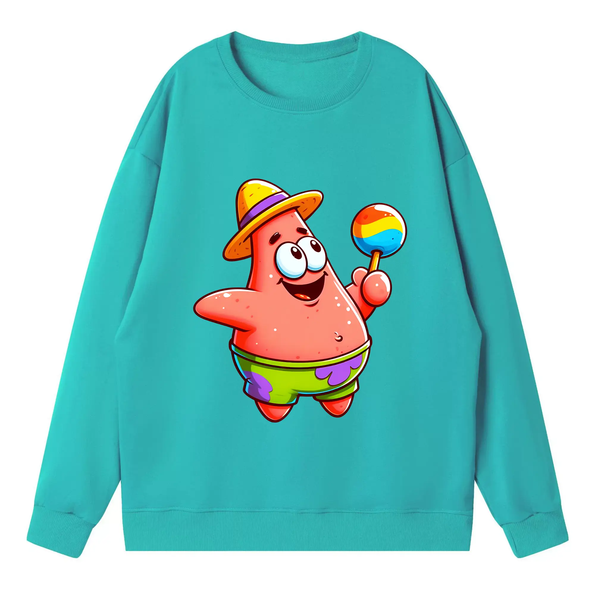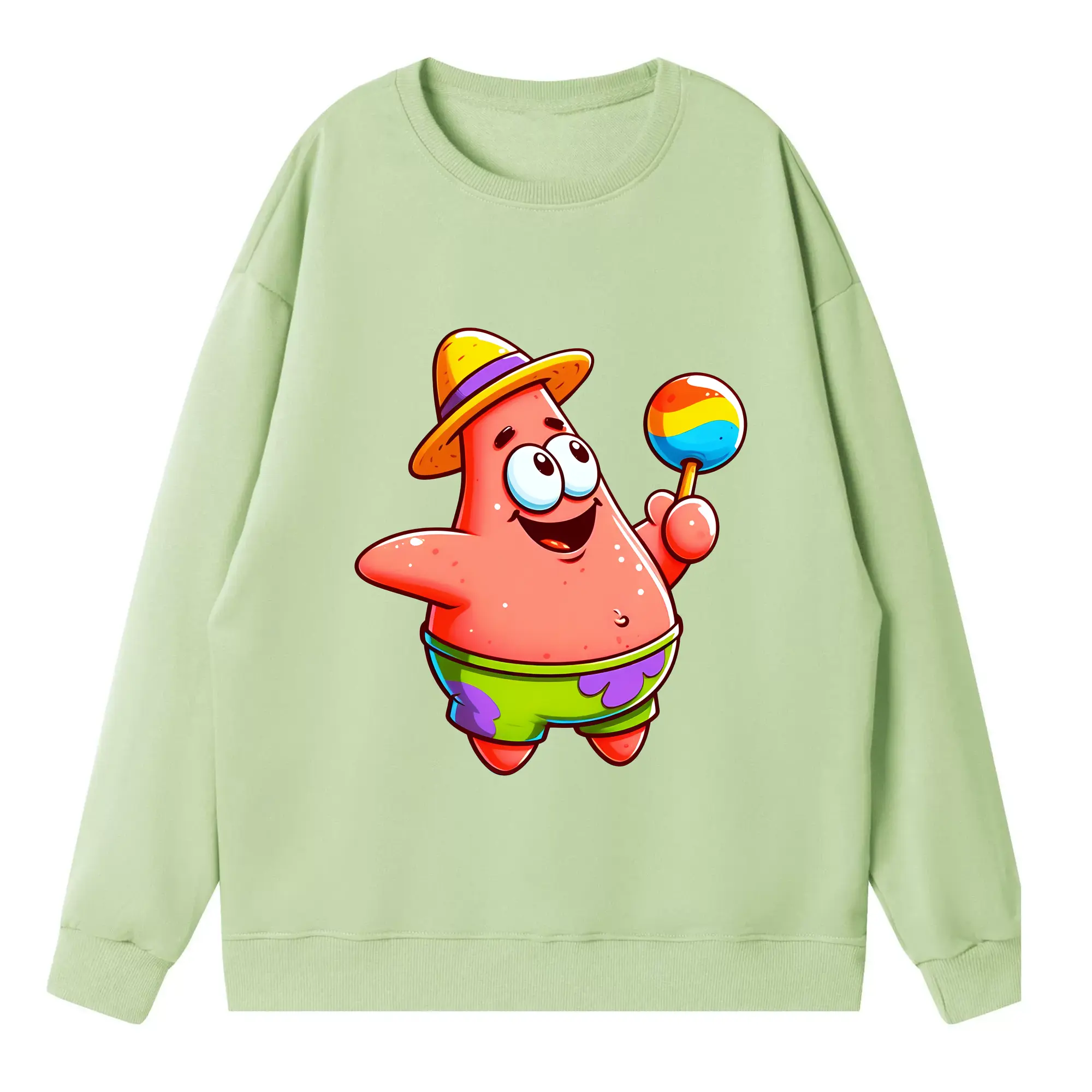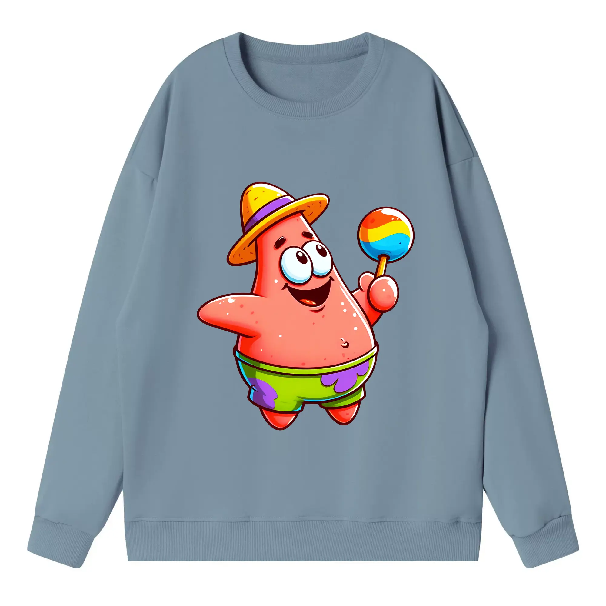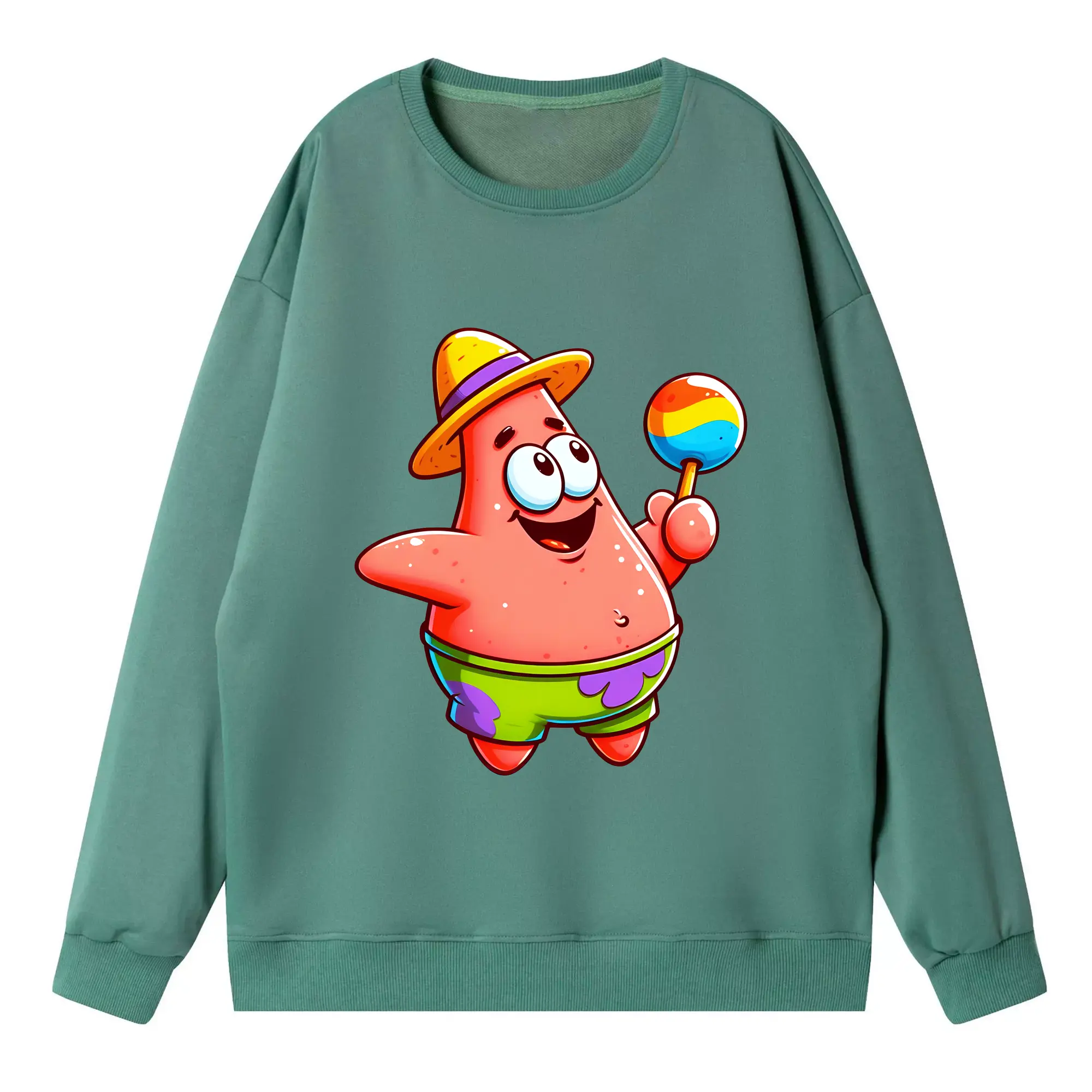 スポンジボブ グッズ パトリック・スター - 高品質 クルーネック スウェット ・ コットン59% ポリエステル41% ・ ユニセックス 長袖 トレーナー ・ カジュアル デイリー スポーツ 散歩用