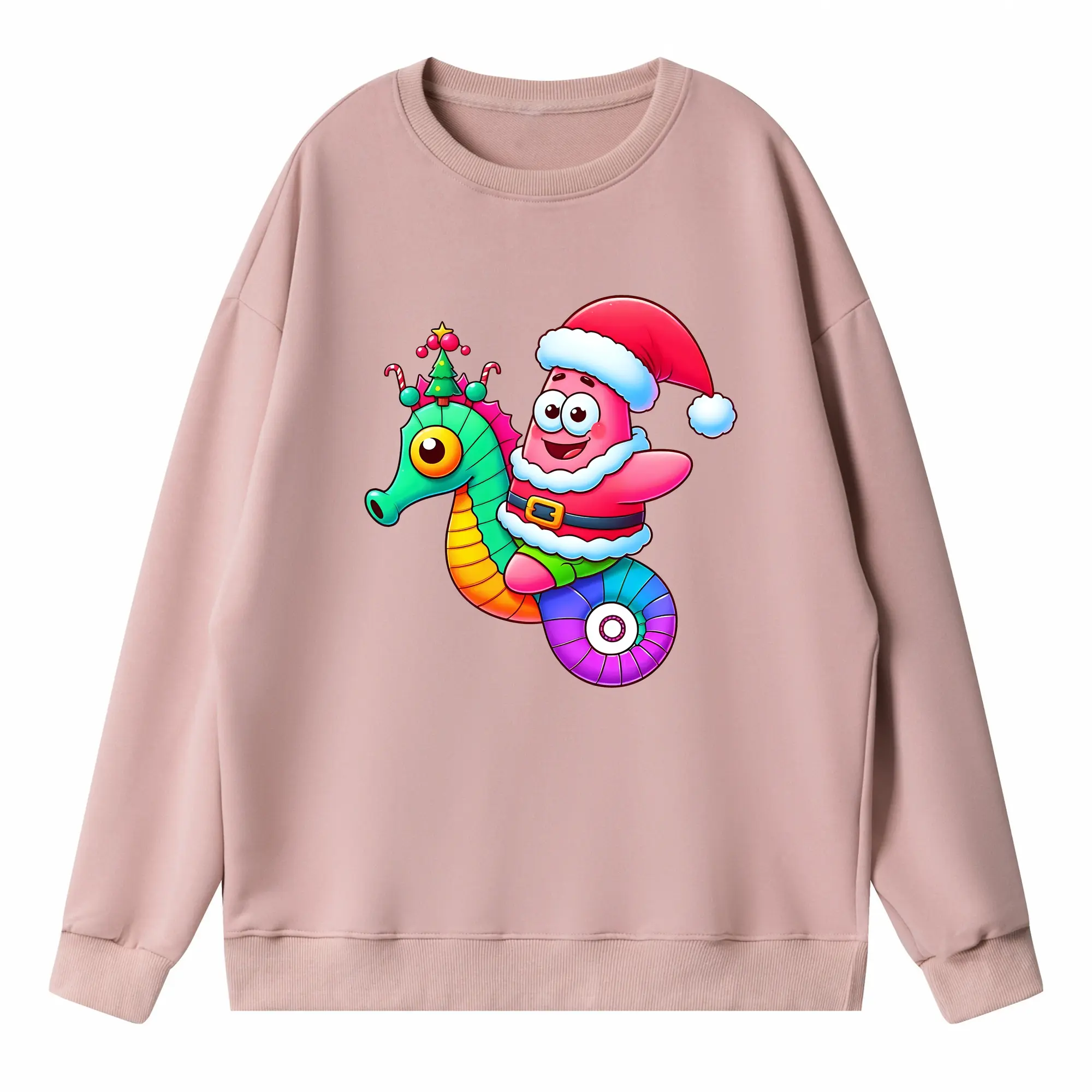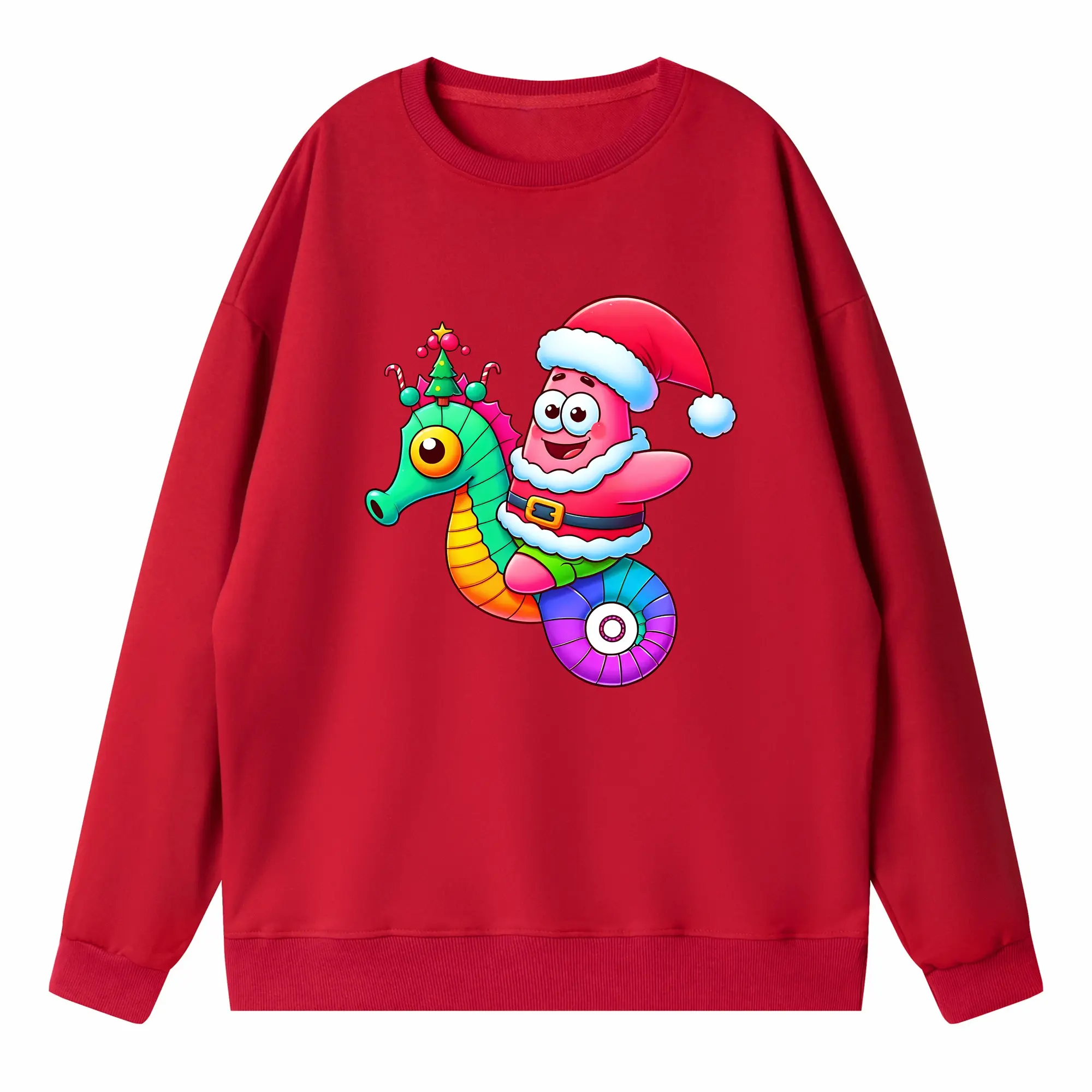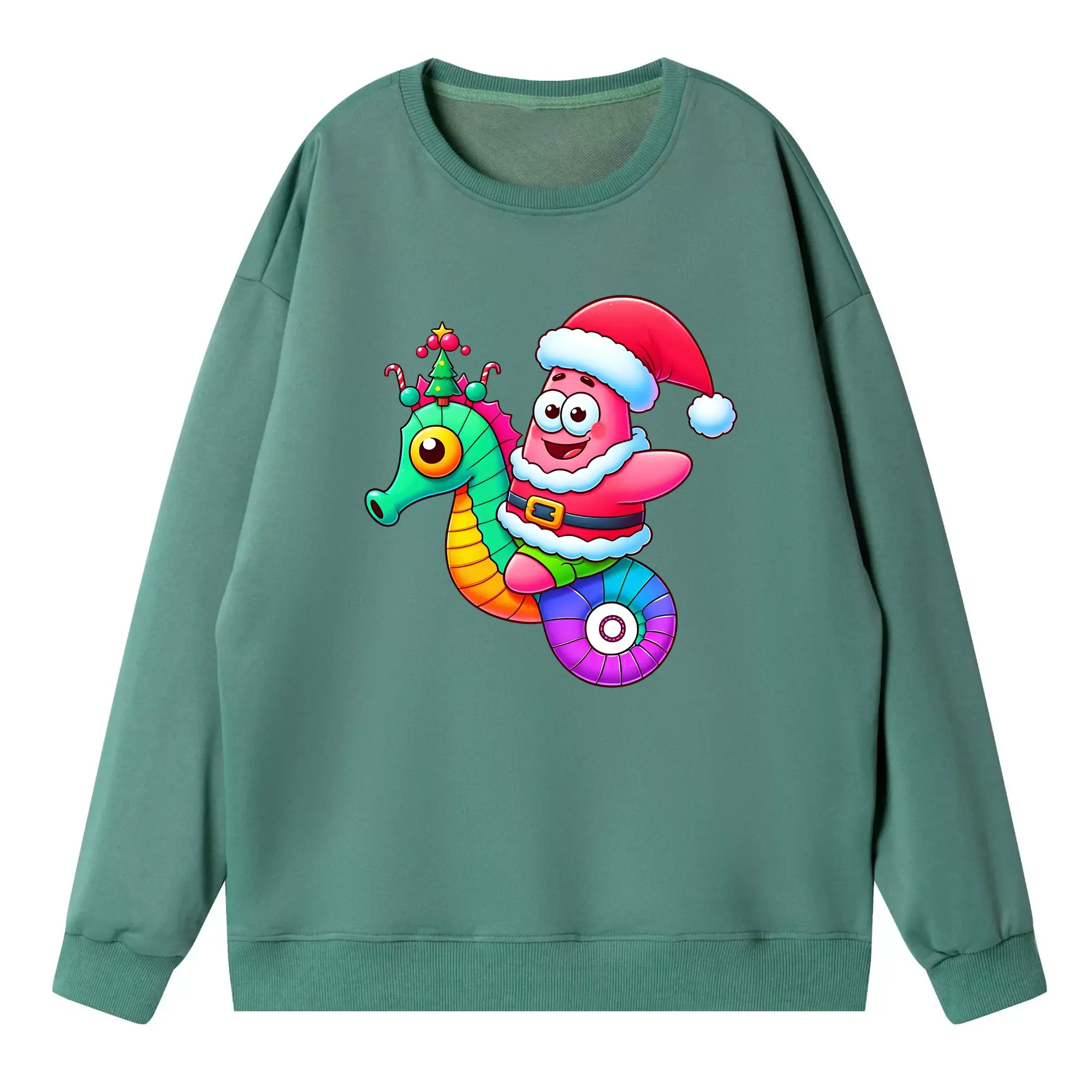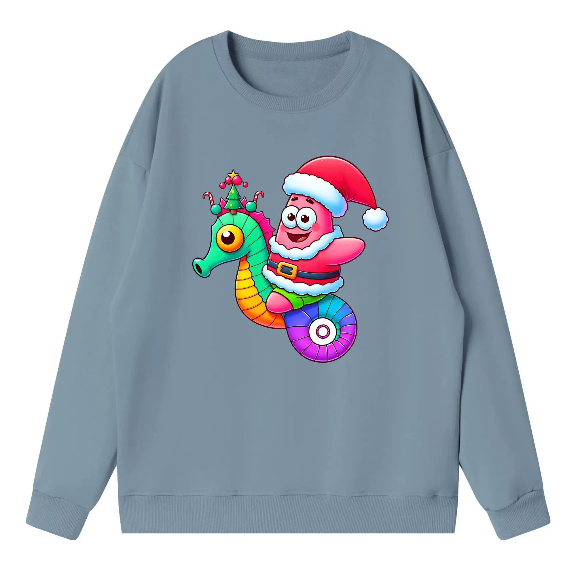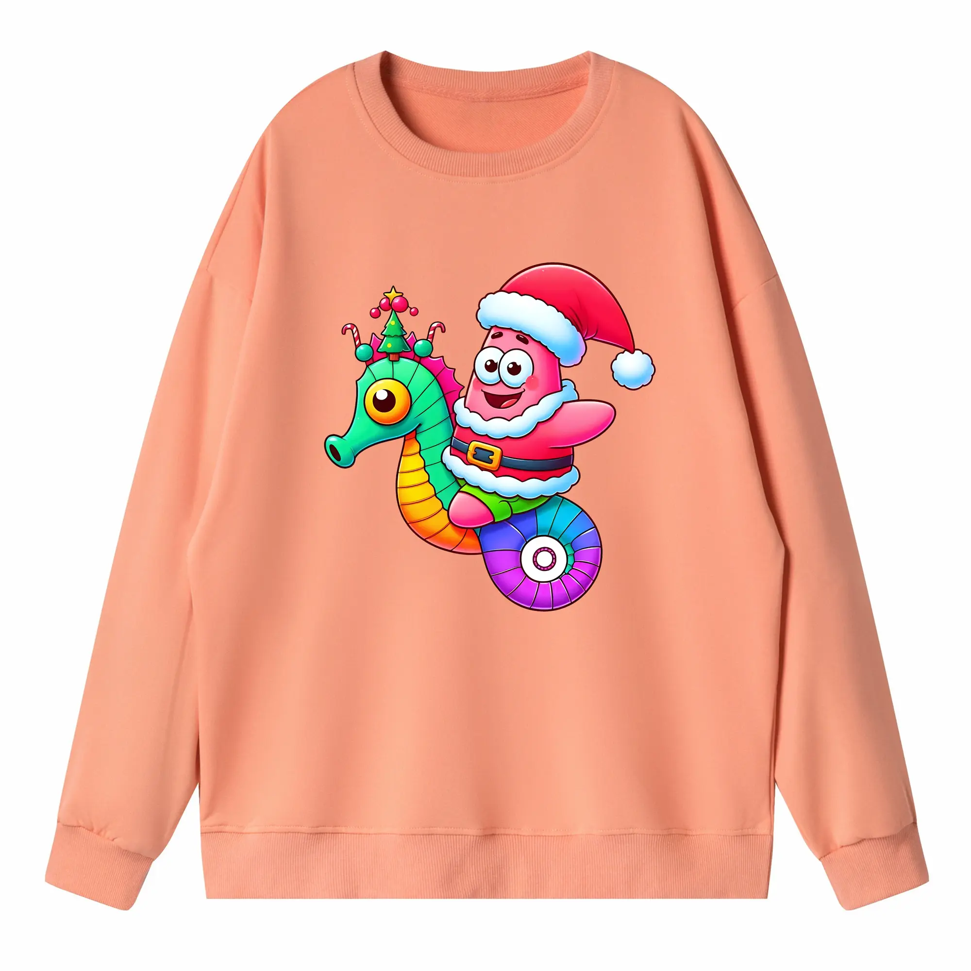スポンジボブ グッズ パトリック・スター - 高品質 クルーネック スウェット ・ コットン59% ポリエステル41% ・ ユニセックス 長袖 トレーナー ・ カジュアル デイリー スポーツ 散歩用