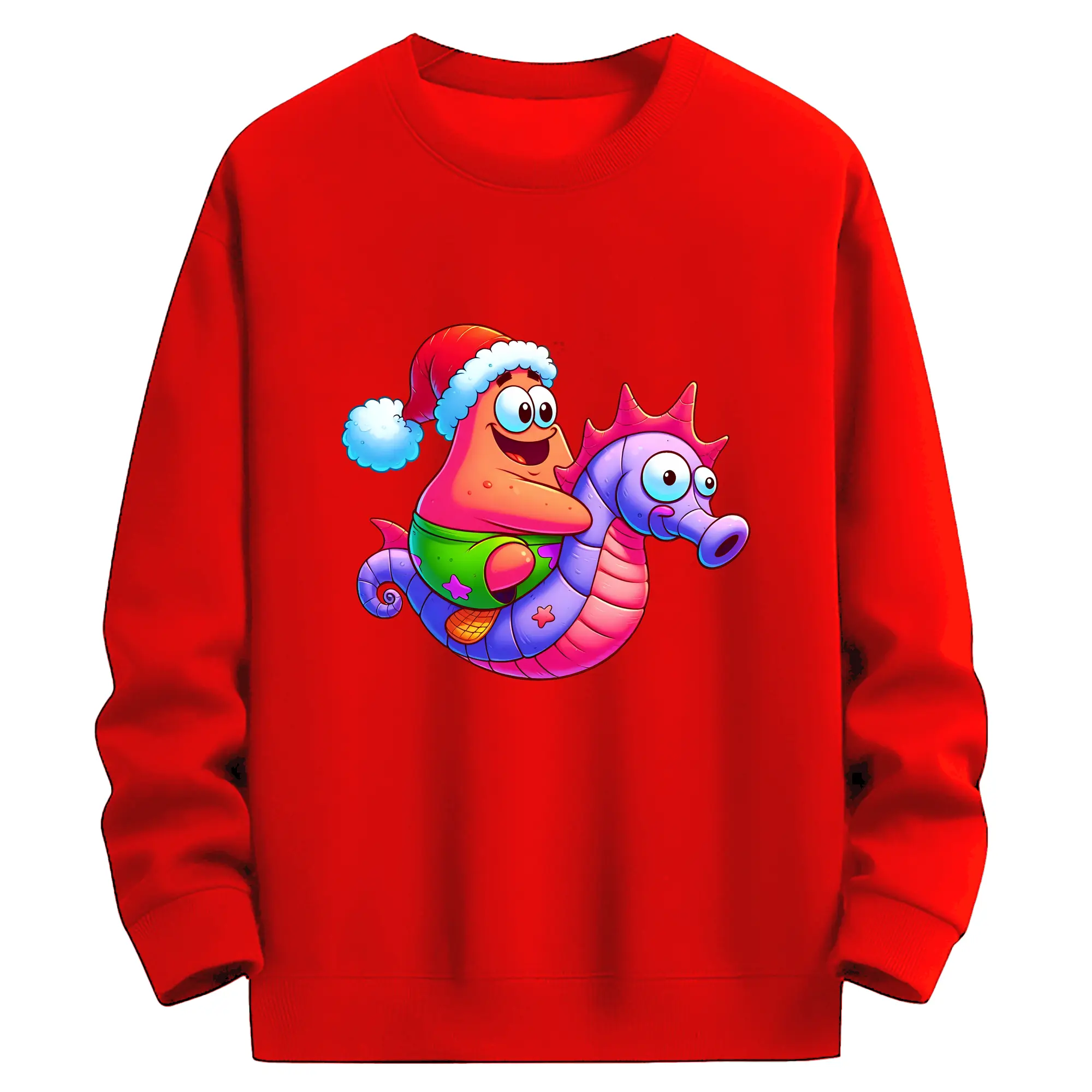 スポンジボブ グッズ パトリック・スター - 高品質 クルーネック スウェット ・ コットン59% ポリエステル41% ・ ユニセックス 長袖 トレーナー ・ カジュアル デイリー スポーツ 散歩用