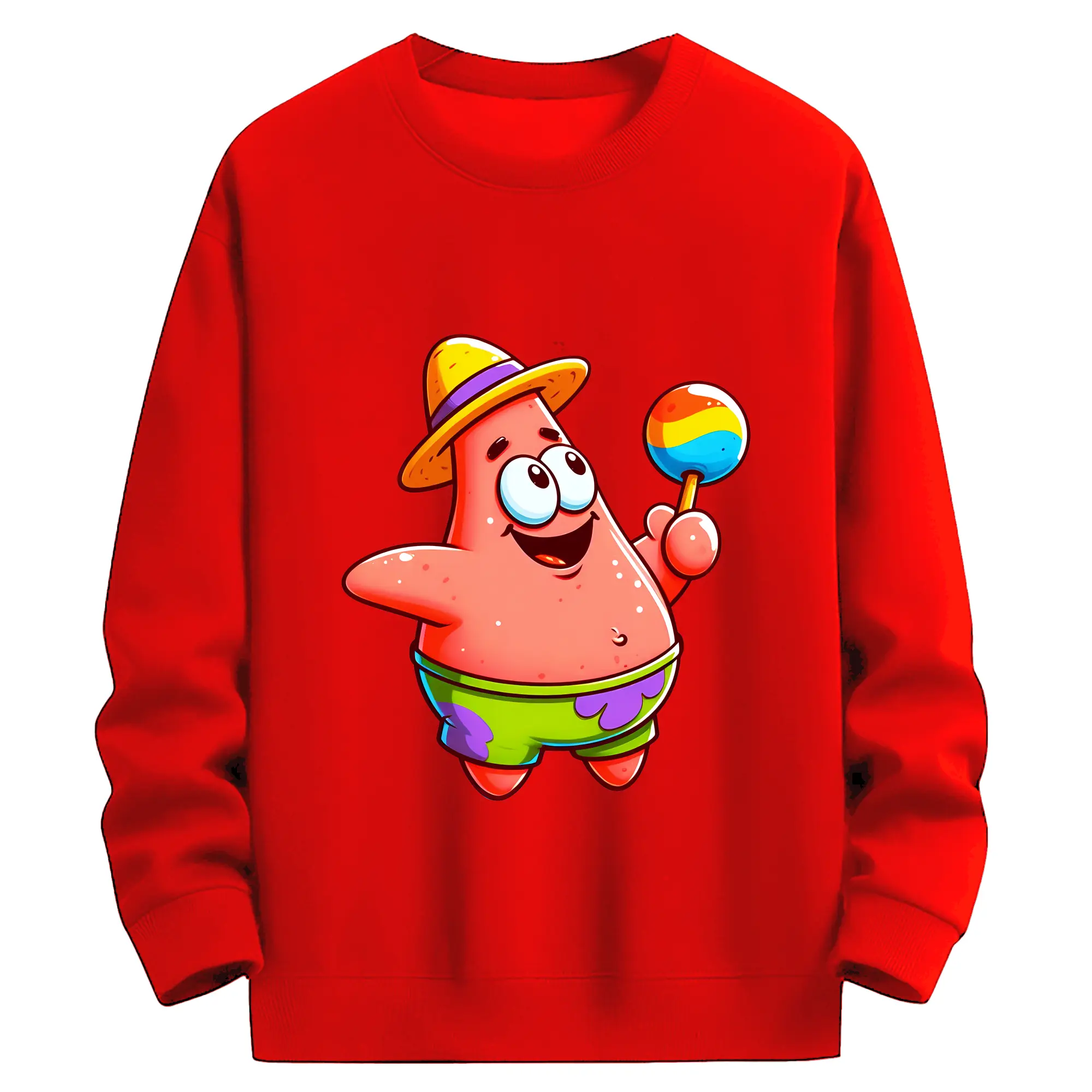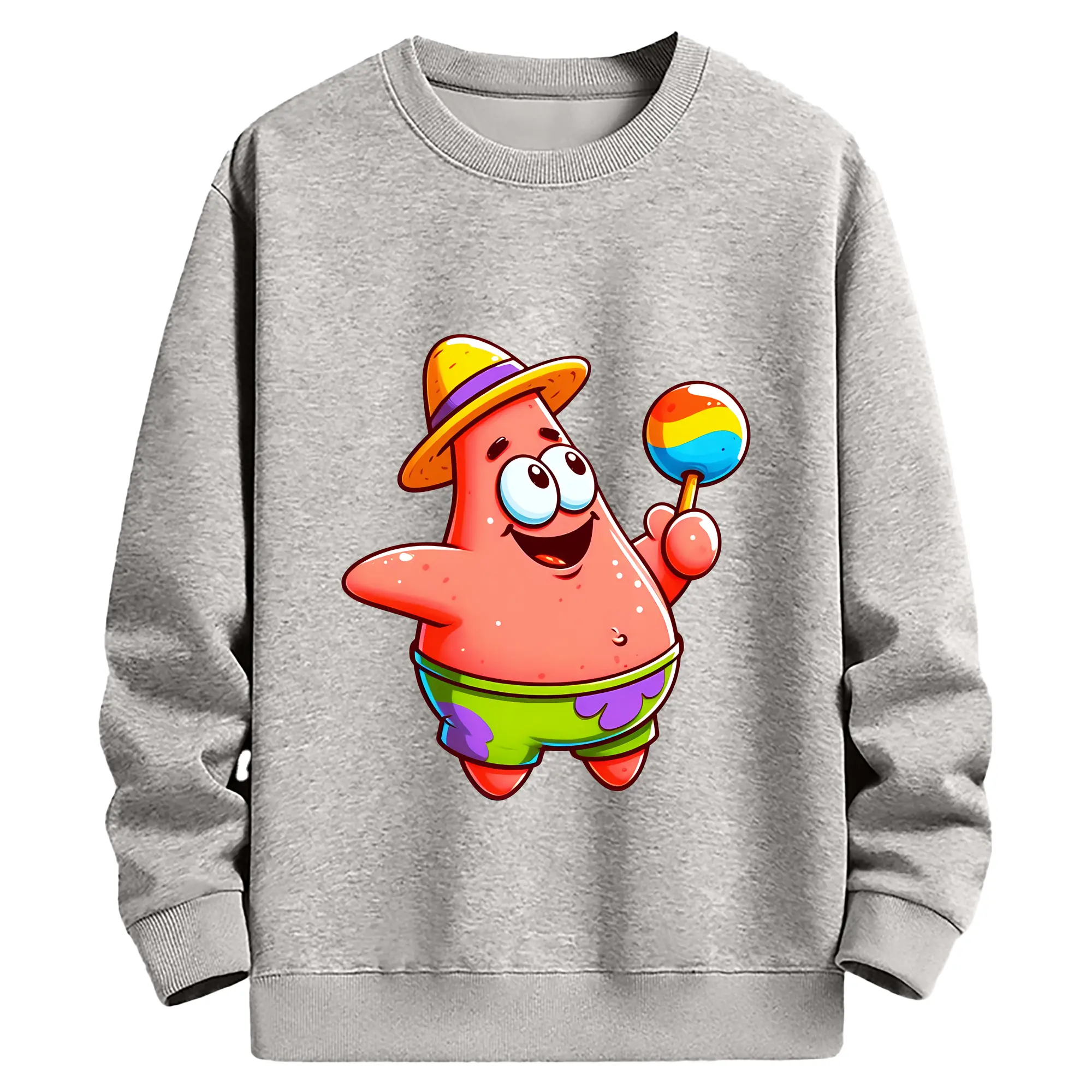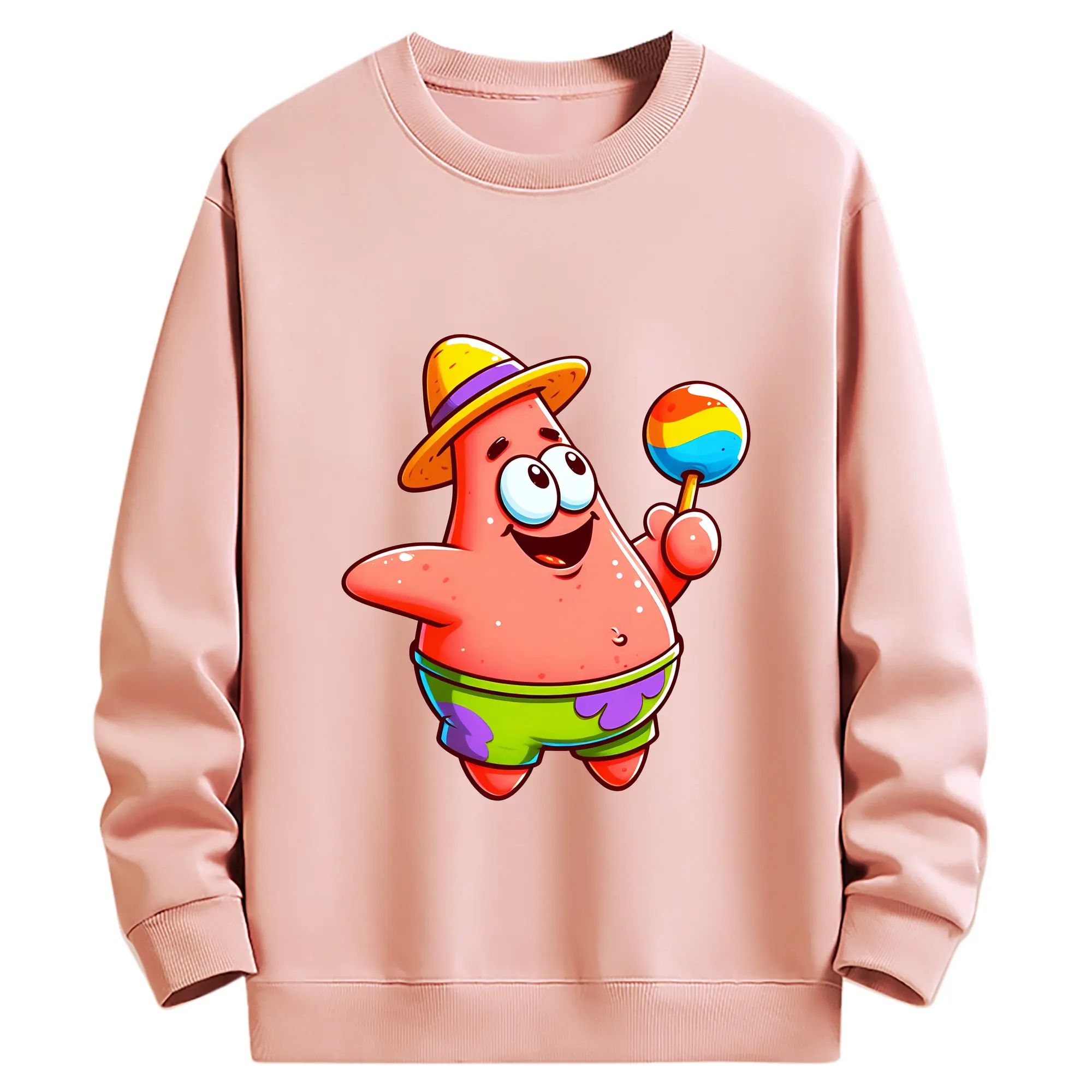 スポンジボブ グッズ パトリック・スター - 高品質 クルーネック スウェット ・ コットン59% ポリエステル41% ・ ユニセックス 長袖 トレーナー ・ カジュアル デイリー スポーツ 散歩用