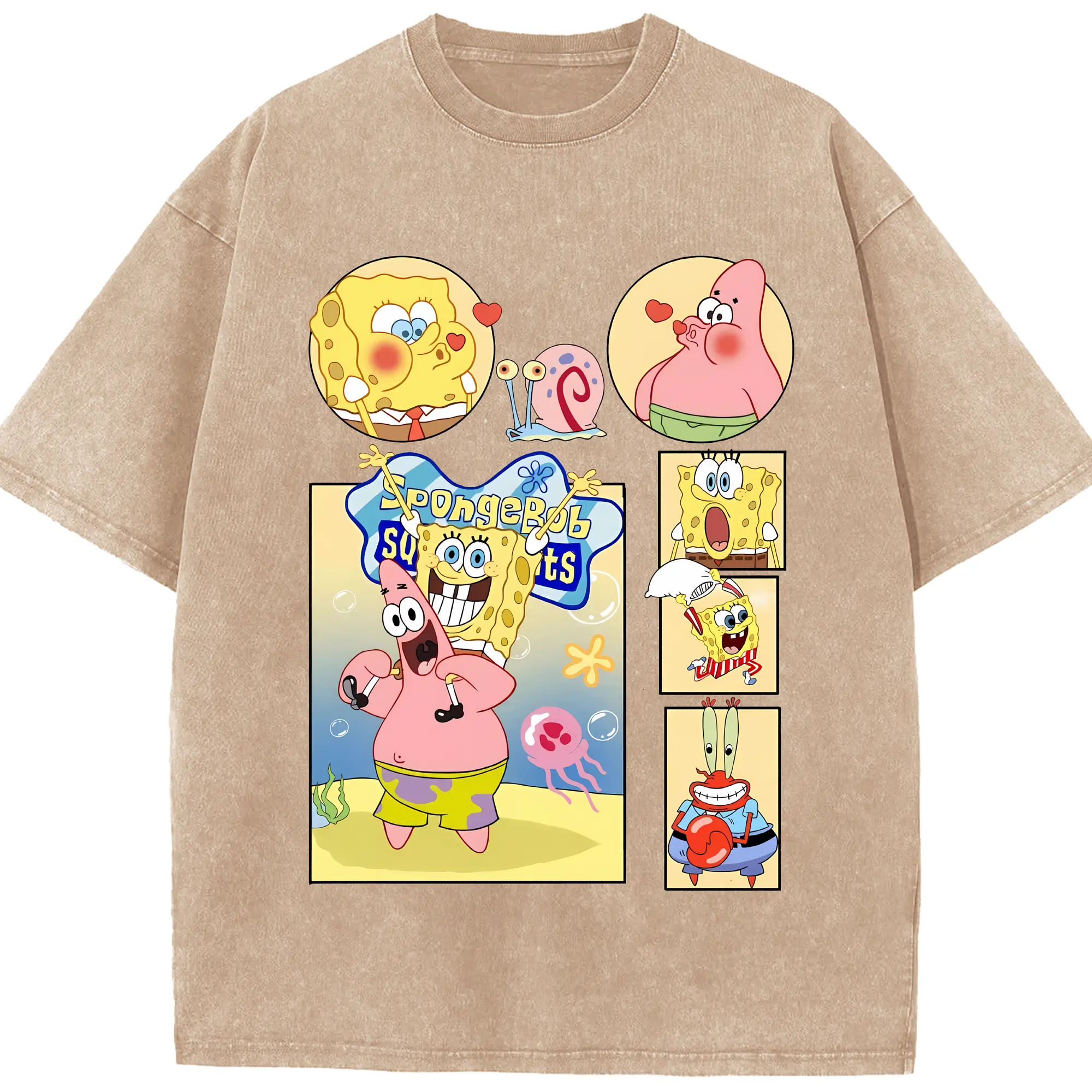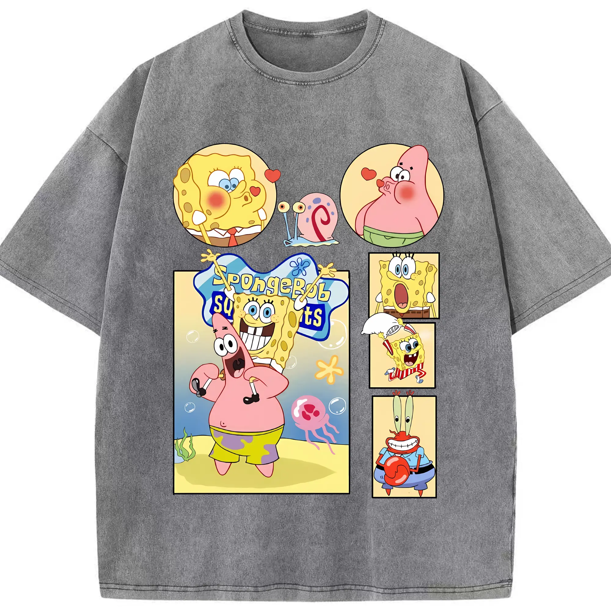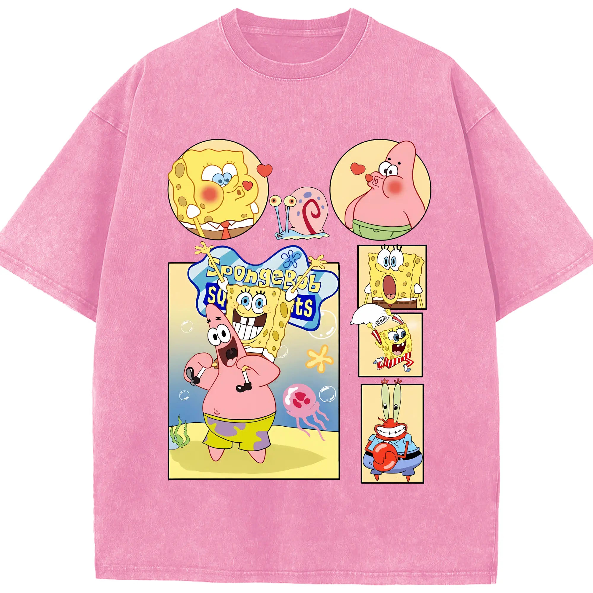 スポンジボブ グッズ パトリック・スター - 綿100% ヴィンテージ風 半袖Tシャツ ・ 背面プリント ・ 柔らか肌触り ・ 通気性 快適 ・ スポーツ カジュアル 外出用