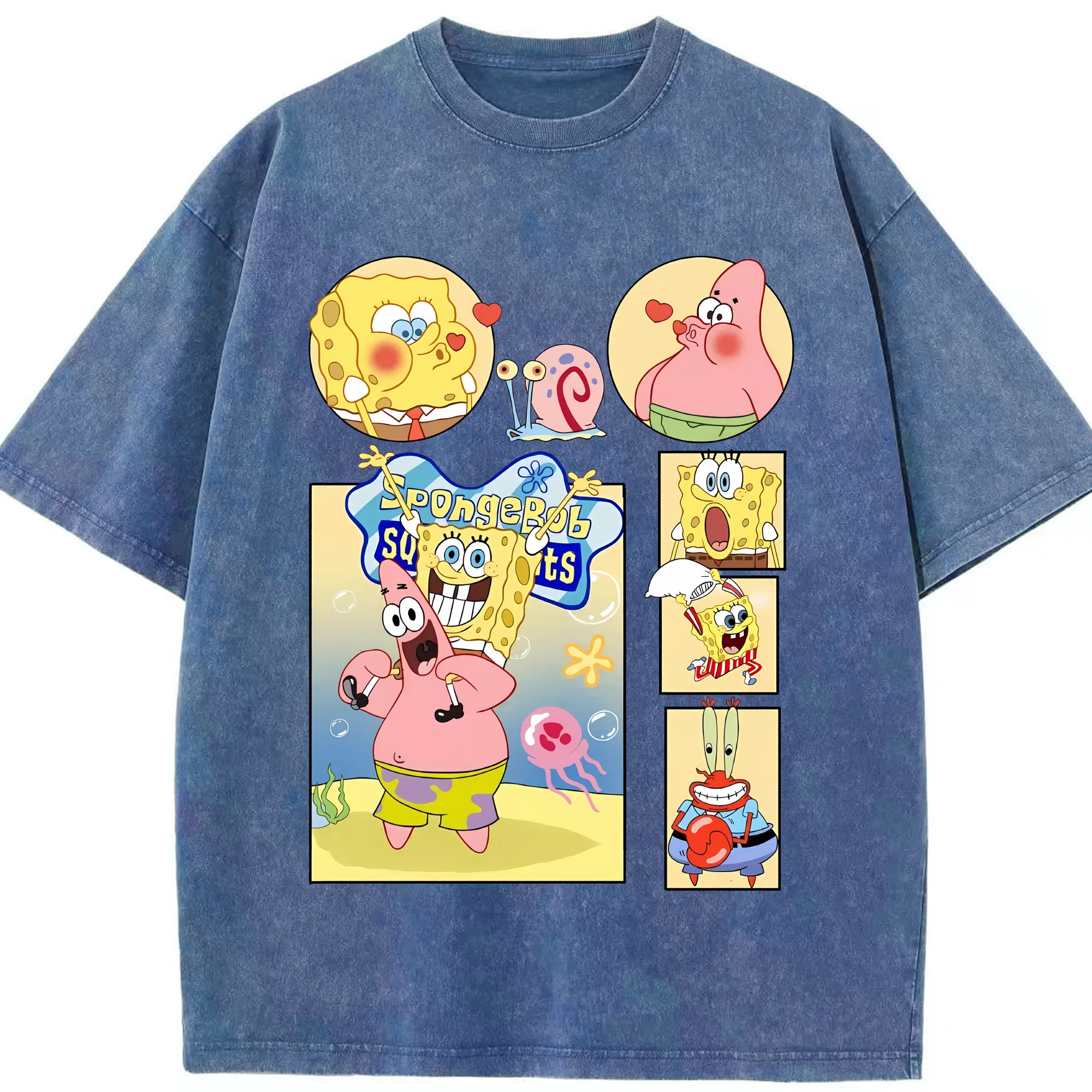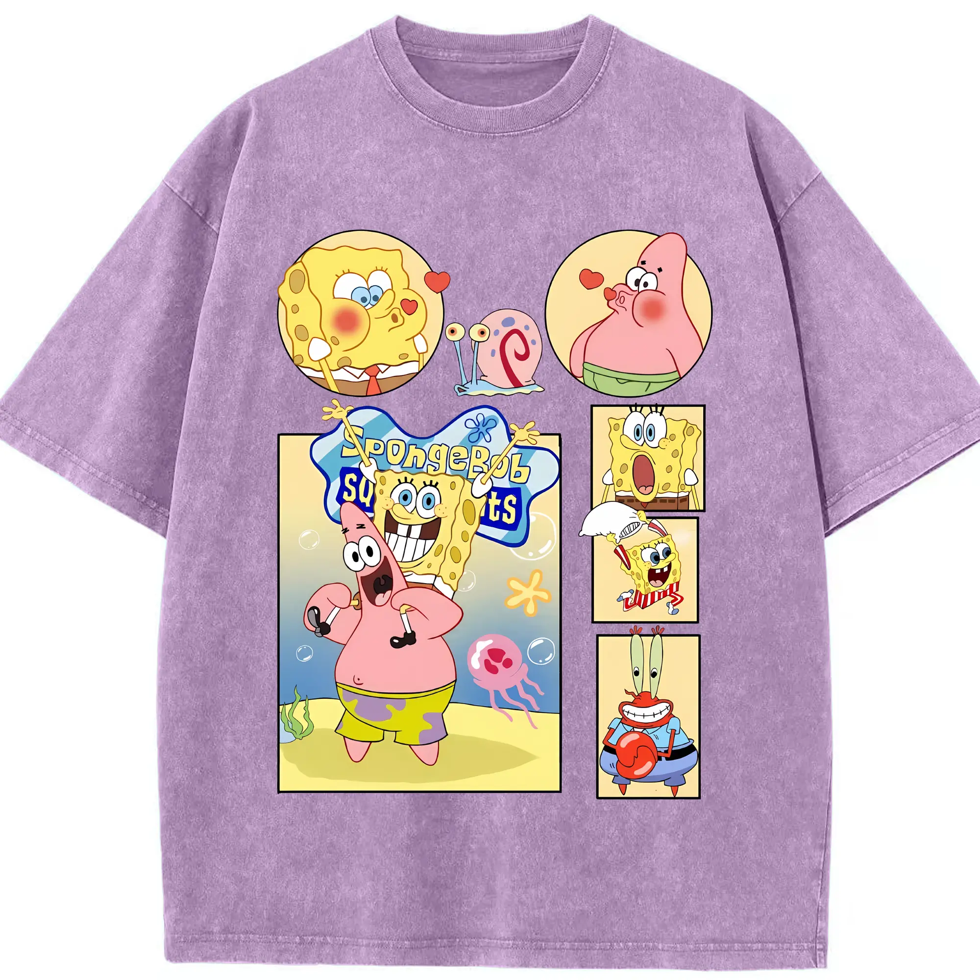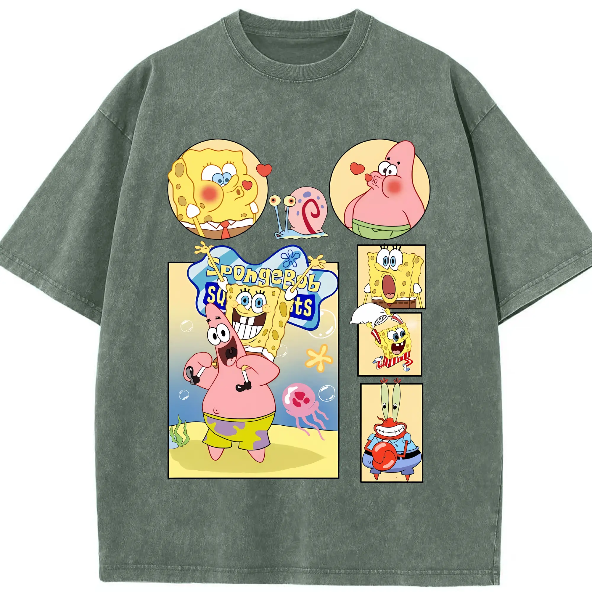 スポンジボブ グッズ パトリック・スター - 綿100% ヴィンテージ風 半袖Tシャツ ・ 背面プリント ・ 柔らか肌触り ・ 通気性 快適 ・ スポーツ カジュアル 外出用