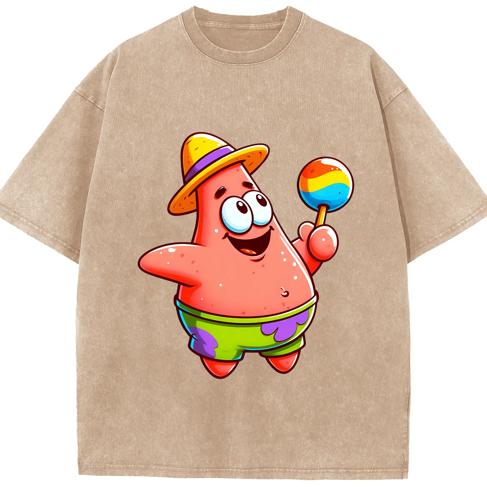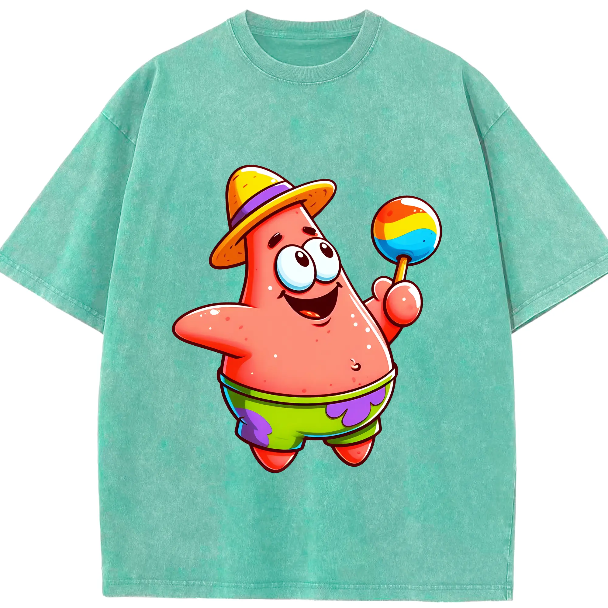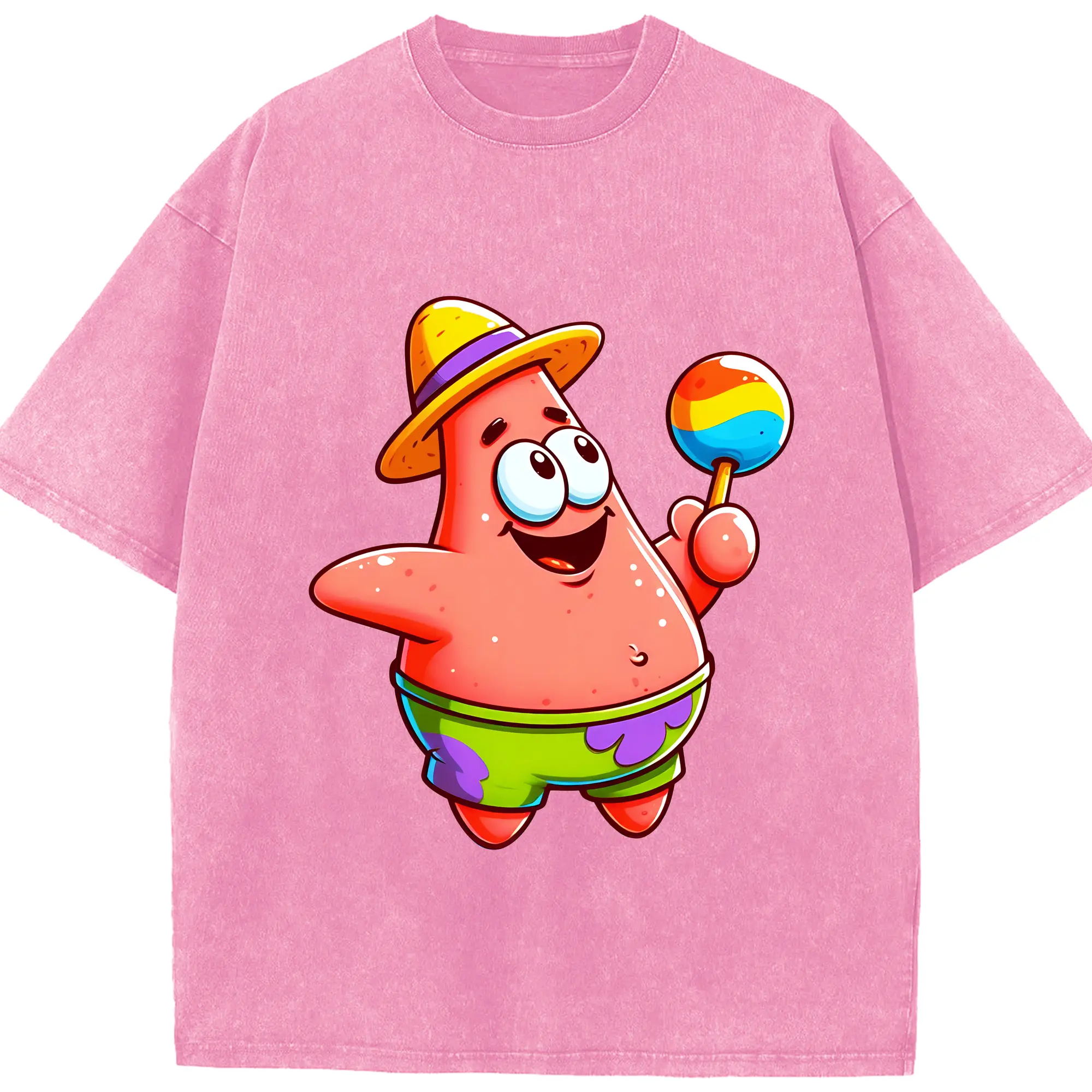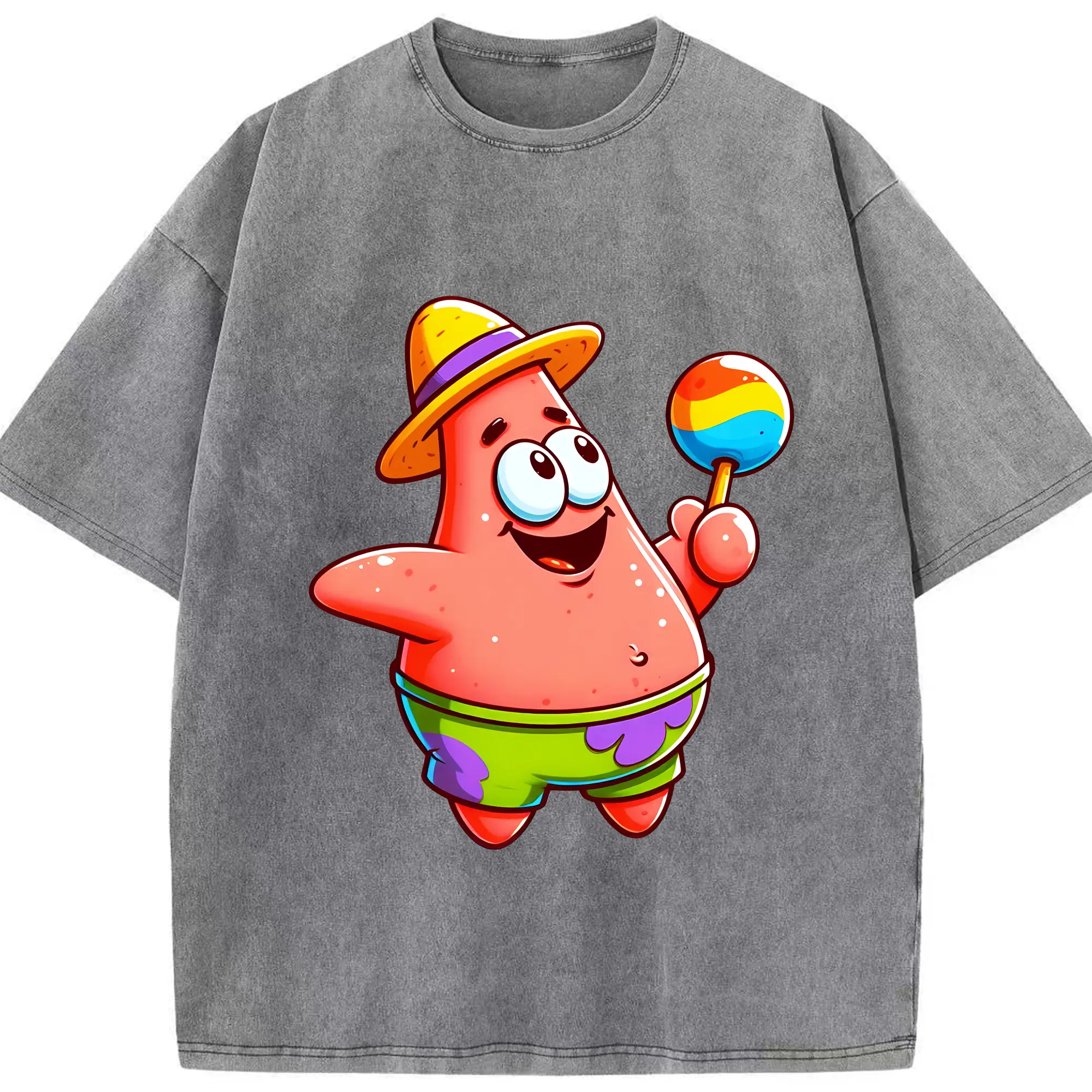スポンジボブ グッズ パトリック・スター - 綿100% ヴィンテージ風 半袖Tシャツ ・ 背面プリント ・ 柔らか肌触り ・ 通気性 快適 ・ スポーツ カジュアル 外出用