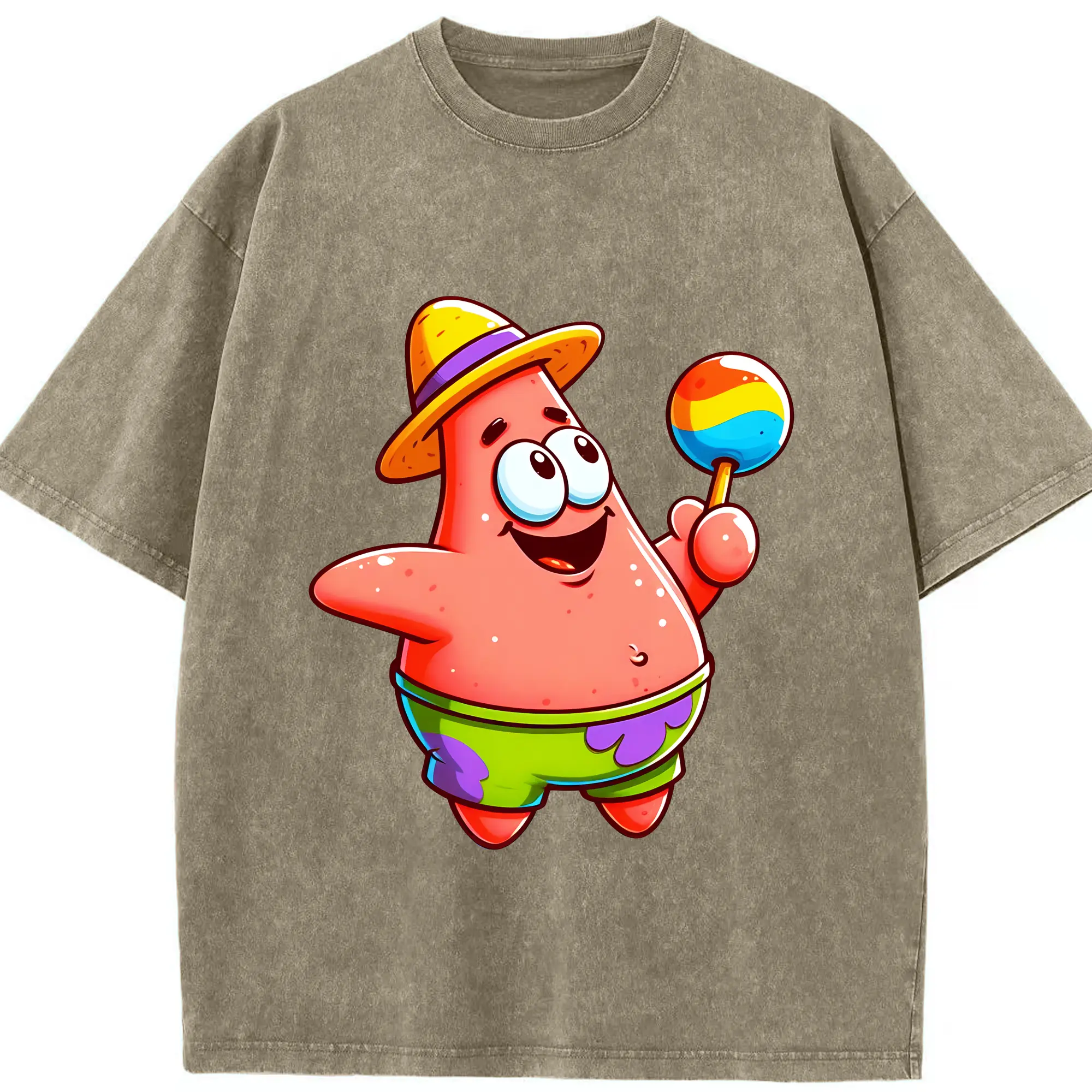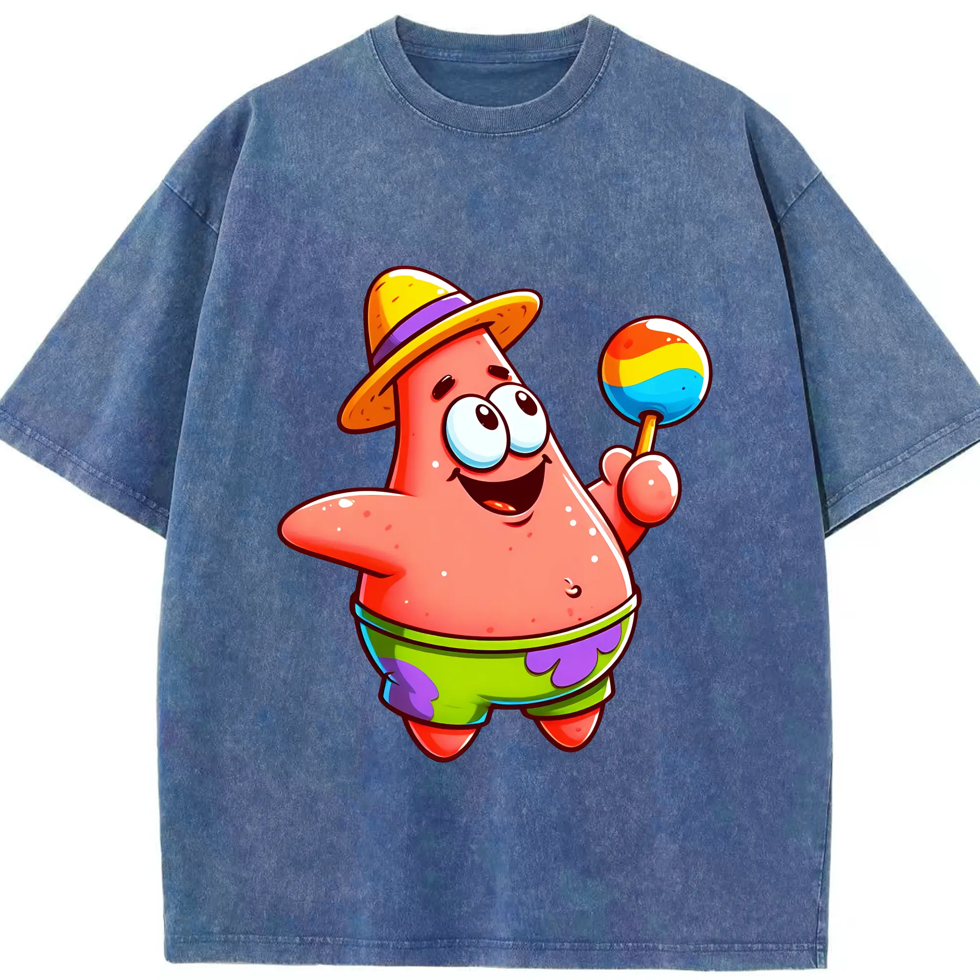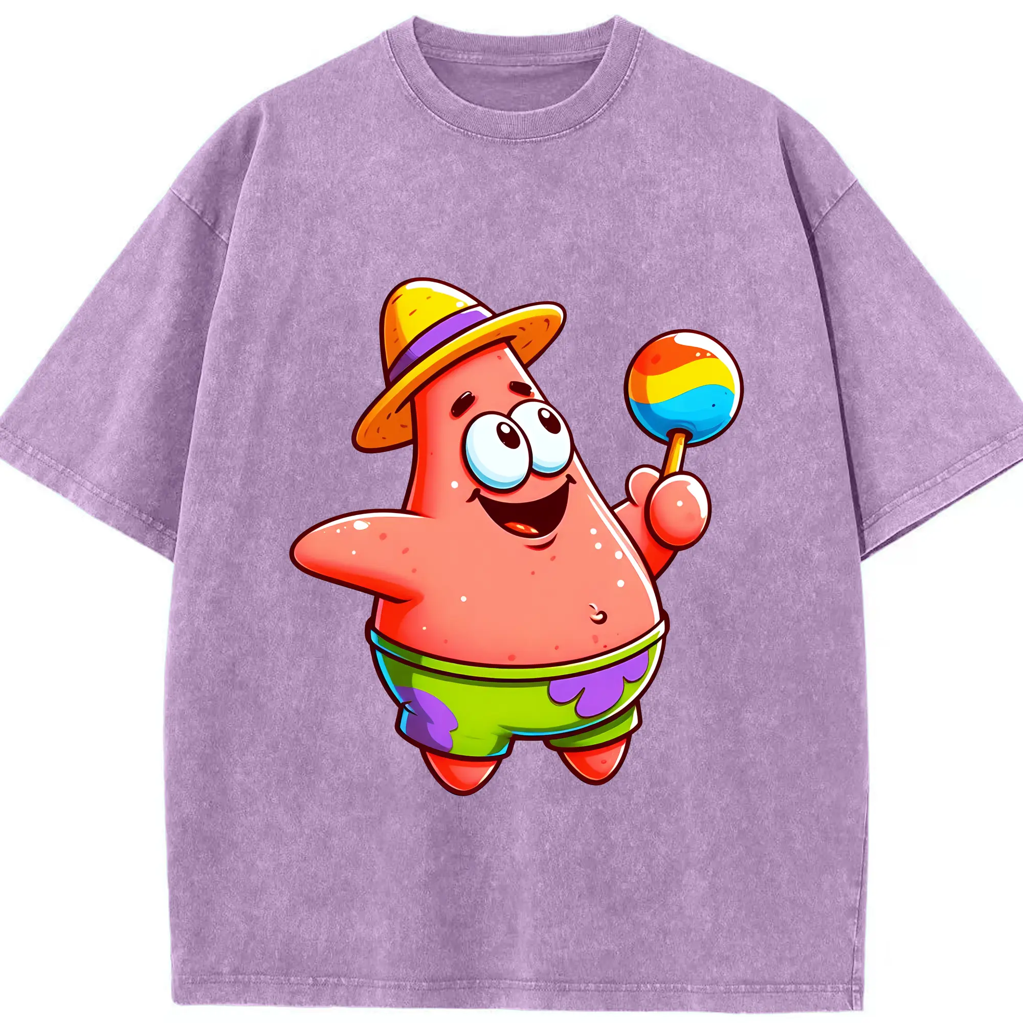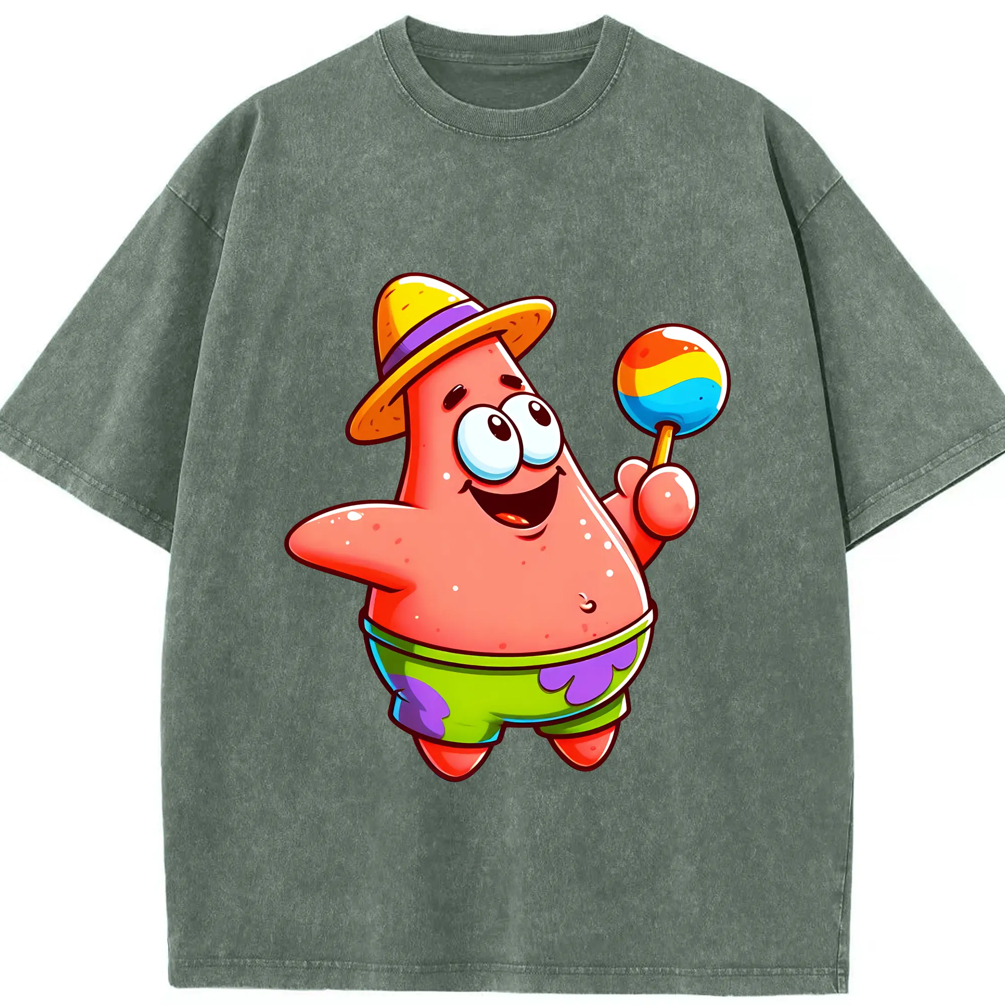 スポンジボブ グッズ パトリック・スター - 綿100% ヴィンテージ風 半袖Tシャツ ・ 背面プリント ・ 柔らか肌触り ・ 通気性 快適 ・ スポーツ カジュアル 外出用