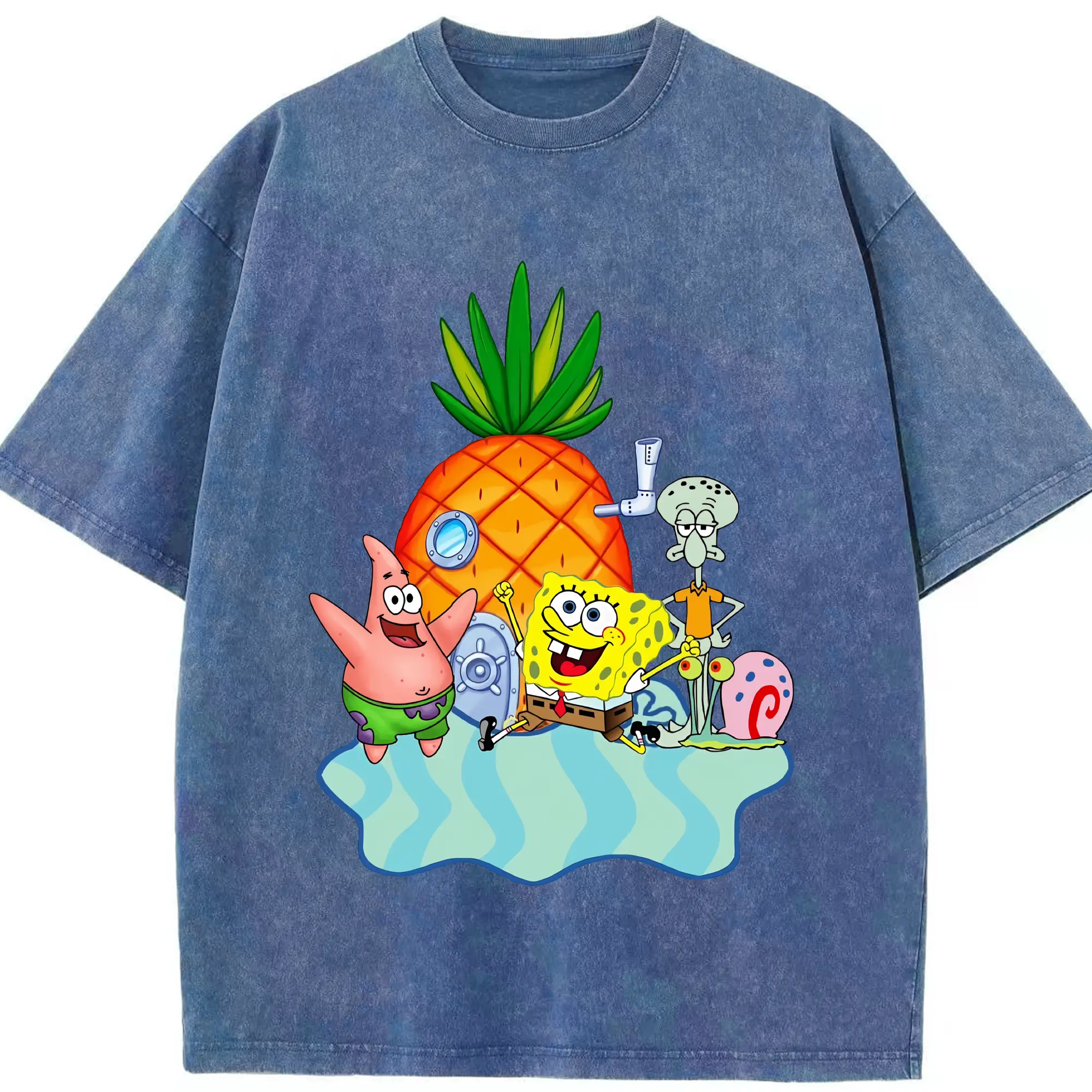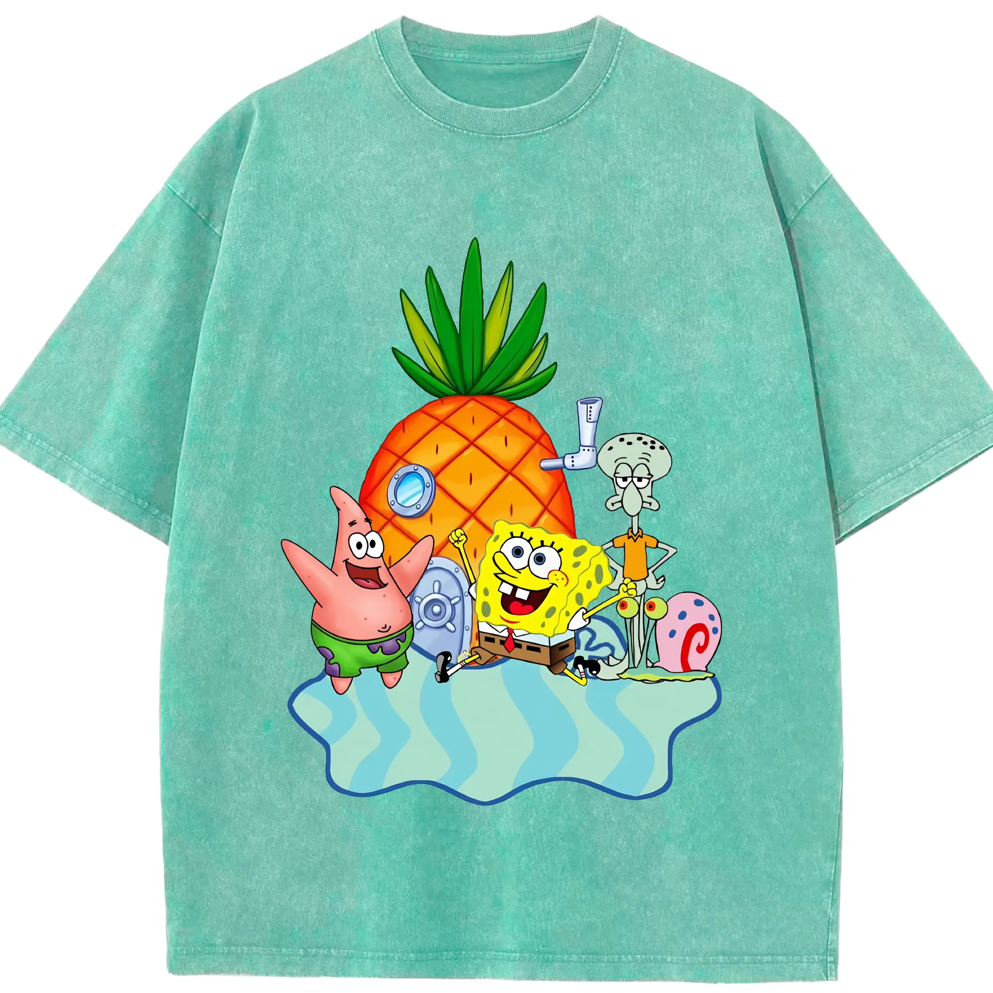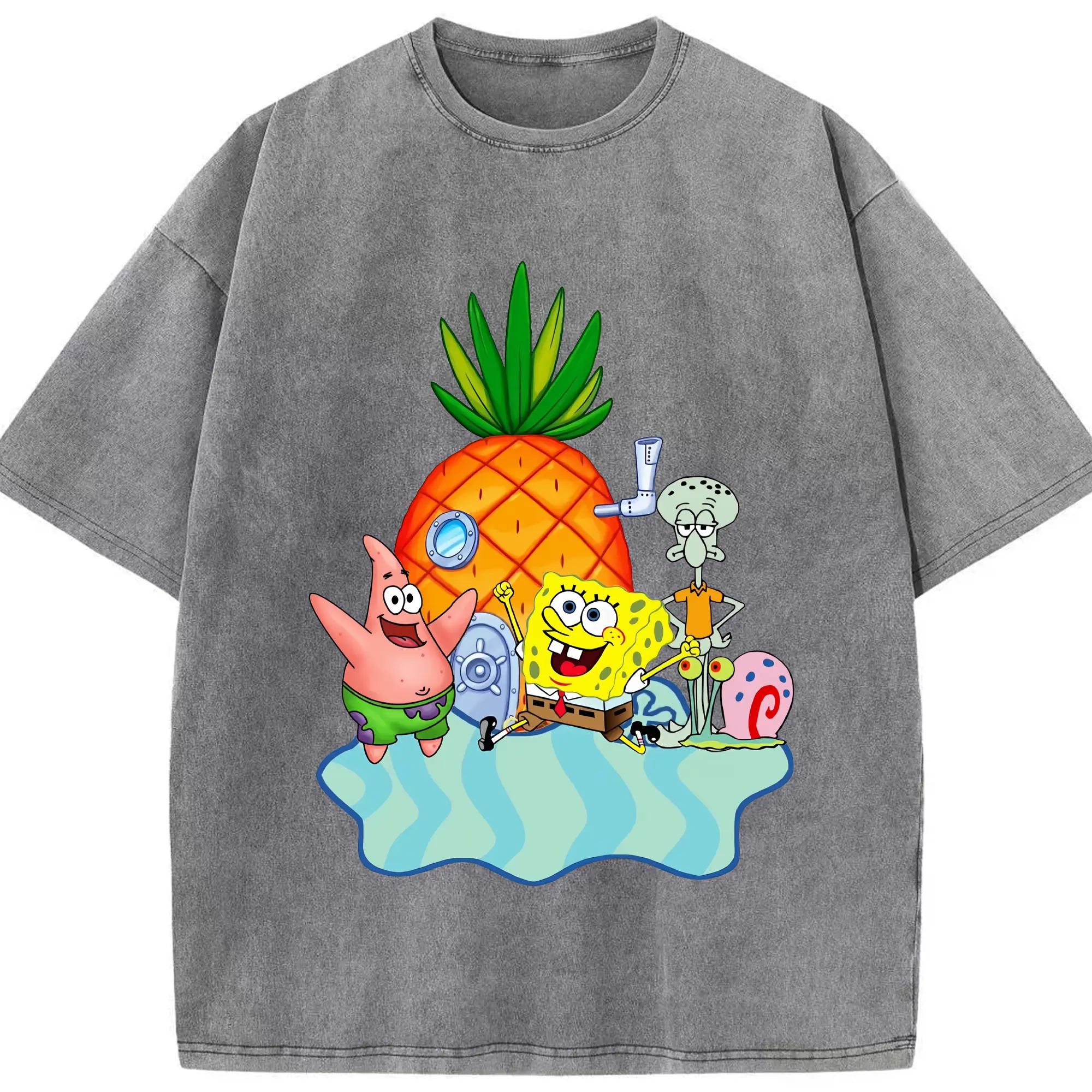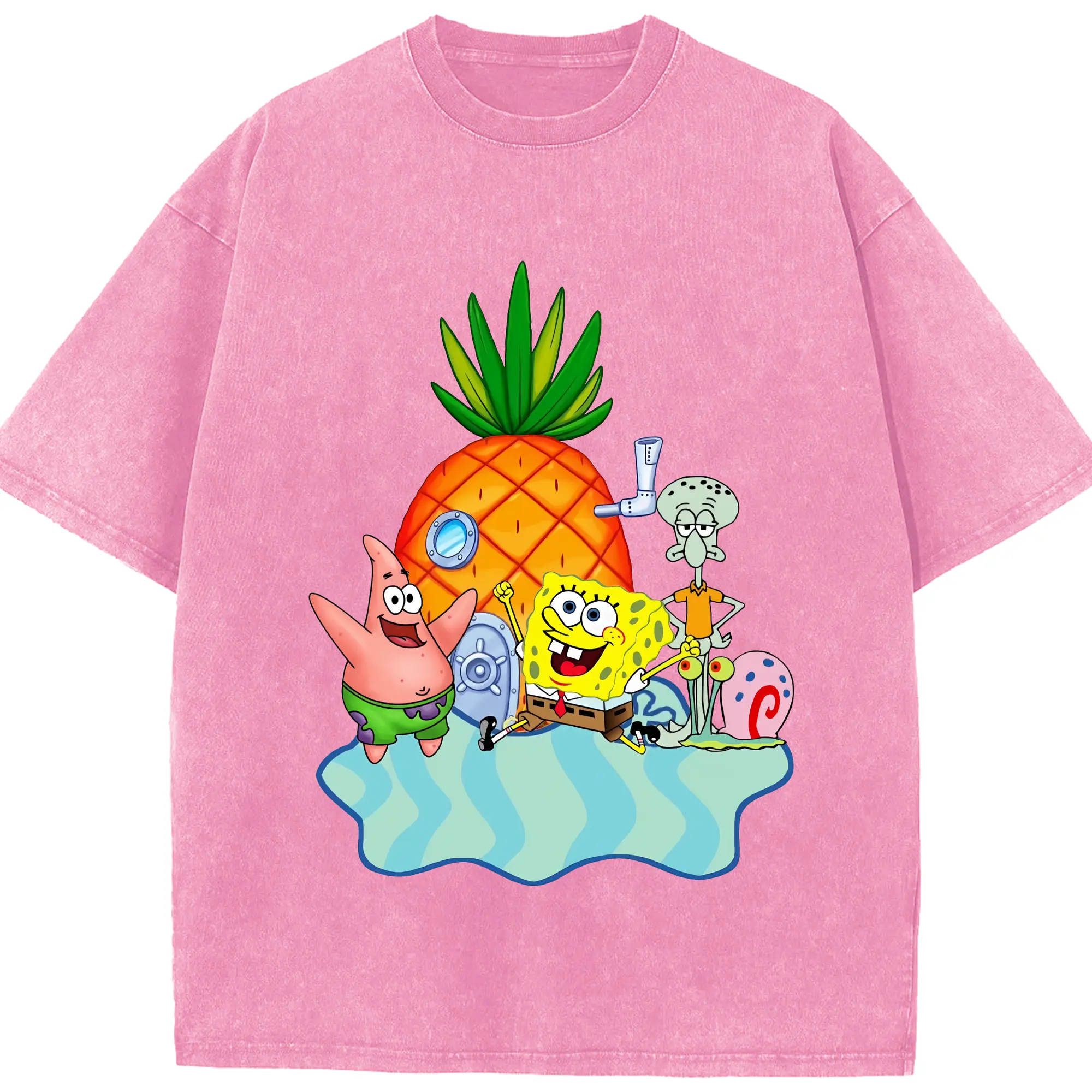 スポンジボブ グッズ パトリック・スター - 綿100% ヴィンテージ風 半袖Tシャツ ・ 背面プリント ・ 柔らか肌触り ・ 通気性 快適 ・ スポーツ カジュアル 外出用