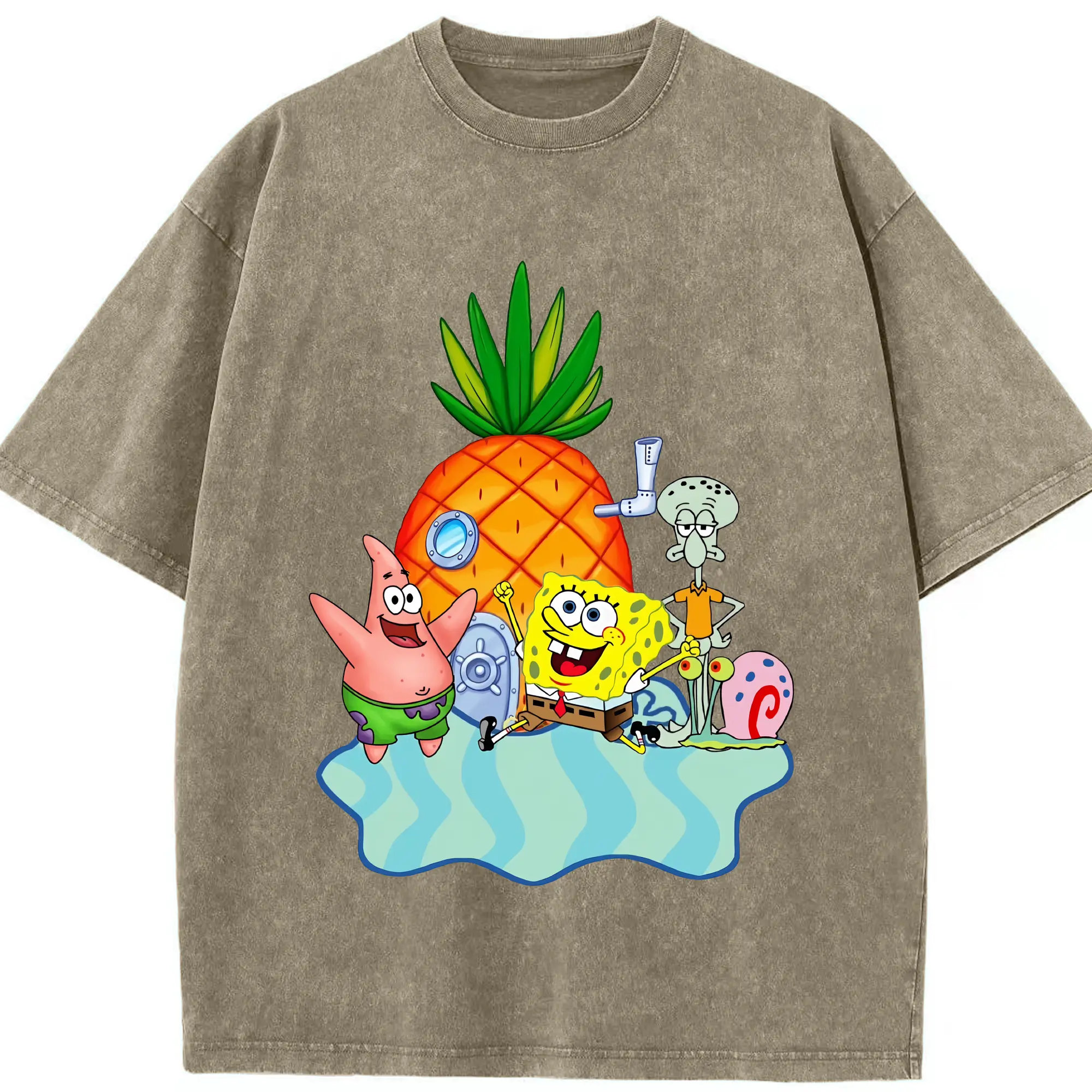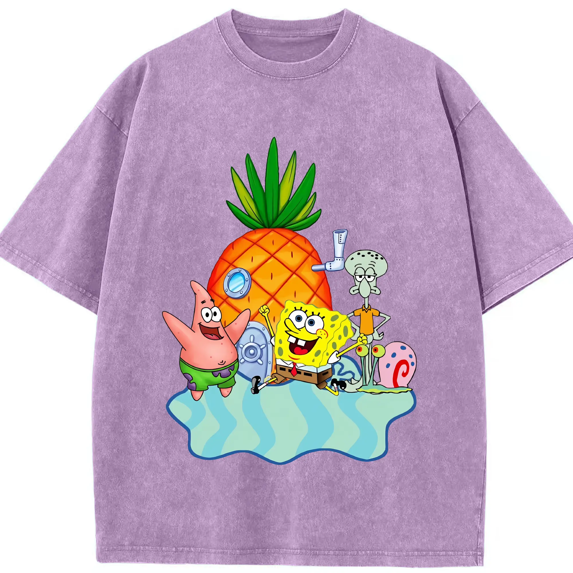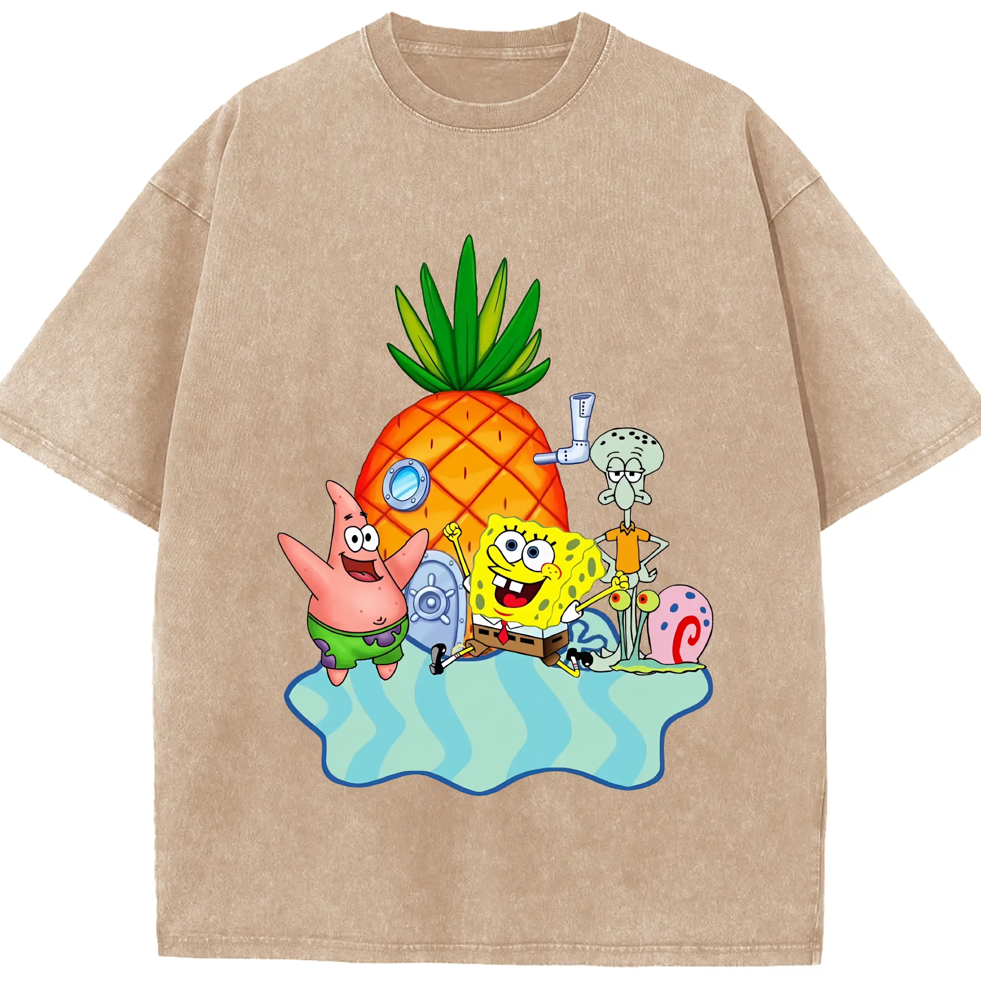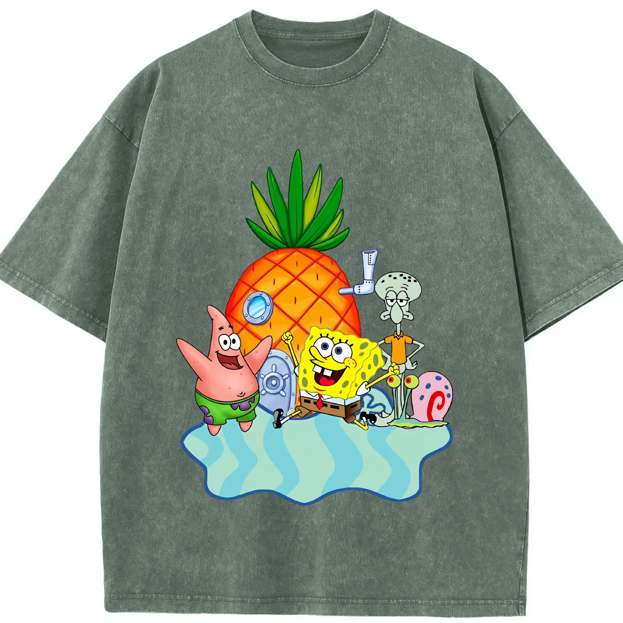 スポンジボブ グッズ パトリック・スター - 綿100% ヴィンテージ風 半袖Tシャツ ・ 背面プリント ・ 柔らか肌触り ・ 通気性 快適 ・ スポーツ カジュアル 外出用
