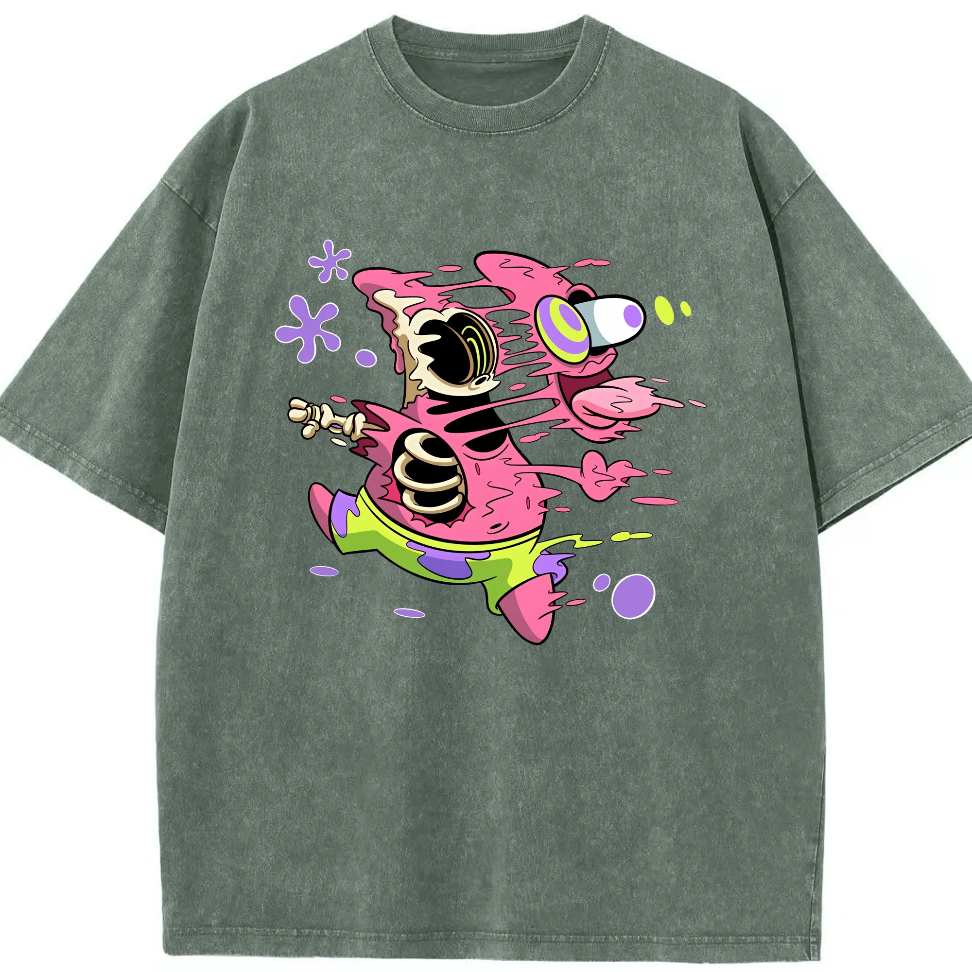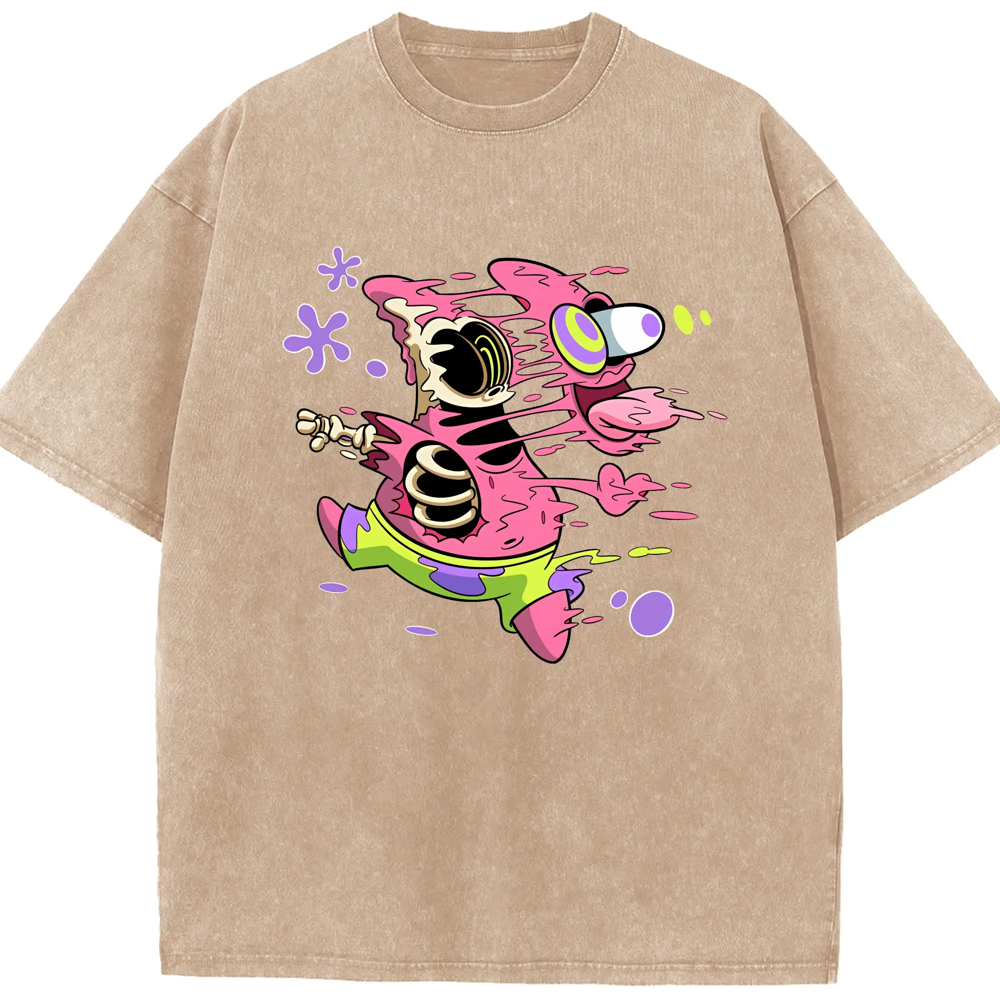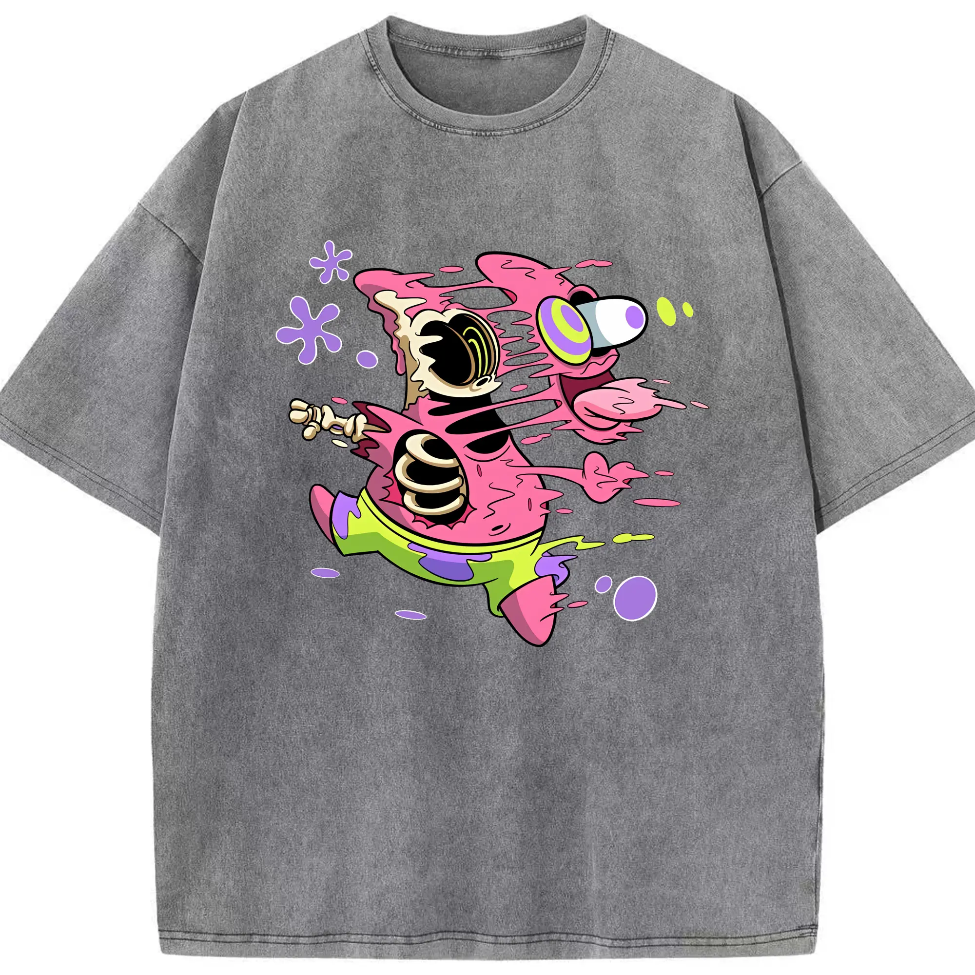 スポンジボブ グッズ パトリック・スター - 綿100% ヴィンテージ風 半袖Tシャツ ・ 背面プリント ・ 柔らか肌触り ・ 通気性 快適 ・ スポーツ カジュアル 外出用