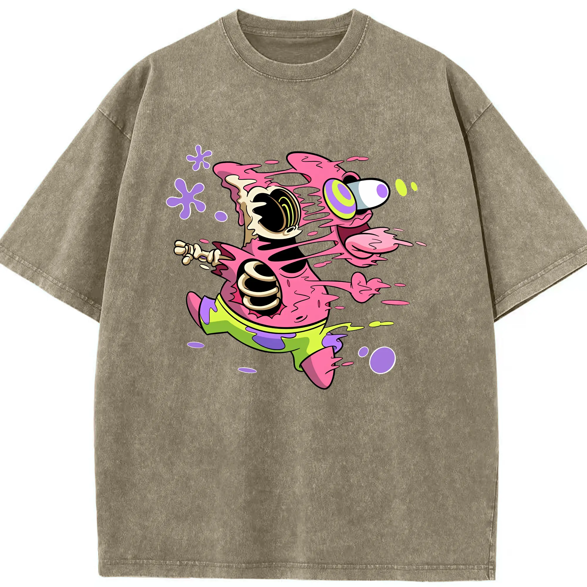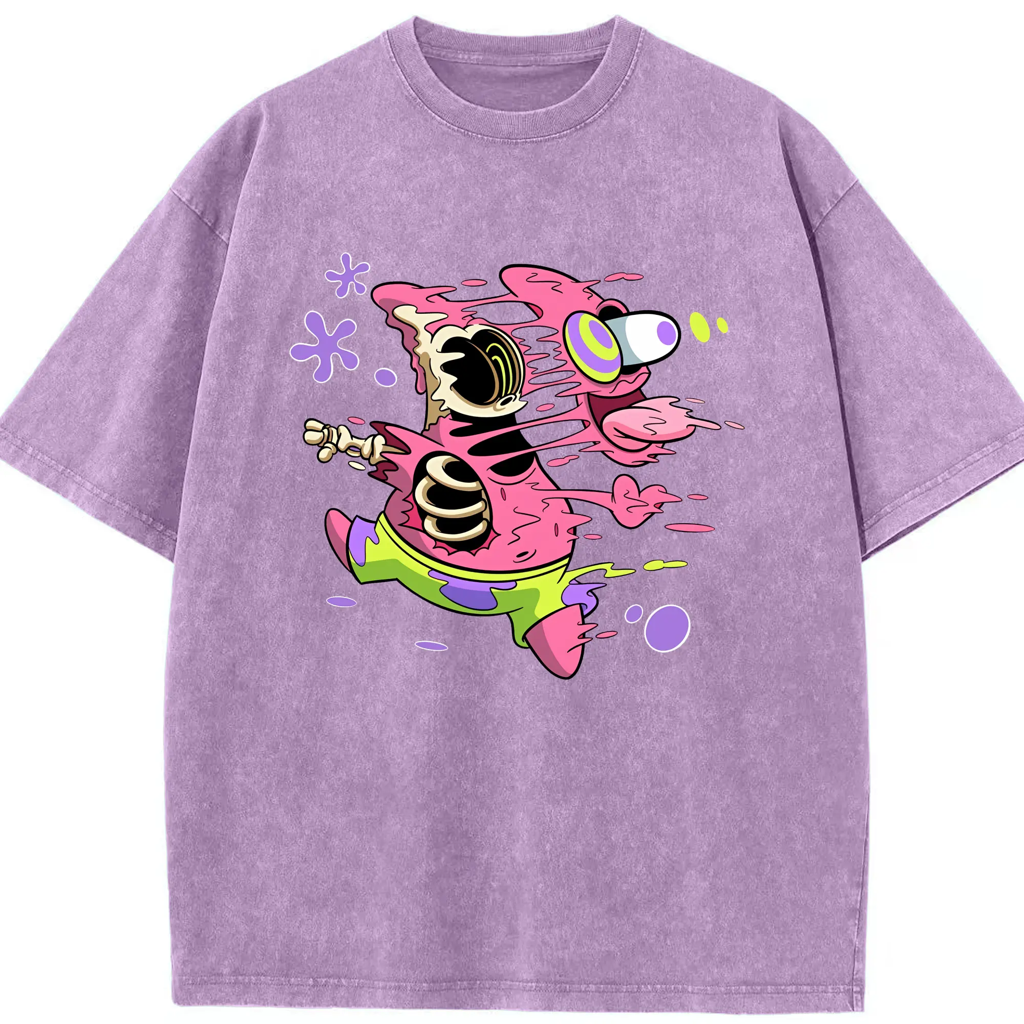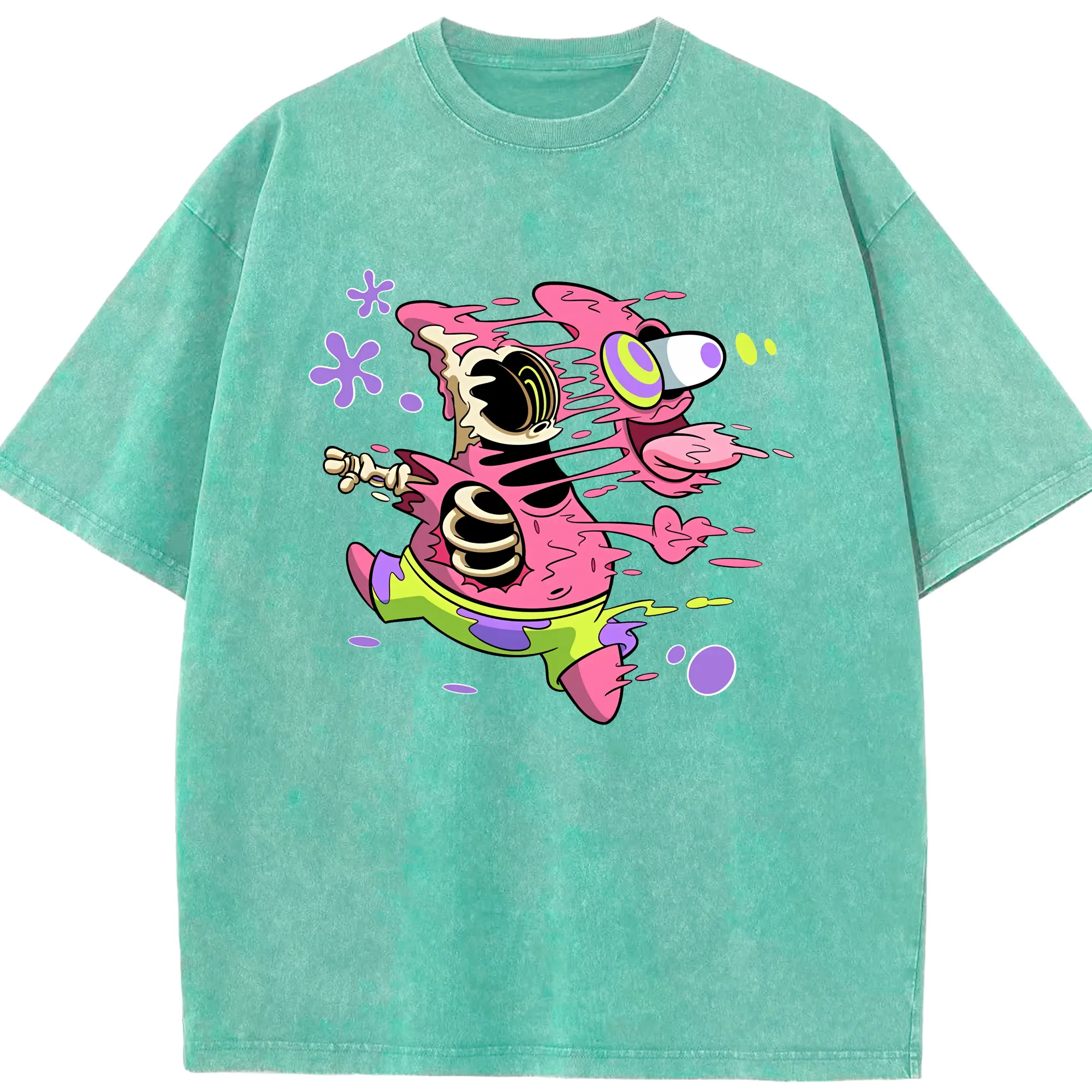 スポンジボブ グッズ パトリック・スター - 綿100% ヴィンテージ風 半袖Tシャツ ・ 背面プリント ・ 柔らか肌触り ・ 通気性 快適 ・ スポーツ カジュアル 外出用