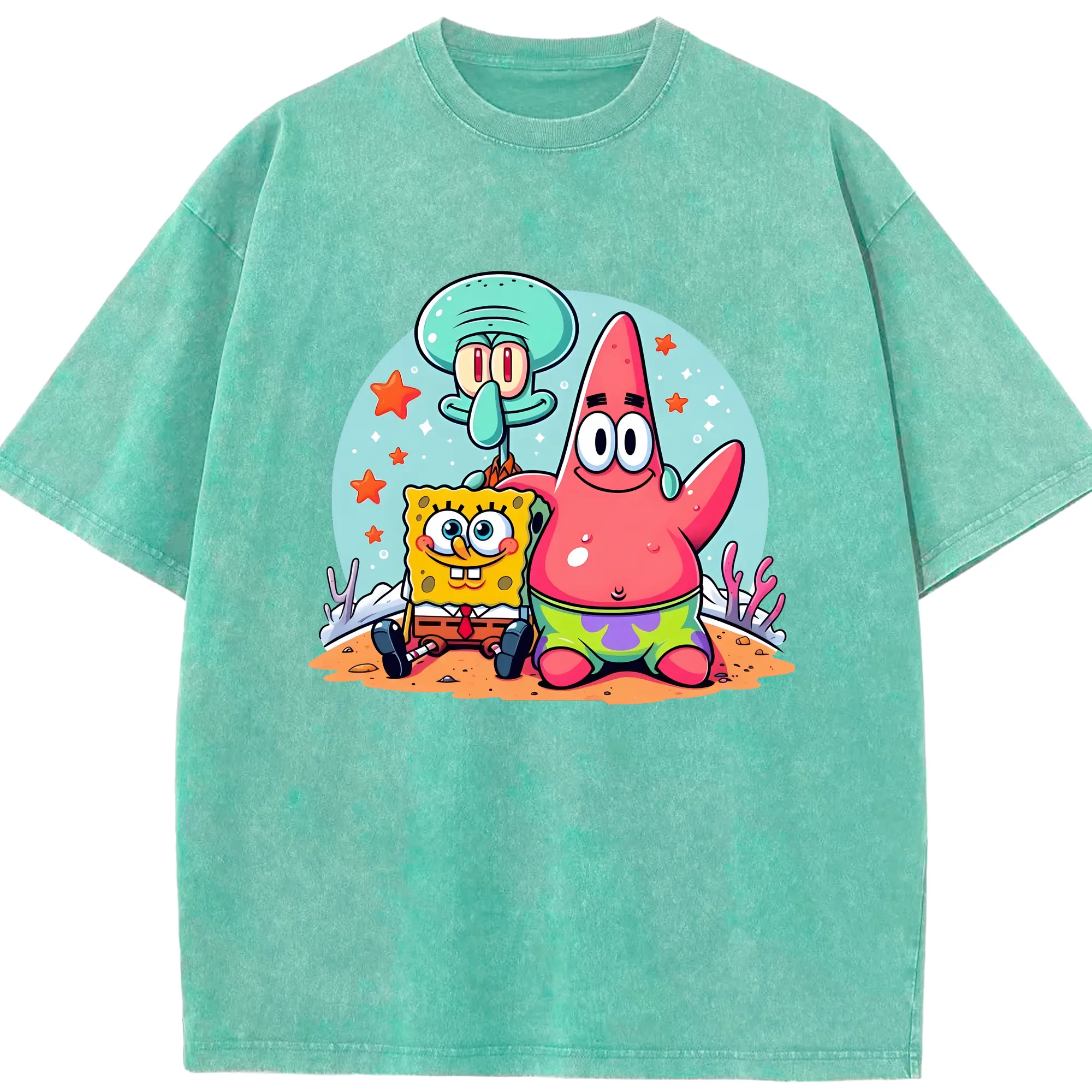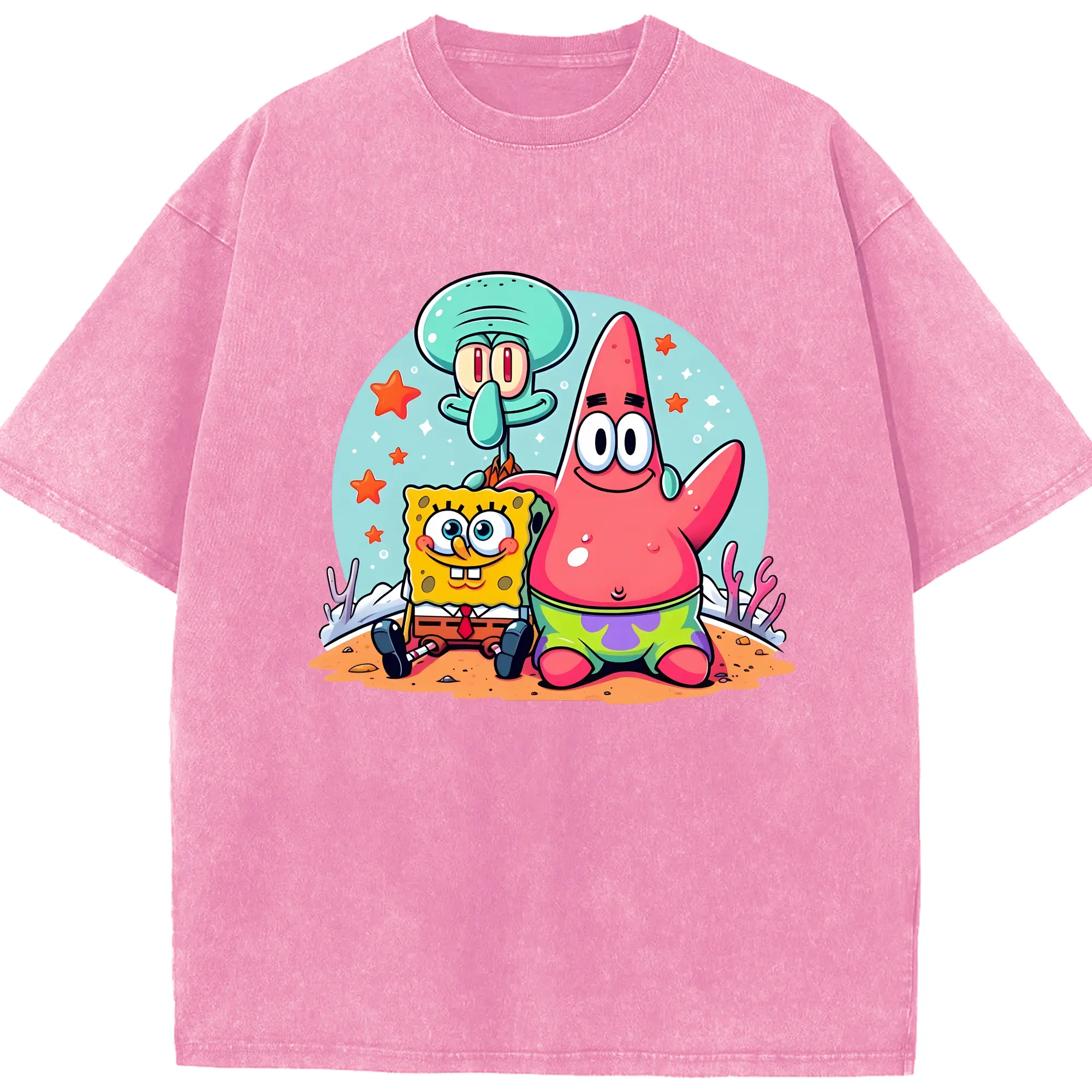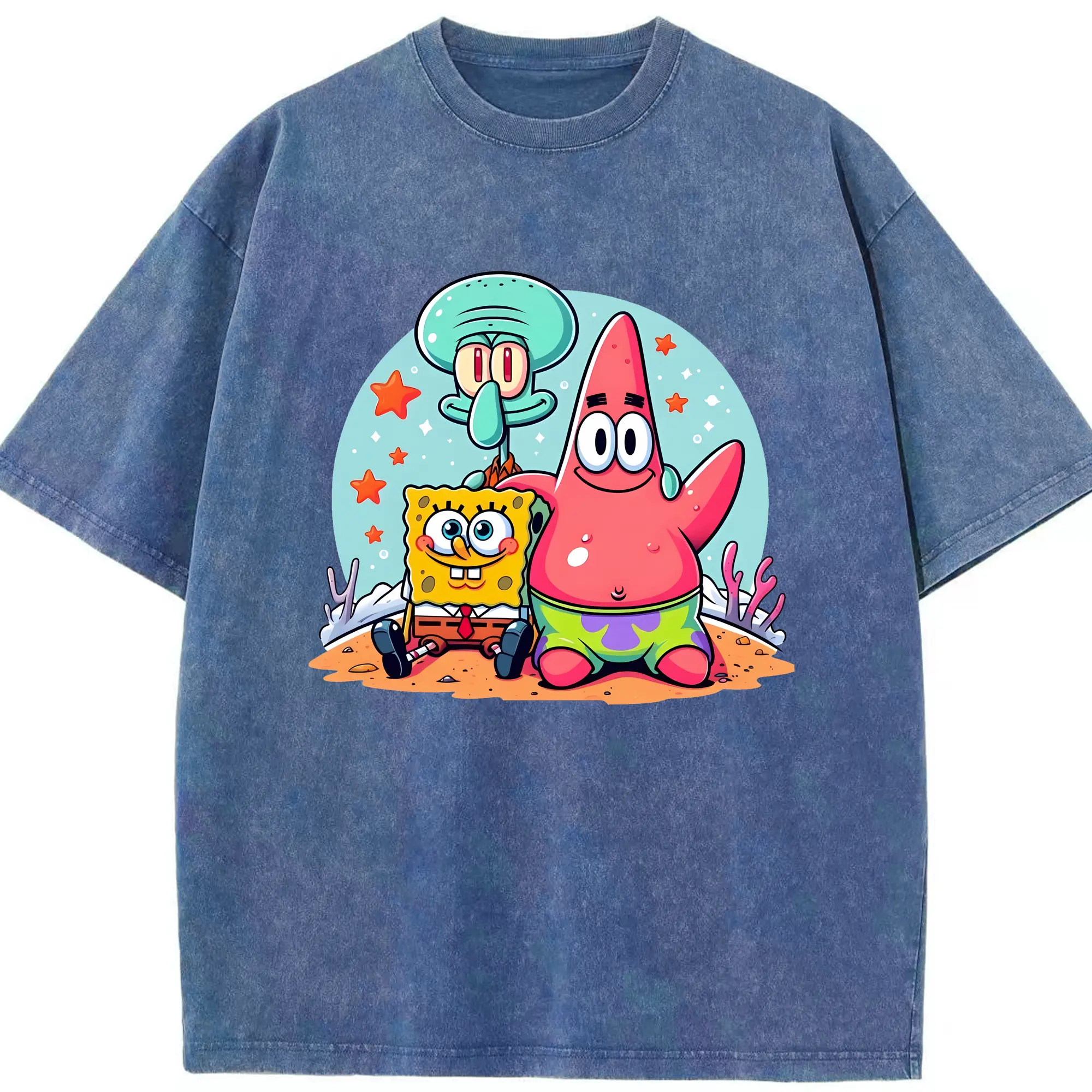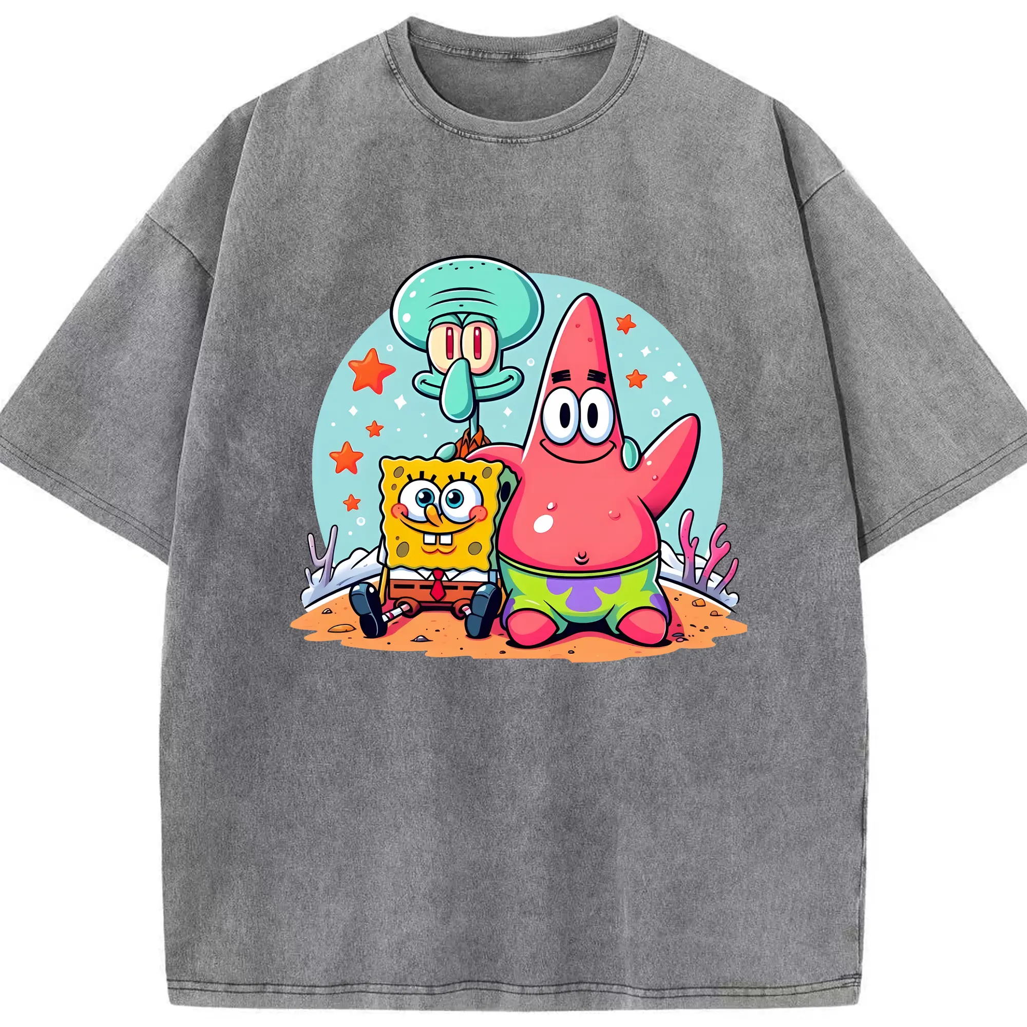 スポンジボブ グッズ パトリック・スター - 綿100% ヴィンテージ風 半袖Tシャツ ・ 背面プリント ・ 柔らか肌触り ・ 通気性 快適 ・ スポーツ カジュアル 外出用