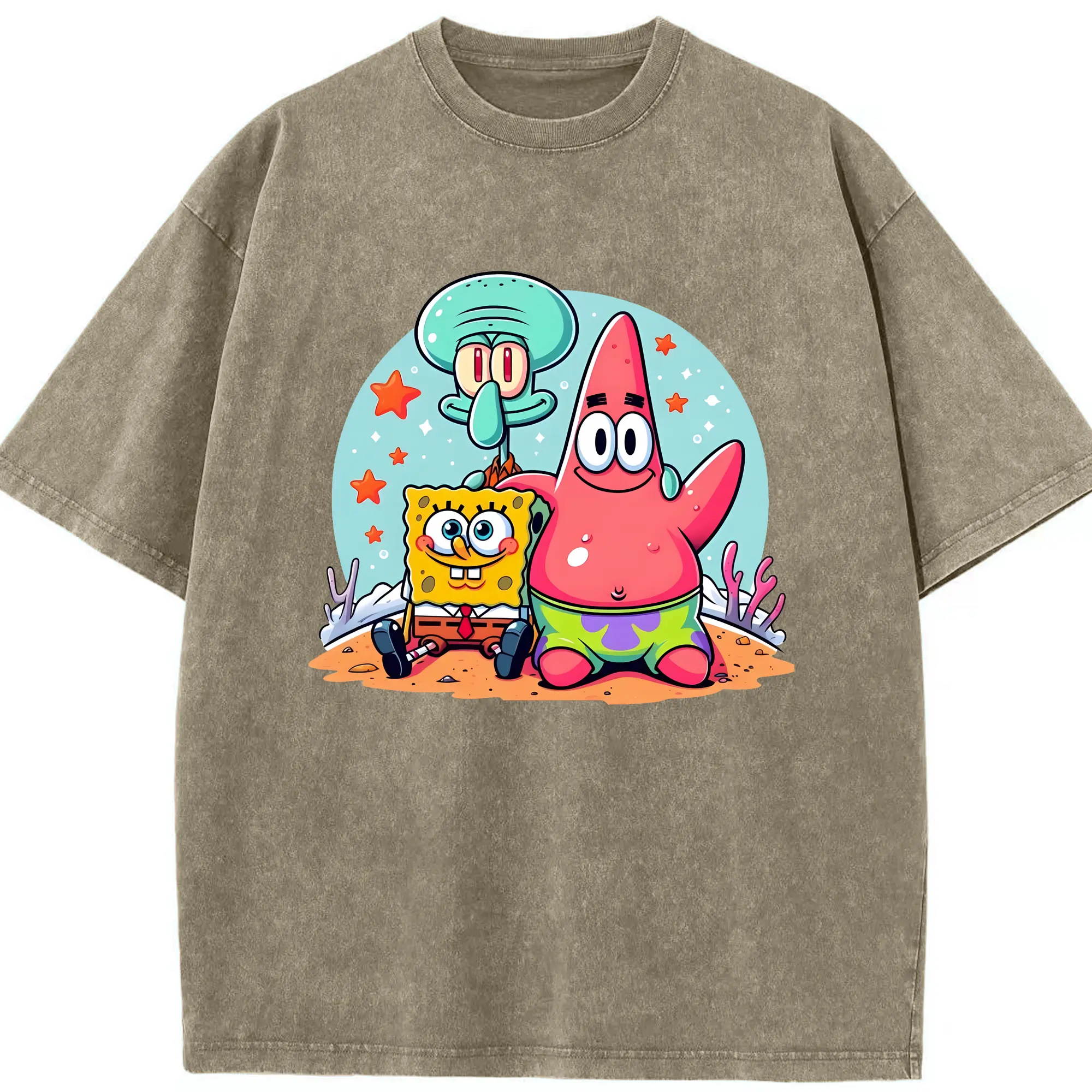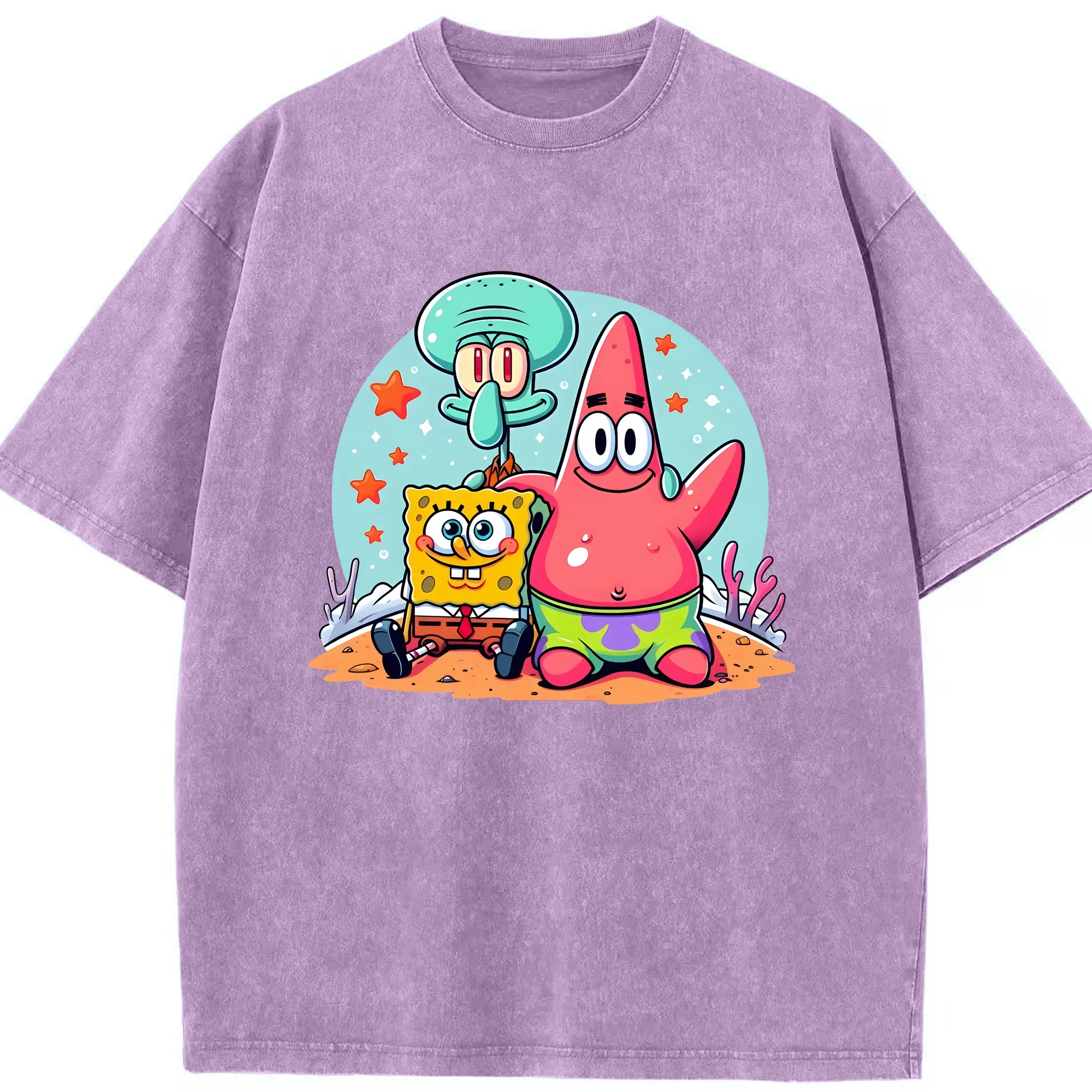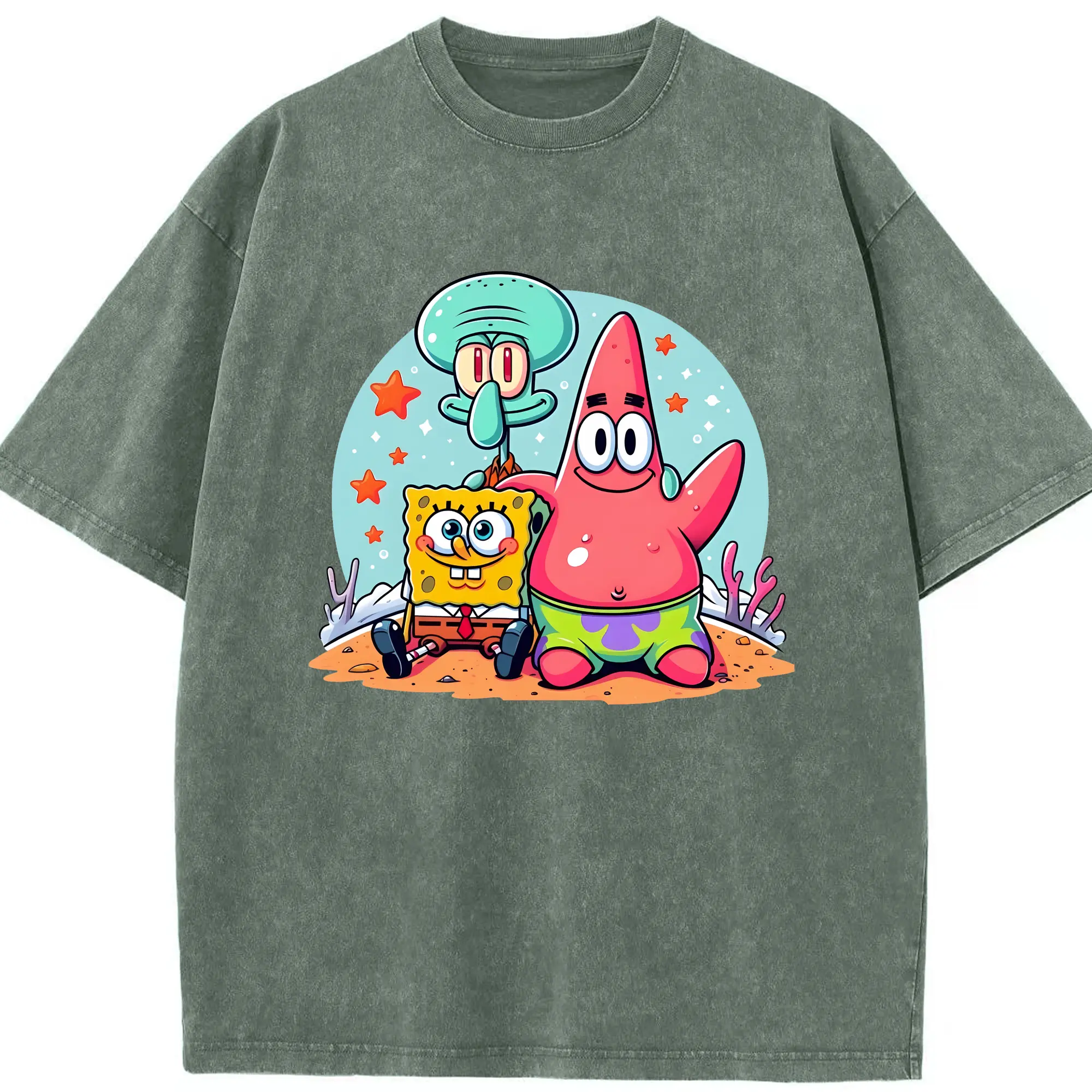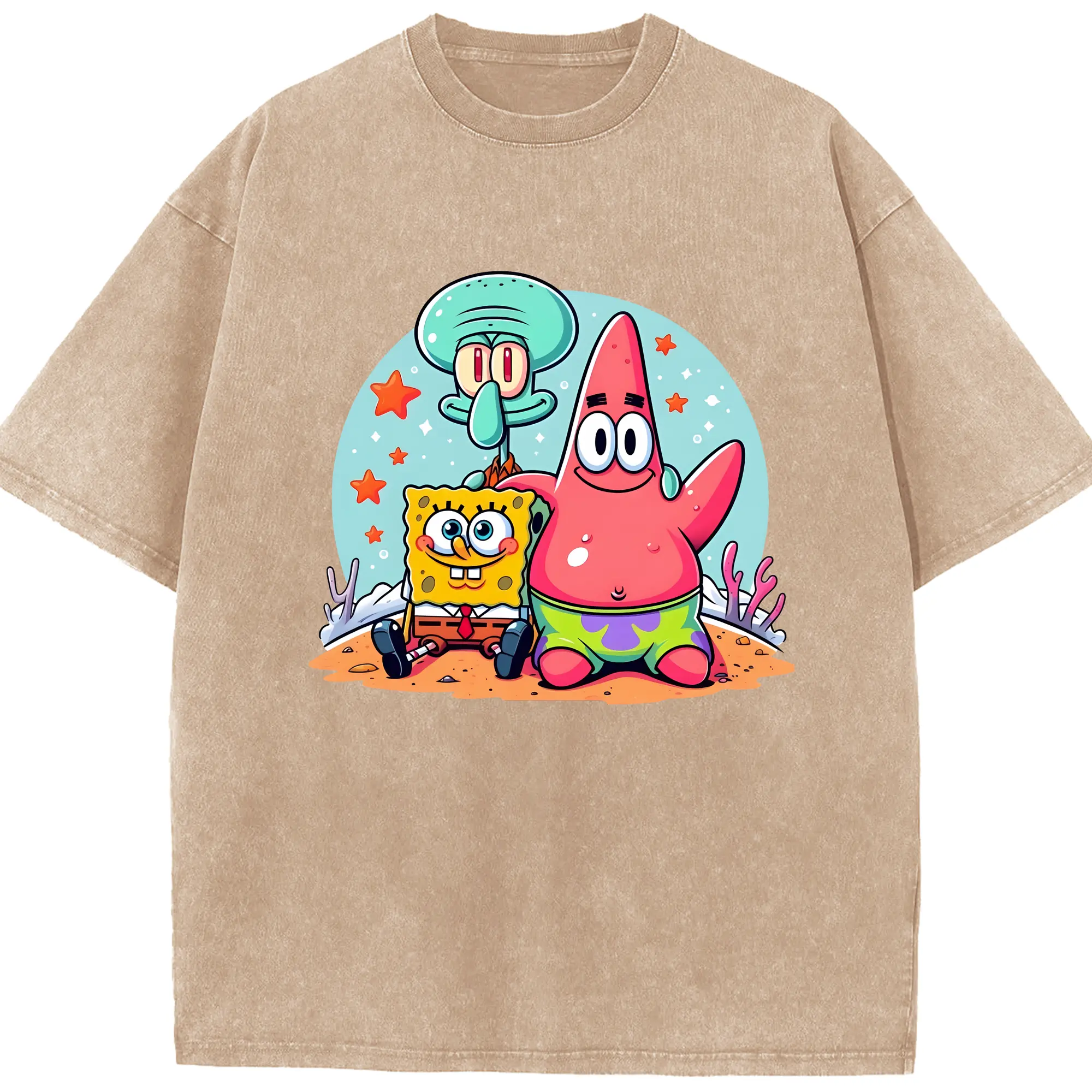 スポンジボブ グッズ パトリック・スター - 綿100% ヴィンテージ風 半袖Tシャツ ・ 背面プリント ・ 柔らか肌触り ・ 通気性 快適 ・ スポーツ カジュアル 外出用