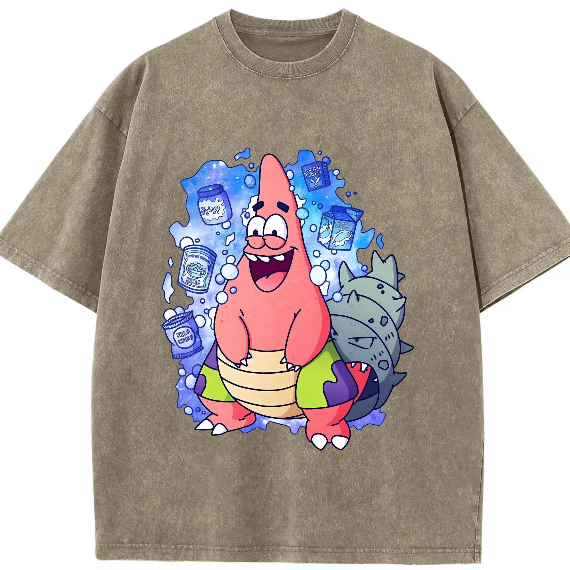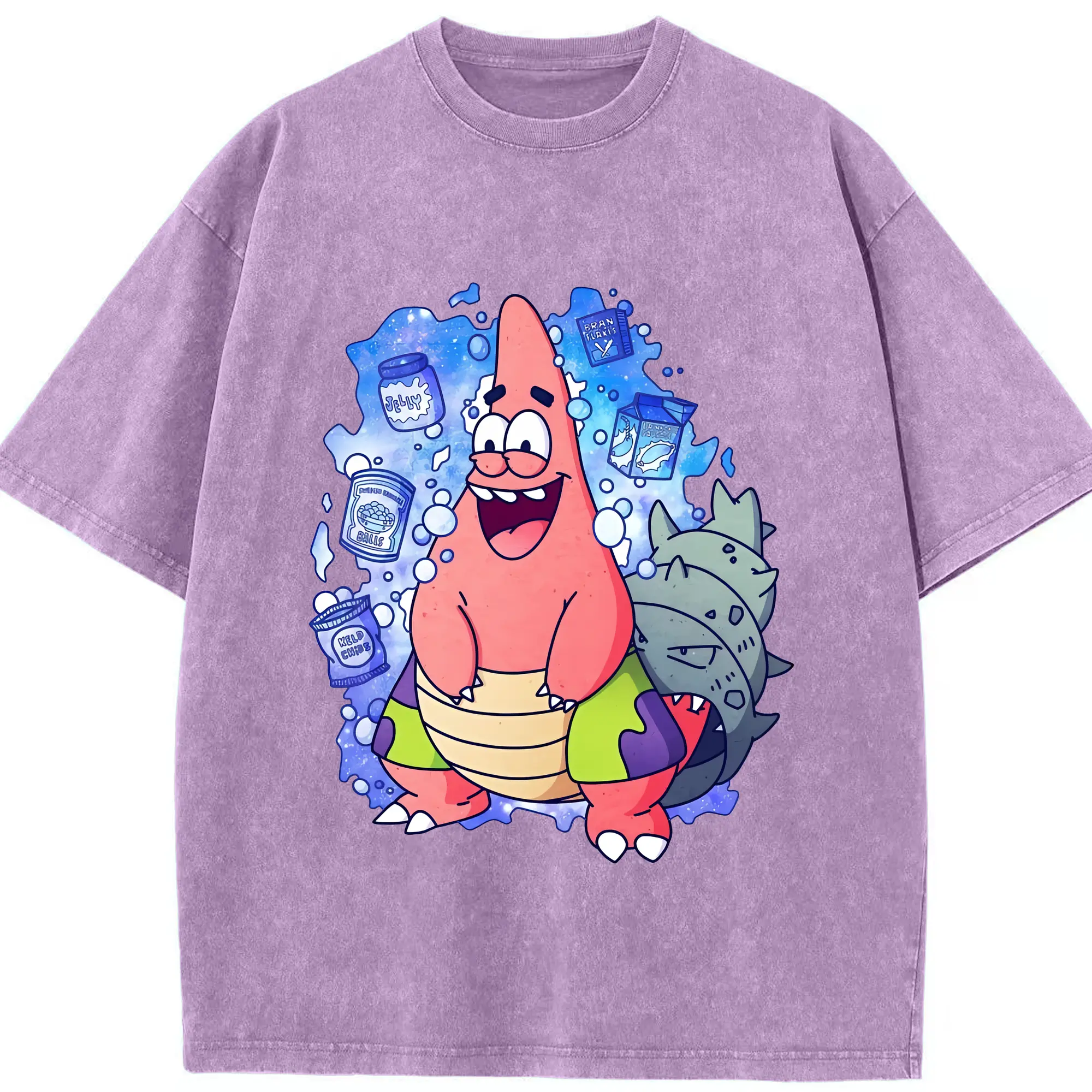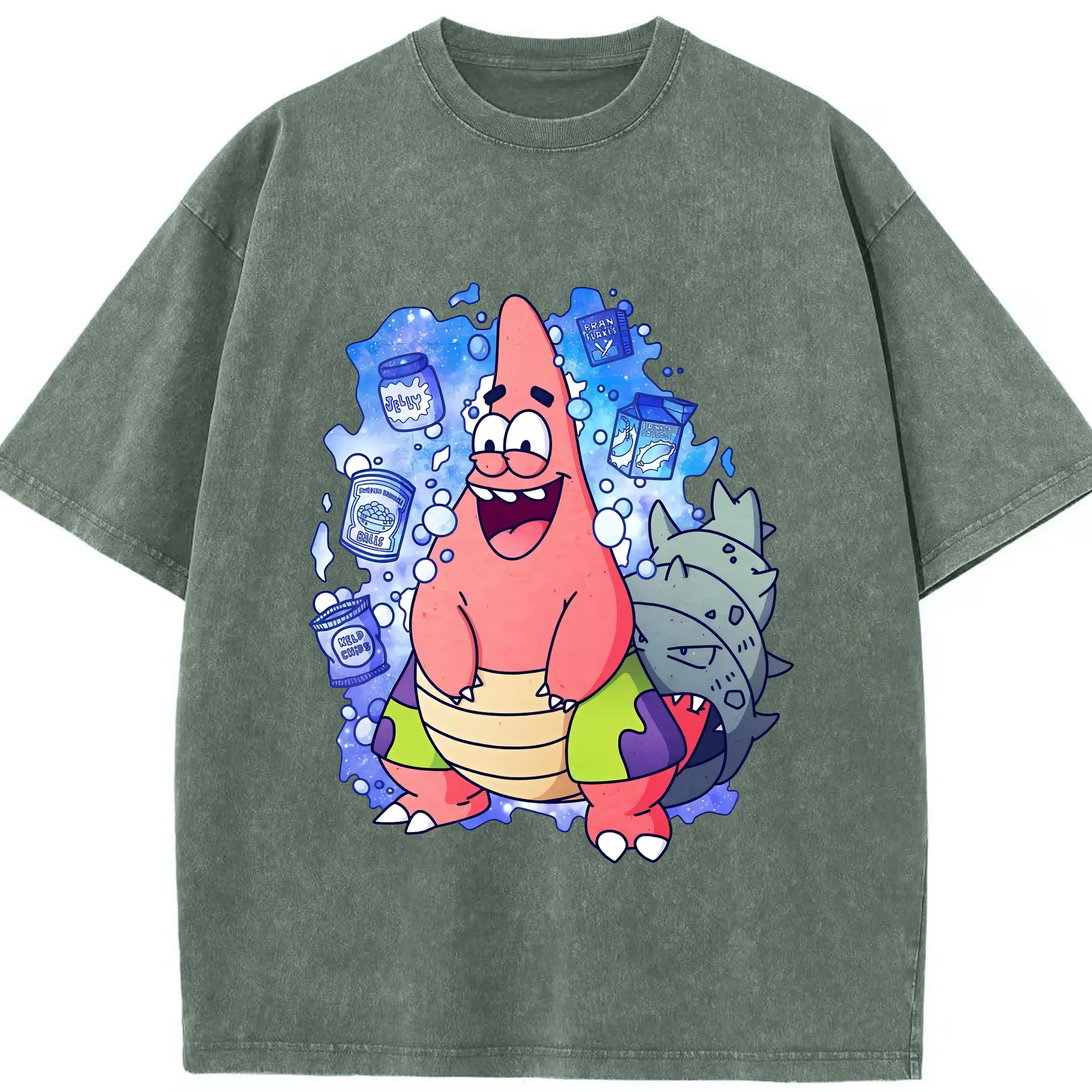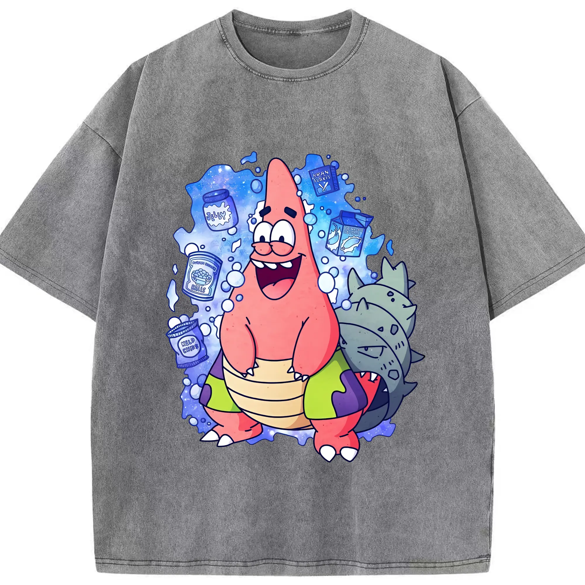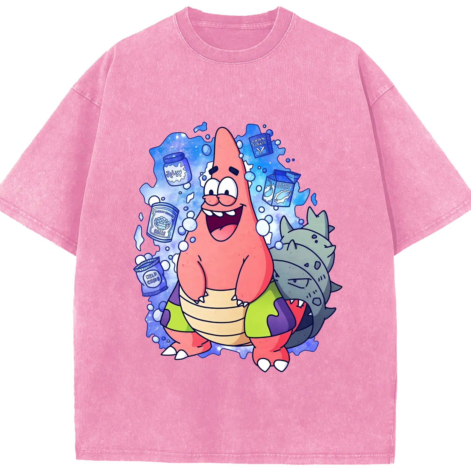 スポンジボブ グッズ パトリック・スター - 綿100% ヴィンテージ風 半袖Tシャツ ・ 背面プリント ・ 柔らか肌触り ・ 通気性 快適 ・ スポーツ カジュアル 外出用