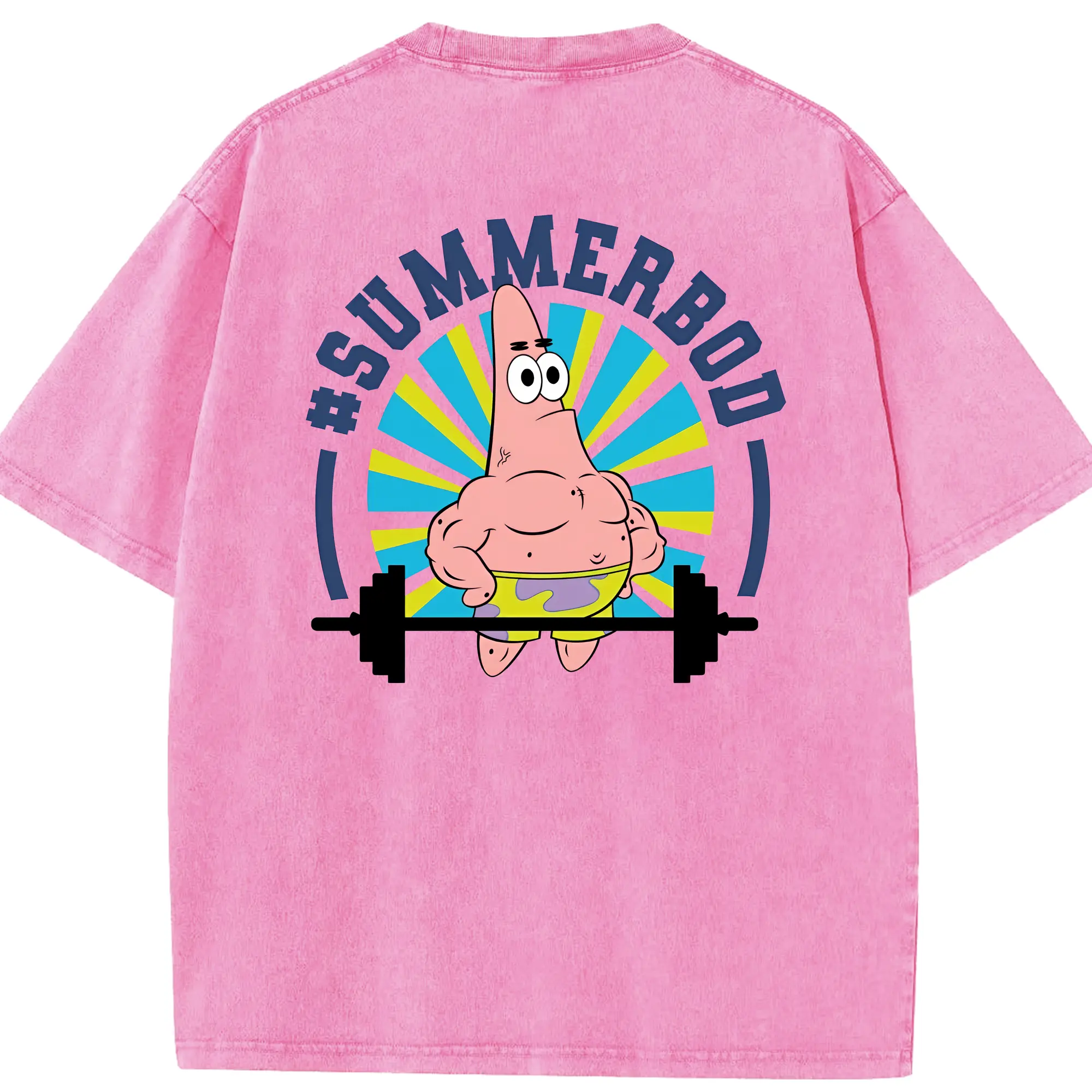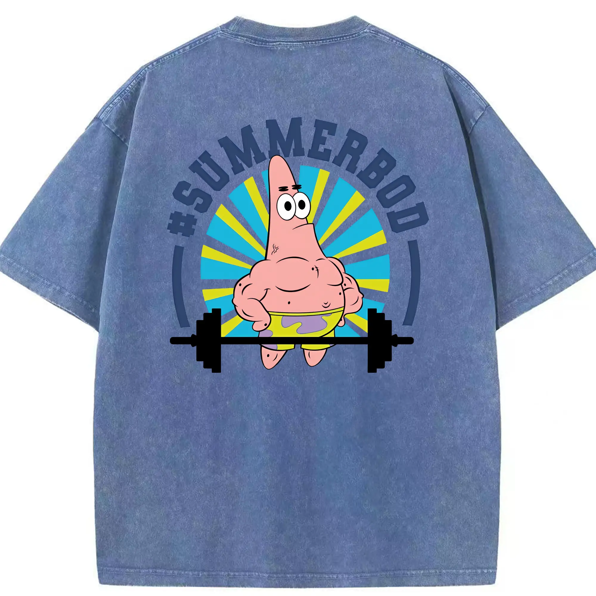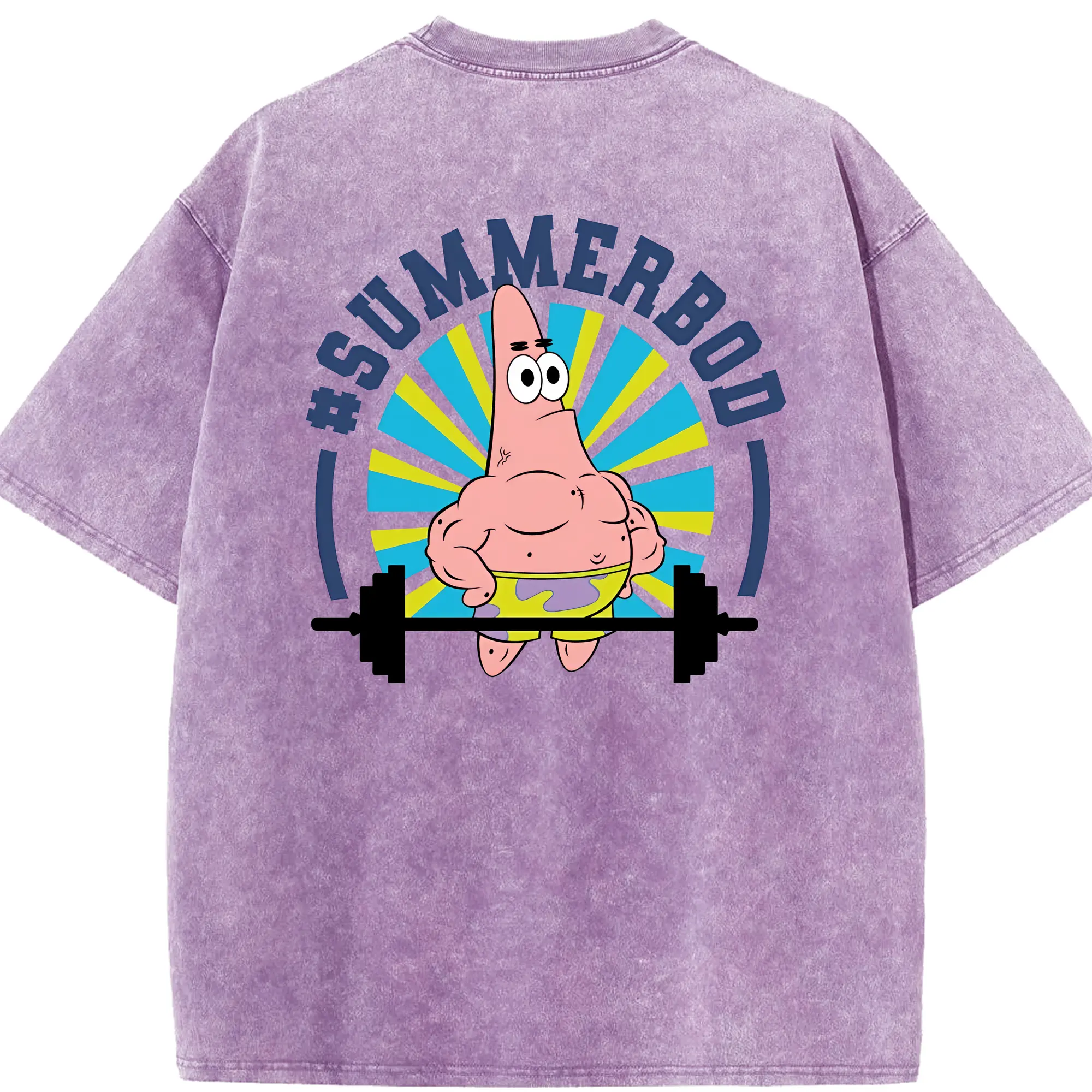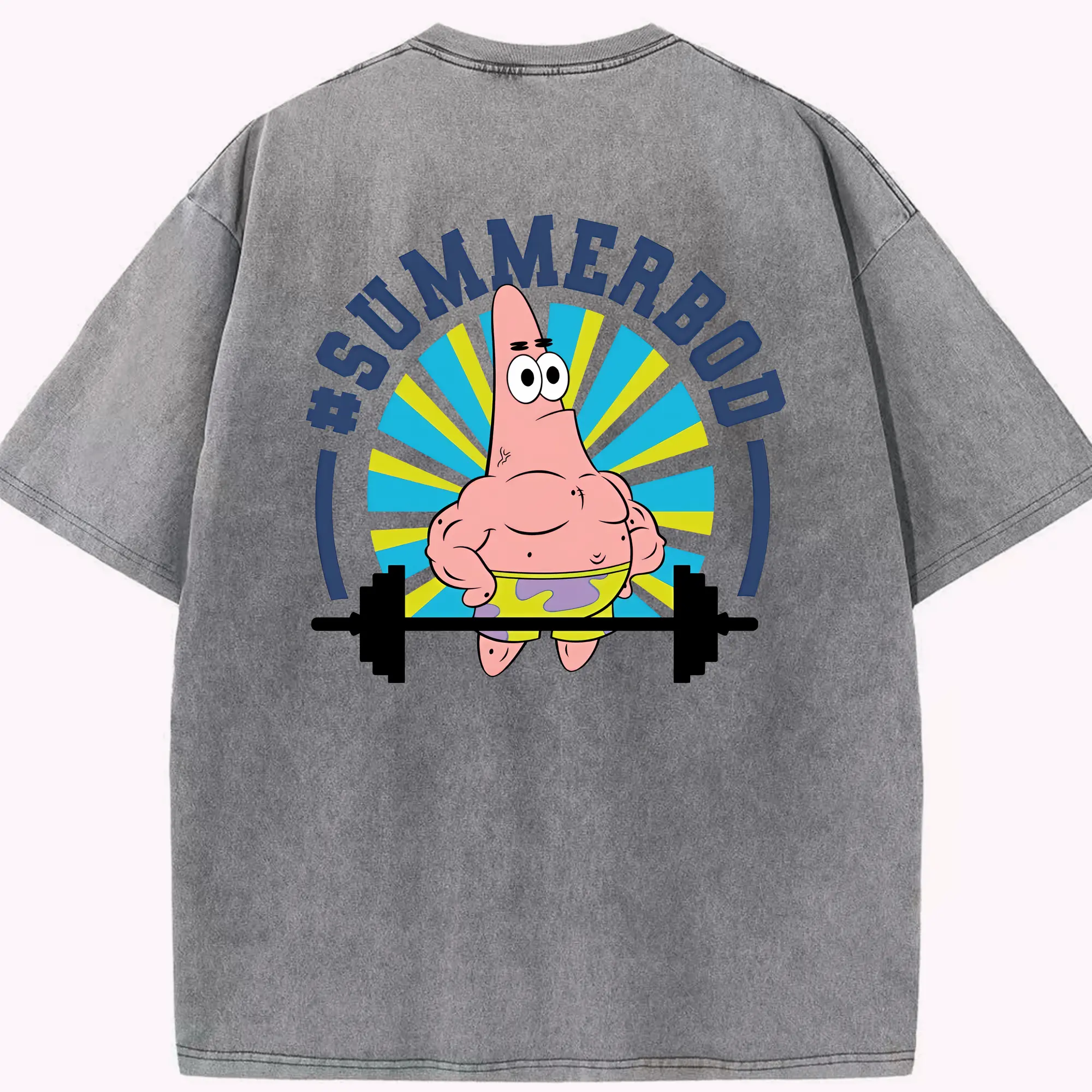 スポンジボブ グッズ パトリック・スター - 綿100% ヴィンテージ風 半袖Tシャツ ・ フロントプリント ・ 柔らか肌触り ・ 通気性 快適 ・ スポーツ カジュアル 外出用