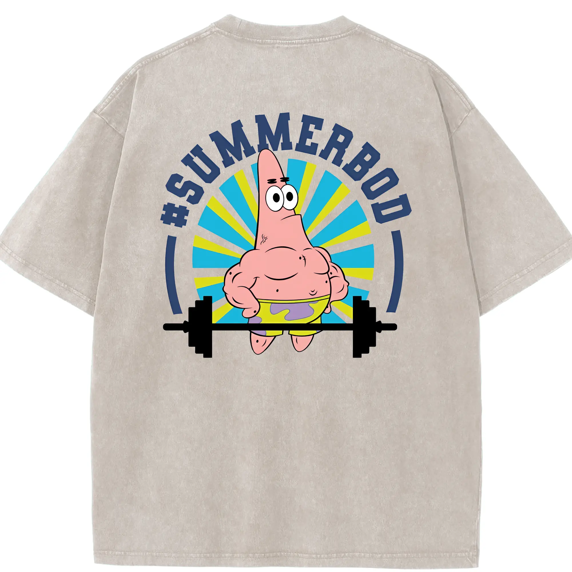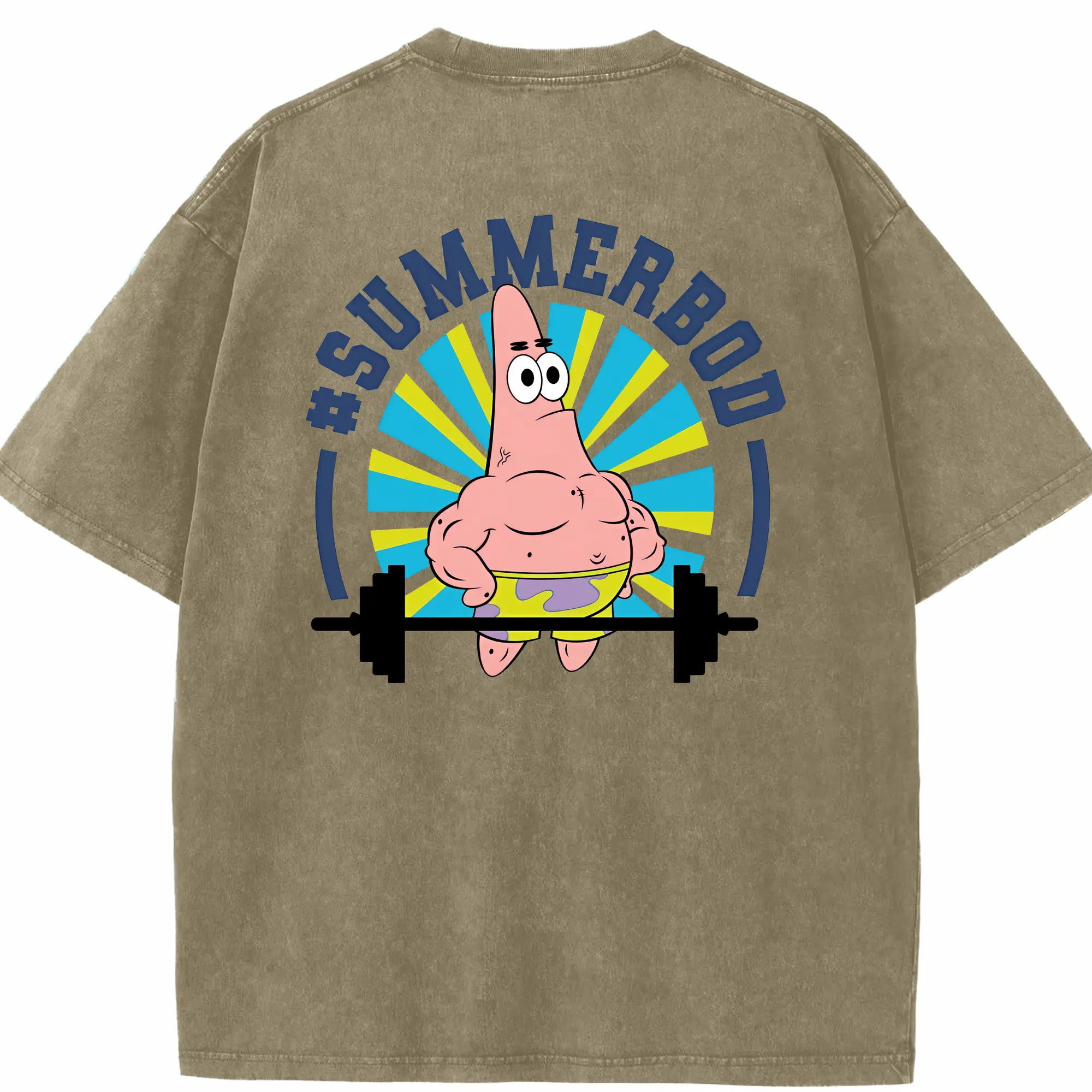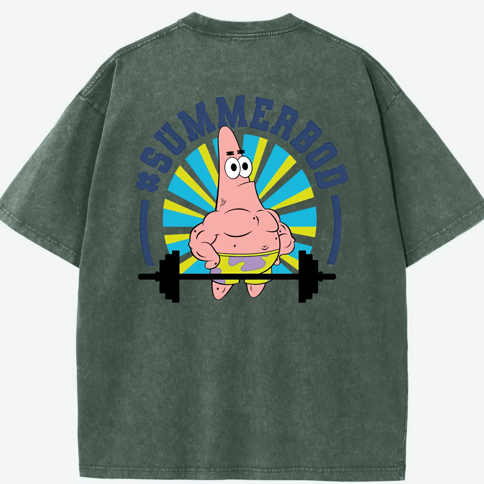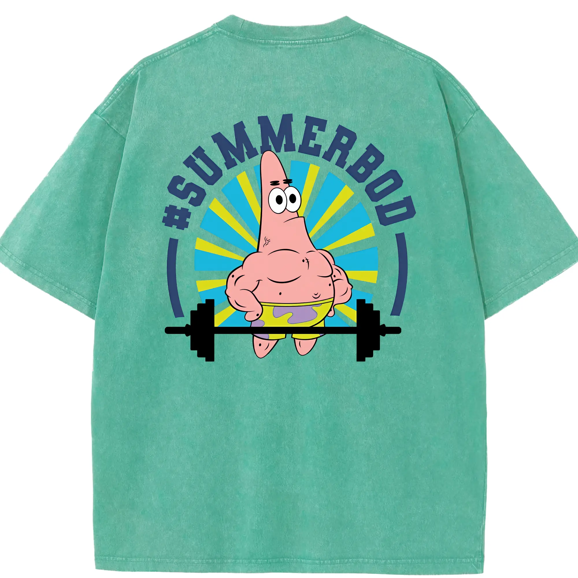 スポンジボブ グッズ パトリック・スター - 綿100% ヴィンテージ風 半袖Tシャツ ・ フロントプリント ・ 柔らか肌触り ・ 通気性 快適 ・ スポーツ カジュアル 外出用