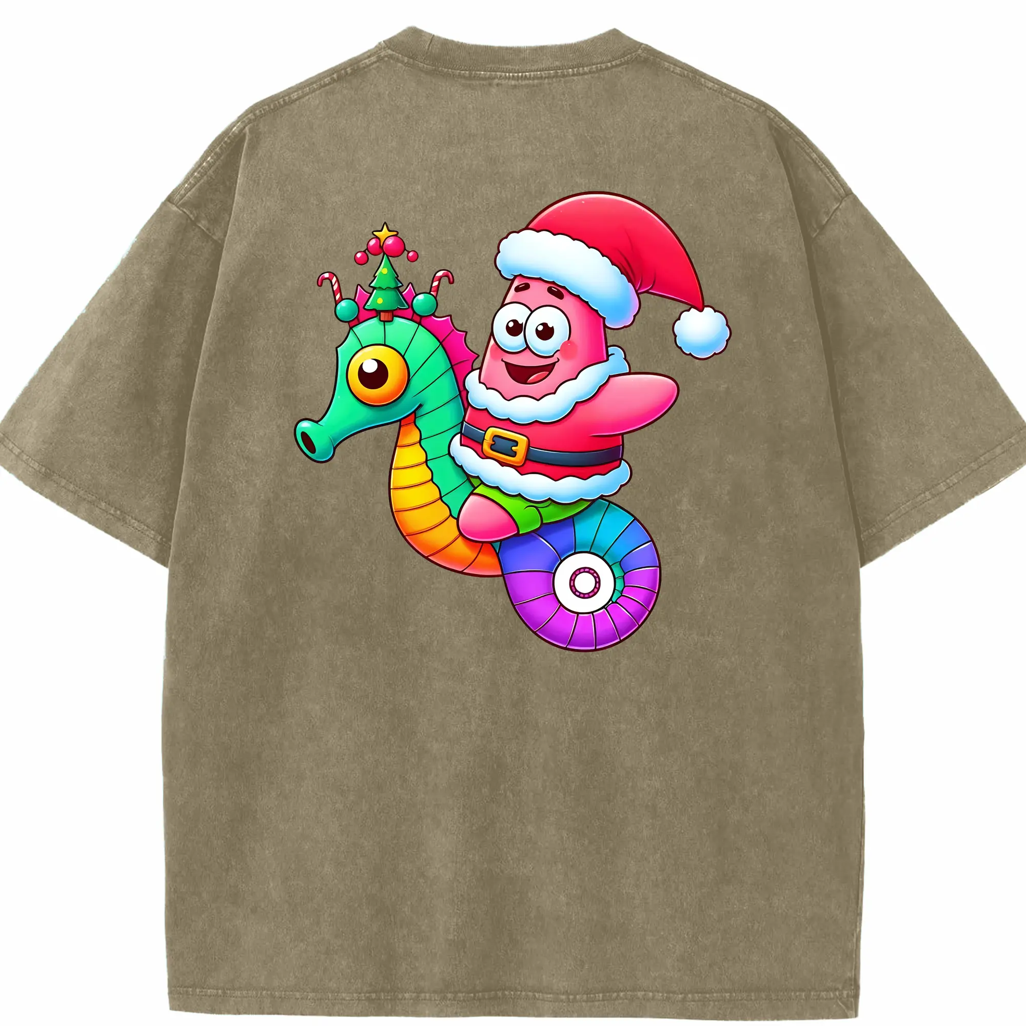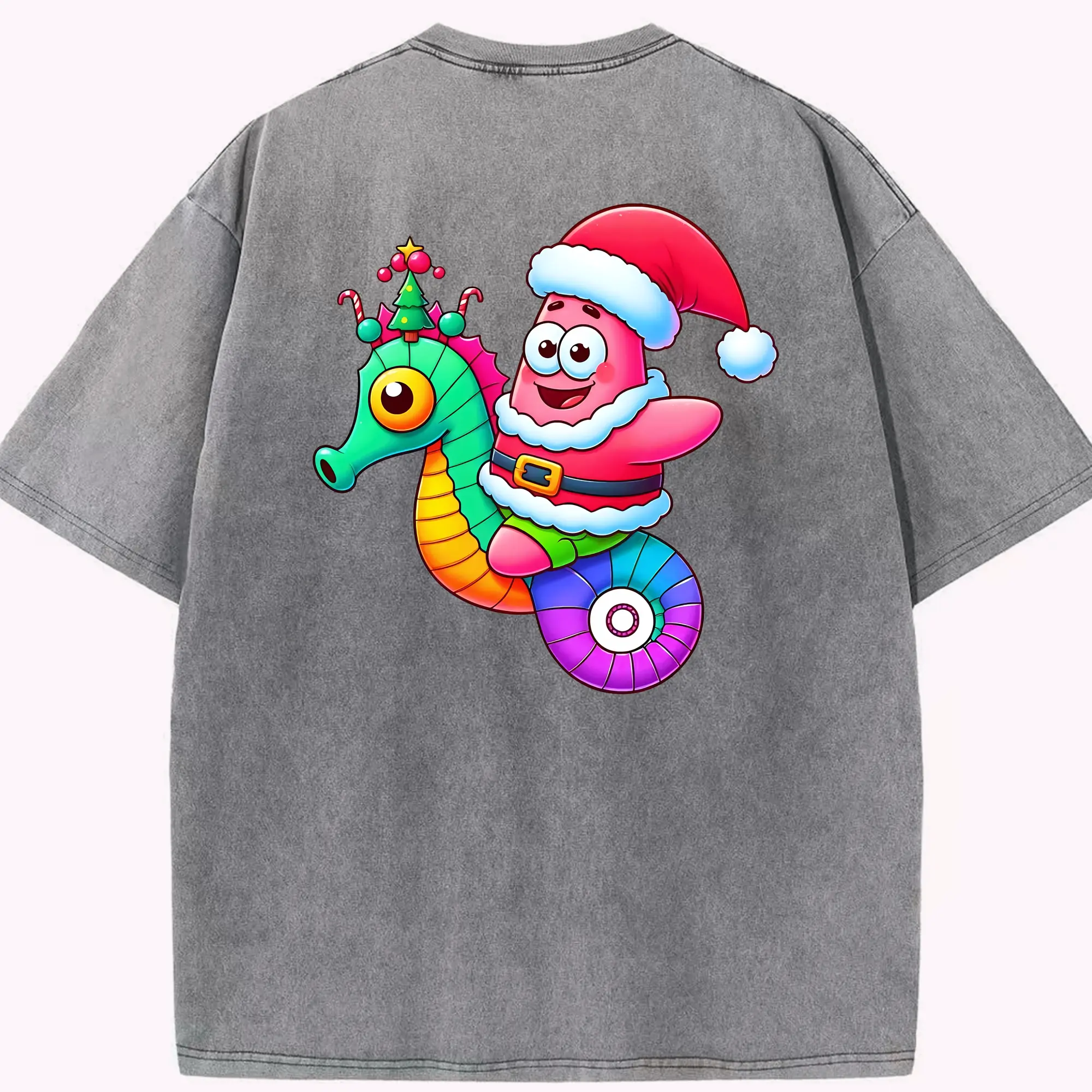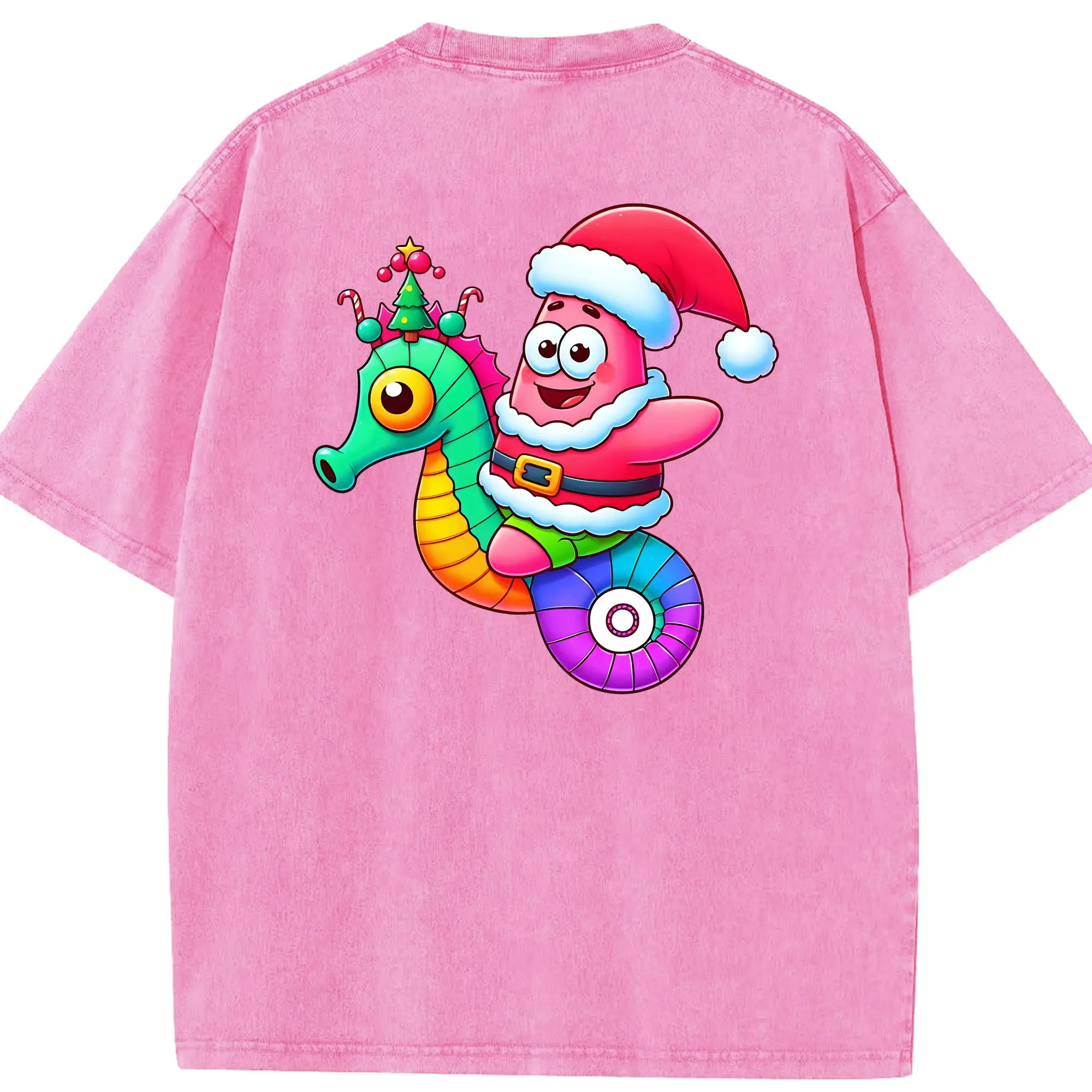 スポンジボブ グッズ パトリック・スター - 綿100% ヴィンテージ風 半袖Tシャツ ・ フロントプリント ・ 柔らか肌触り ・ 通気性 快適 ・ スポーツ カジュアル 外出用
