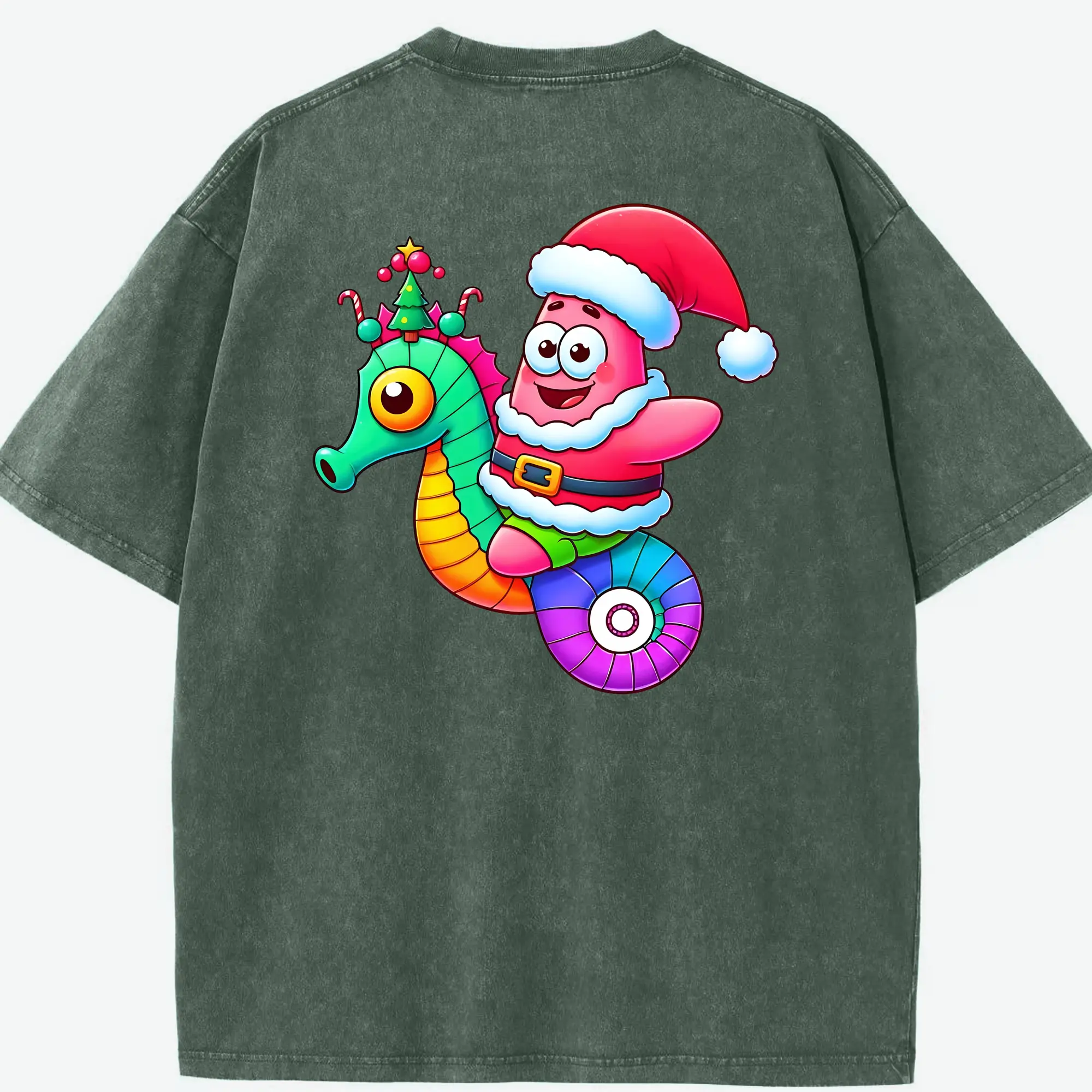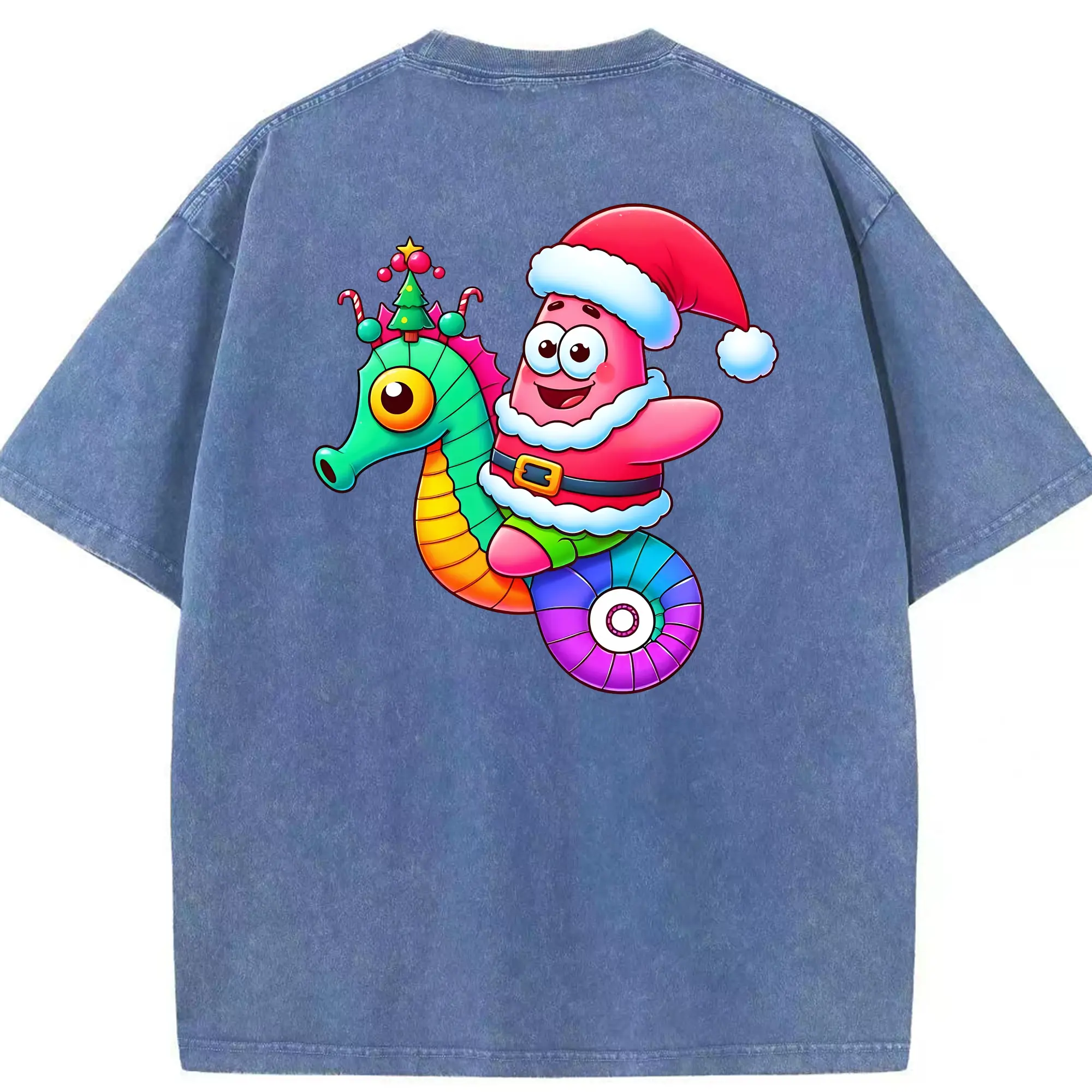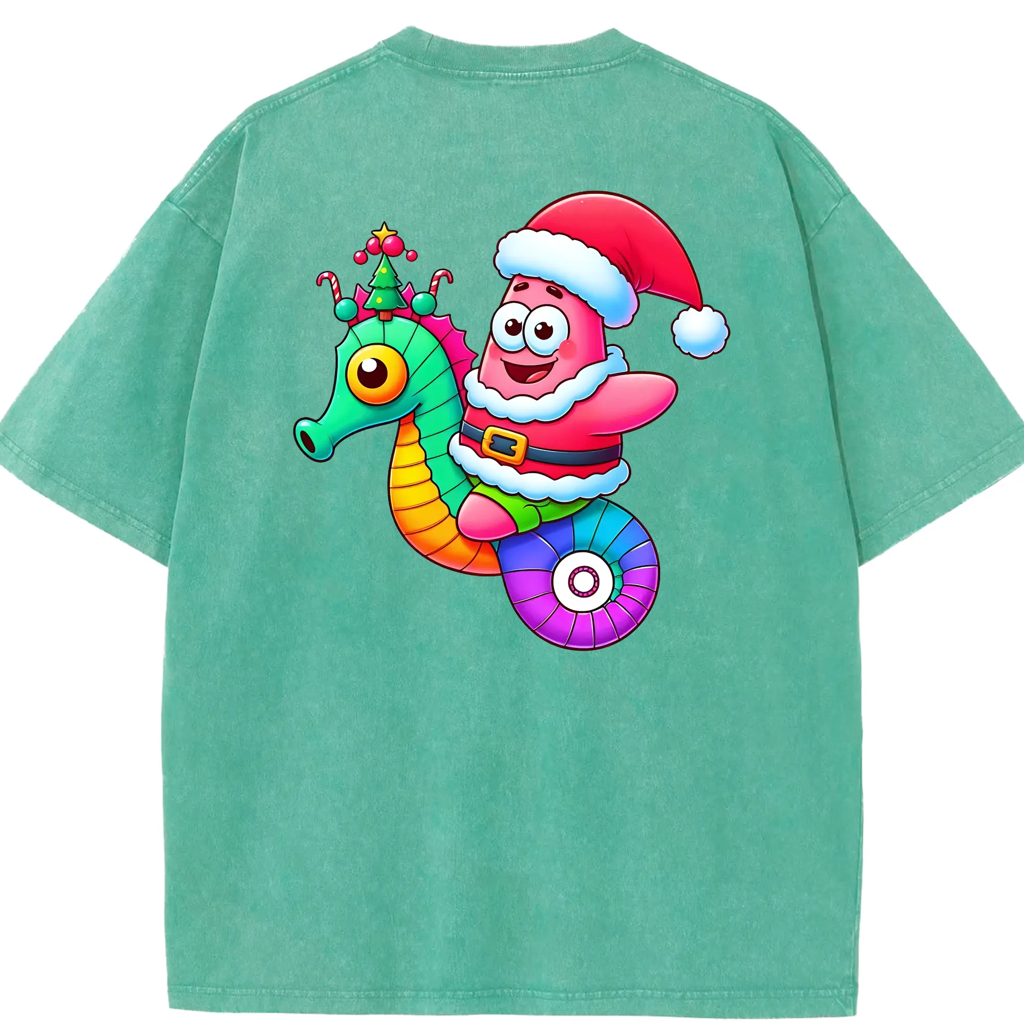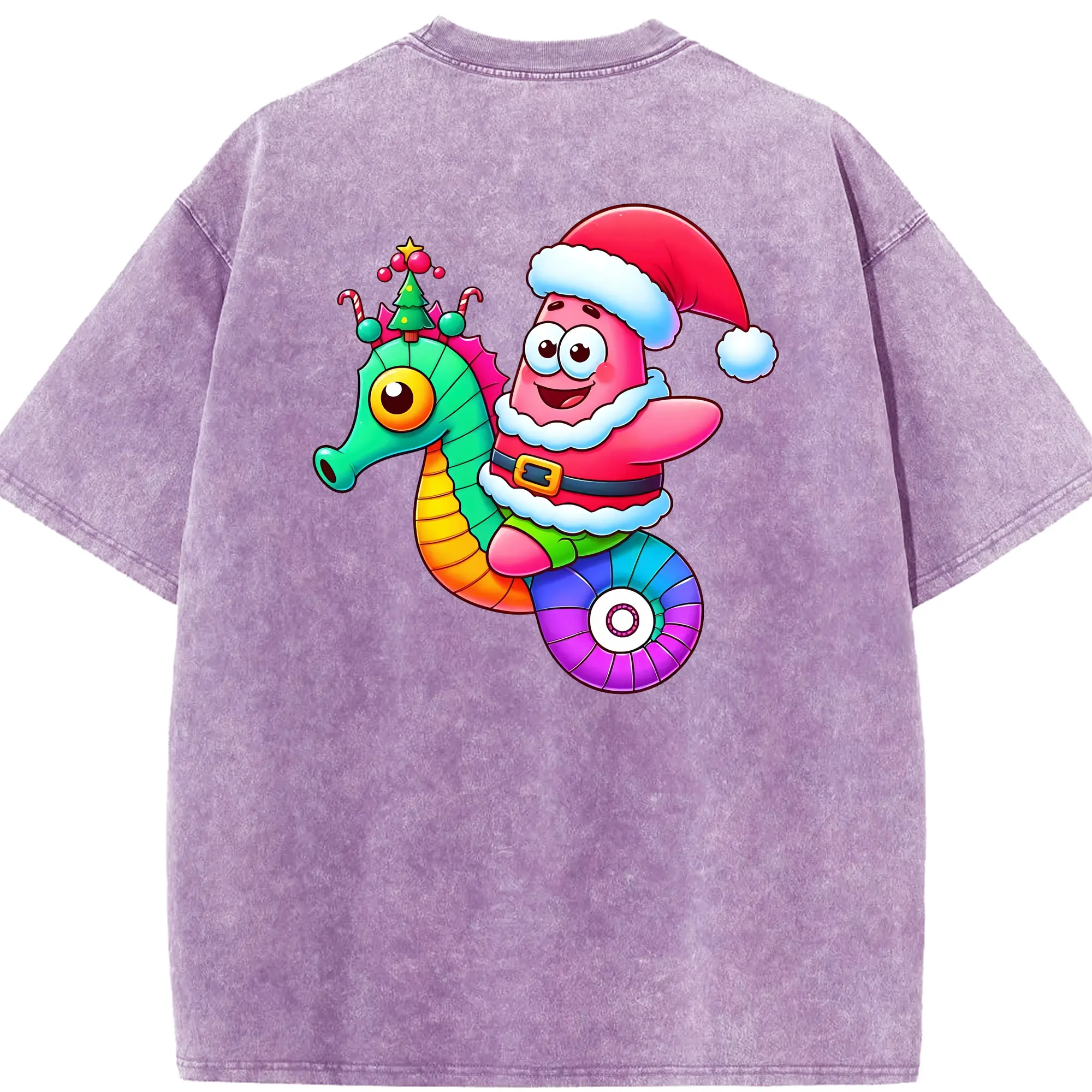スポンジボブ グッズ パトリック・スター - 綿100% ヴィンテージ風 半袖Tシャツ ・ フロントプリント ・ 柔らか肌触り ・ 通気性 快適 ・ スポーツ カジュアル 外出用