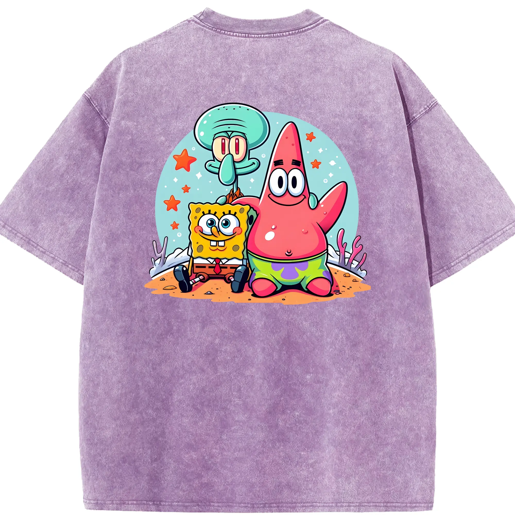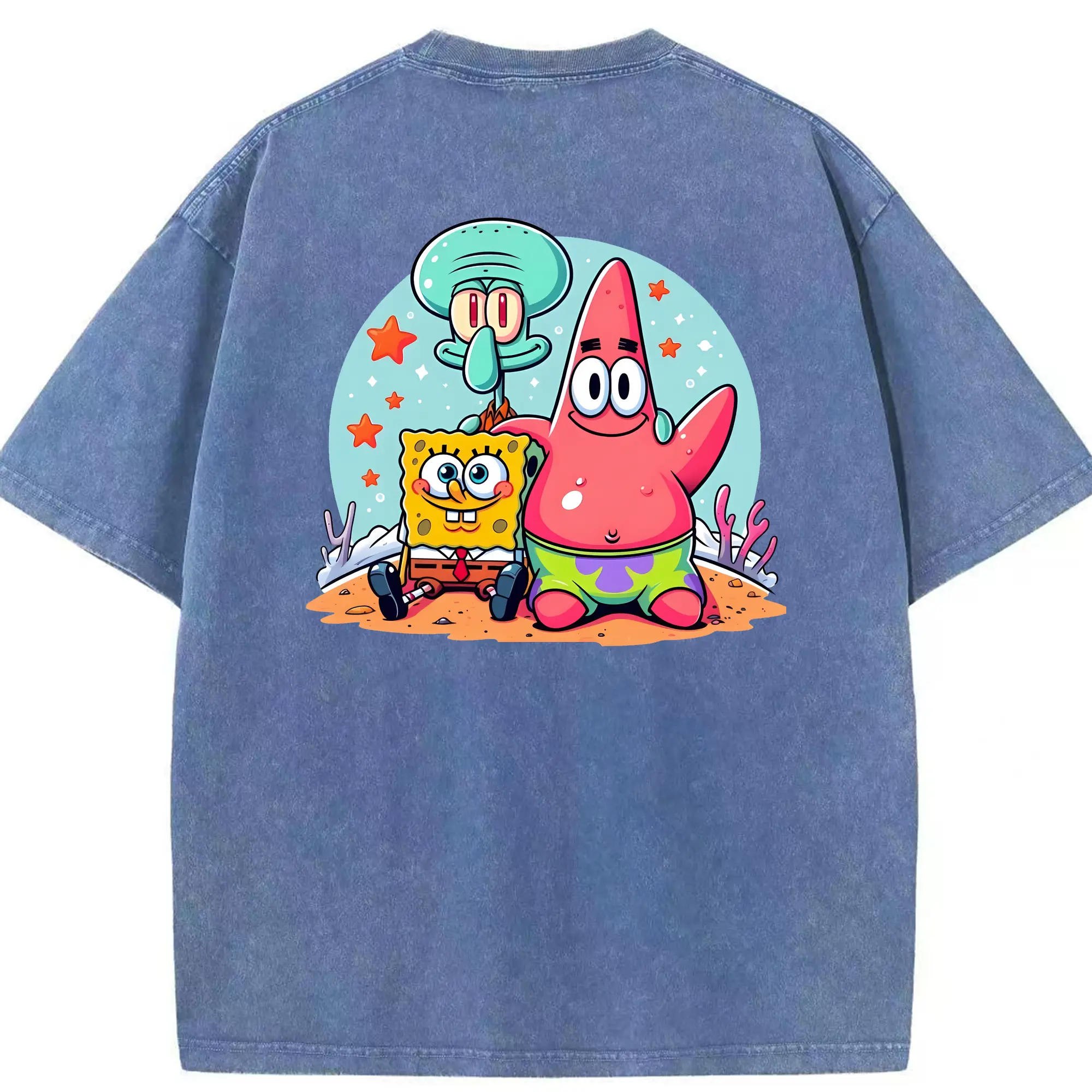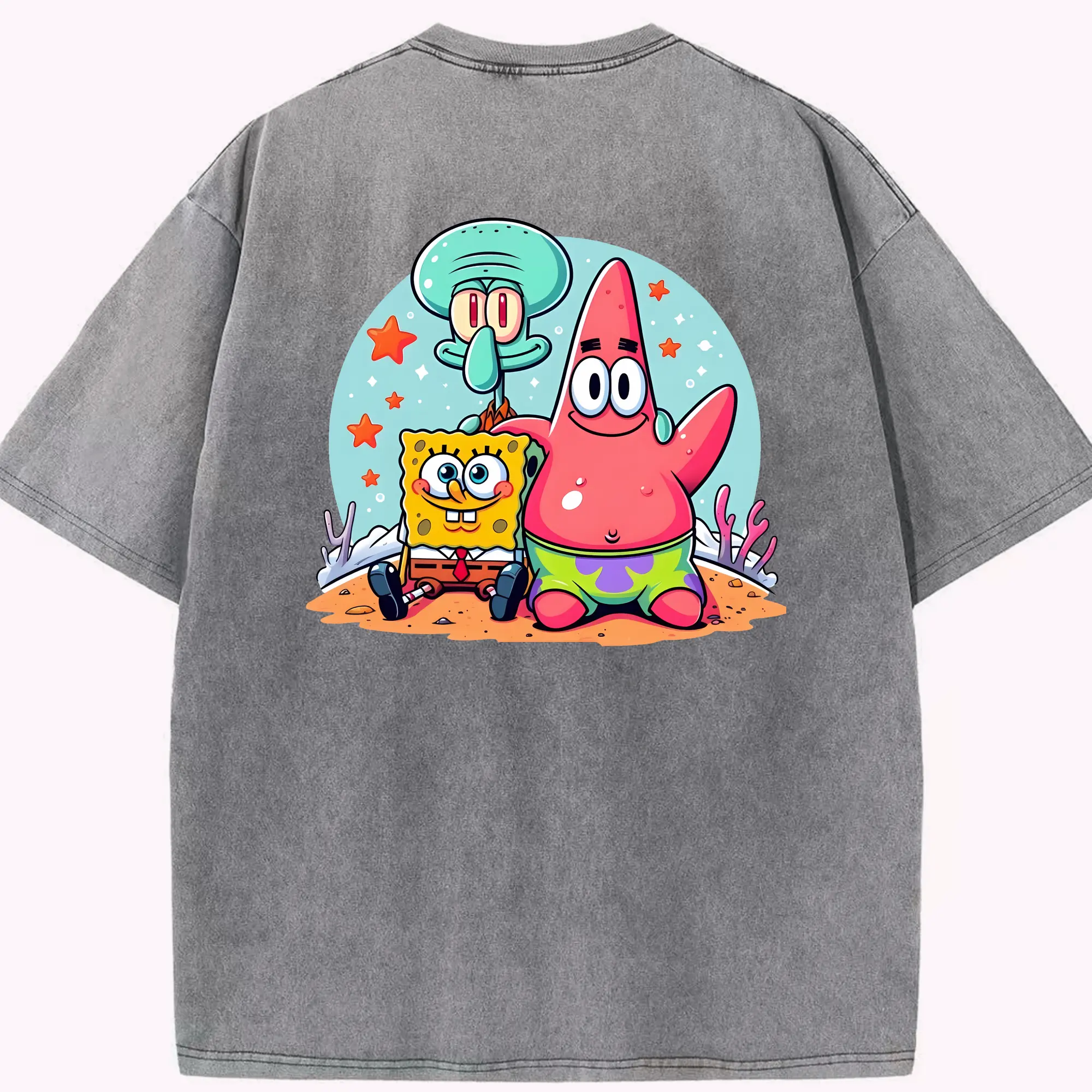 スポンジボブ グッズ パトリック・スター - 綿100% ヴィンテージ風 半袖Tシャツ ・ フロントプリント ・ 柔らか肌触り ・ 通気性 快適 ・ スポーツ カジュアル 外出用