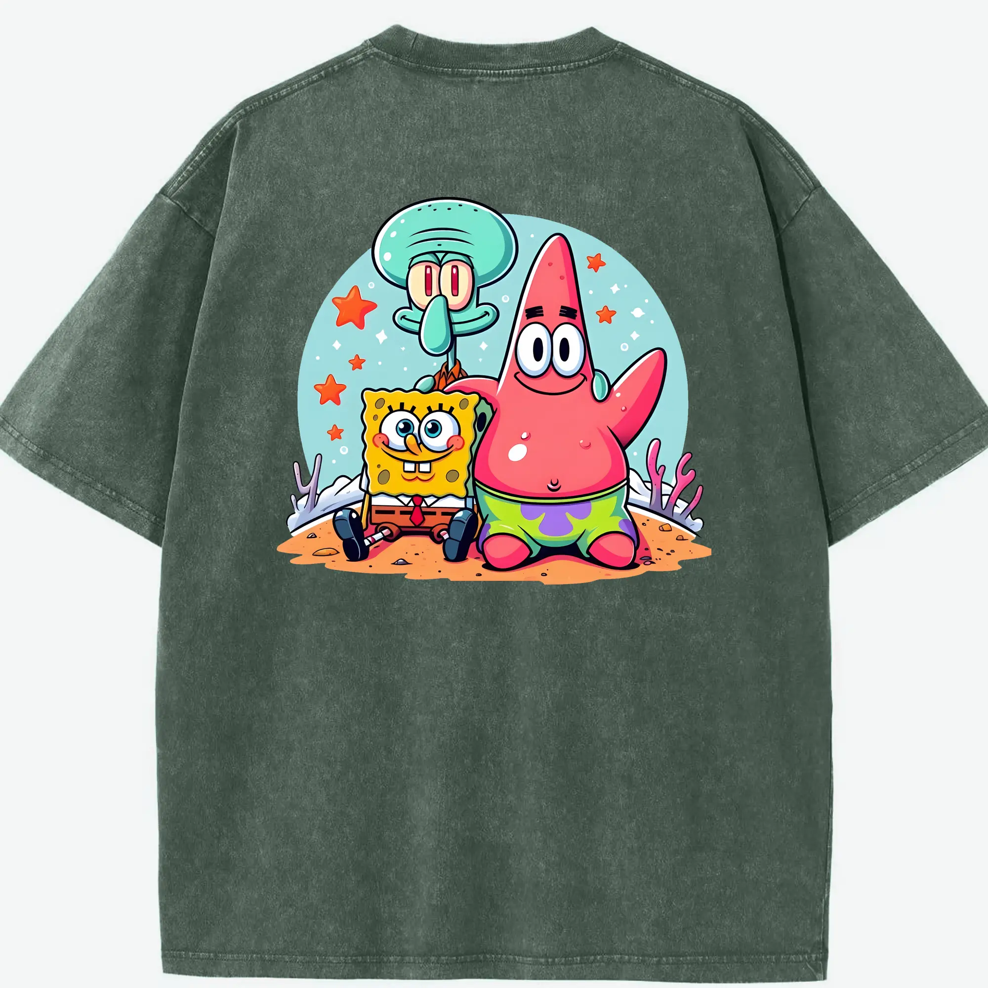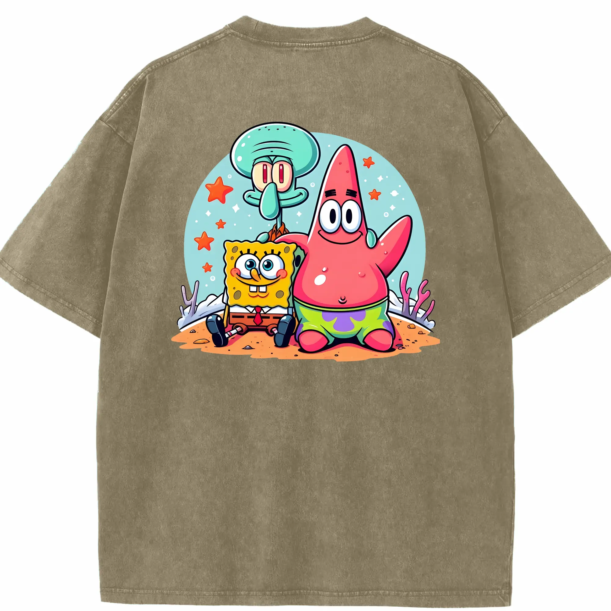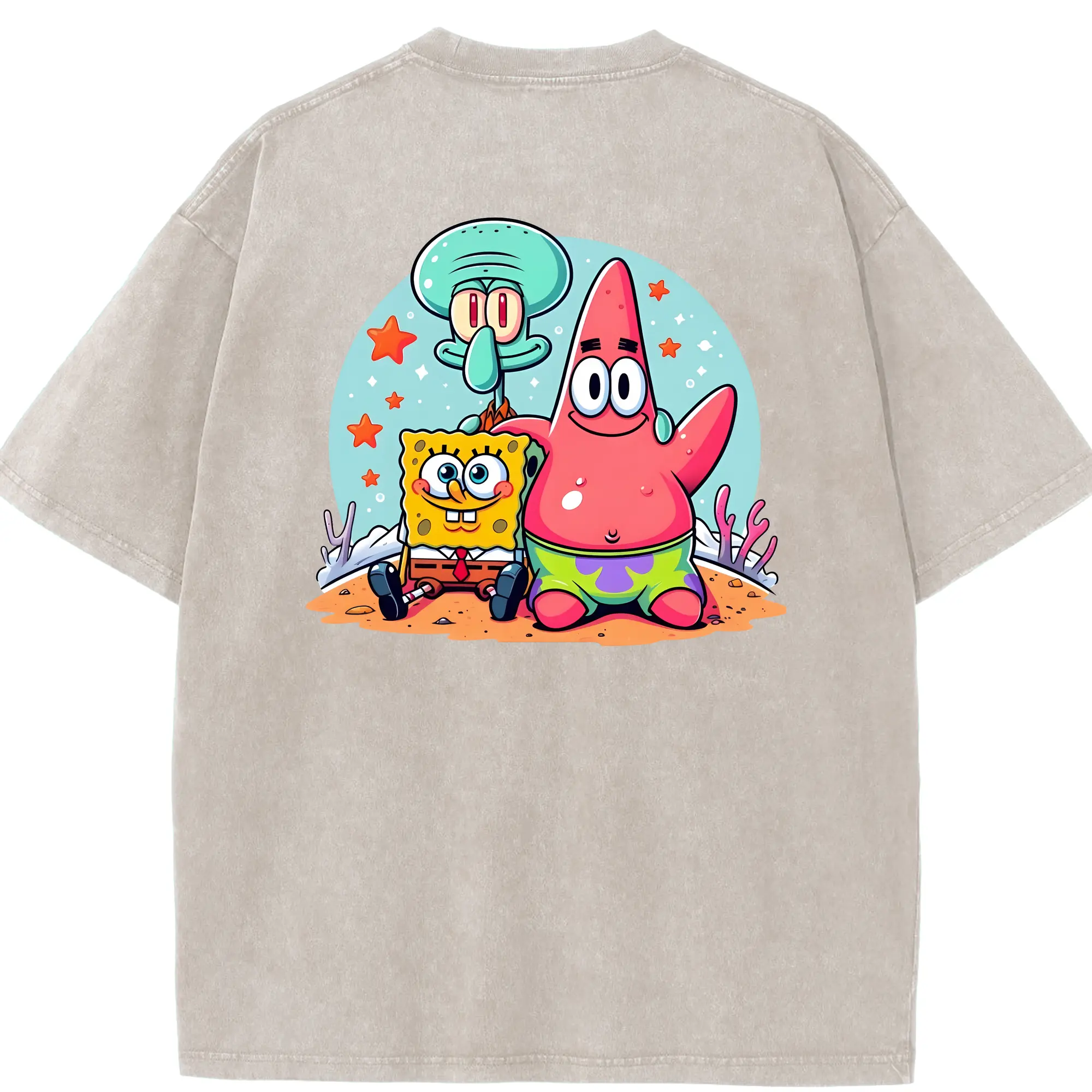 スポンジボブ グッズ パトリック・スター - 綿100% ヴィンテージ風 半袖Tシャツ ・ フロントプリント ・ 柔らか肌触り ・ 通気性 快適 ・ スポーツ カジュアル 外出用