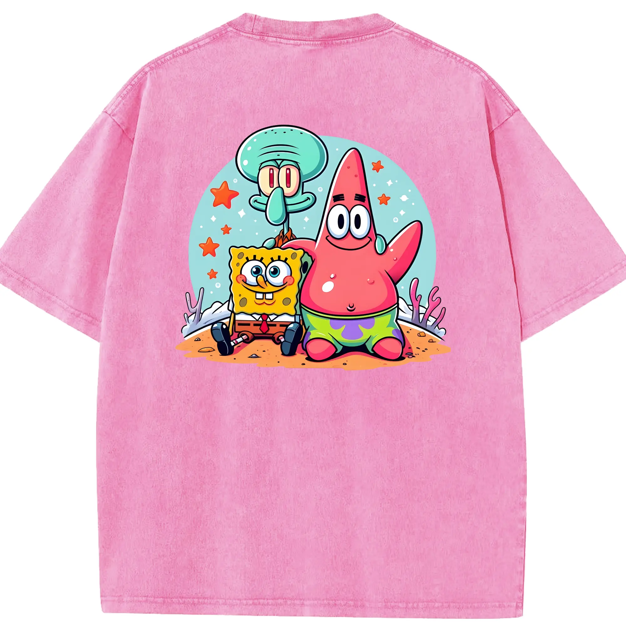 スポンジボブ グッズ パトリック・スター - 綿100% 半袖Tシャツ ・ バックプリント ・ 快適 通気性 ・ 日常使い 散歩 スポーツ用