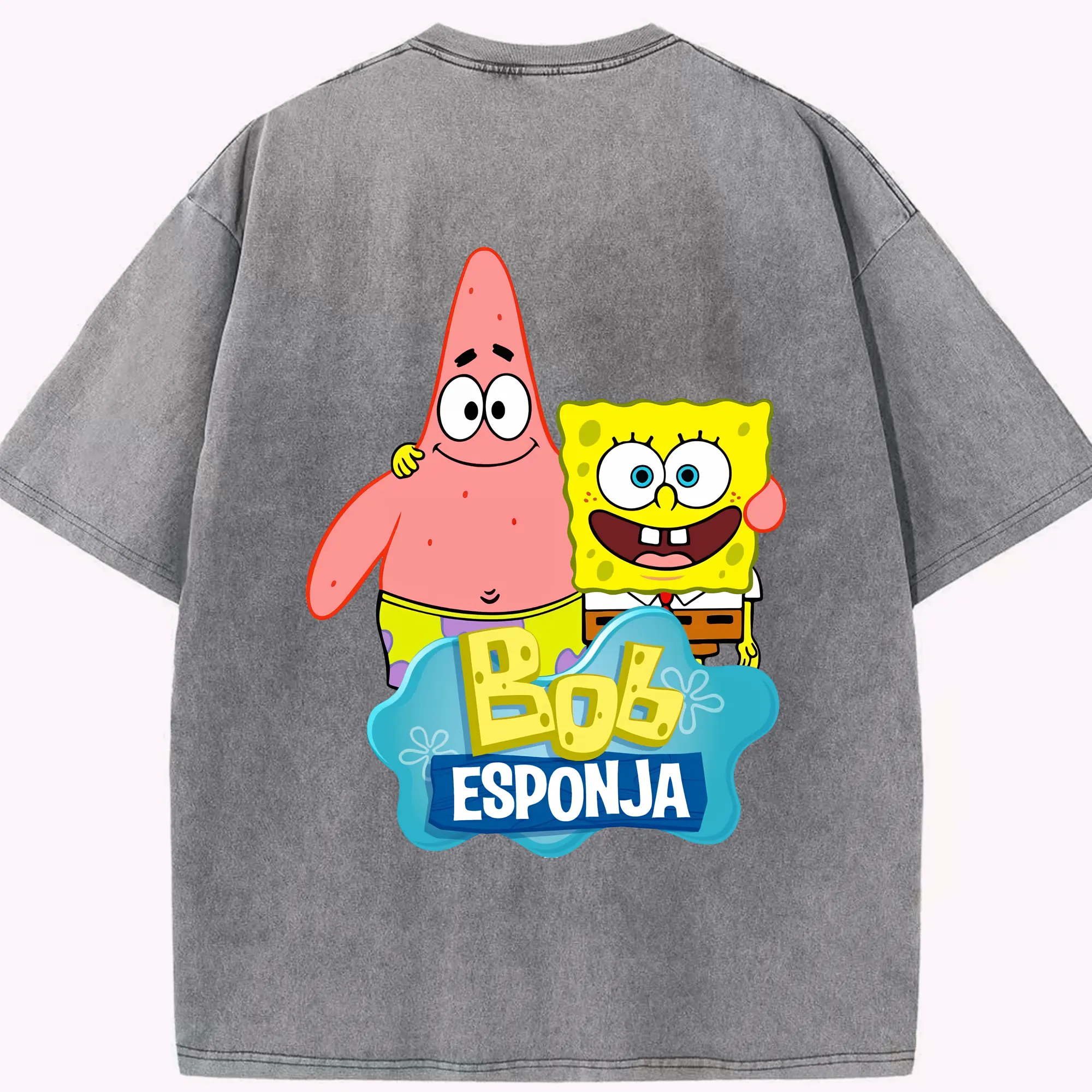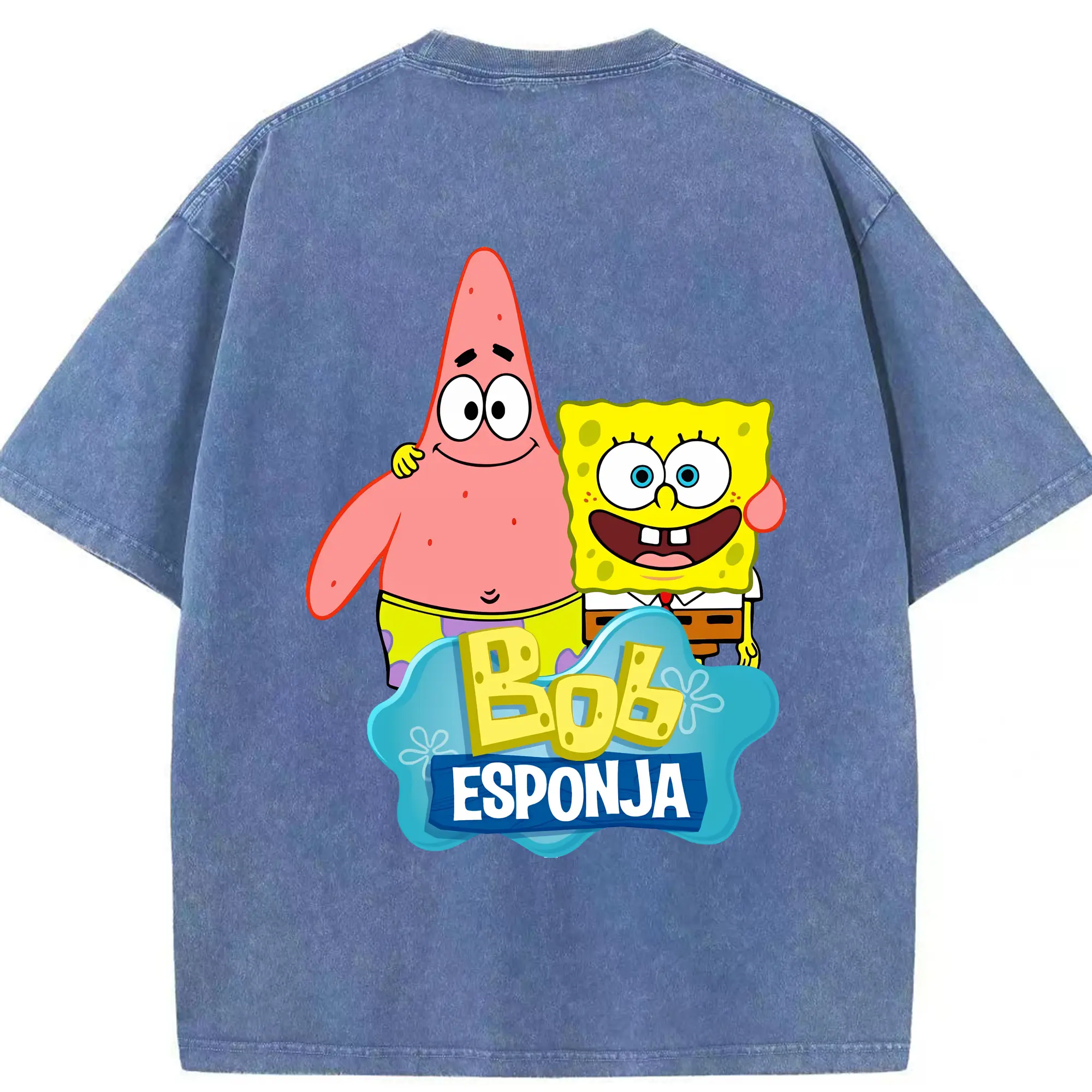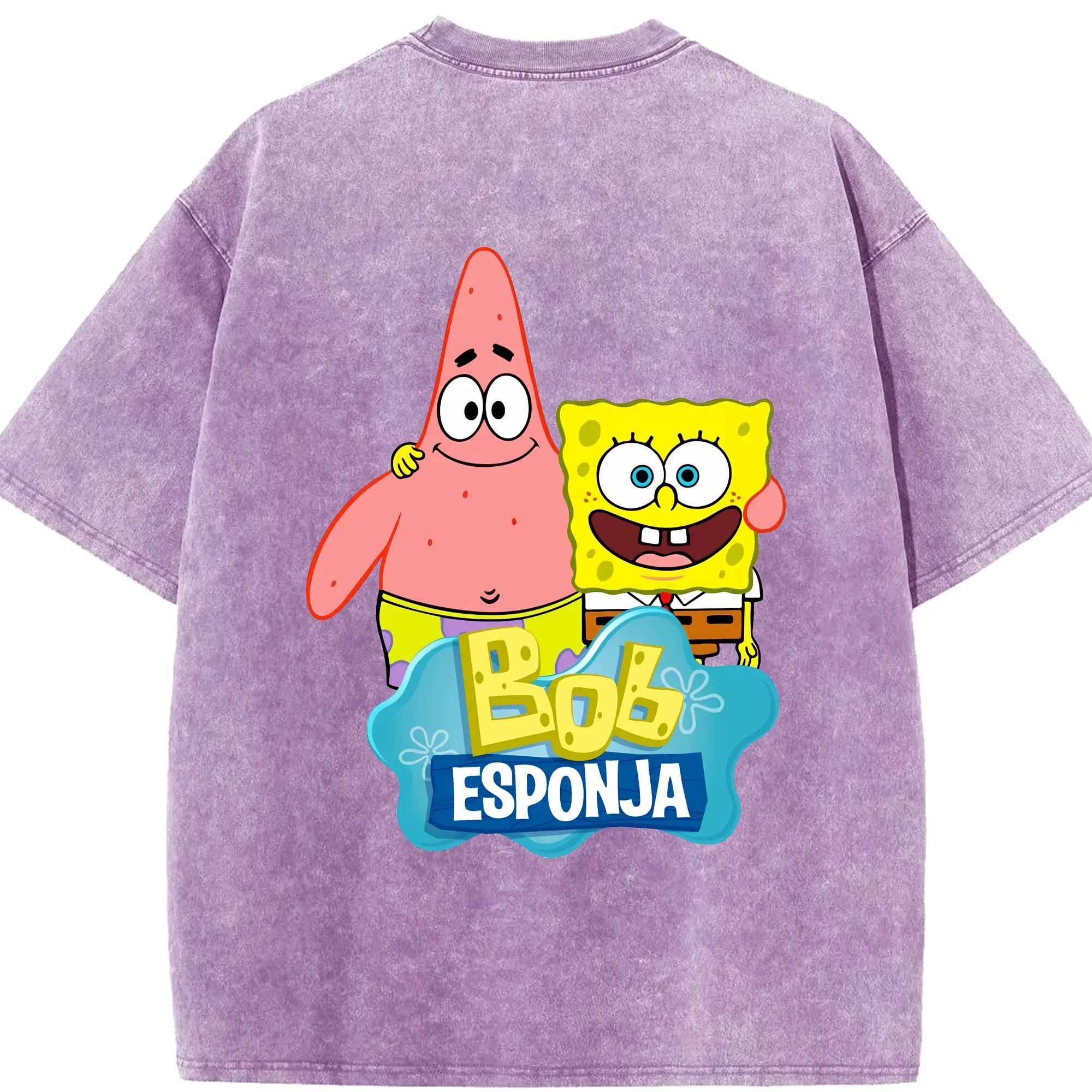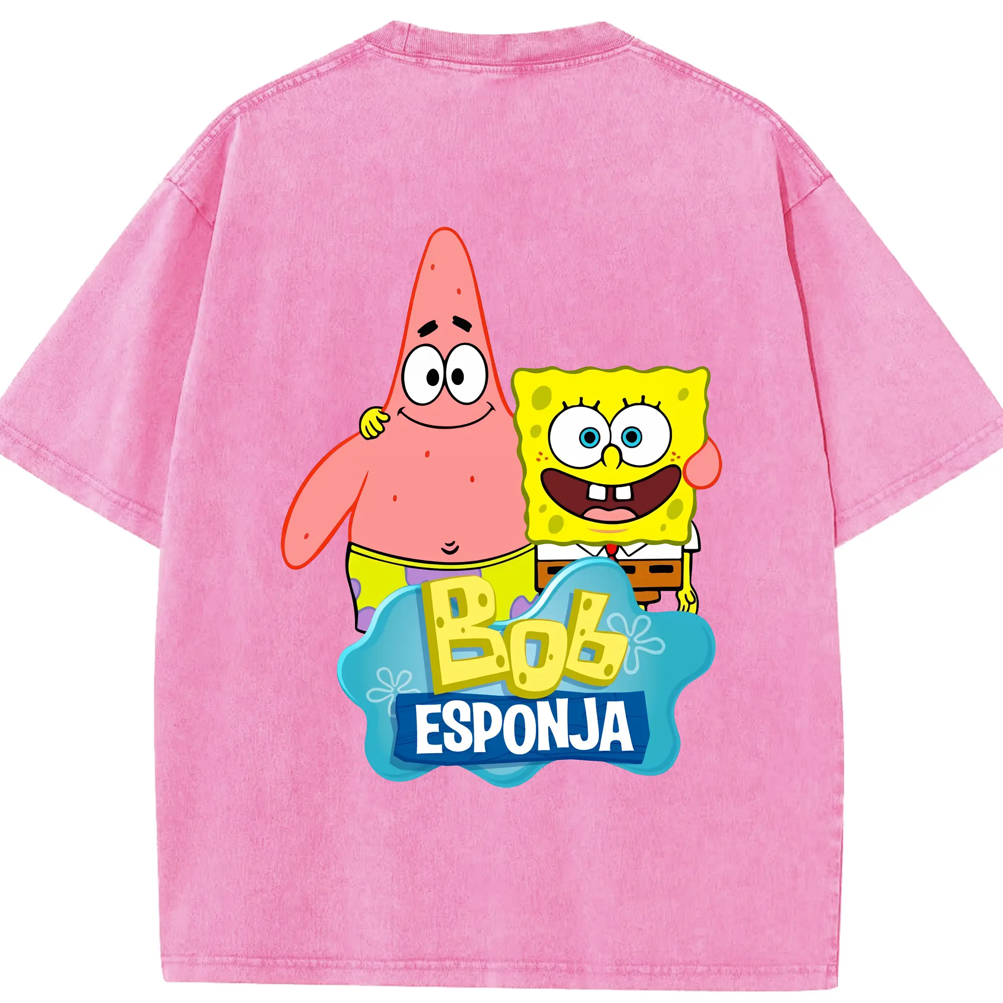 スポンジボブ グッズ パトリック・スター - 綿100% ヴィンテージ風 半袖Tシャツ ・ フロントプリント ・ 柔らか肌触り ・ 通気性 快適 ・ スポーツ カジュアル 外出用