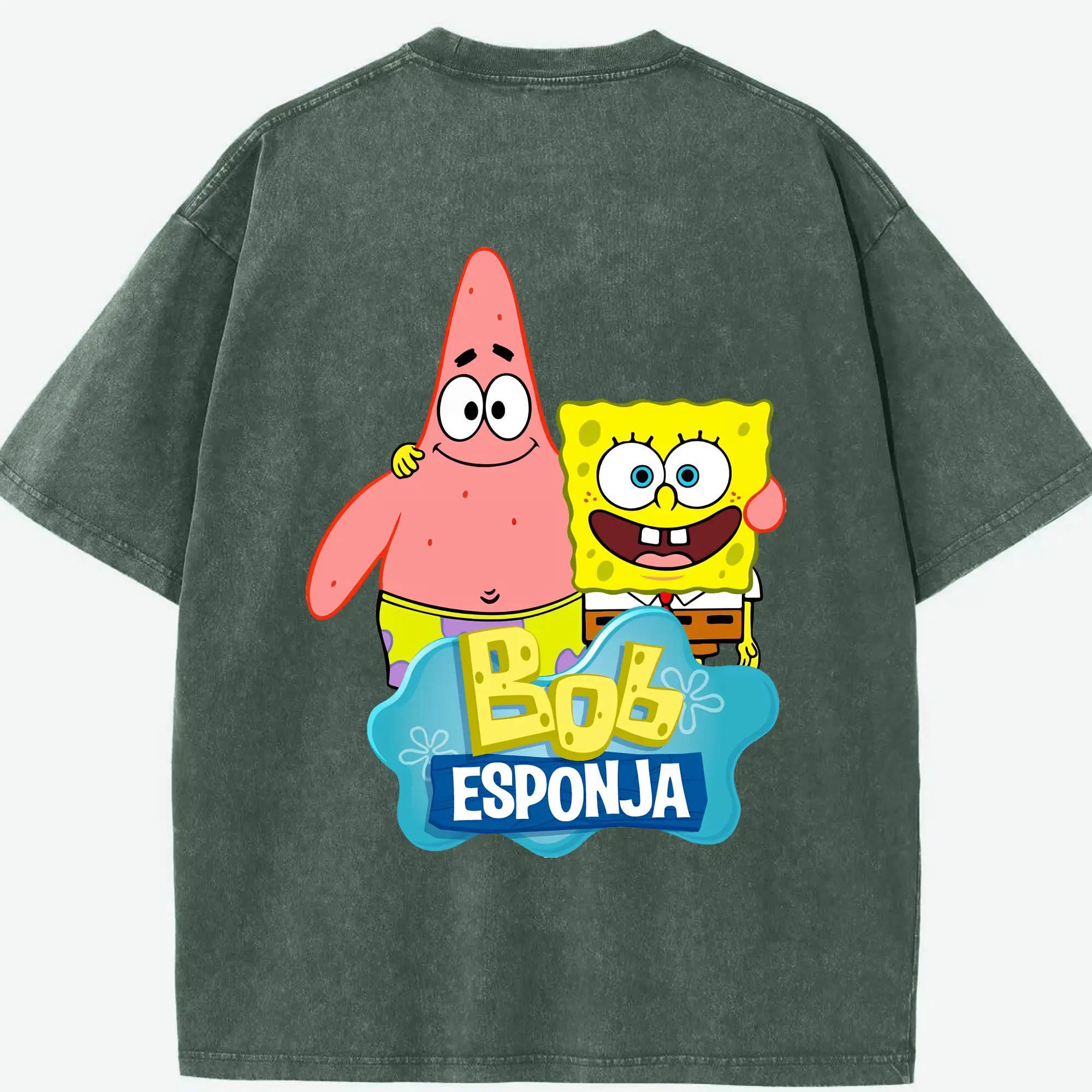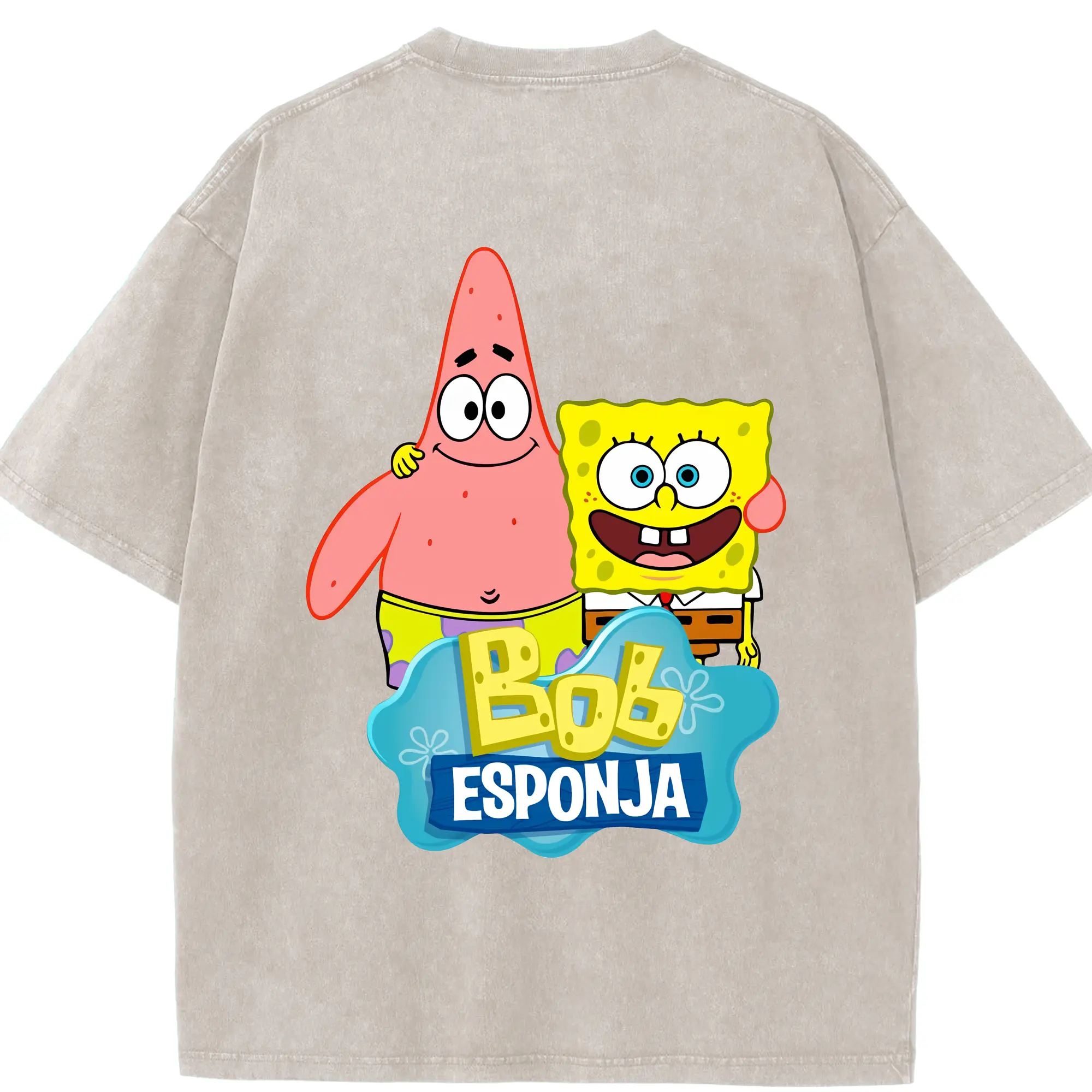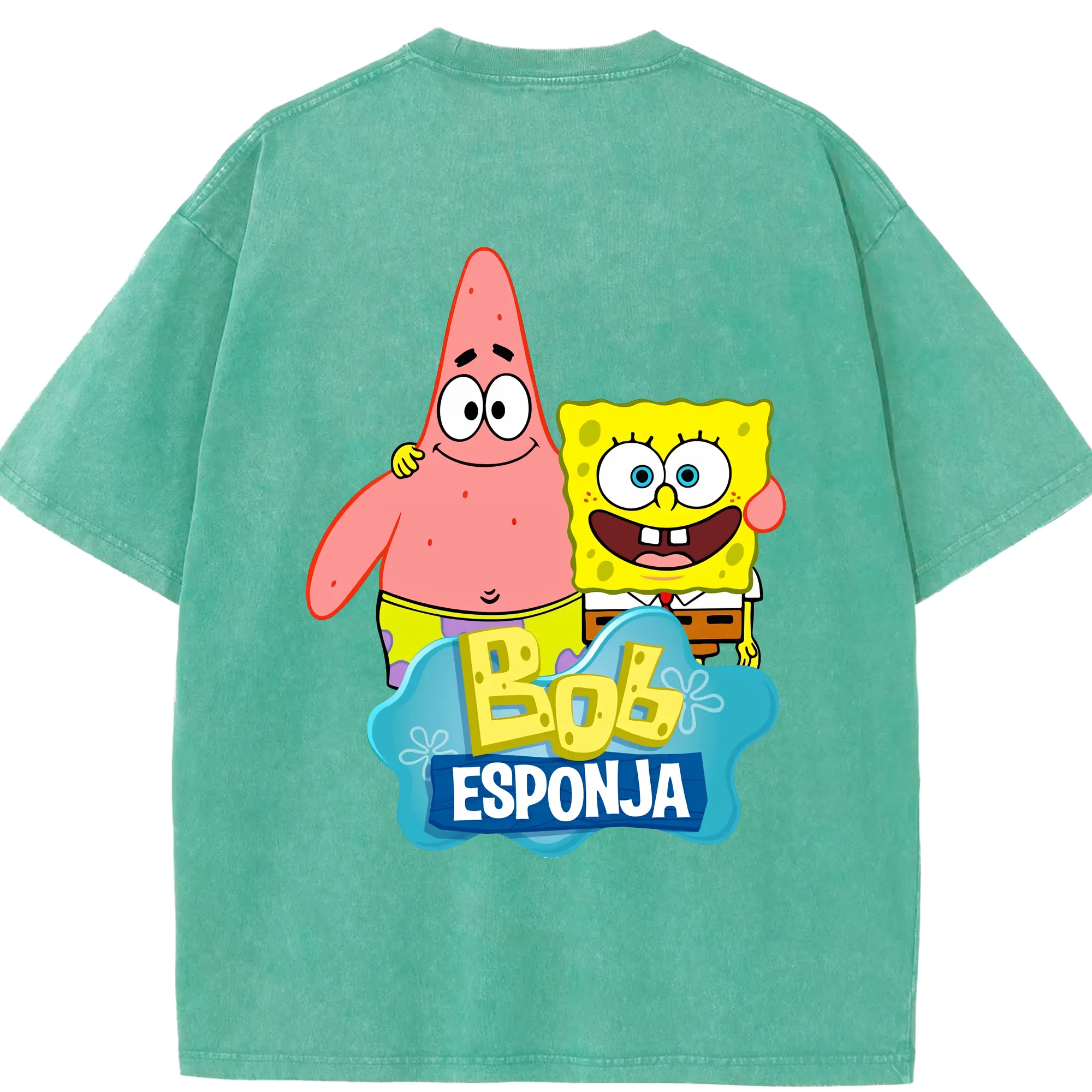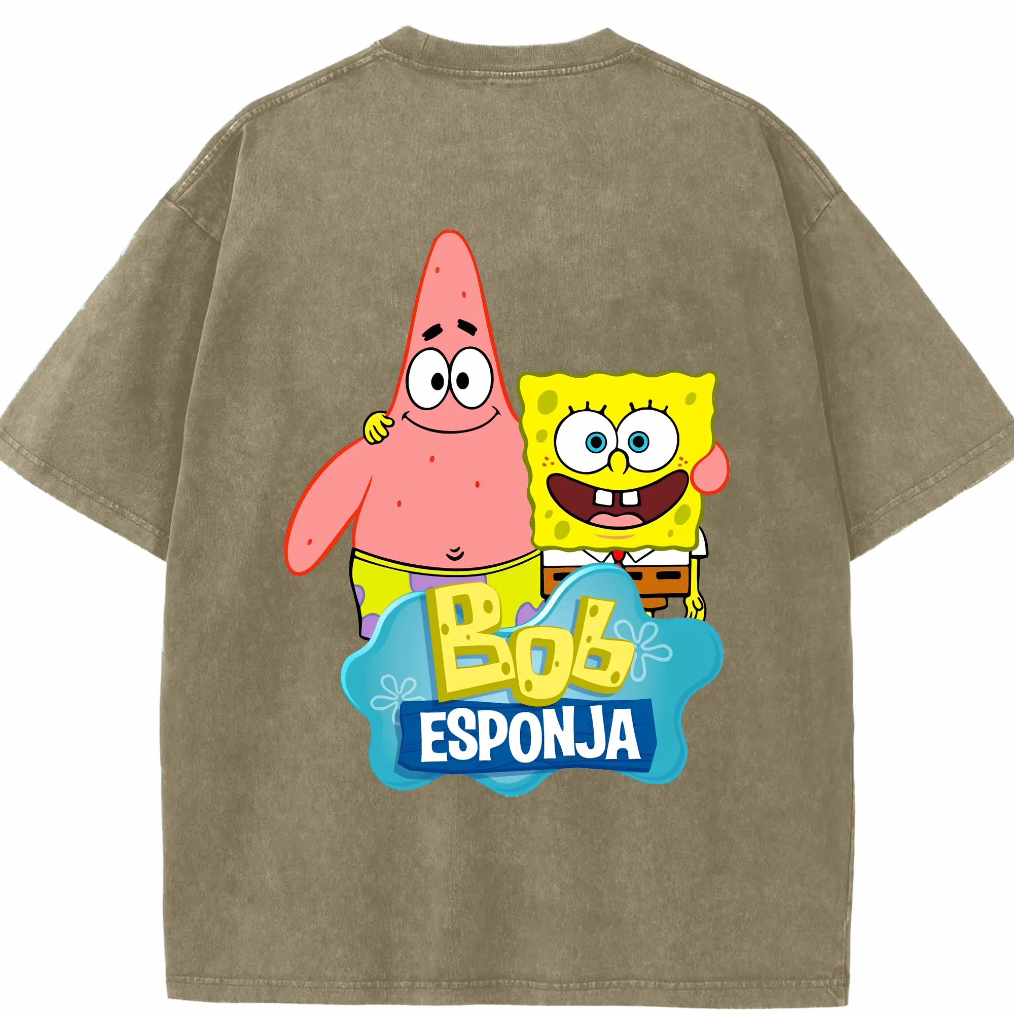 スポンジボブ グッズ パトリック・スター - 綿100% ヴィンテージ風 半袖Tシャツ ・ フロントプリント ・ 柔らか肌触り ・ 通気性 快適 ・ スポーツ カジュアル 外出用