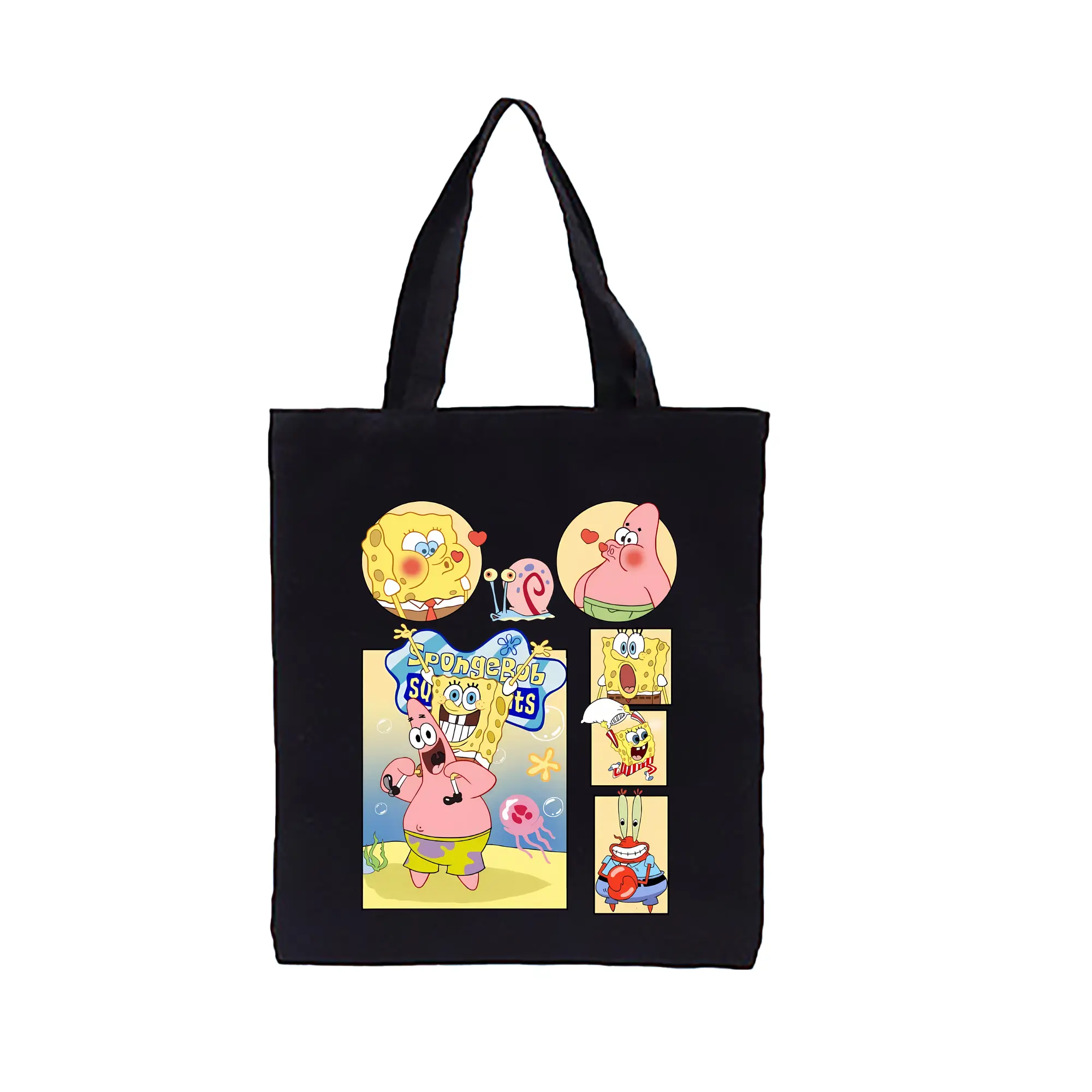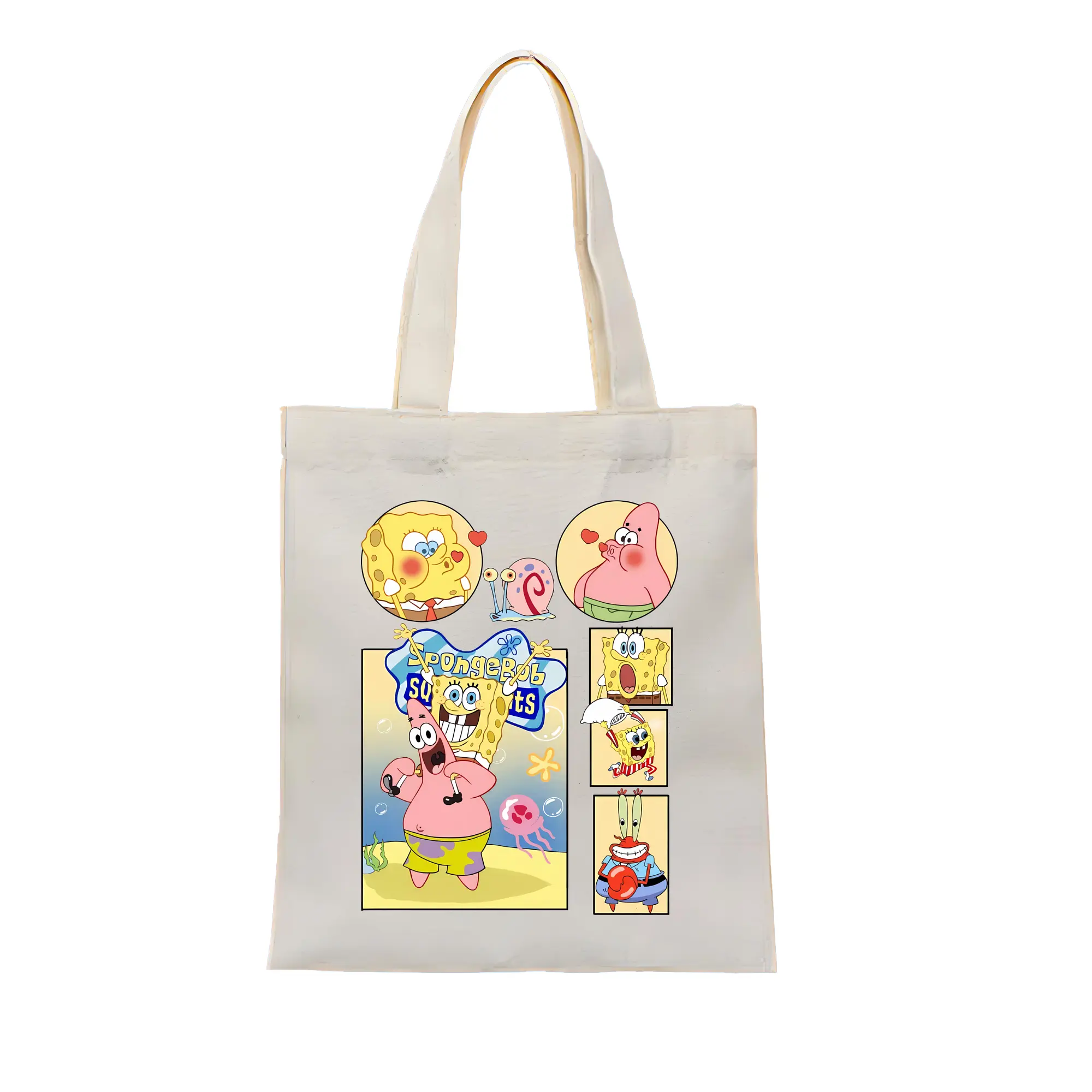 スポンジボブ グッズ パトリック・スター - 縦型キャンバス手提げバッグ(トートバッグ) ・ キャンバス素材 ・ ショッピング用 ・ 軽量 丈夫 お手入れ簡単
