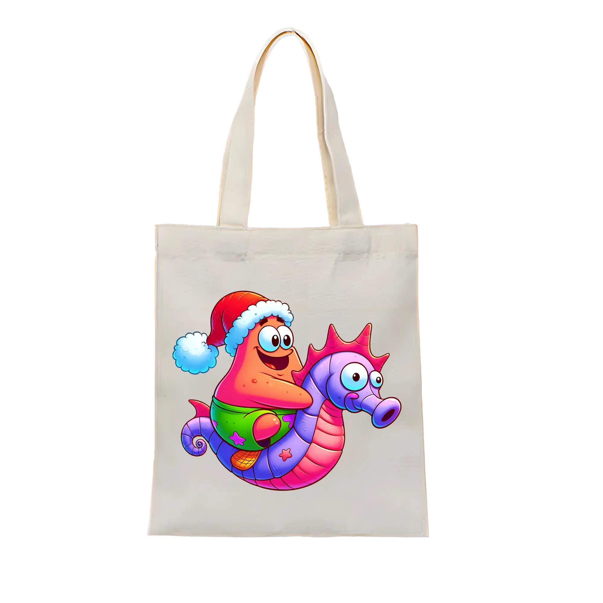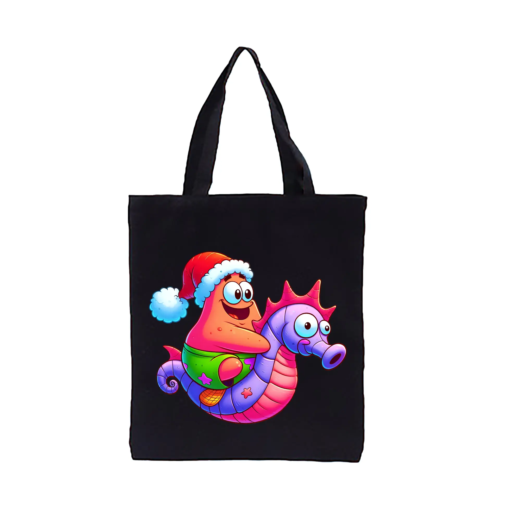 スポンジボブ グッズ パトリック・スター - 縦型キャンバス手提げバッグ(トートバッグ) ・ キャンバス素材 ・ ショッピング用 ・ 軽量 丈夫 お手入れ簡単
