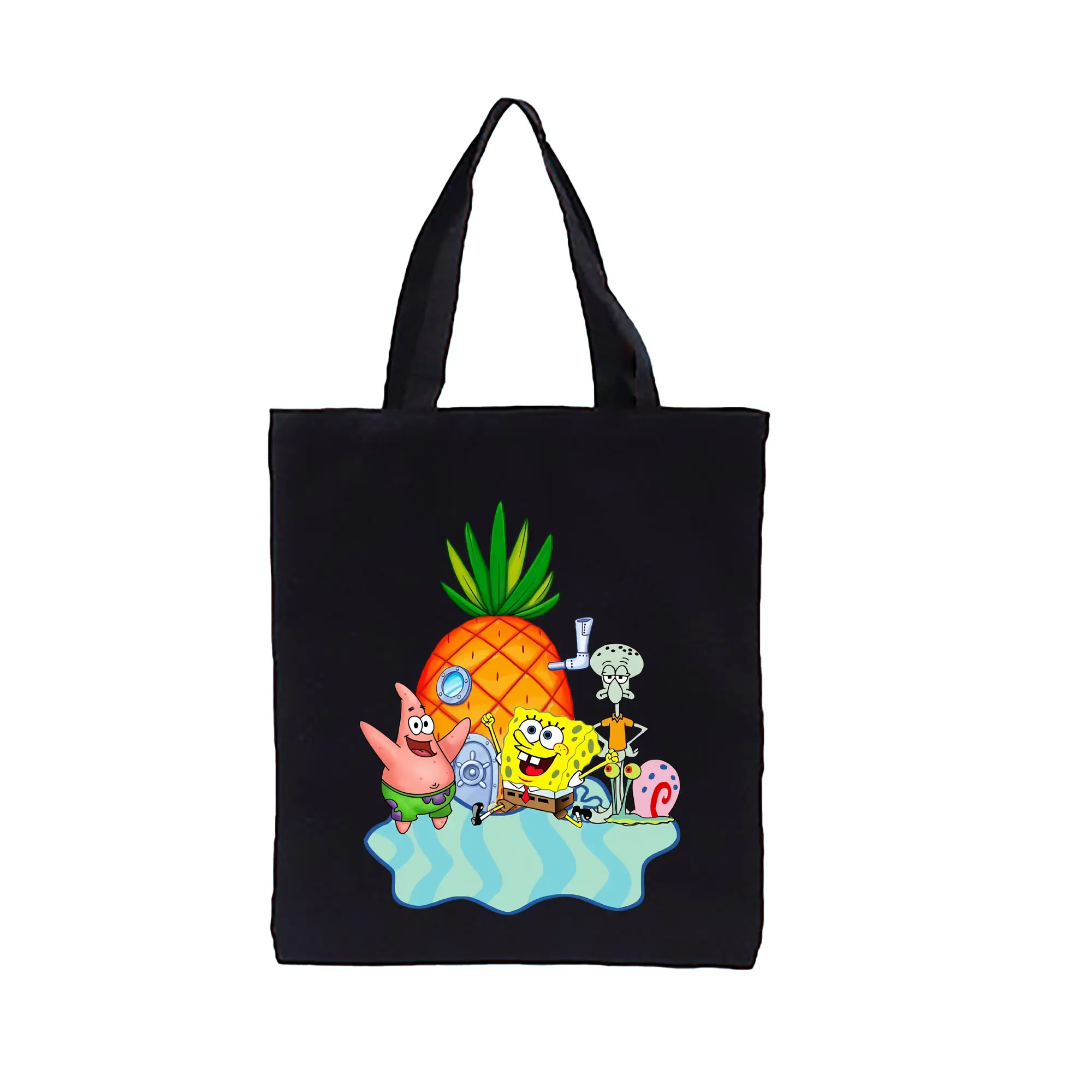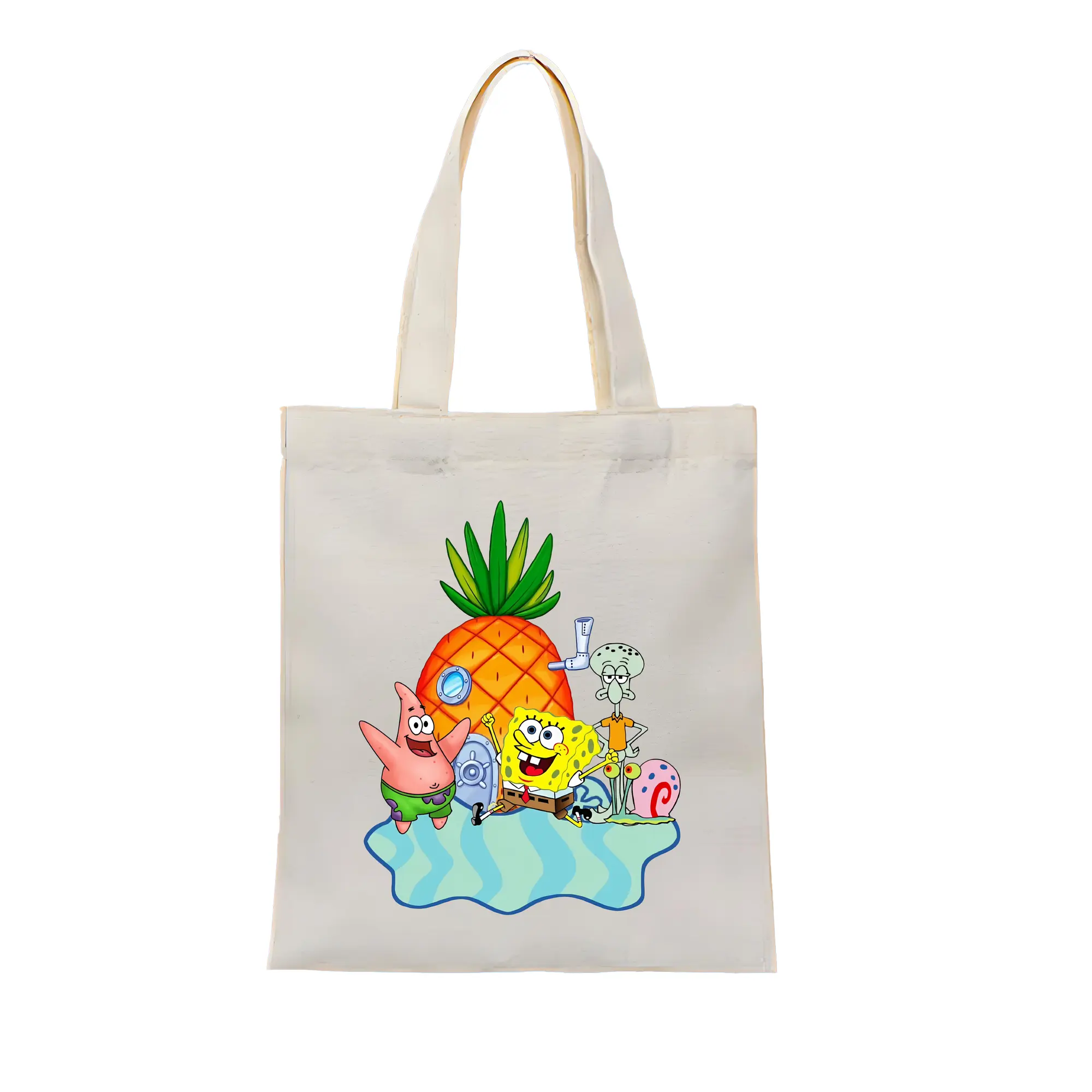 スポンジボブ グッズ パトリック・スター - 縦型キャンバス手提げバッグ(トートバッグ) ・ キャンバス素材 ・ ショッピング用 ・ 軽量 丈夫 お手入れ簡単