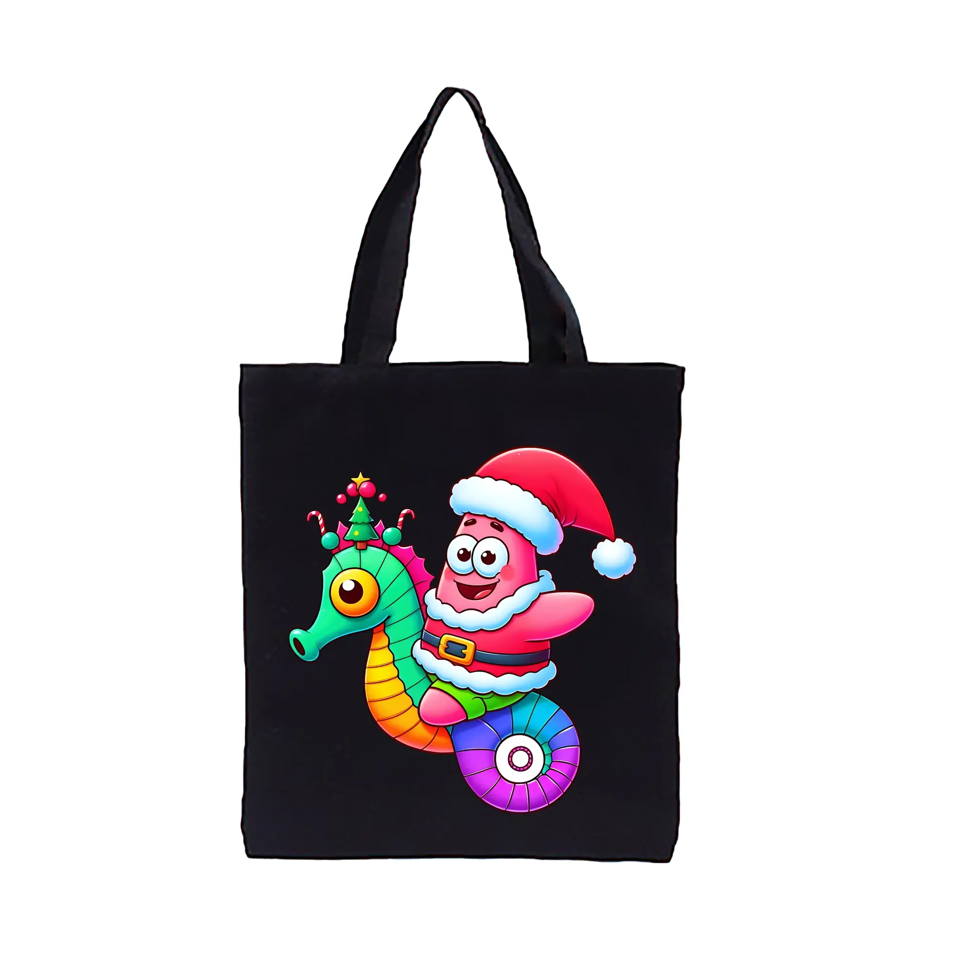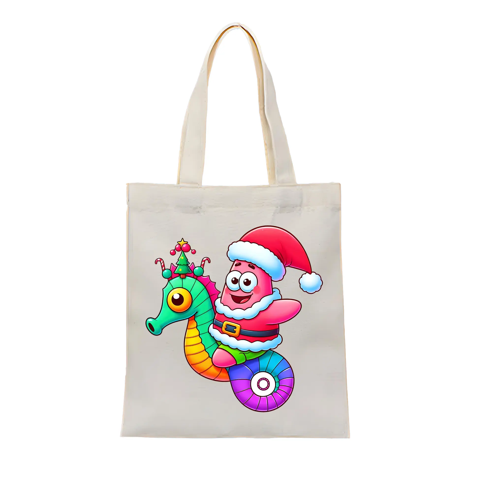 スポンジボブ グッズ パトリック・スター - 縦型キャンバス手提げバッグ(トートバッグ) ・ キャンバス素材 ・ ショッピング用 ・ 軽量 丈夫 お手入れ簡単