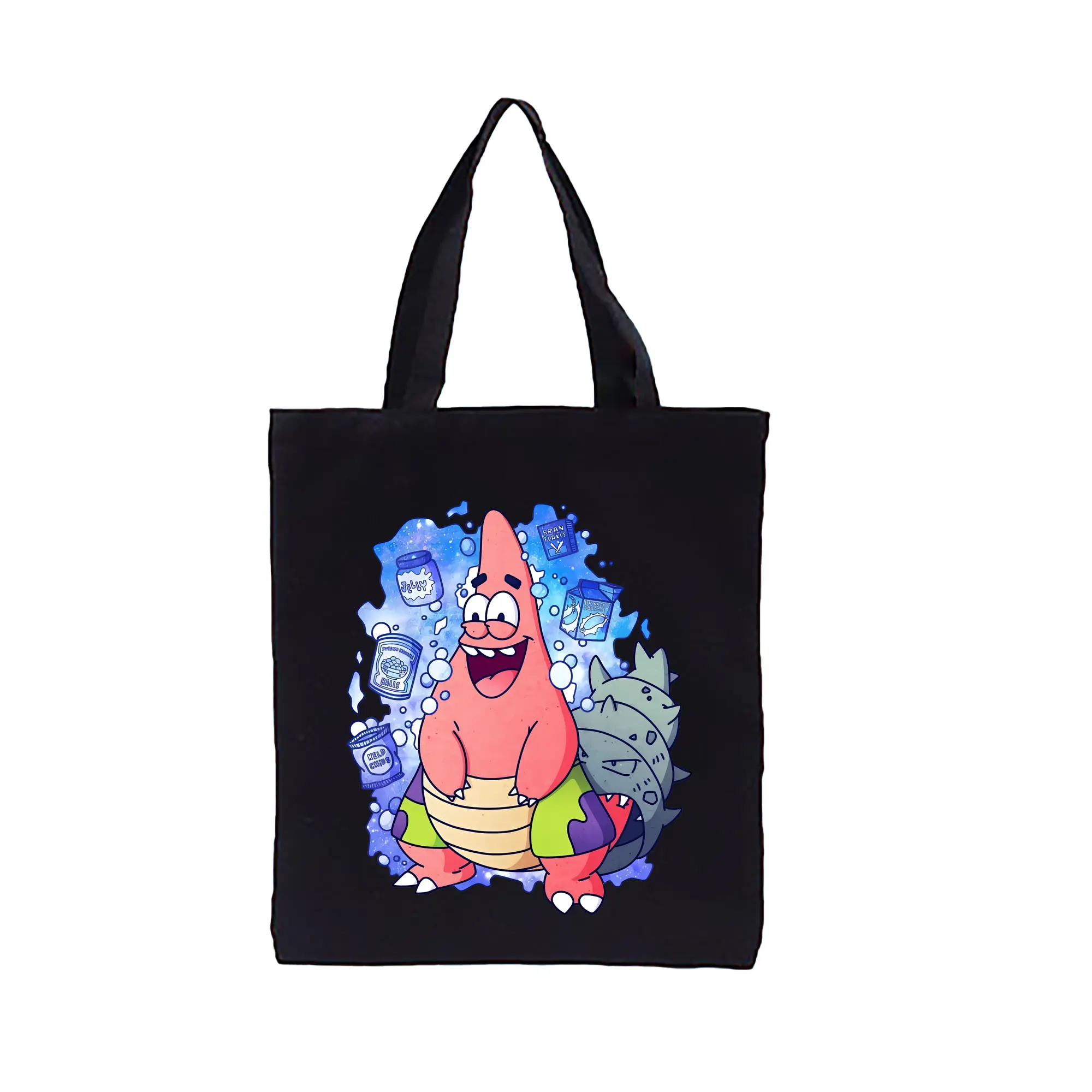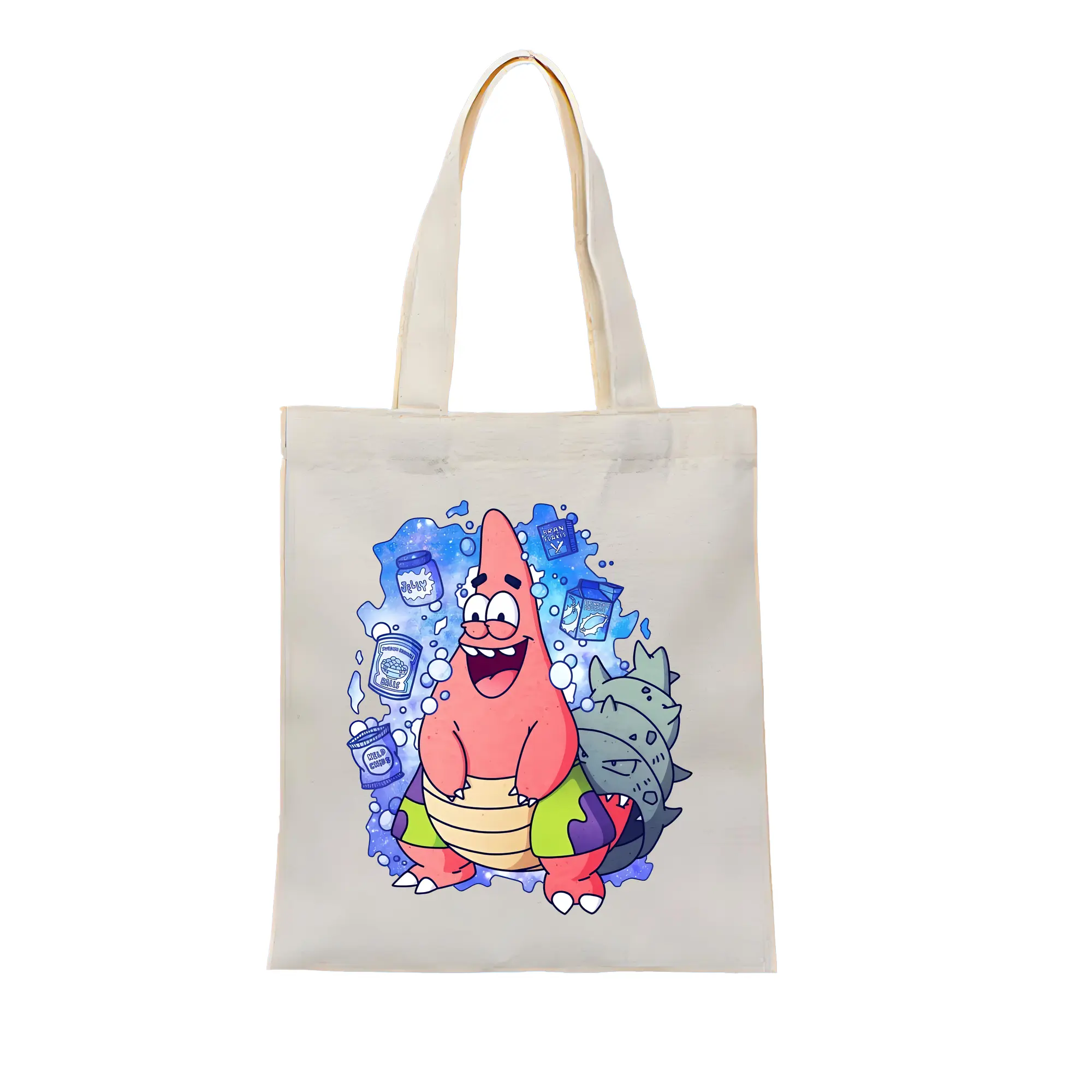 スポンジボブ グッズ パトリック・スター - 縦型キャンバス手提げバッグ(トートバッグ) ・ キャンバス素材 ・ ショッピング用 ・ 軽量 丈夫 お手入れ簡単