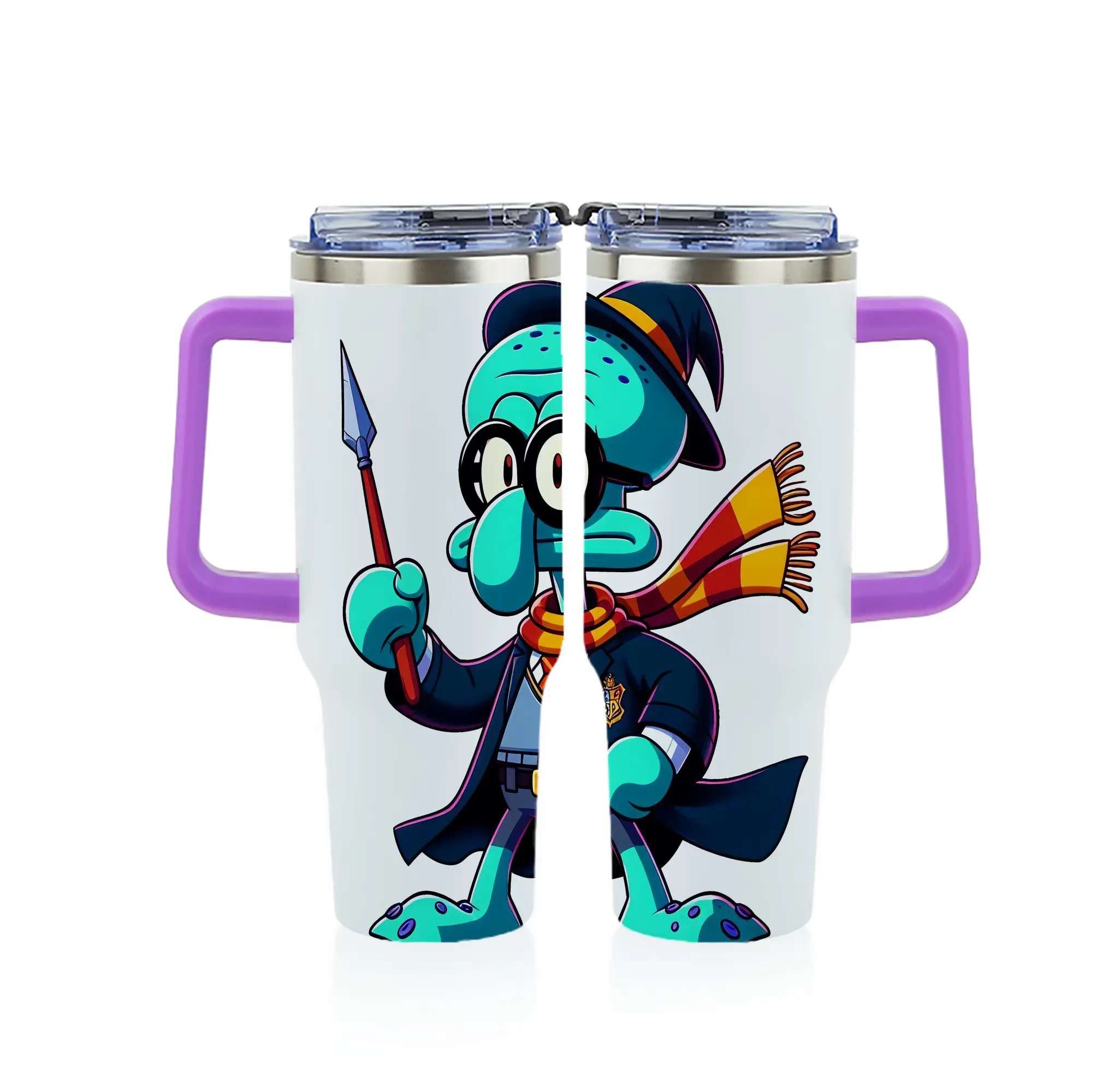 スポンジボブ グッズ イカルド - 1200mL フルプリント車用タンブラー ・ 304ステンレス 内側 ・ 201ステンレス 外側 ・ 保温 保冷 ・ 通勤 ドライブ アウトドア用