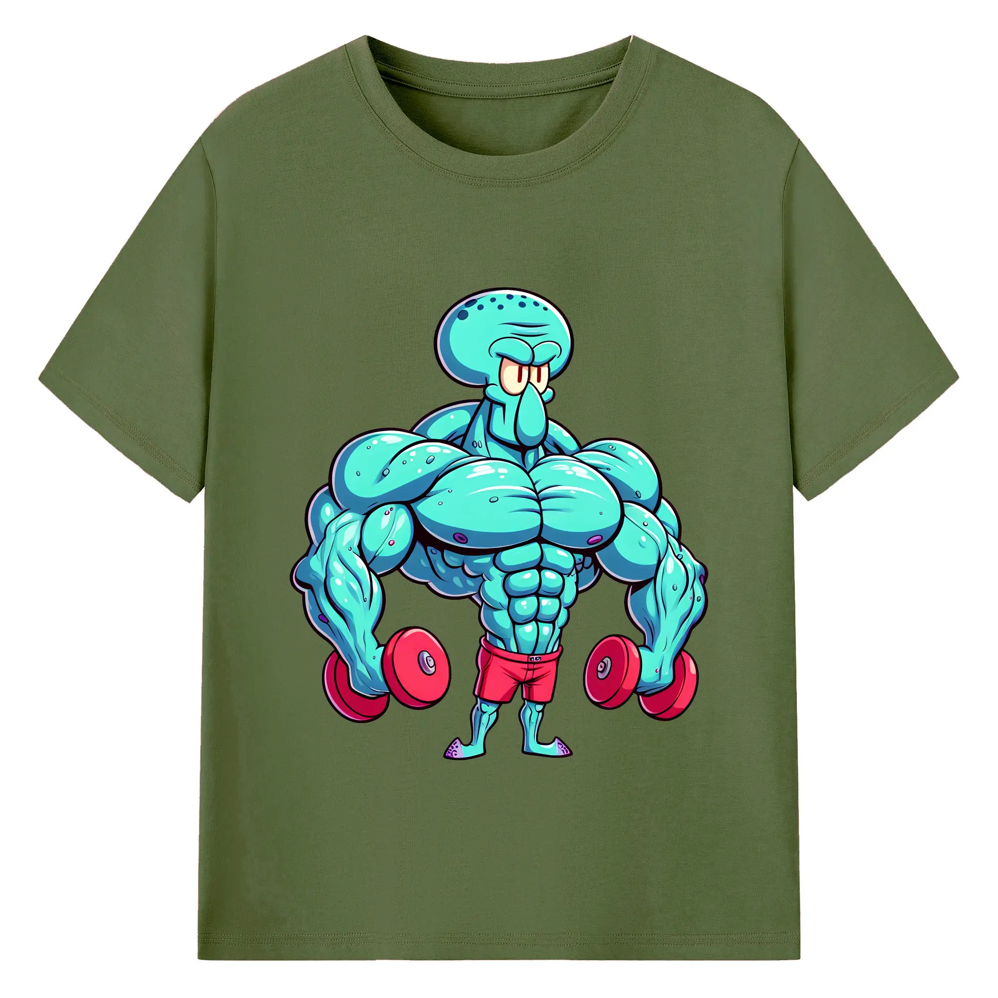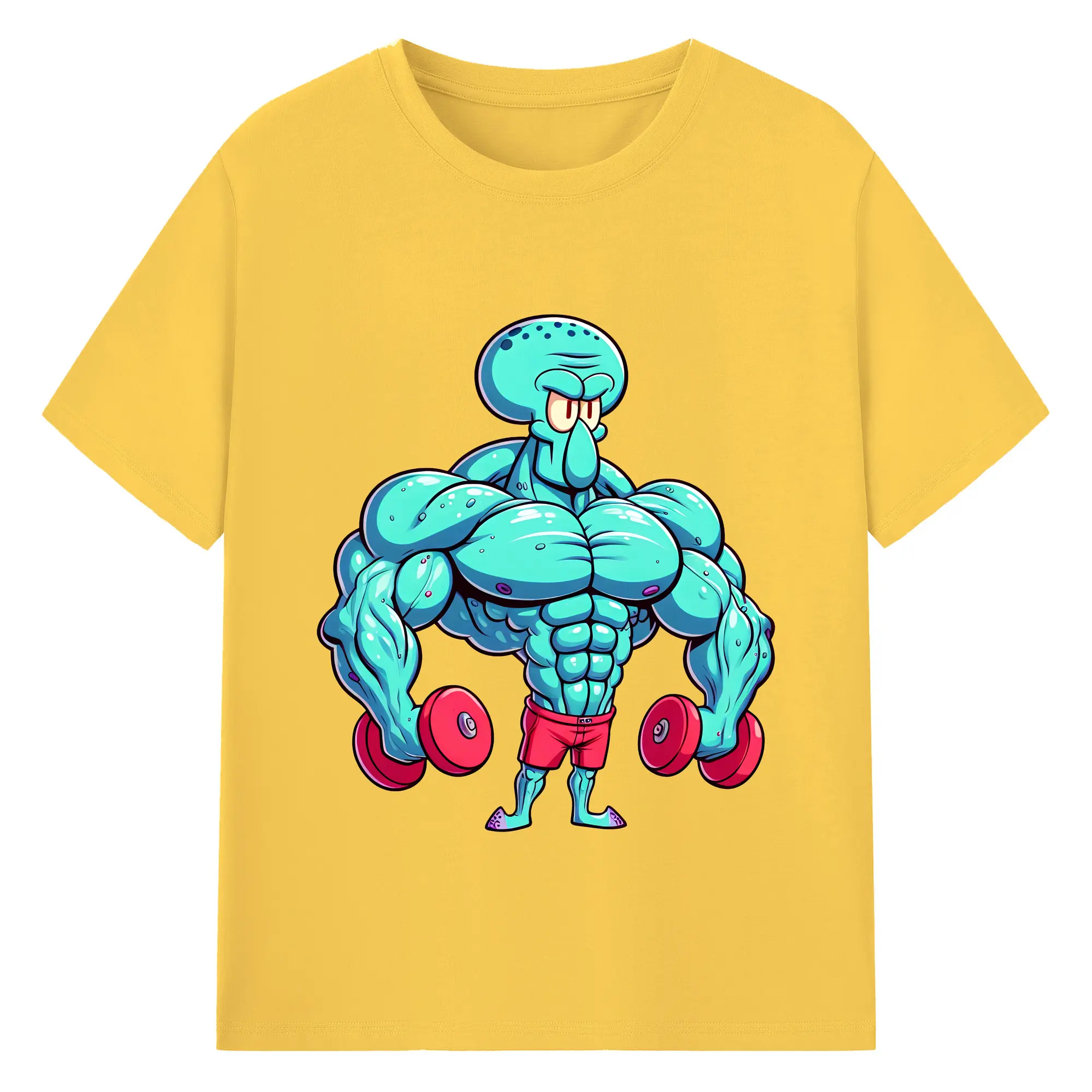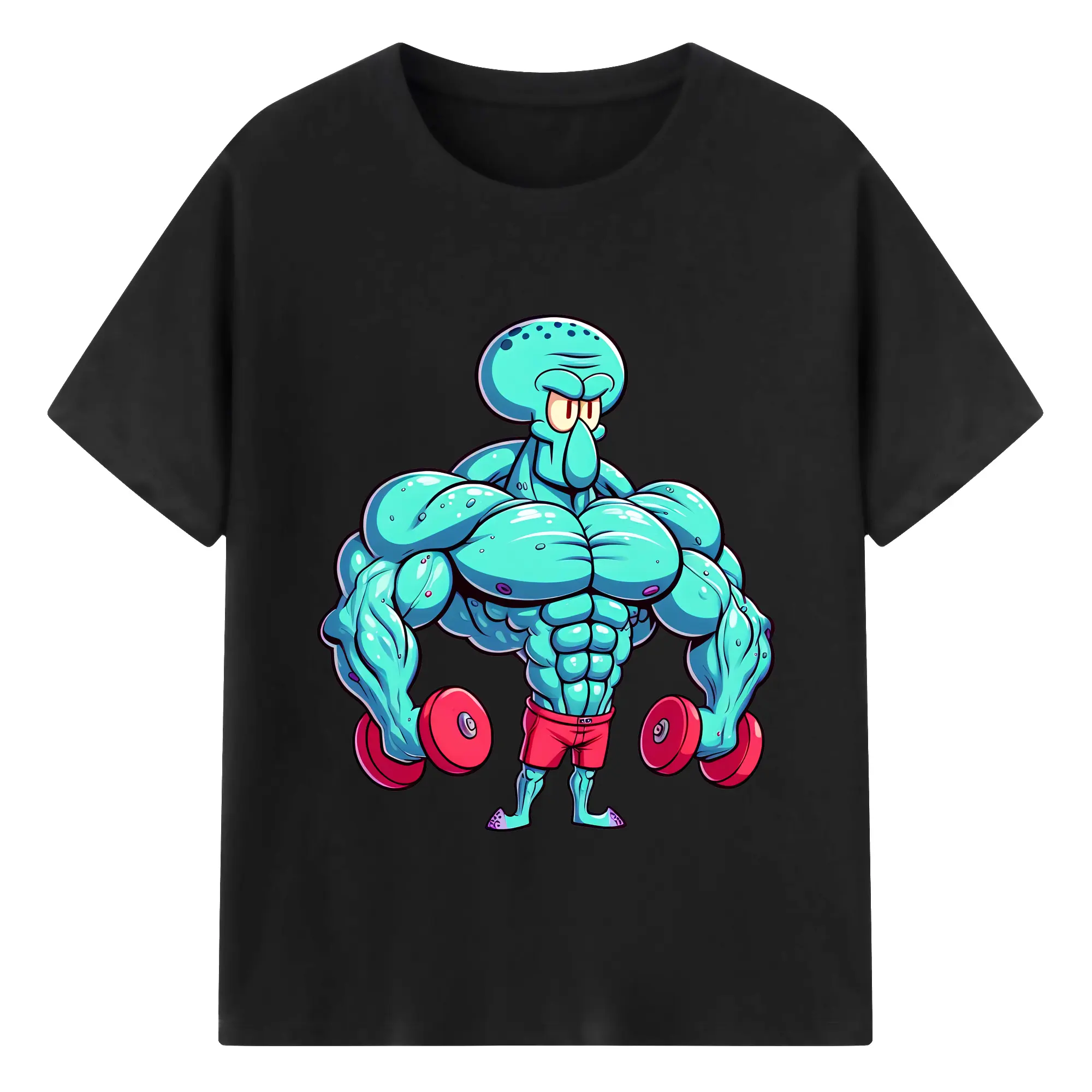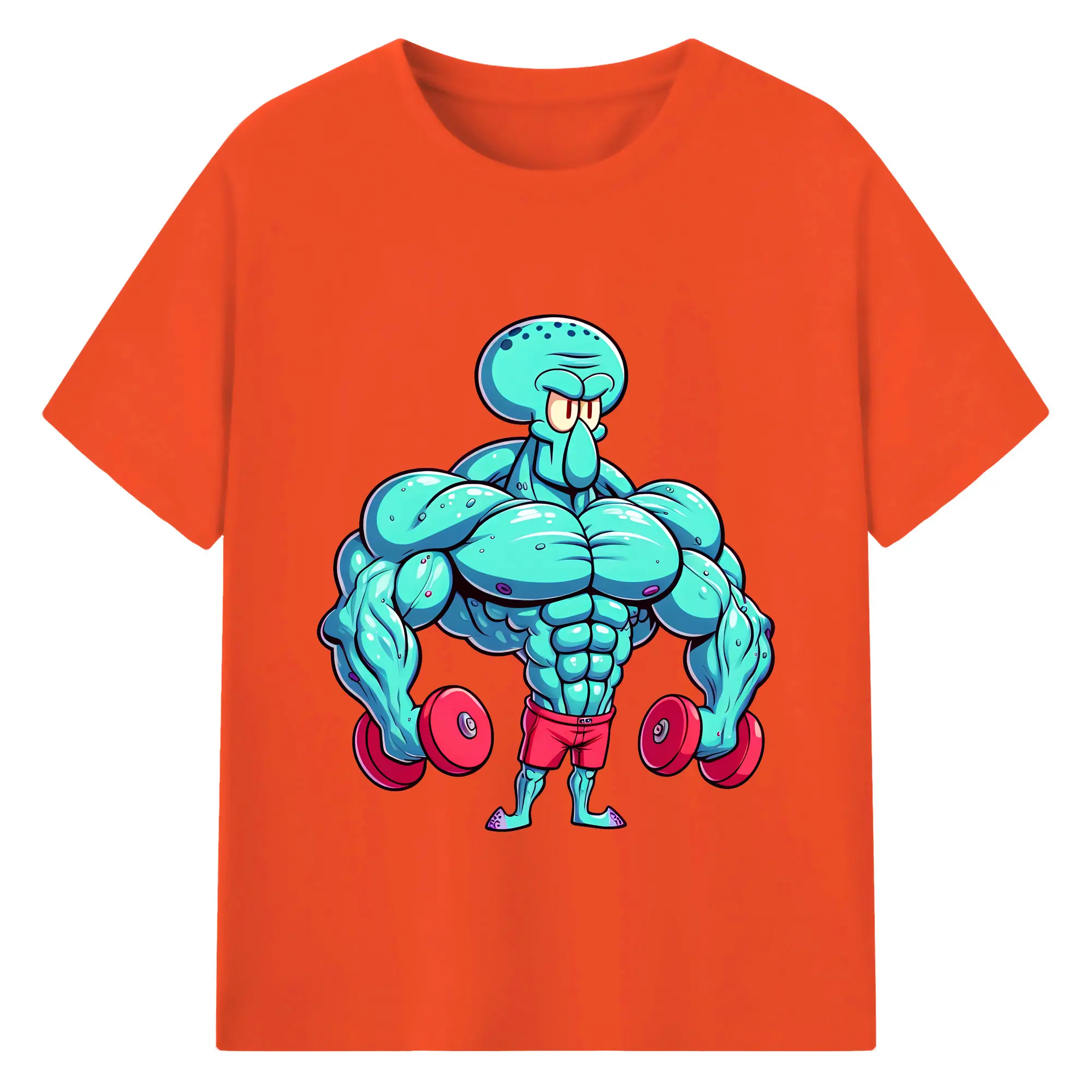 スポンジボブ グッズ イカルド - 綿100% 半袖Tシャツ ・ バックプリント ・ 快適 通気性 ・ 日常使い 散歩 スポーツ用