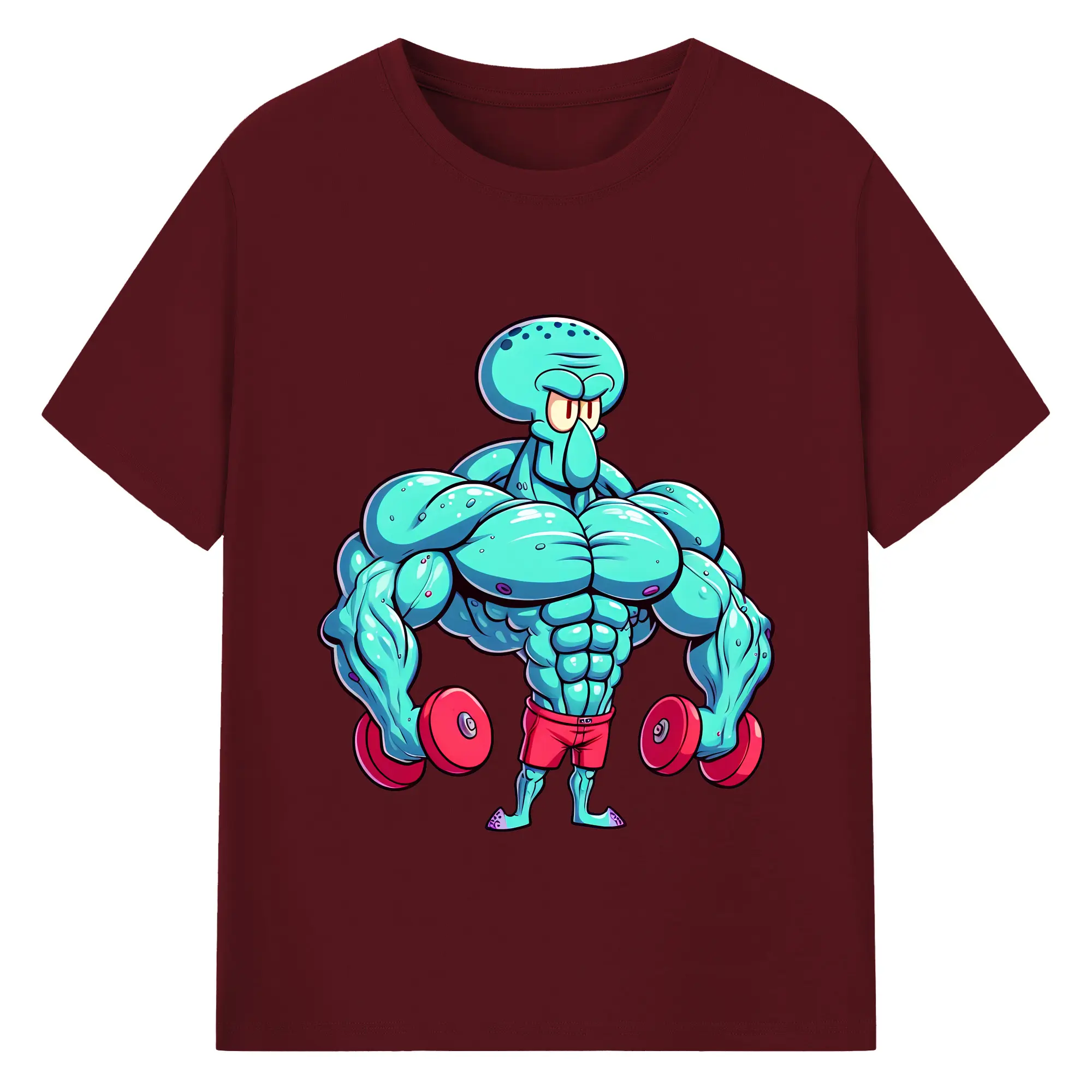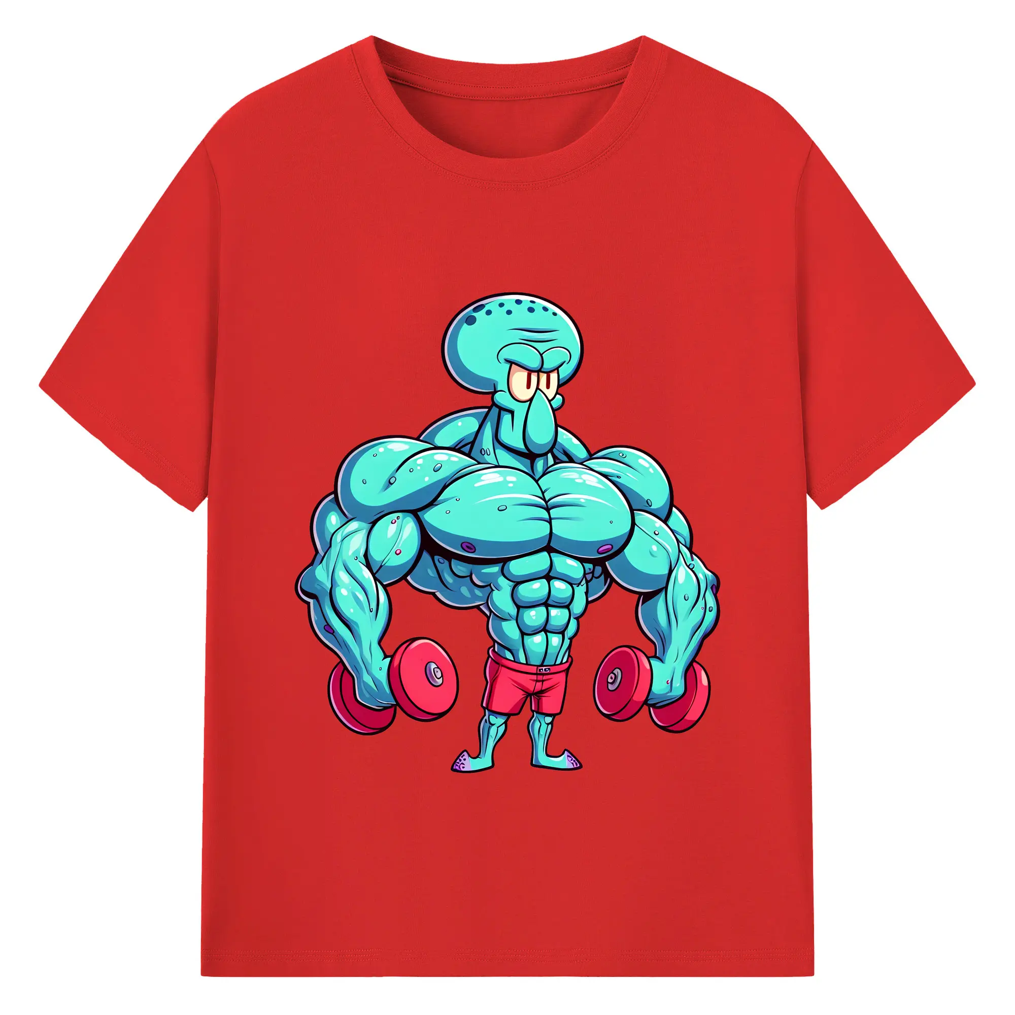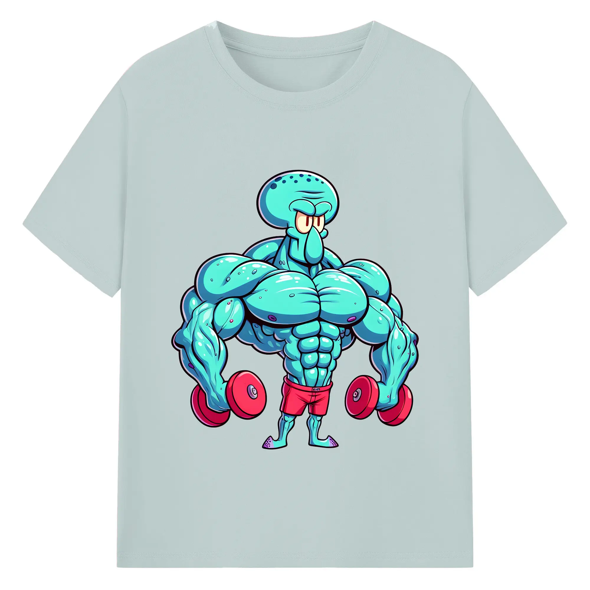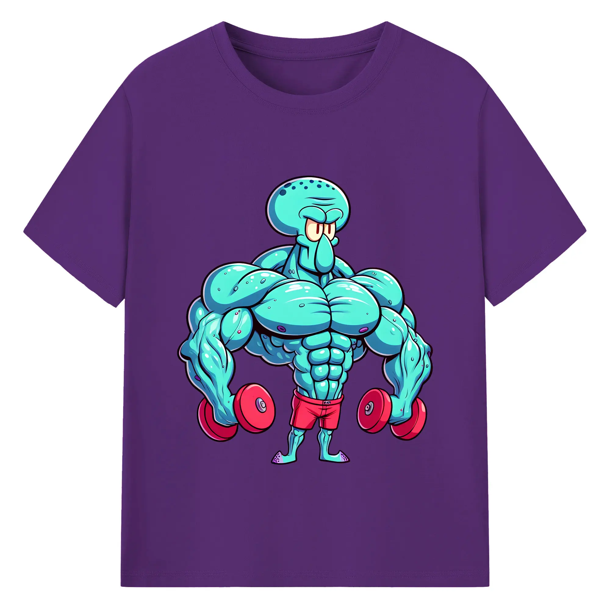 スポンジボブ グッズ イカルド - 綿100% 半袖Tシャツ ・ バックプリント ・ 快適 通気性 ・ 日常使い 散歩 スポーツ用