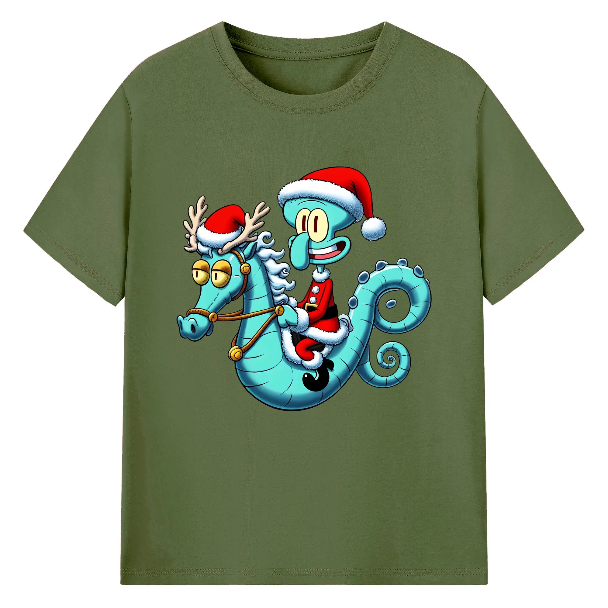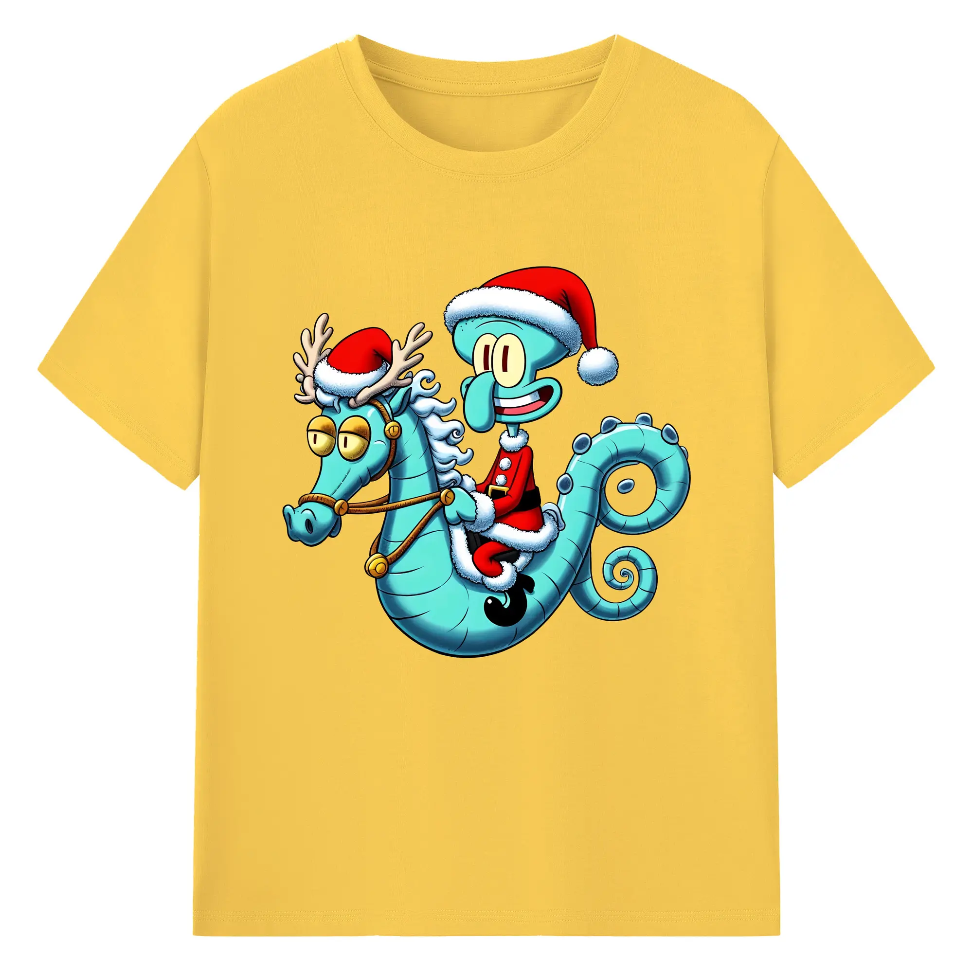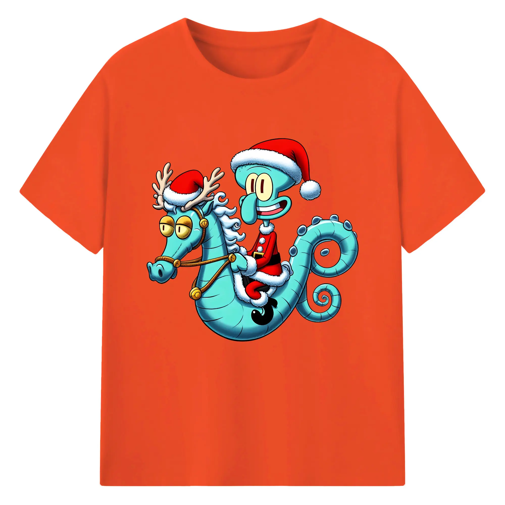 スポンジボブ グッズ イカルド - 綿100% 半袖Tシャツ ・ バックプリント ・ 快適 通気性 ・ 日常使い 散歩 スポーツ用