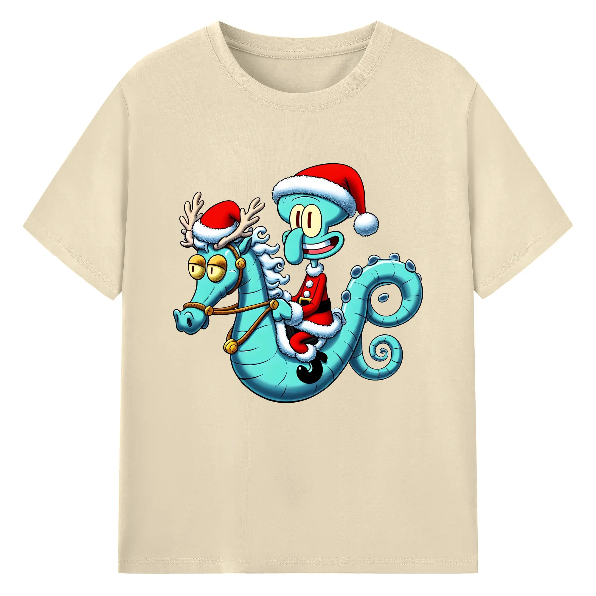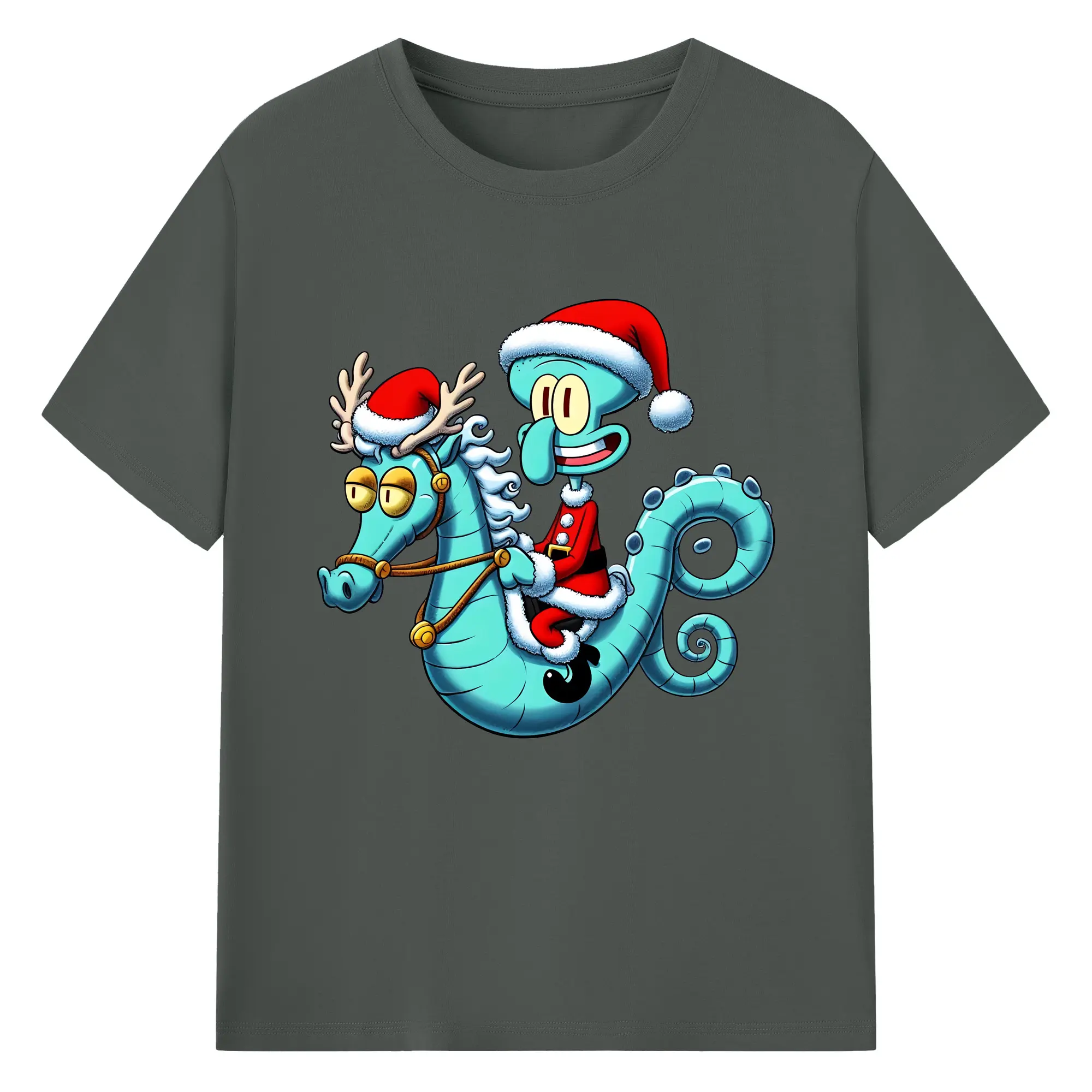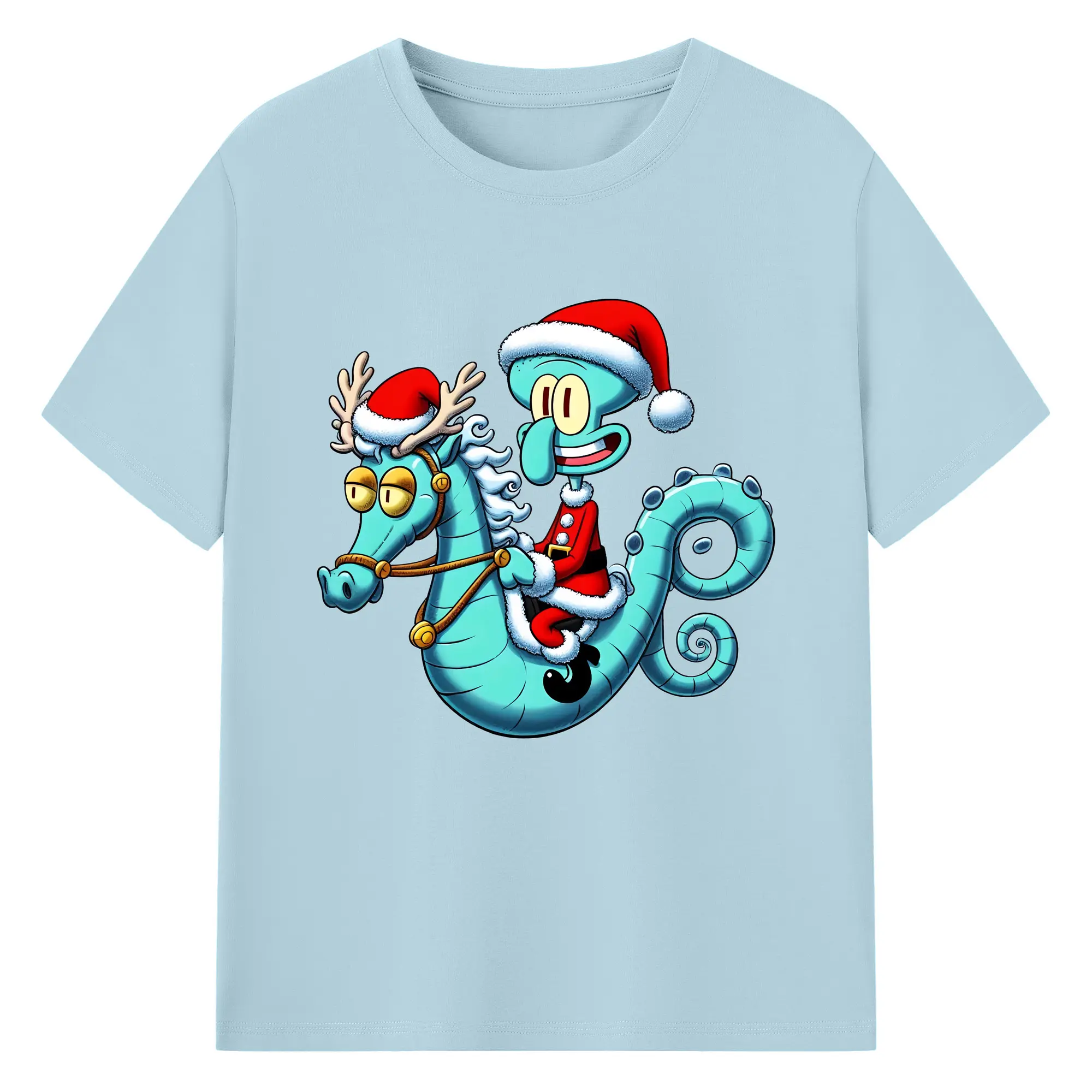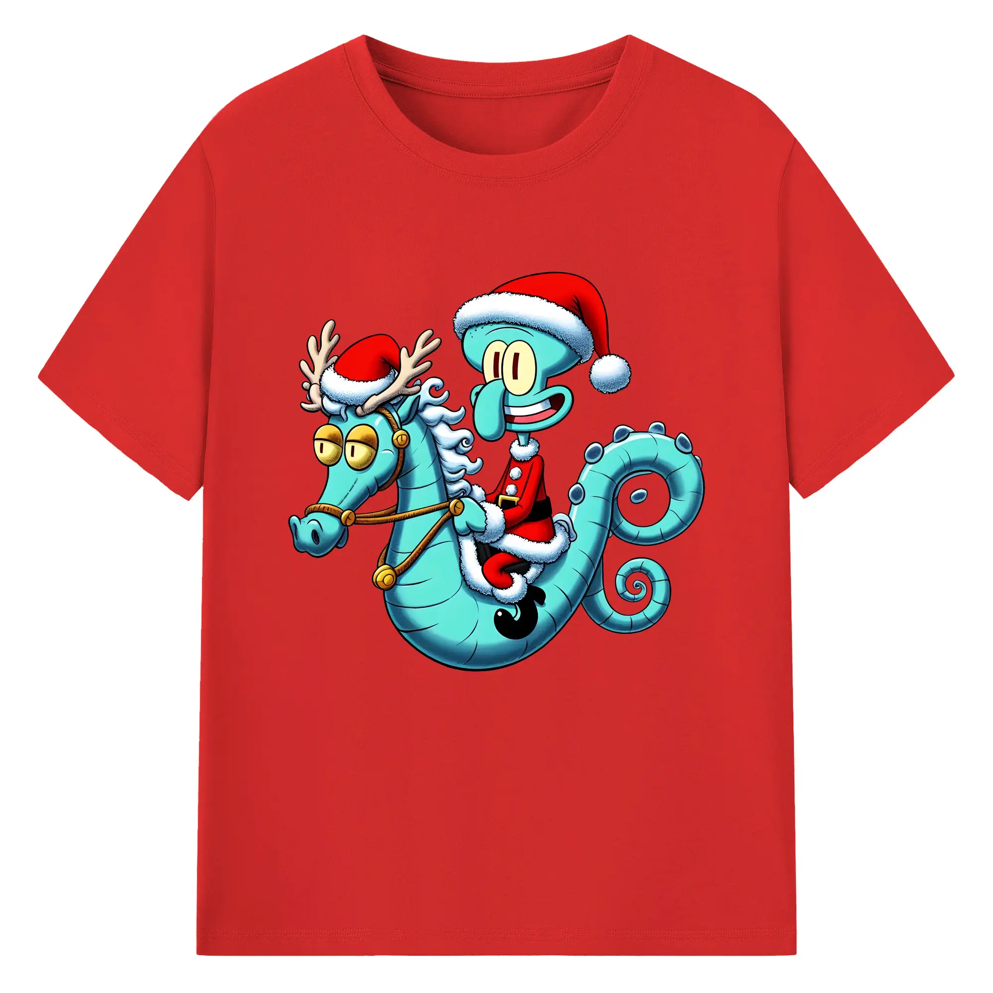 スポンジボブ グッズ イカルド - 綿100% 半袖Tシャツ ・ バックプリント ・ 快適 通気性 ・ 日常使い 散歩 スポーツ用
