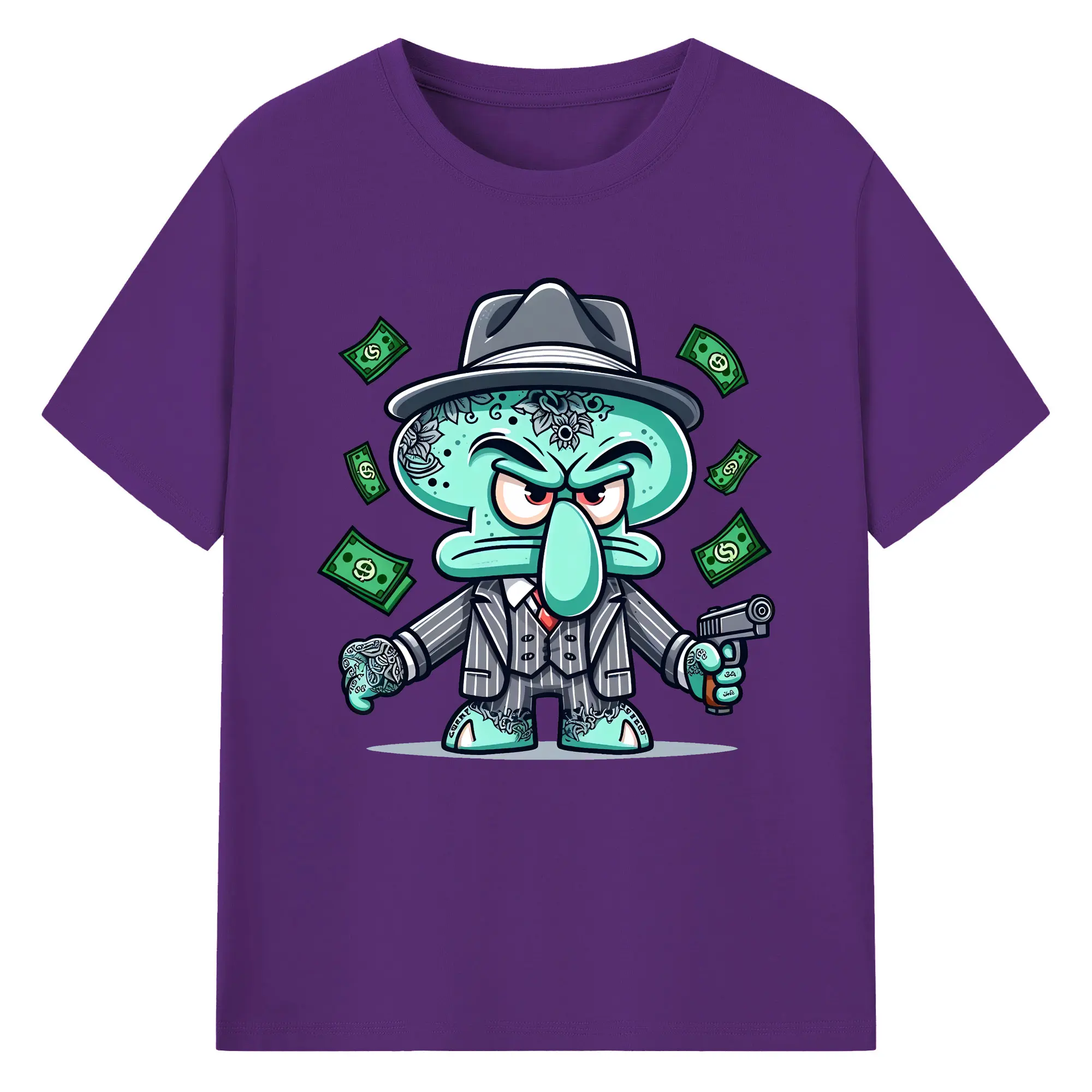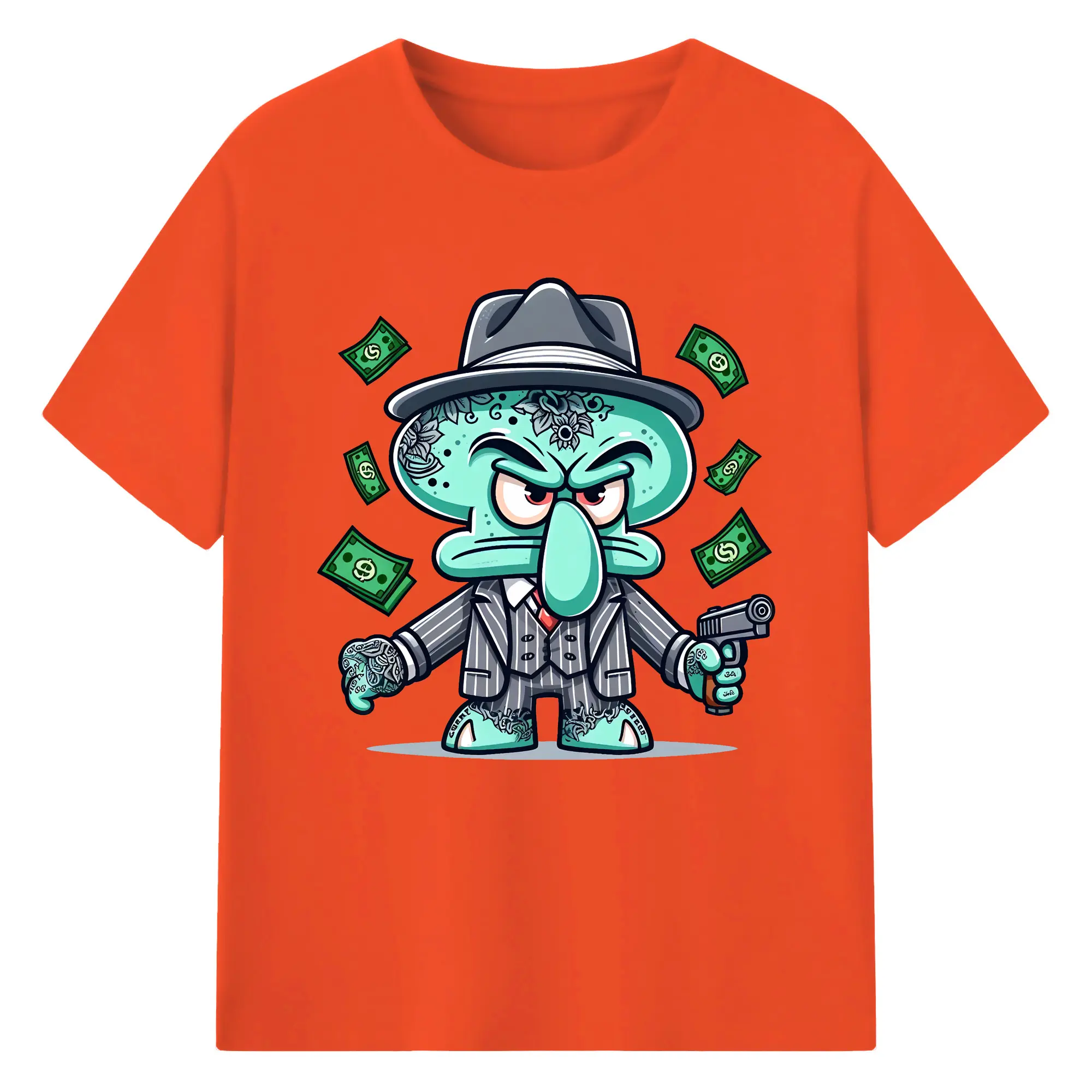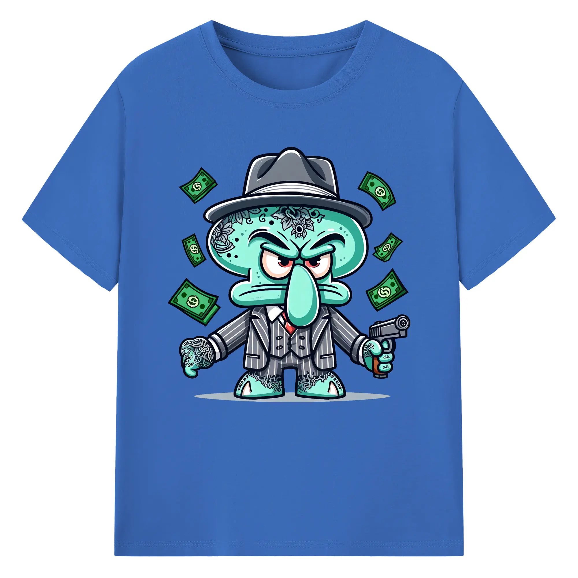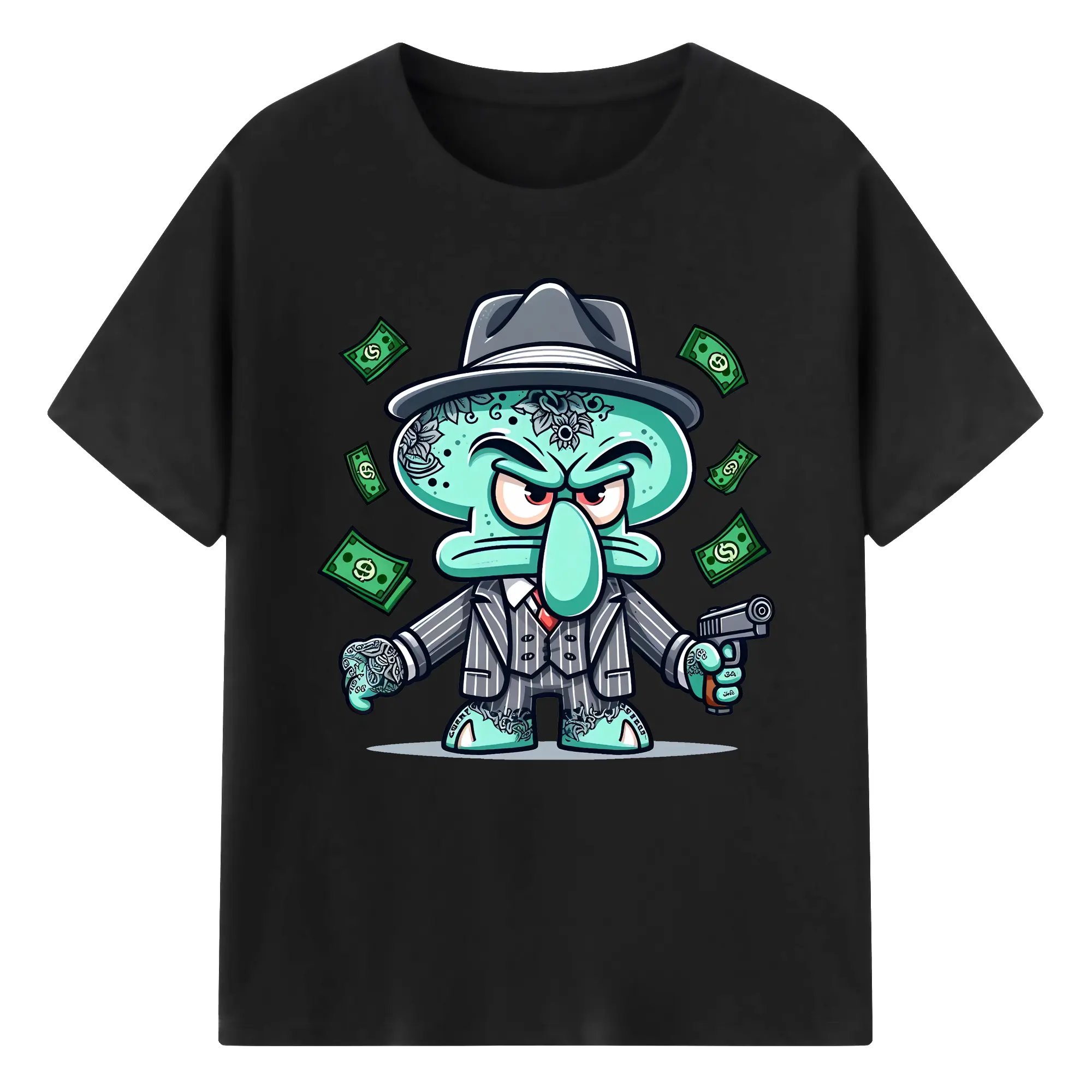 スポンジボブ グッズ イカルド - 綿100% 半袖Tシャツ ・ バックプリント ・ 快適 通気性 ・ 日常使い 散歩 スポーツ用