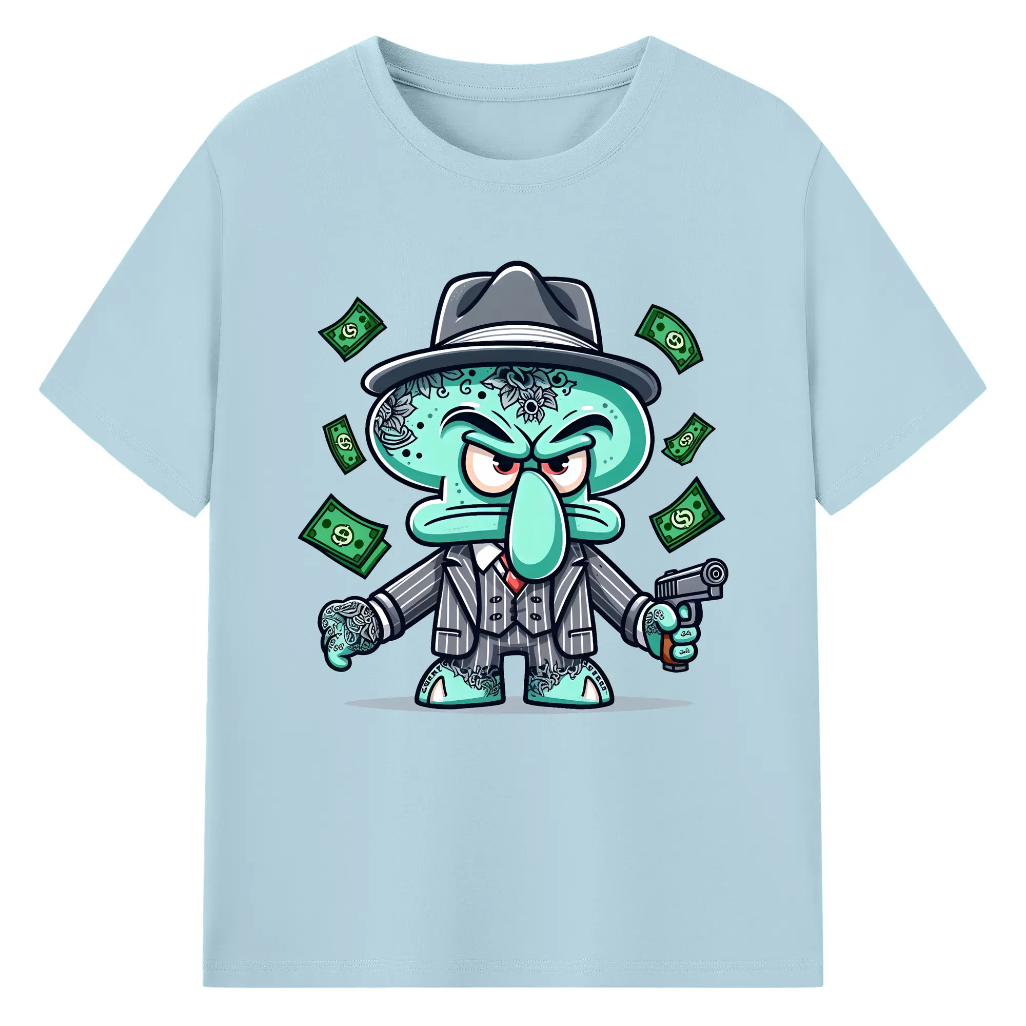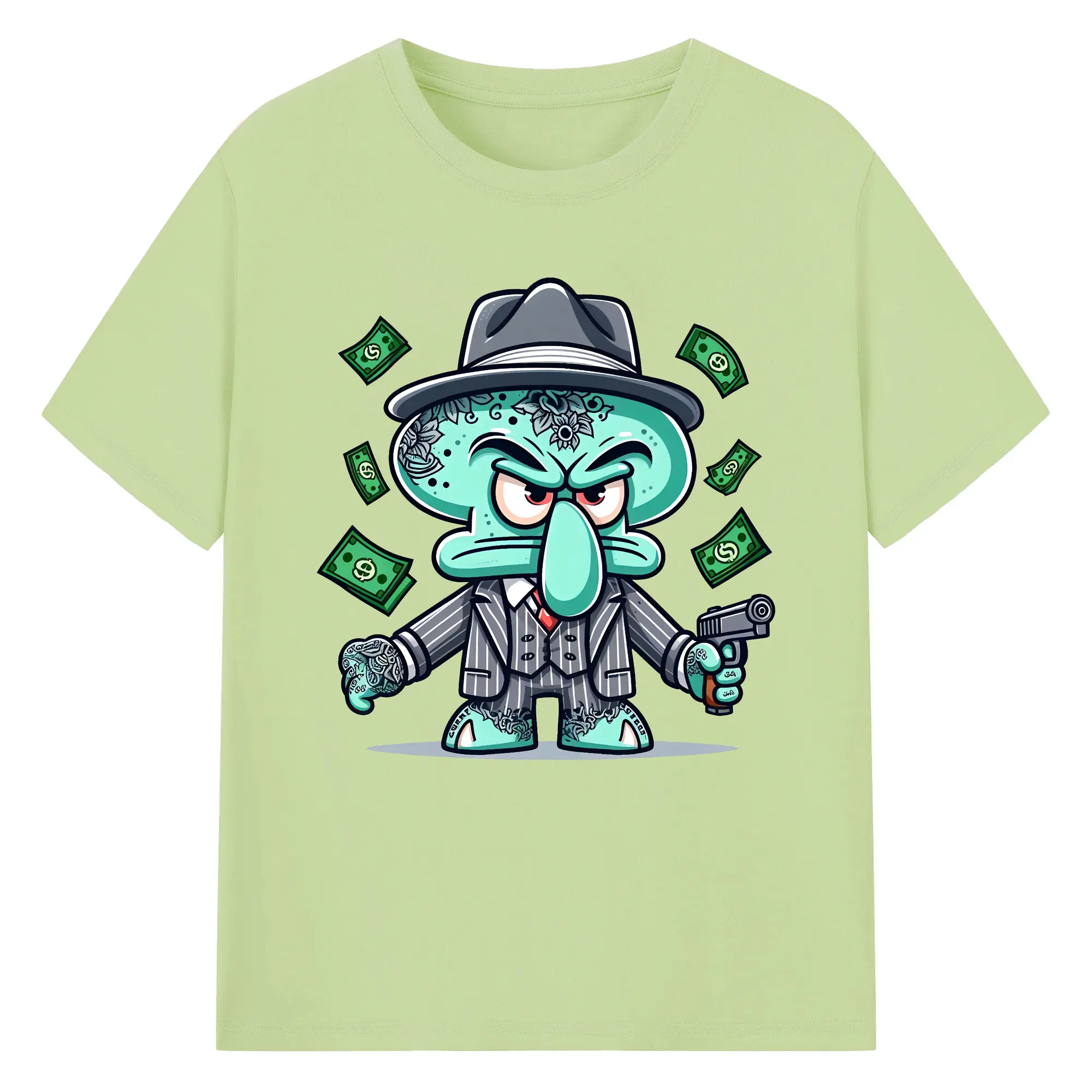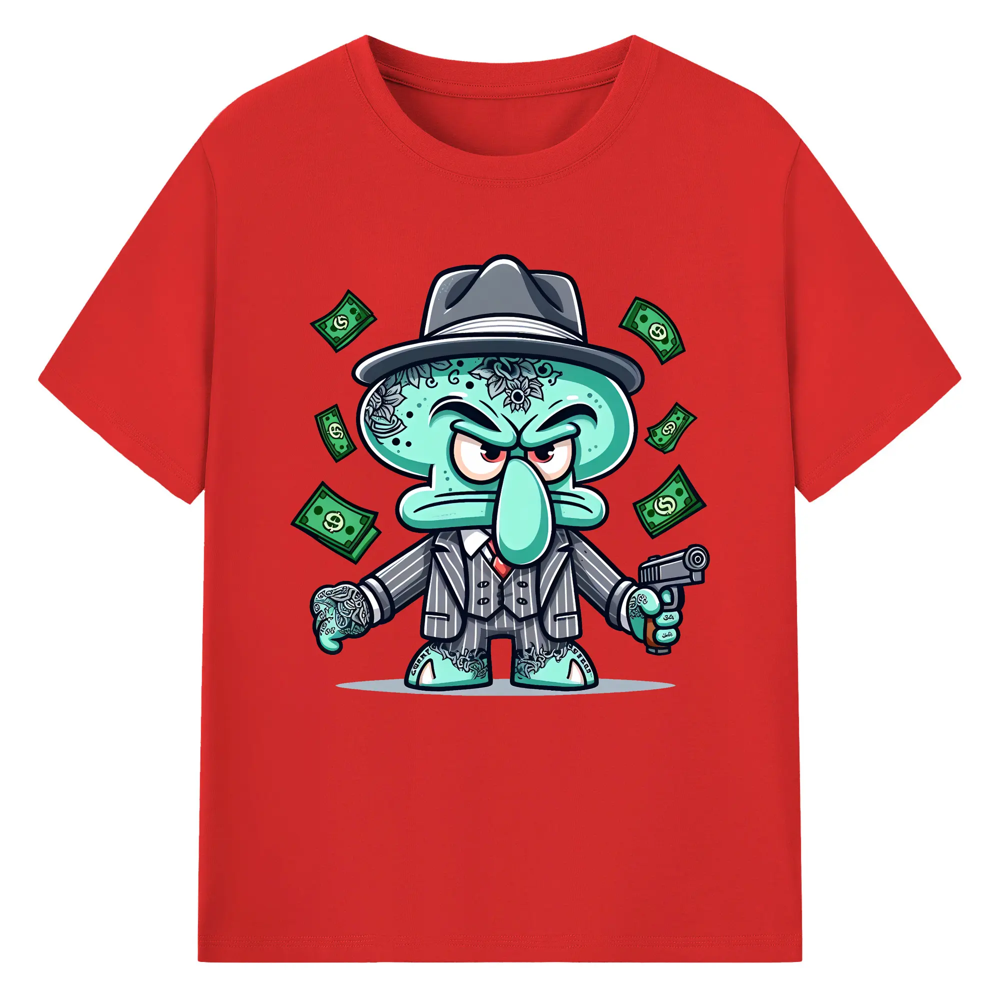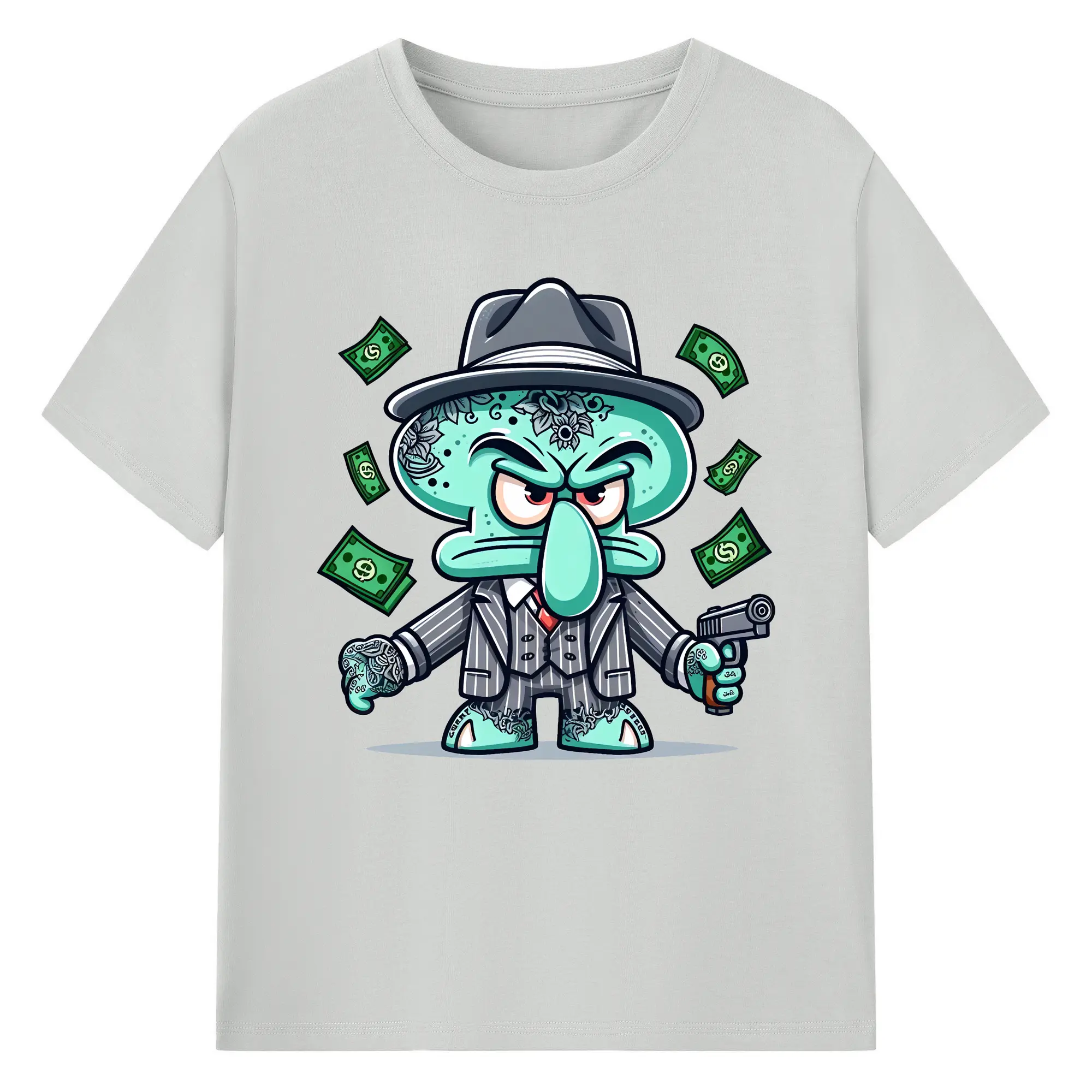 スポンジボブ グッズ イカルド - 綿100% 半袖Tシャツ ・ バックプリント ・ 快適 通気性 ・ 日常使い 散歩 スポーツ用