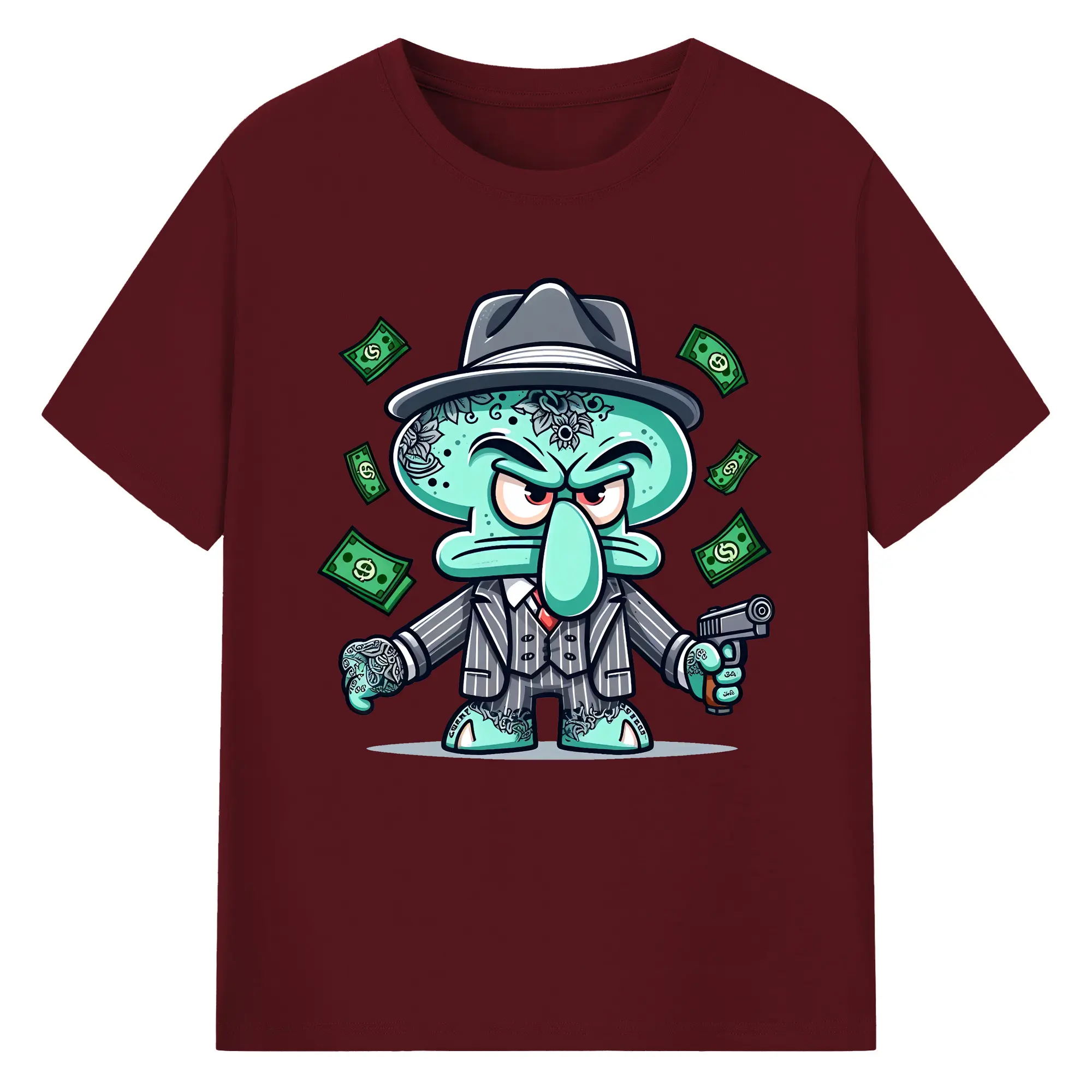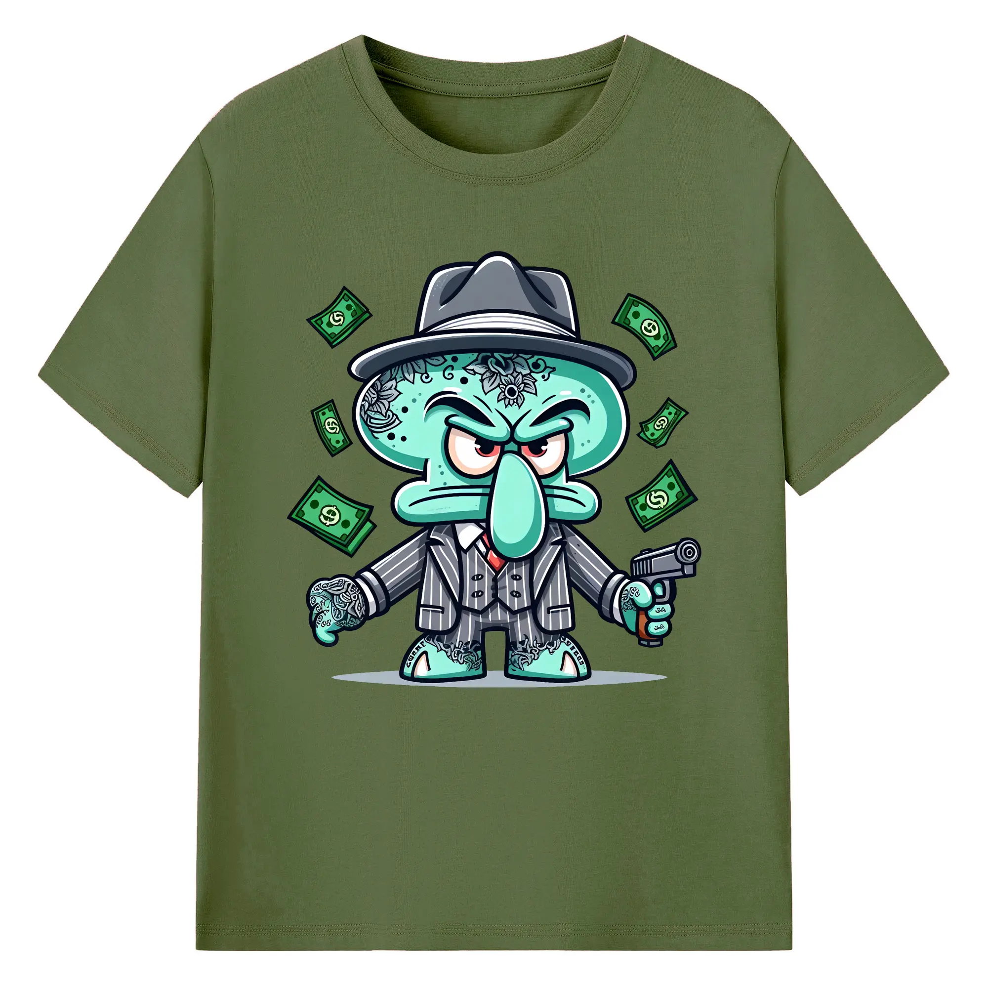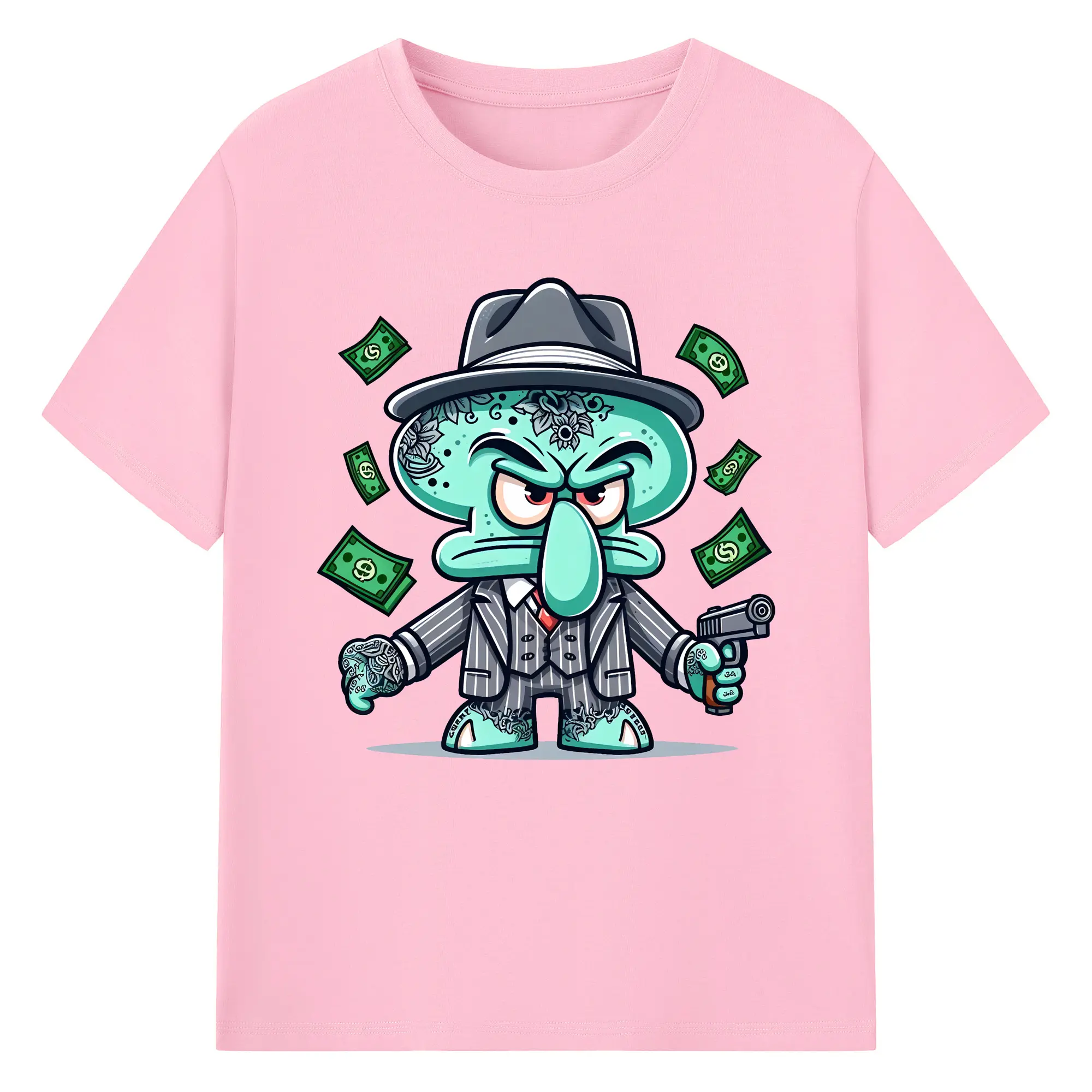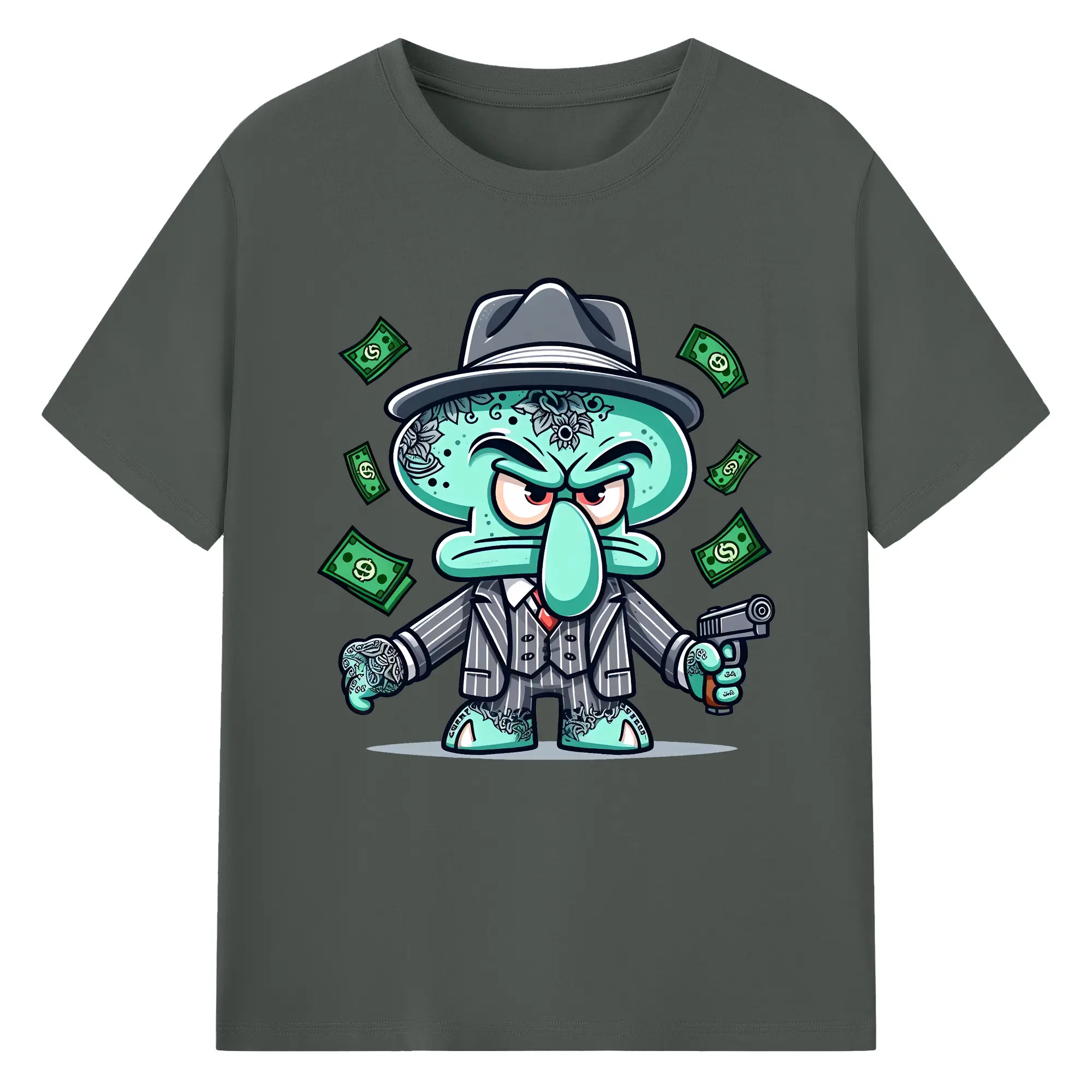 スポンジボブ グッズ イカルド - 綿100% 半袖Tシャツ ・ バックプリント ・ 快適 通気性 ・ 日常使い 散歩 スポーツ用