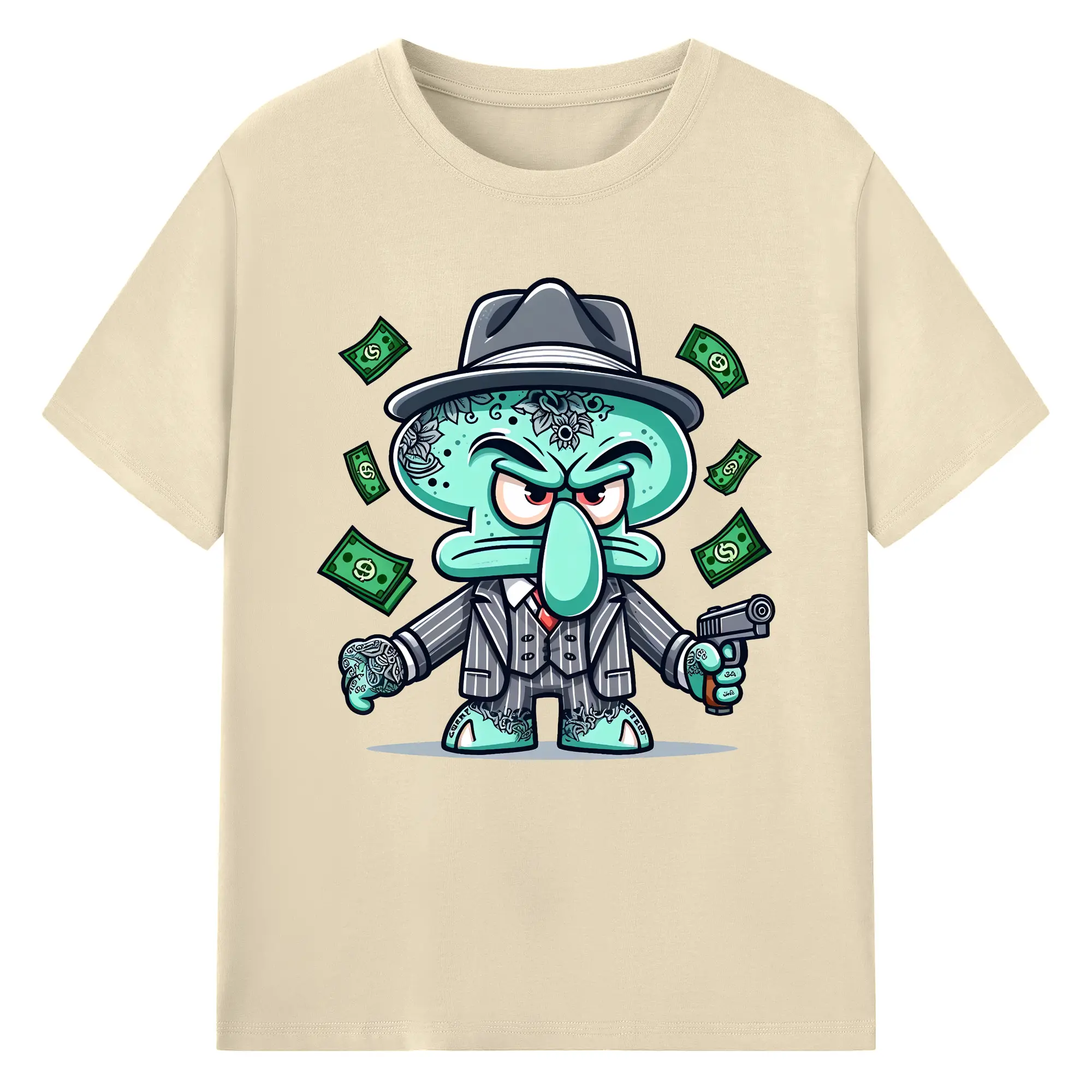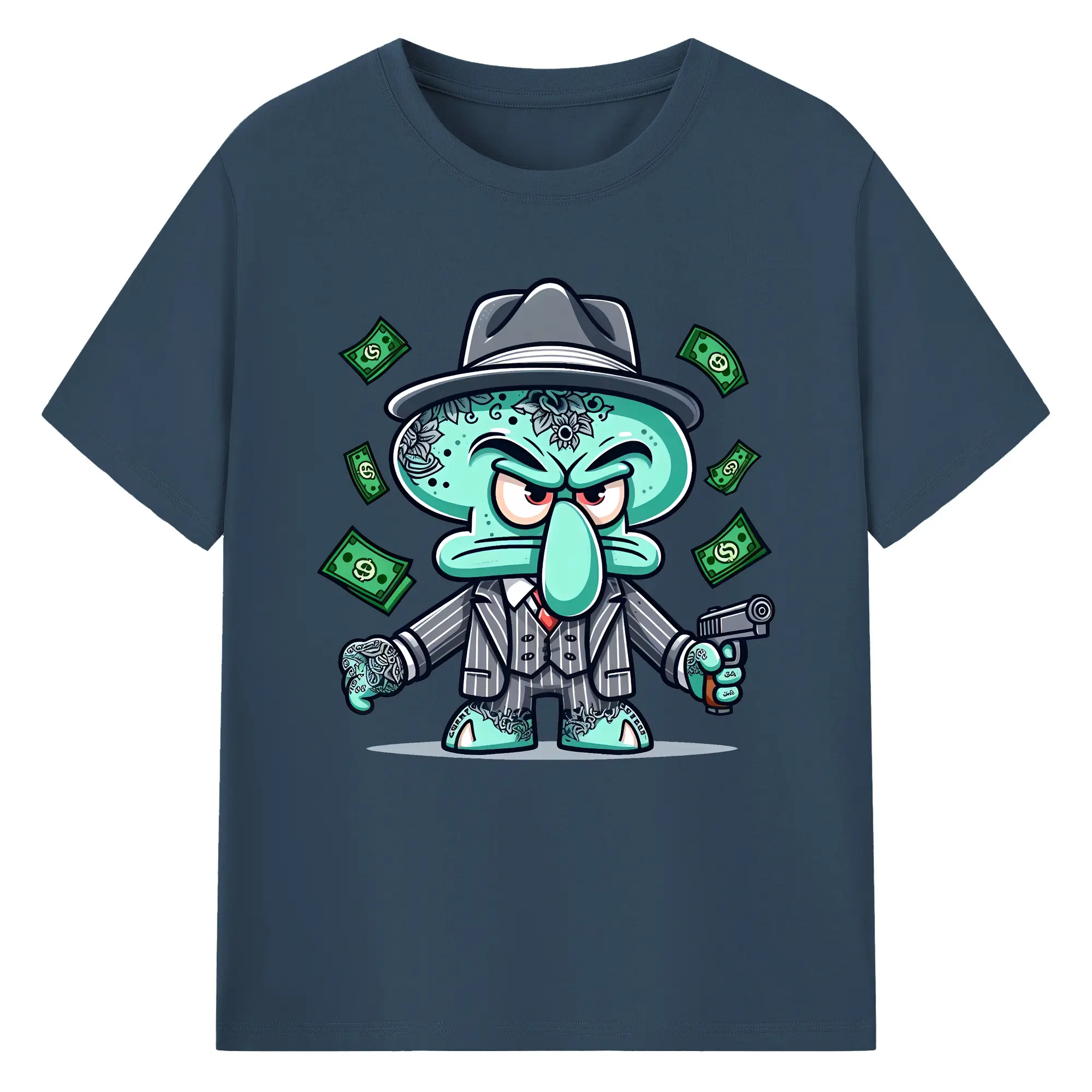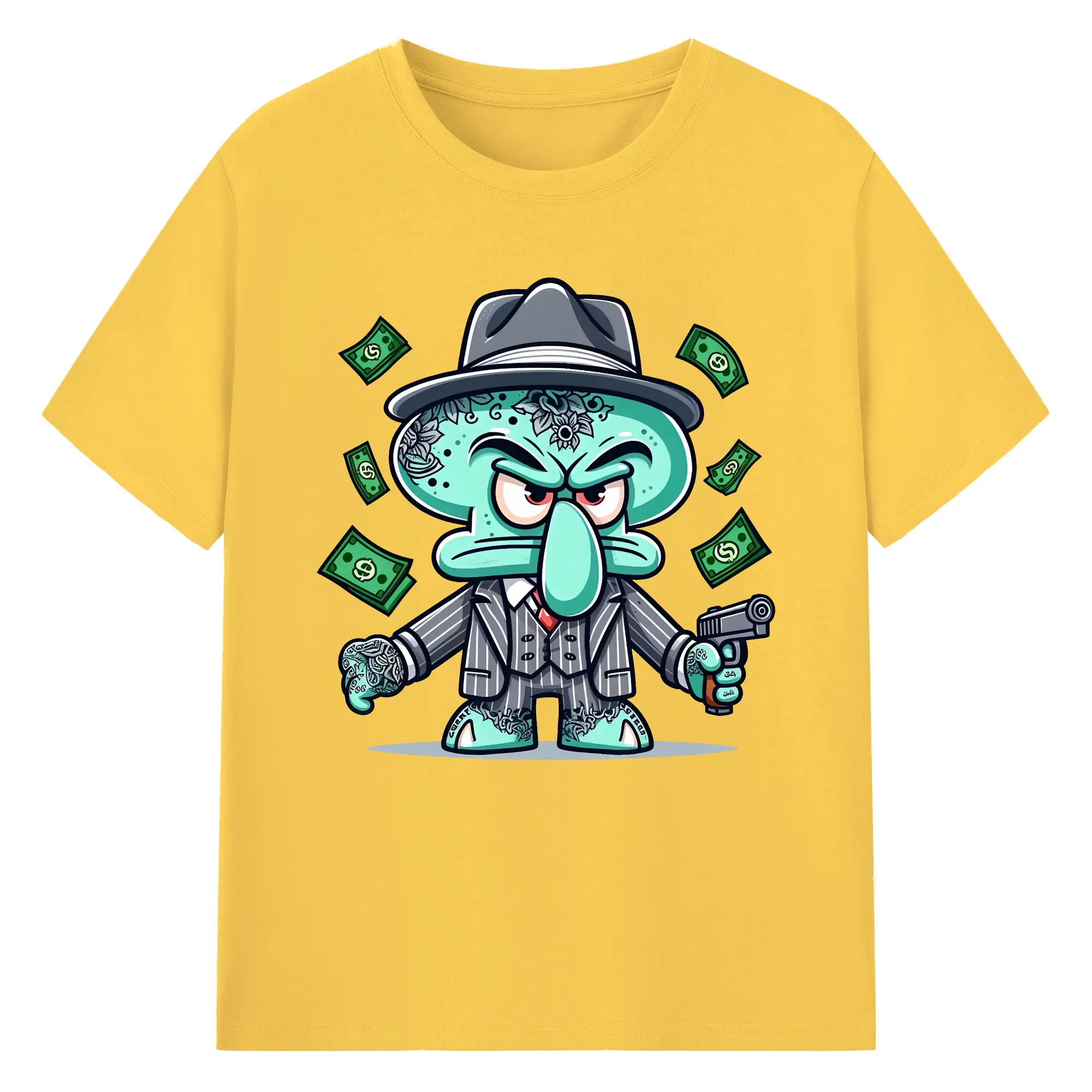 スポンジボブ グッズ イカルド - 綿100% ヴィンテージ風 半袖Tシャツ ・ フロントプリント ・ 柔らか肌触り ・ 通気性 快適 ・ スポーツ カジュアル 外出用