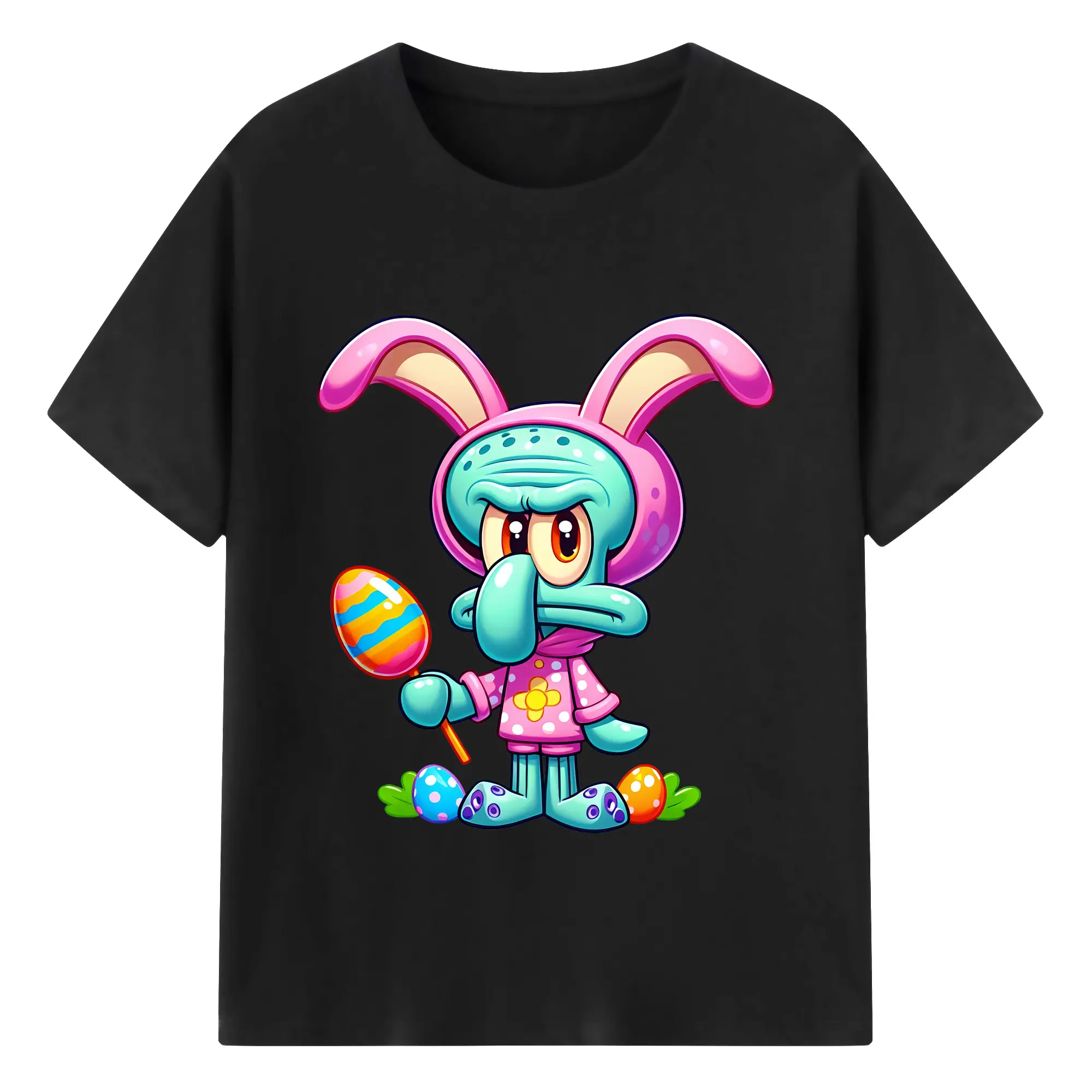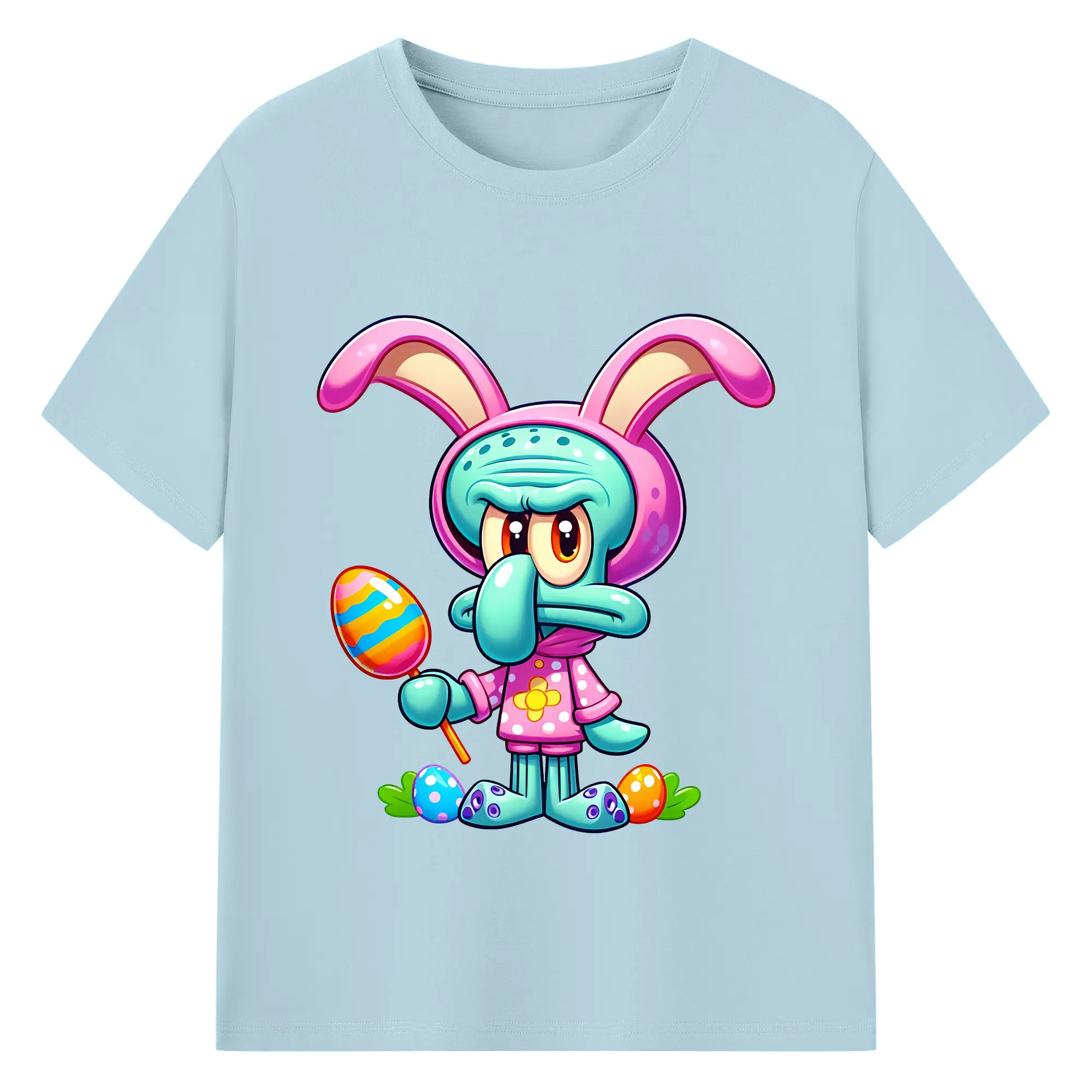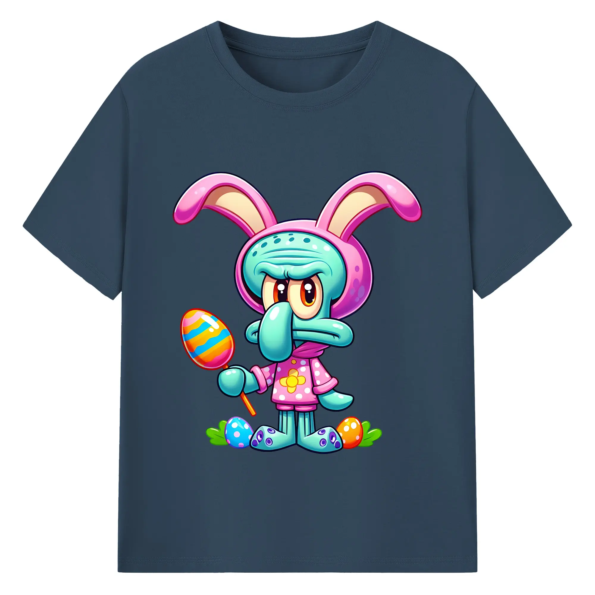 スポンジボブ グッズ イカルド - 綿100% 半袖Tシャツ ・ バックプリント ・ 快適 通気性 ・ 日常使い 散歩 スポーツ用