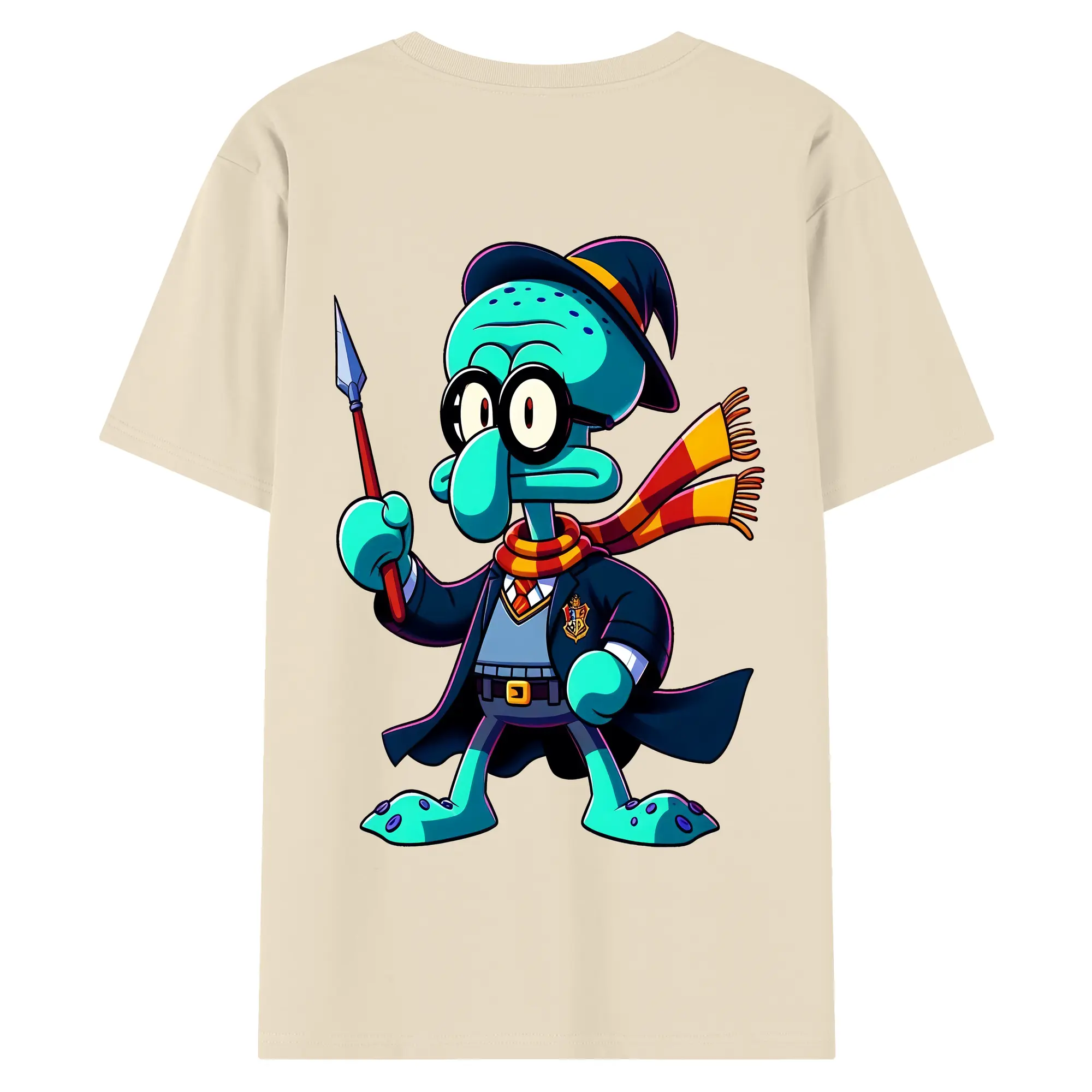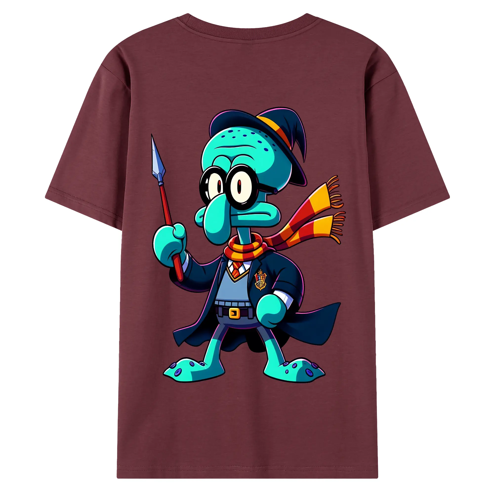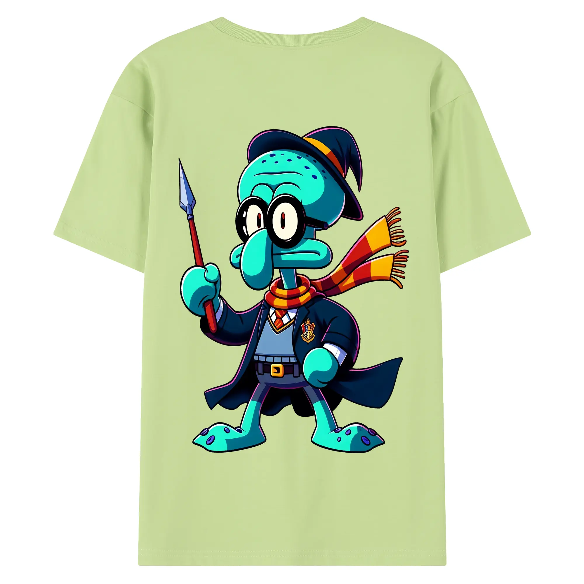 スポンジボブ グッズ イカルド - 綿100% ヴィンテージ風 半袖Tシャツ ・ 背面プリント ・ 柔らか肌触り ・ 通気性 快適 ・ スポーツ カジュアル 外出用