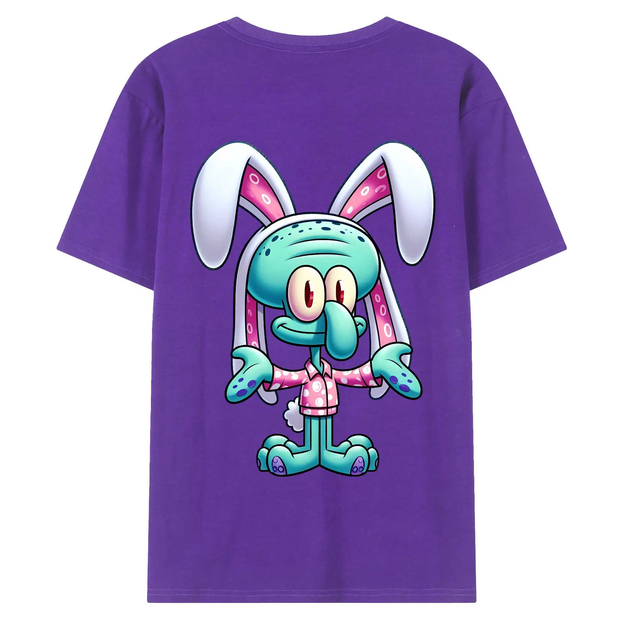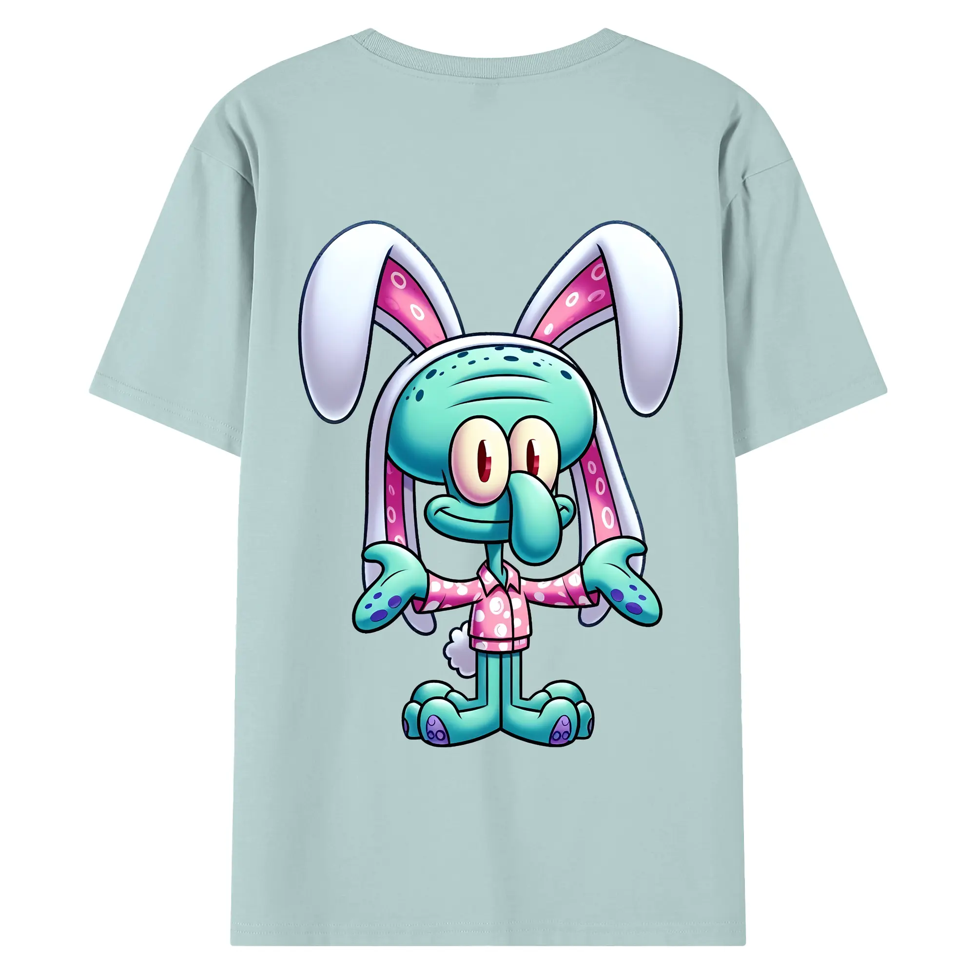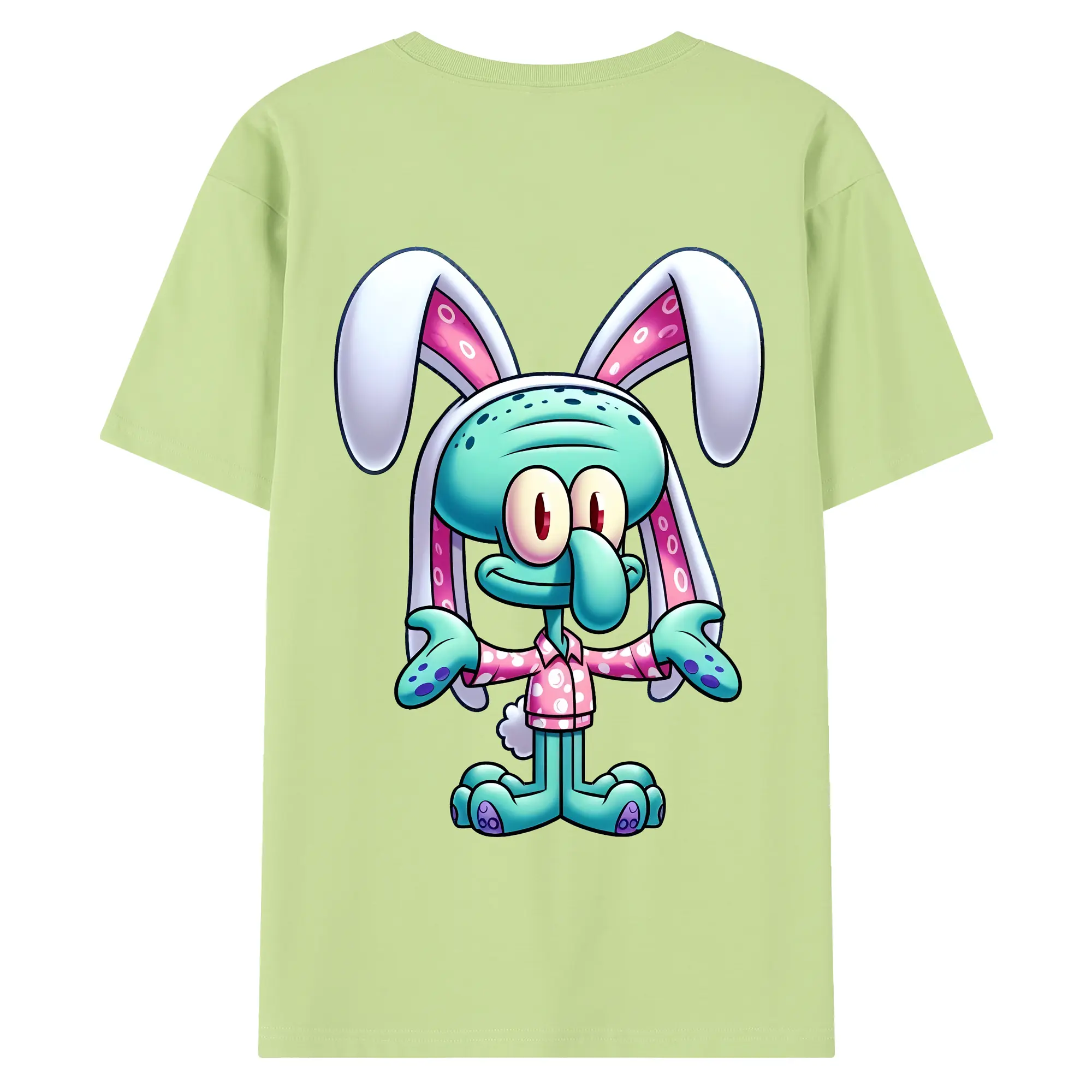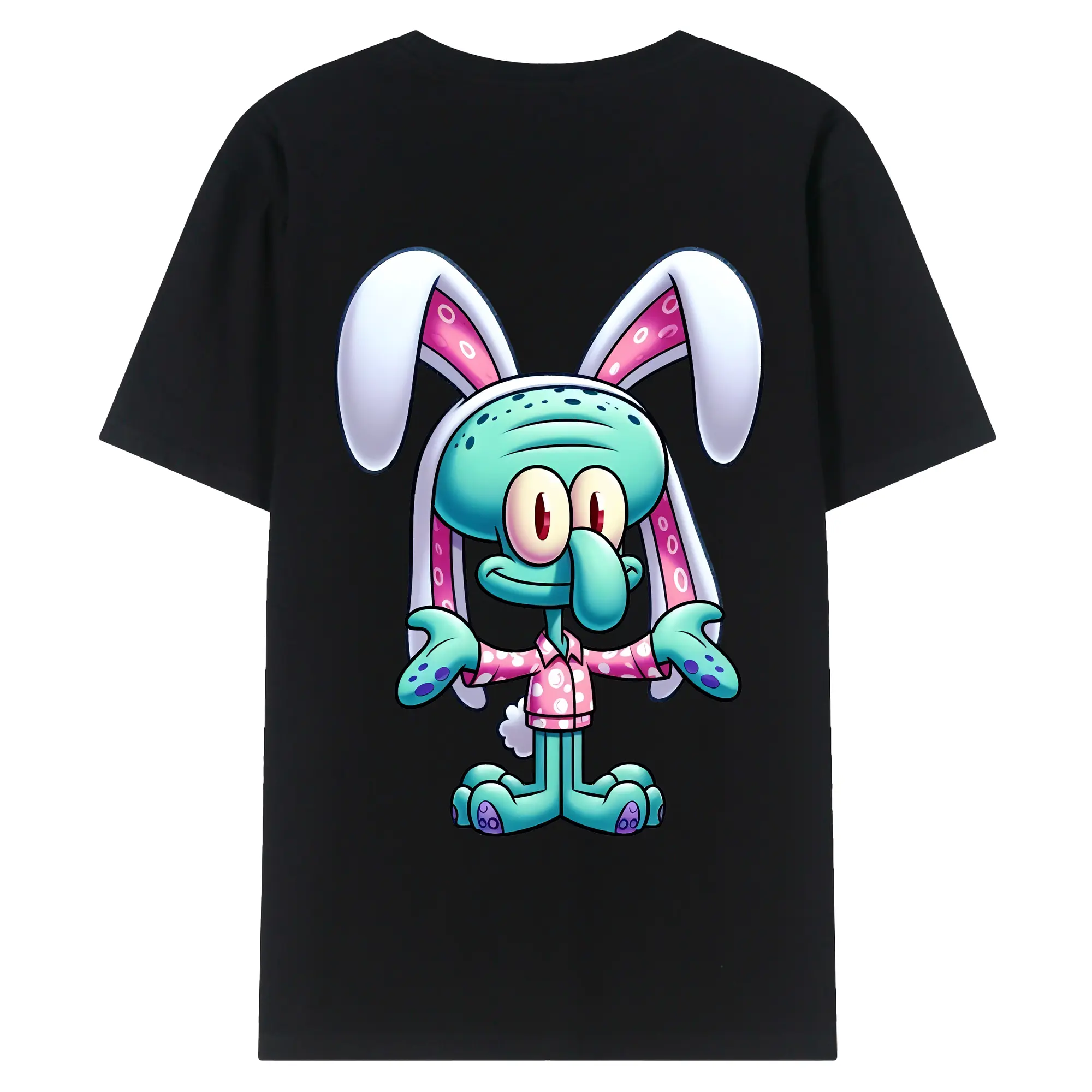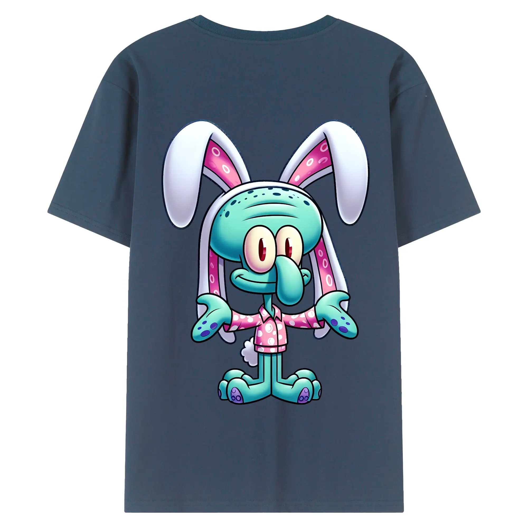 スポンジボブ グッズ イカルド - 綿100% ヴィンテージ風 半袖Tシャツ ・ 背面プリント ・ 柔らか肌触り ・ 通気性 快適 ・ スポーツ カジュアル 外出用