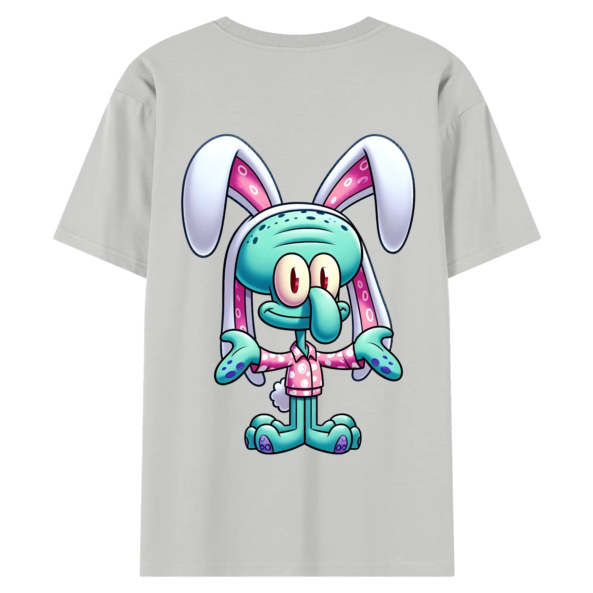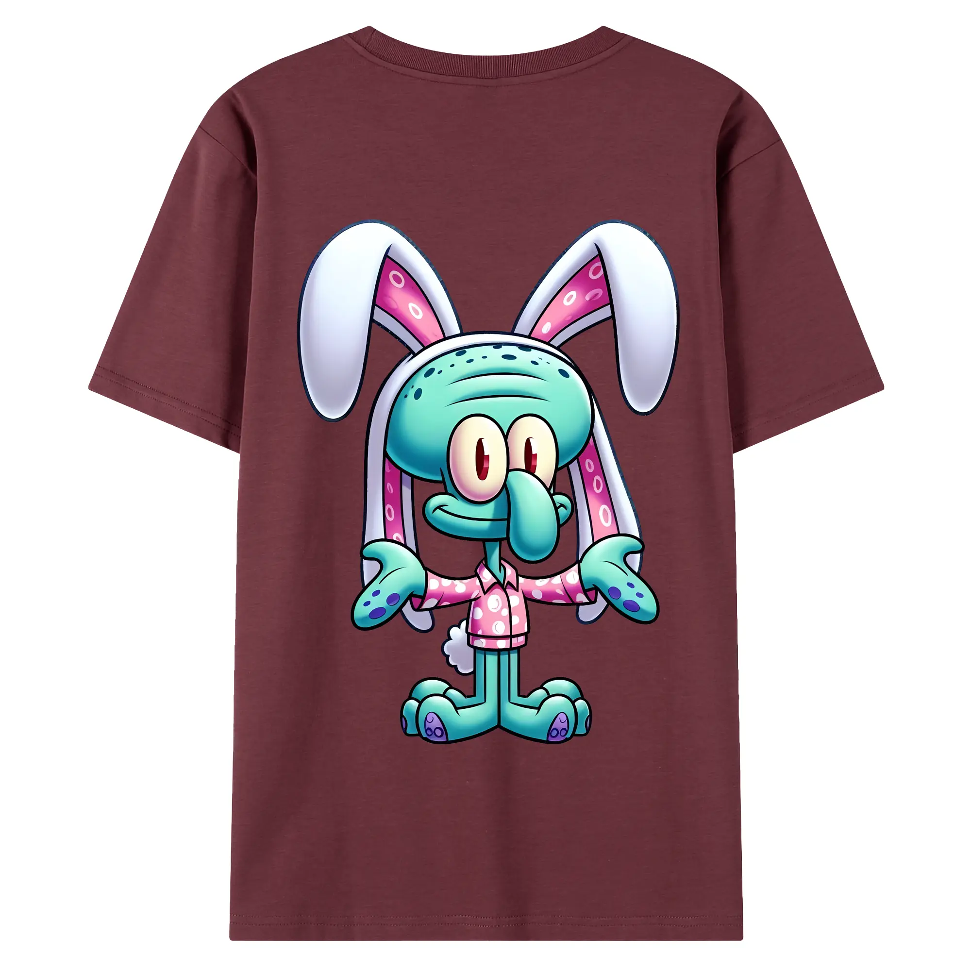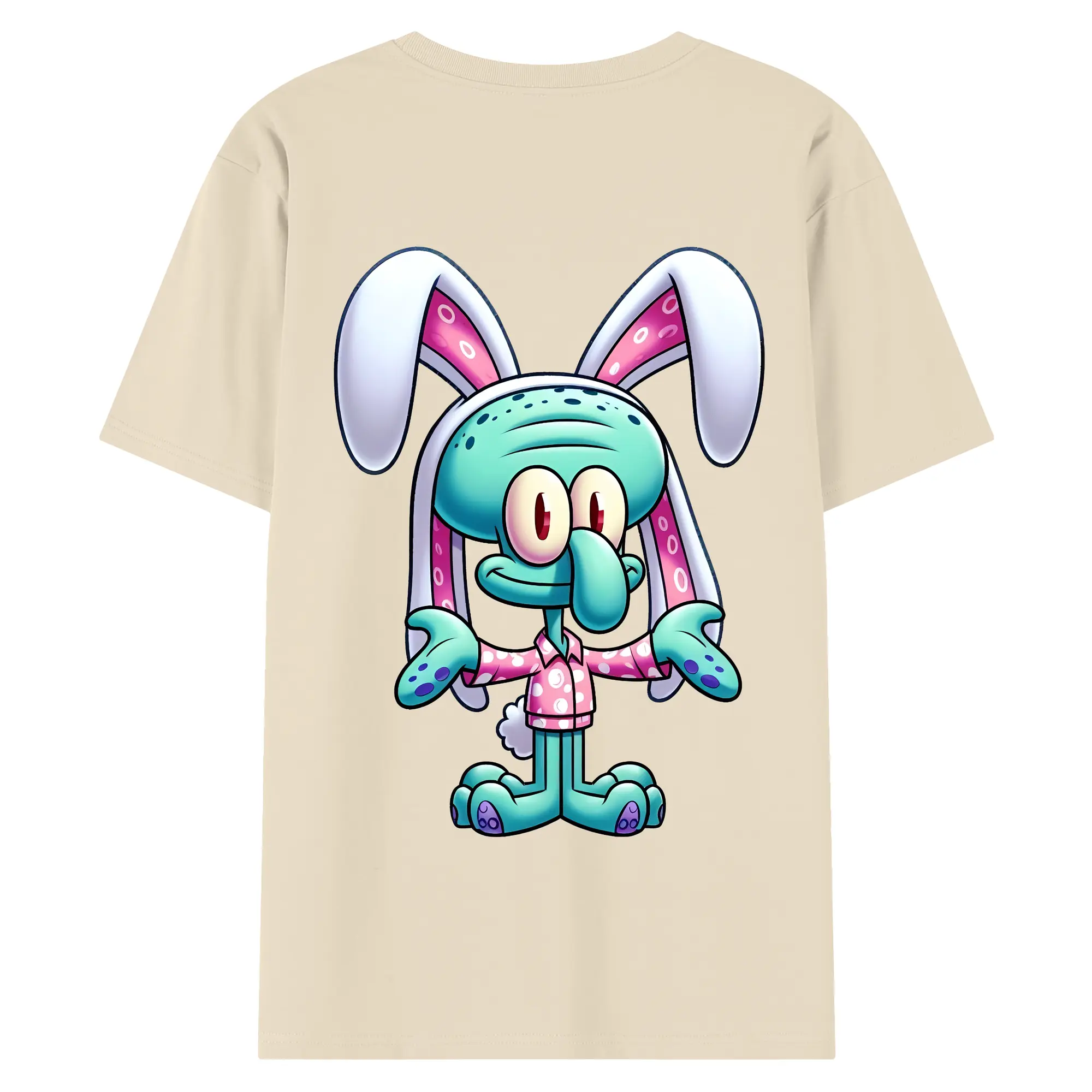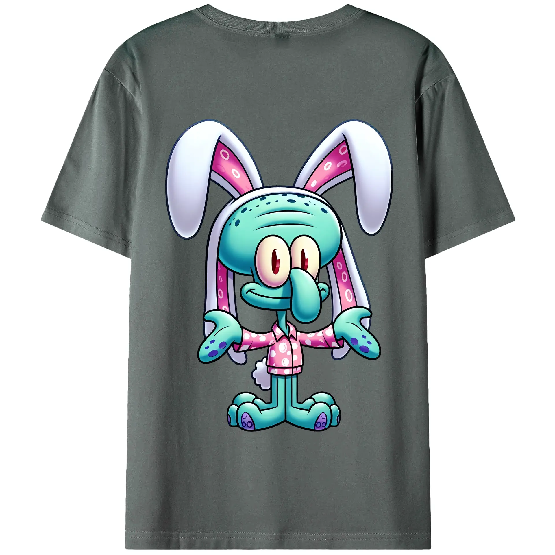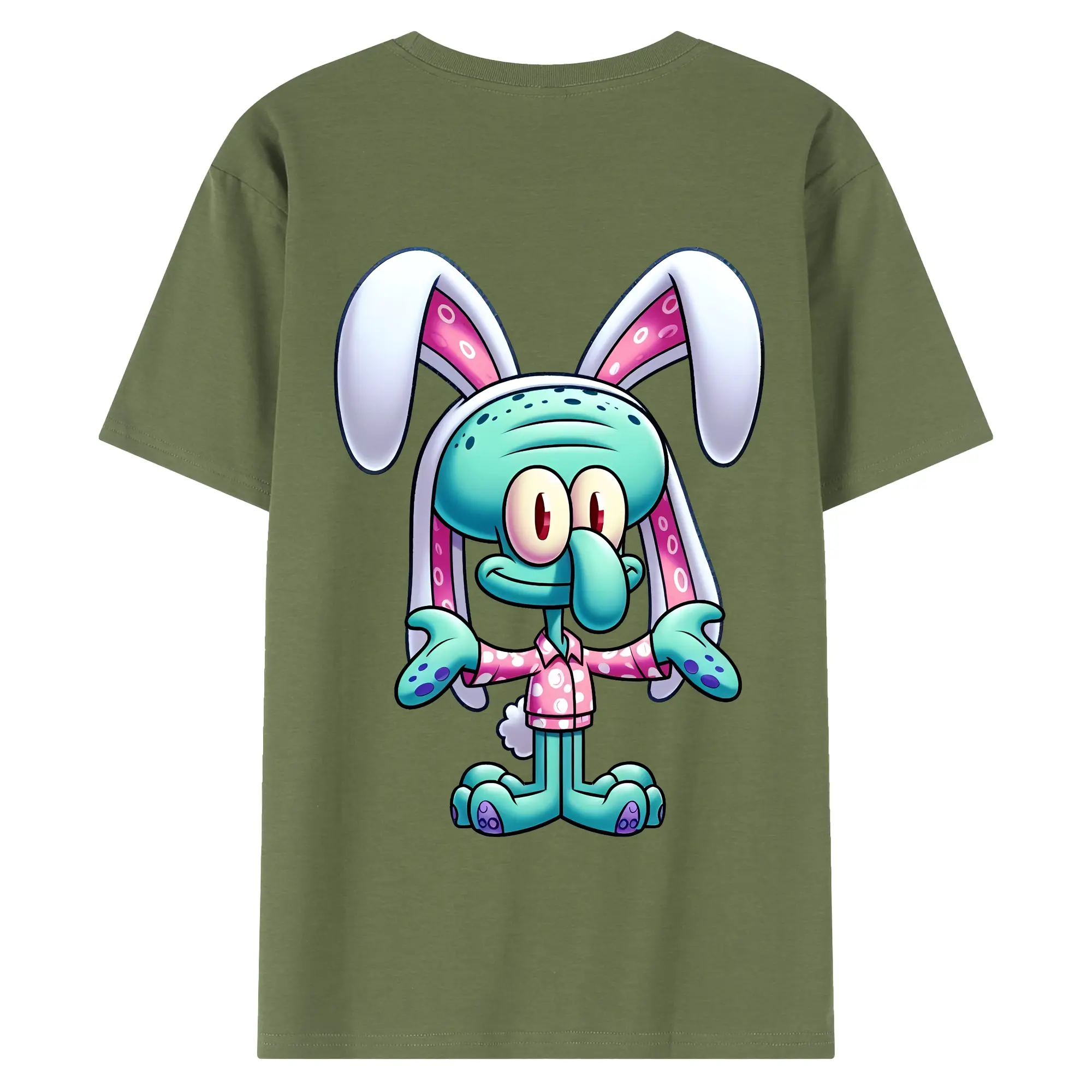 スポンジボブ グッズ イカルド - 綿100% ヴィンテージ風 半袖Tシャツ ・ 背面プリント ・ 柔らか肌触り ・ 通気性 快適 ・ スポーツ カジュアル 外出用
