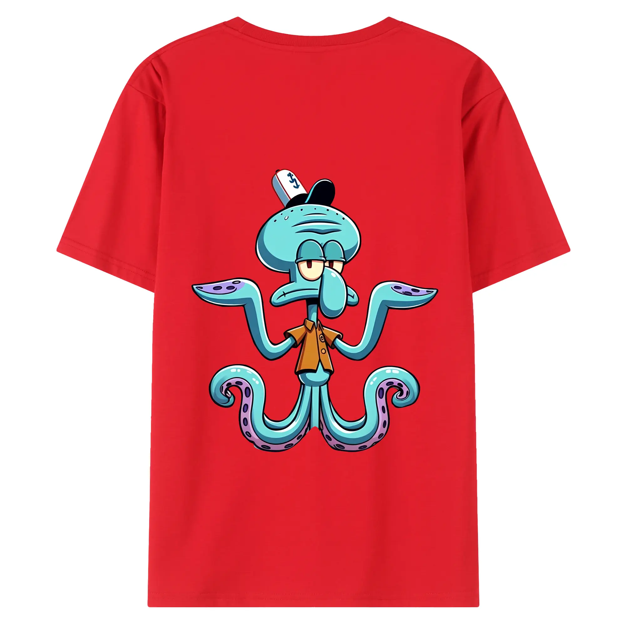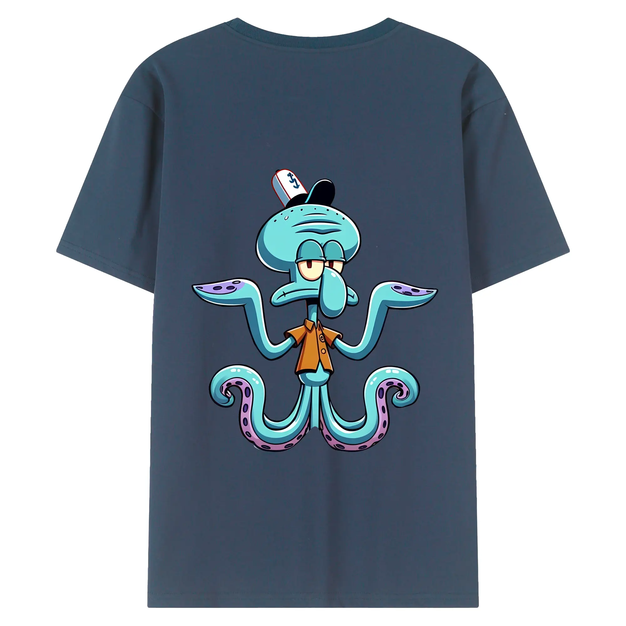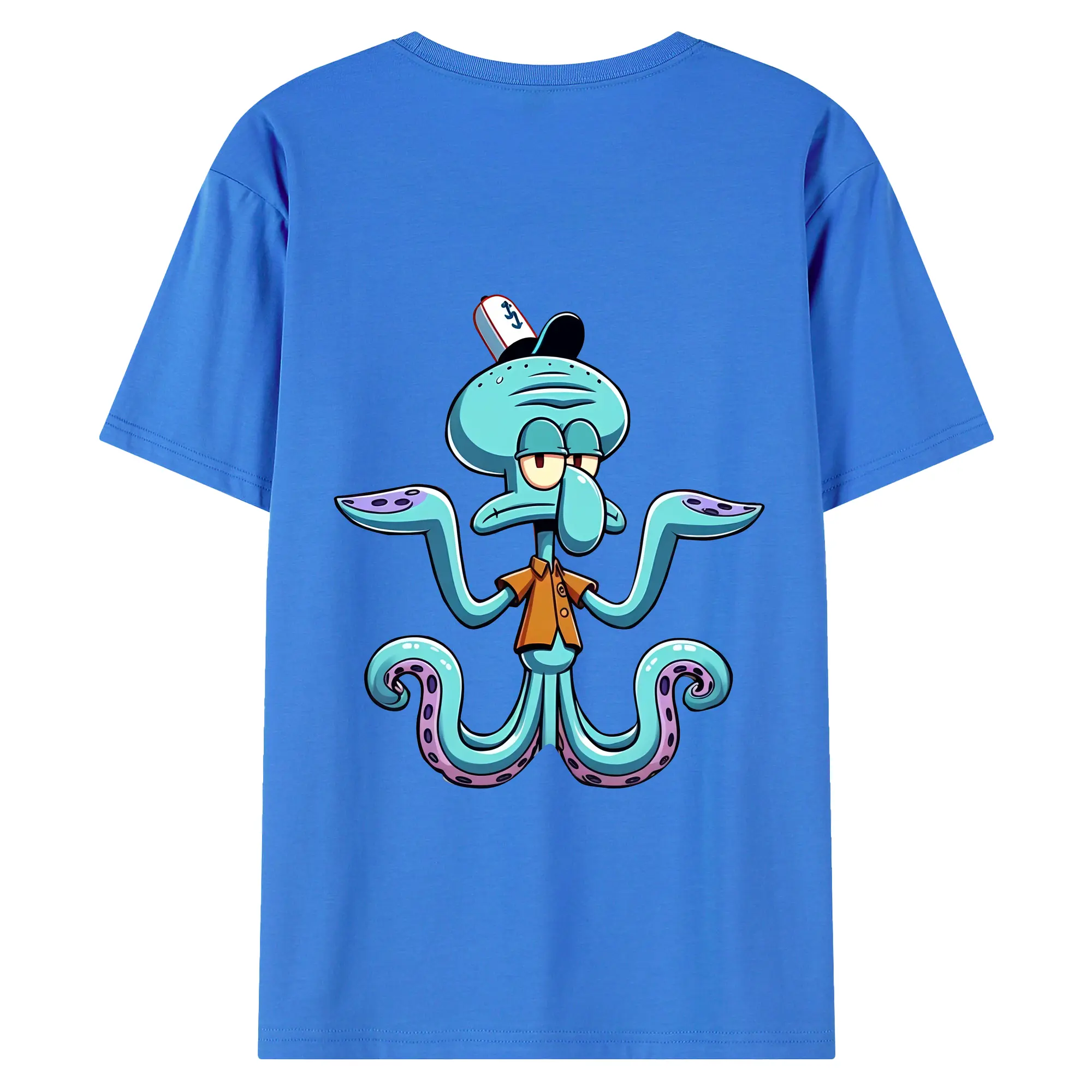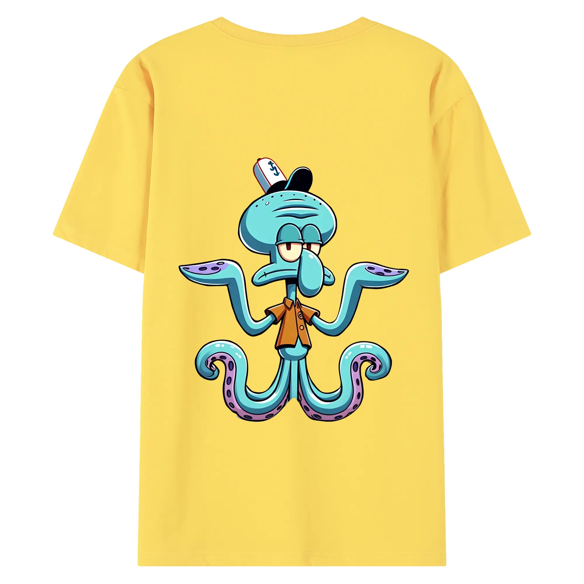 スポンジボブ グッズ イカルド - 綿100% 半袖Tシャツ ・ フロントプリント ・ 快適 通気性 ・ 日常使い 散歩 スポーツ用