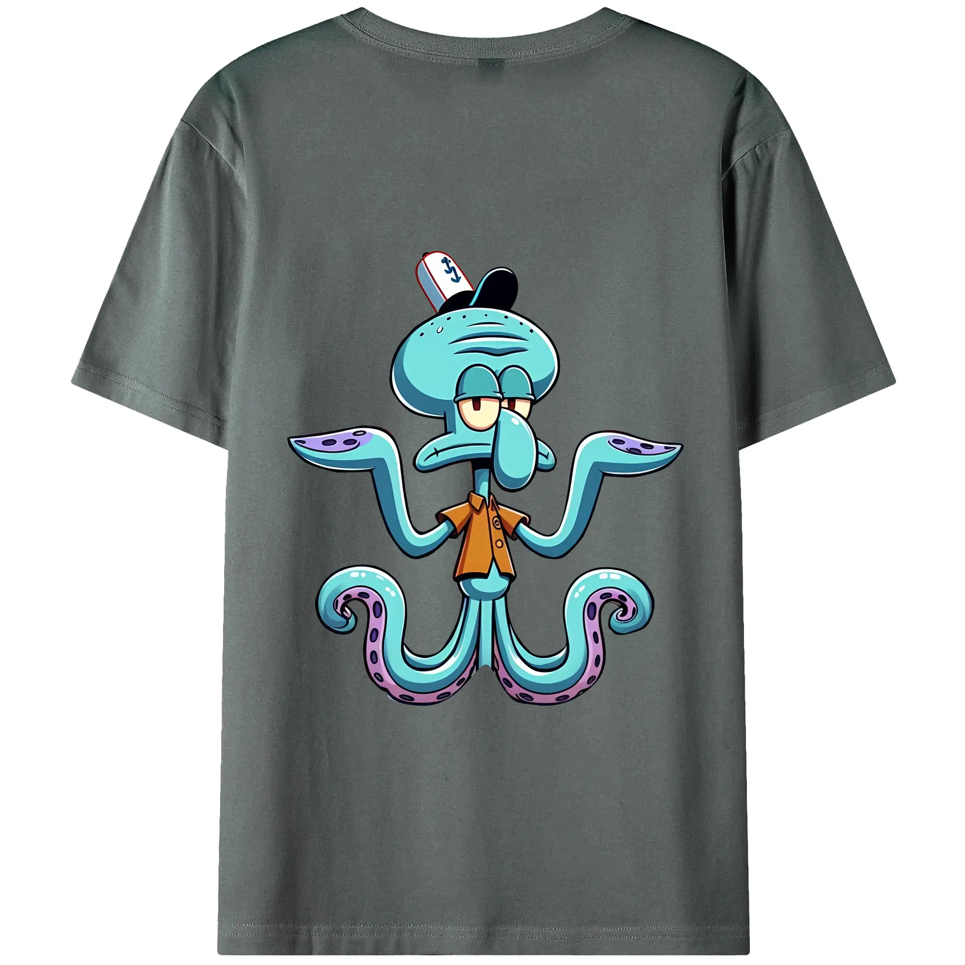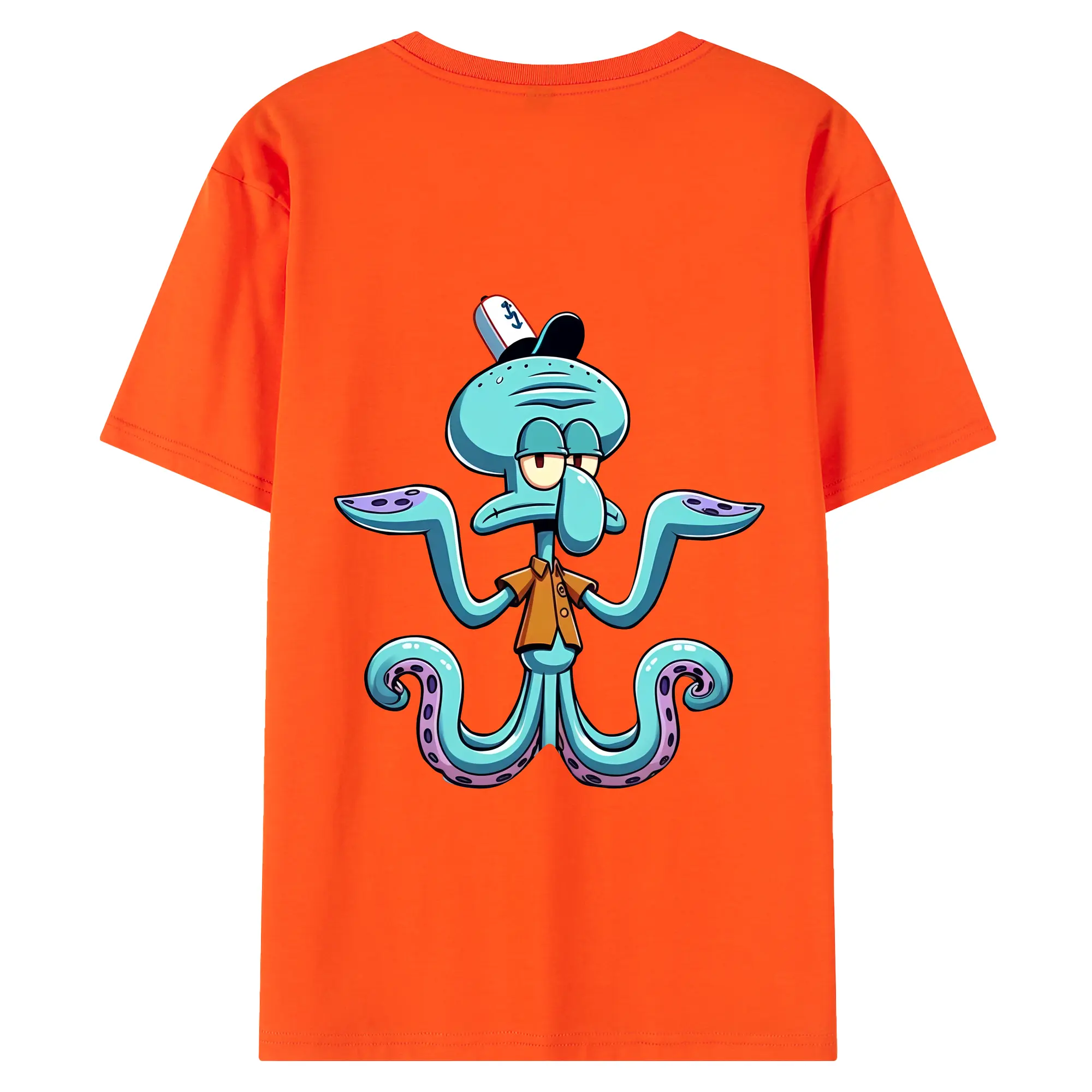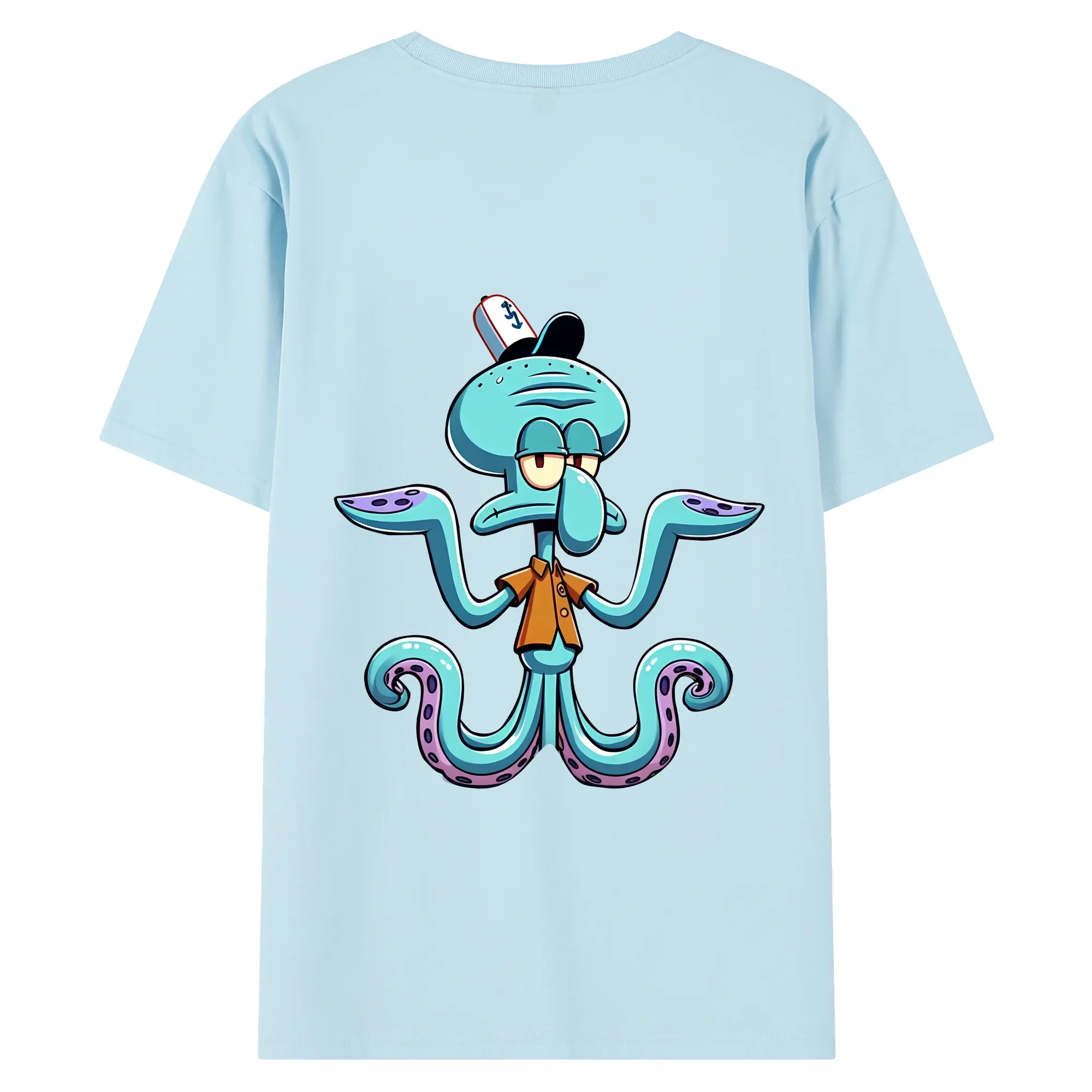 スポンジボブ グッズ イカルド - 綿100% 半袖Tシャツ ・ フロントプリント ・ 快適 通気性 ・ 日常使い 散歩 スポーツ用