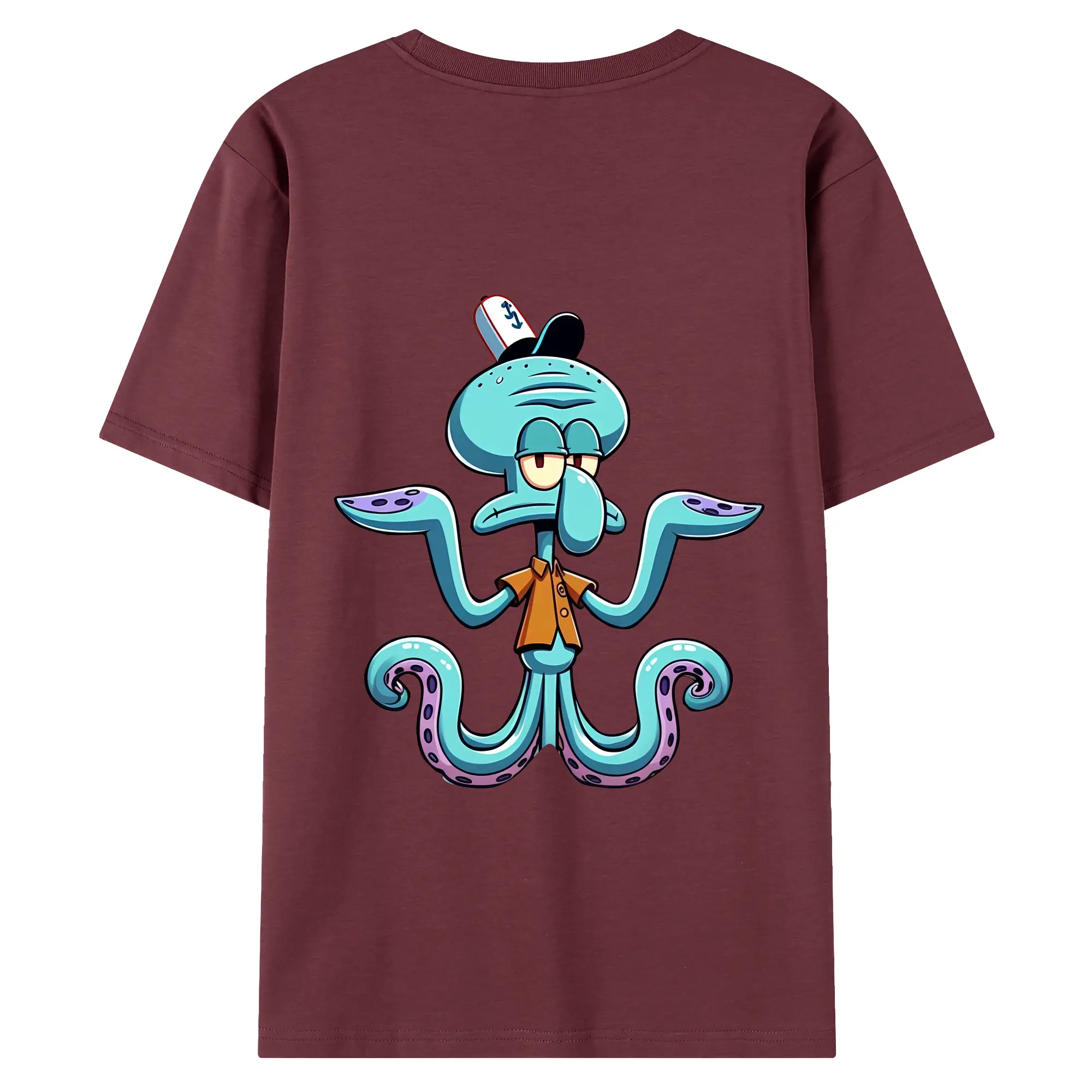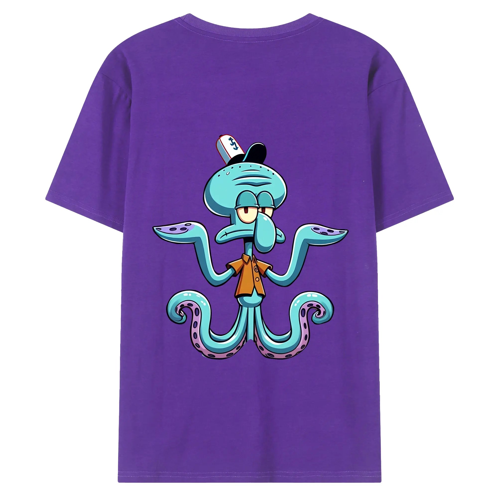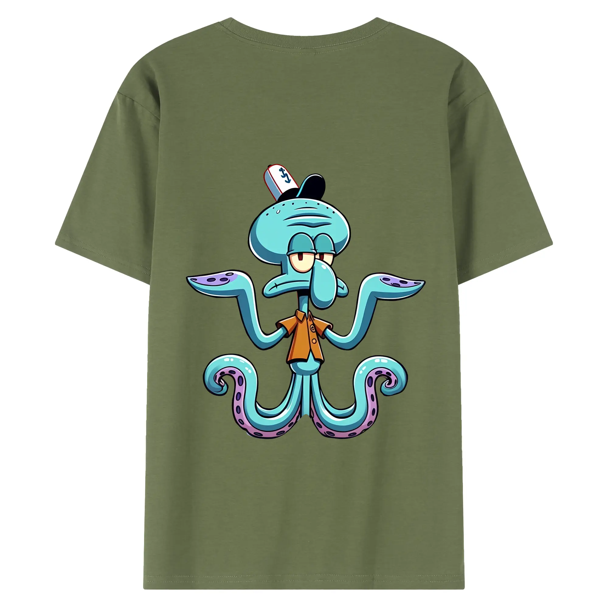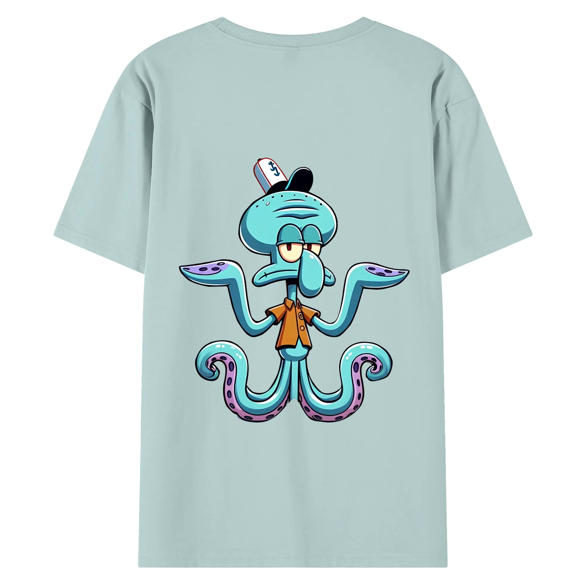 スポンジボブ グッズ イカルド - 綿100% 半袖Tシャツ ・ フロントプリント ・ 快適 通気性 ・ 日常使い 散歩 スポーツ用