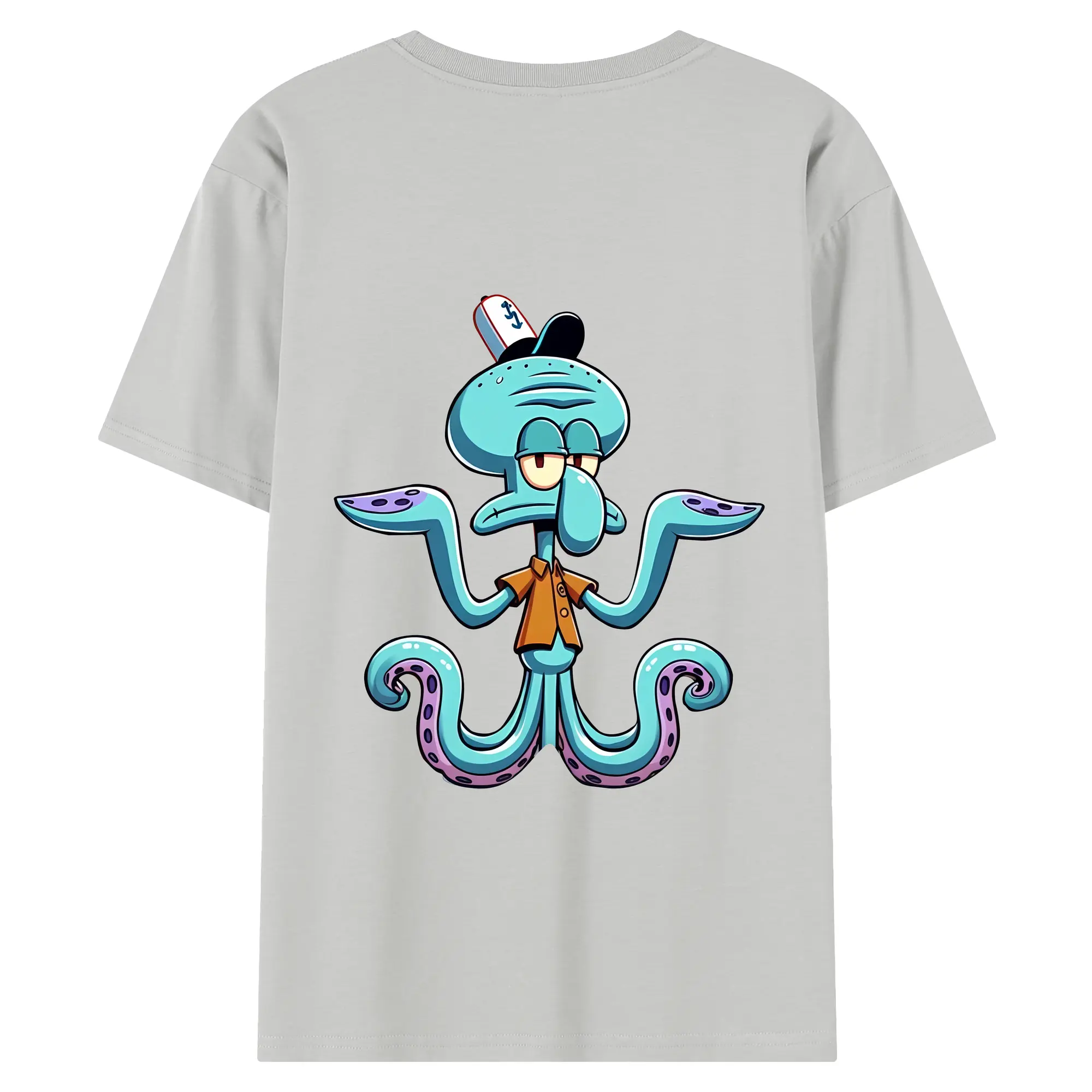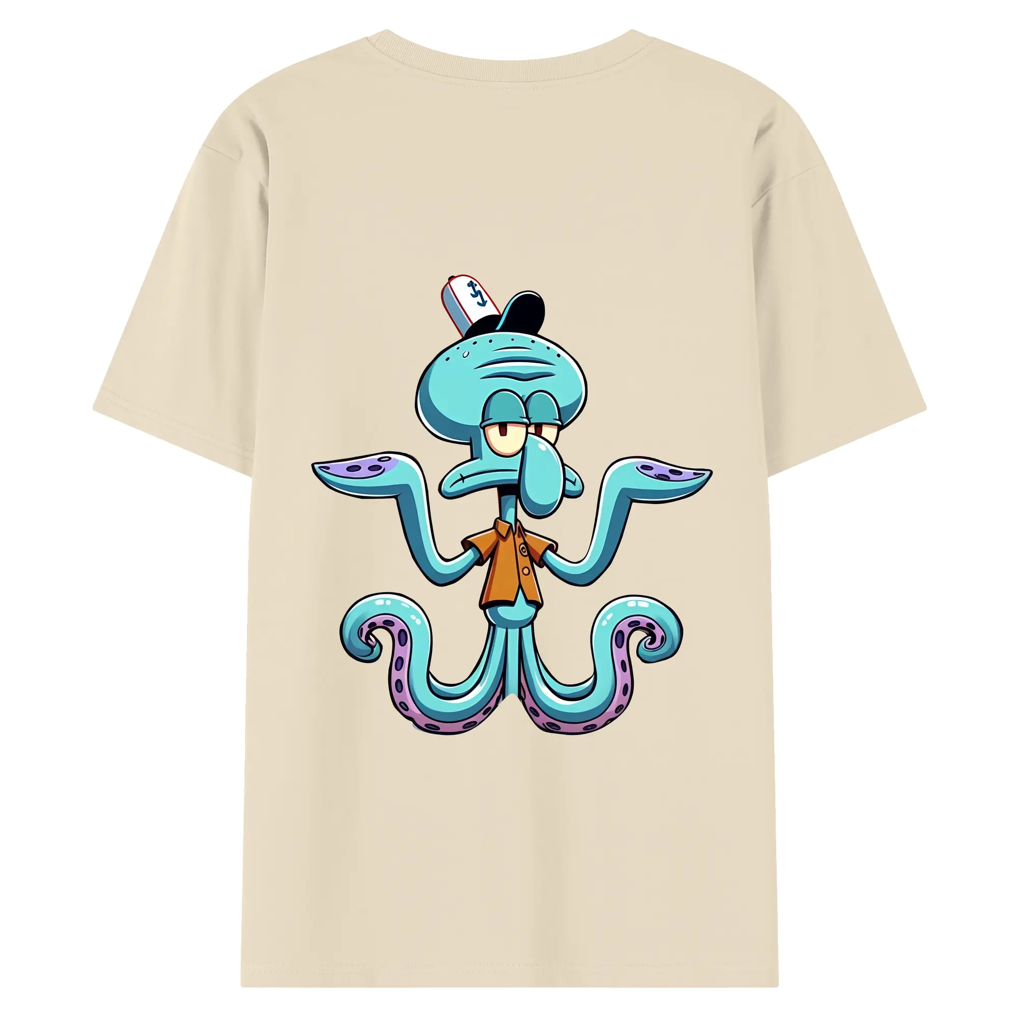 スポンジボブ グッズ イカルド - 綿100% ヴィンテージ風 半袖Tシャツ ・ 背面プリント ・ 柔らか肌触り ・ 通気性 快適 ・ スポーツ カジュアル 外出用