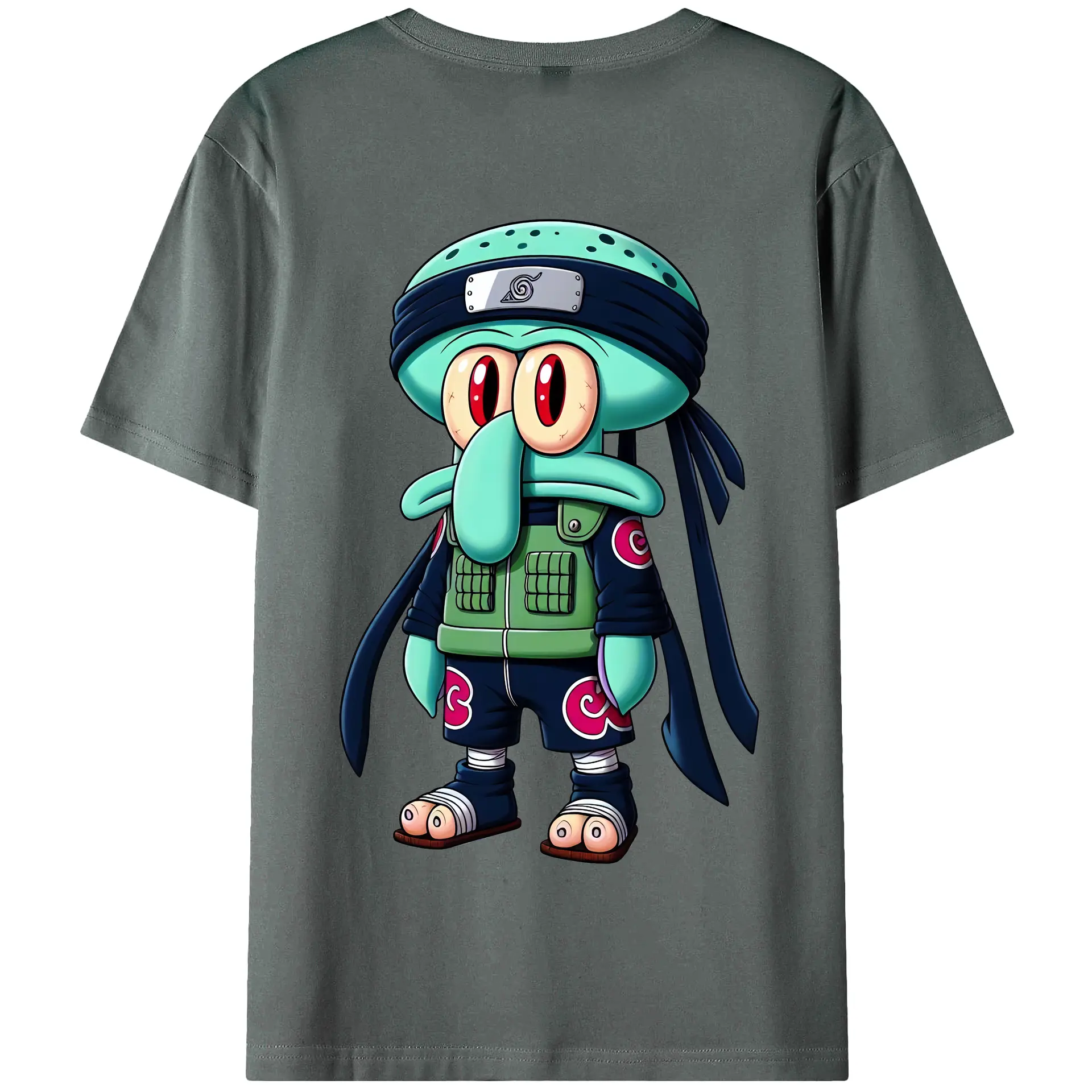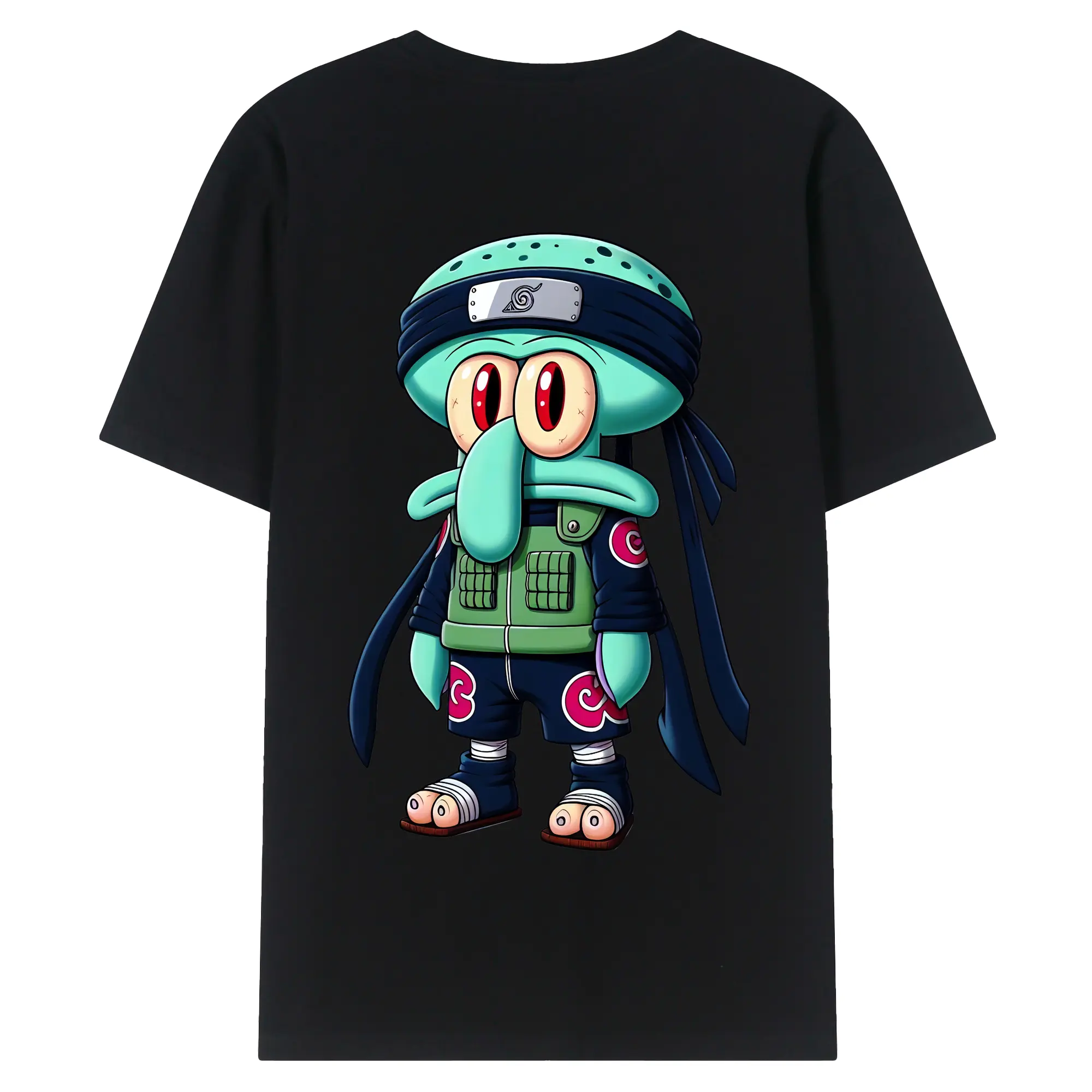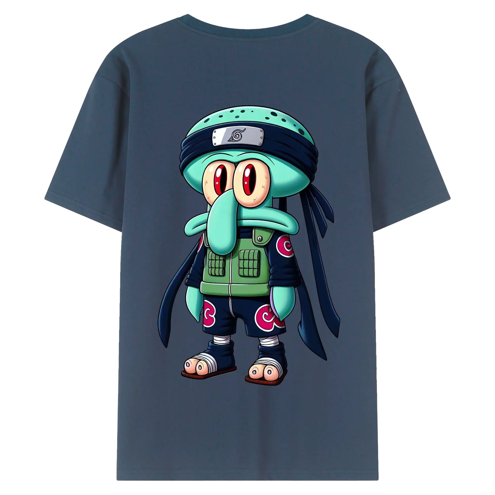 スポンジボブ グッズ イカルド - 綿100% ヴィンテージ風 半袖Tシャツ ・ 背面プリント ・ 柔らか肌触り ・ 通気性 快適 ・ スポーツ カジュアル 外出用