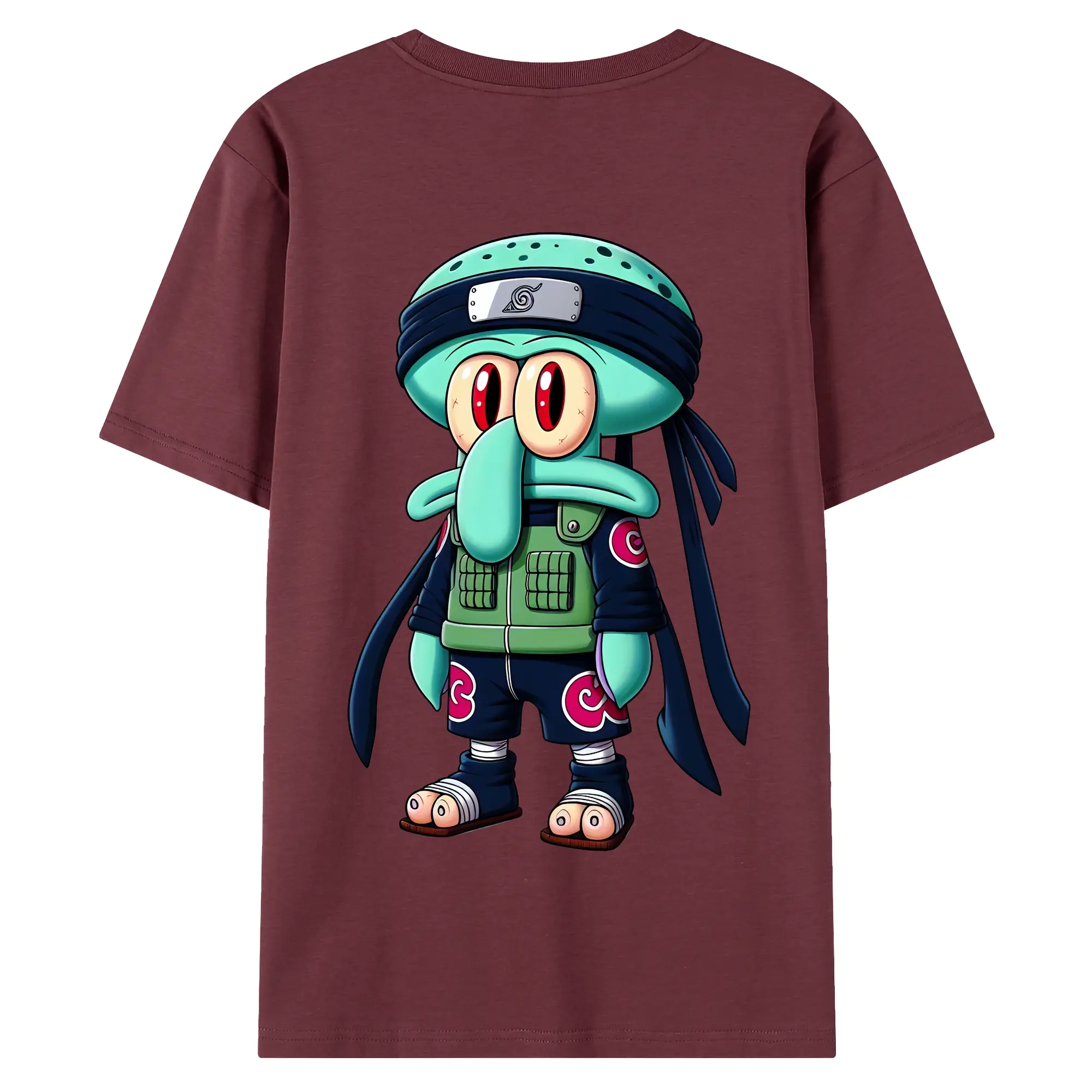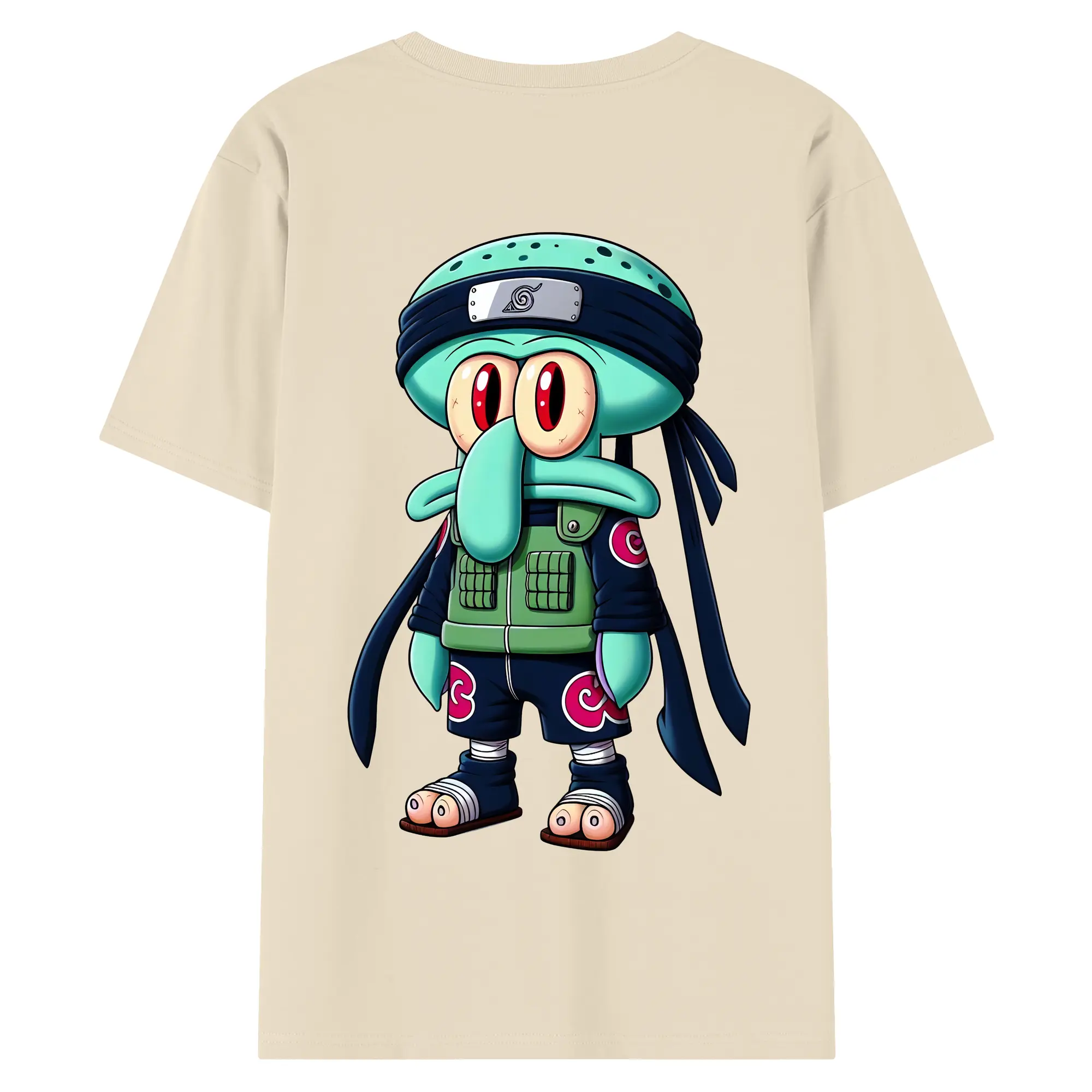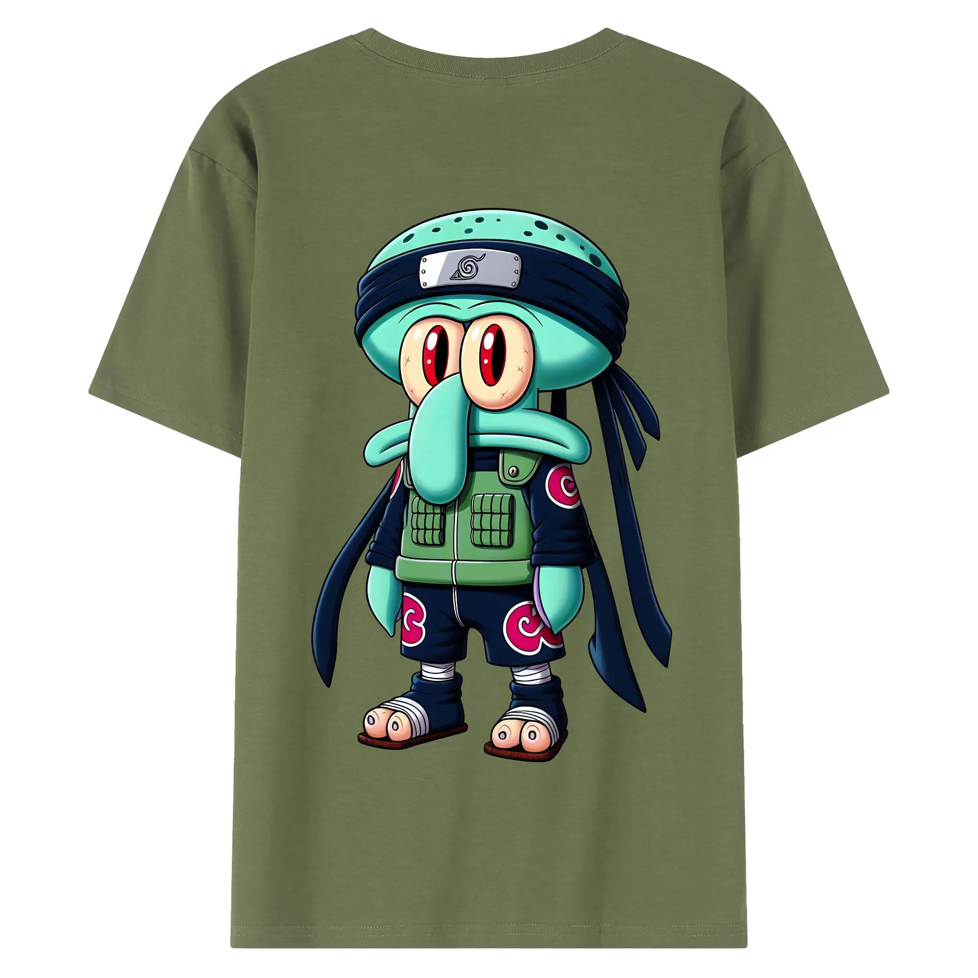 スポンジボブ グッズ イカルド - 綿100% ヴィンテージ風 半袖Tシャツ ・ 背面プリント ・ 柔らか肌触り ・ 通気性 快適 ・ スポーツ カジュアル 外出用
