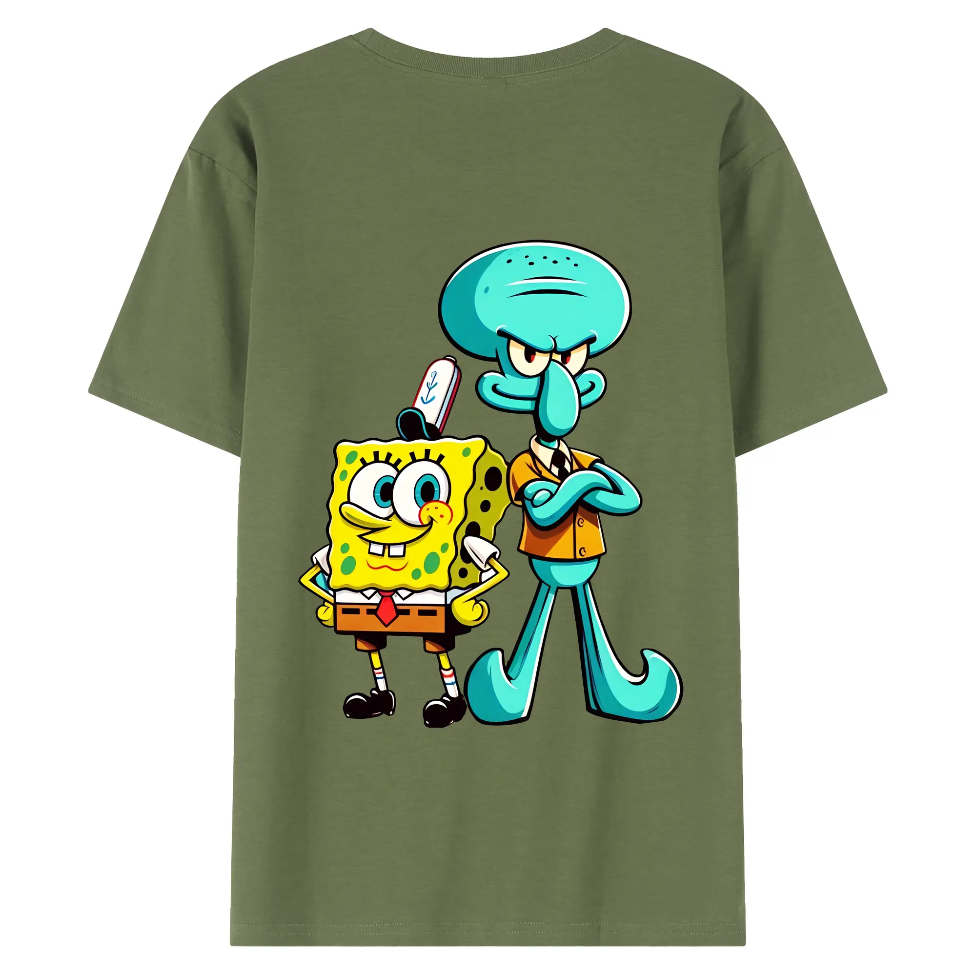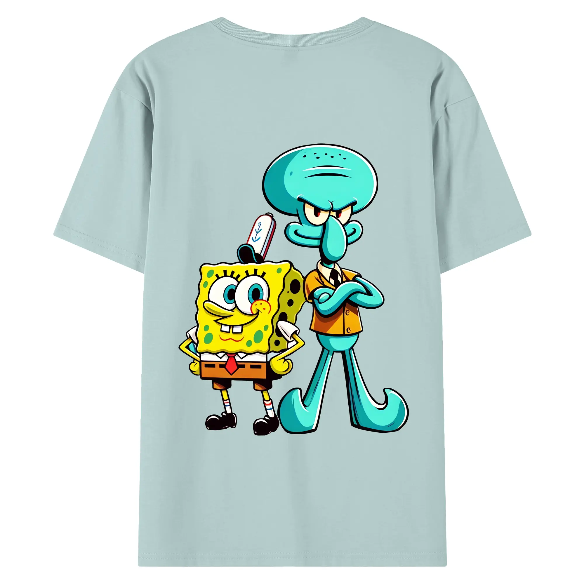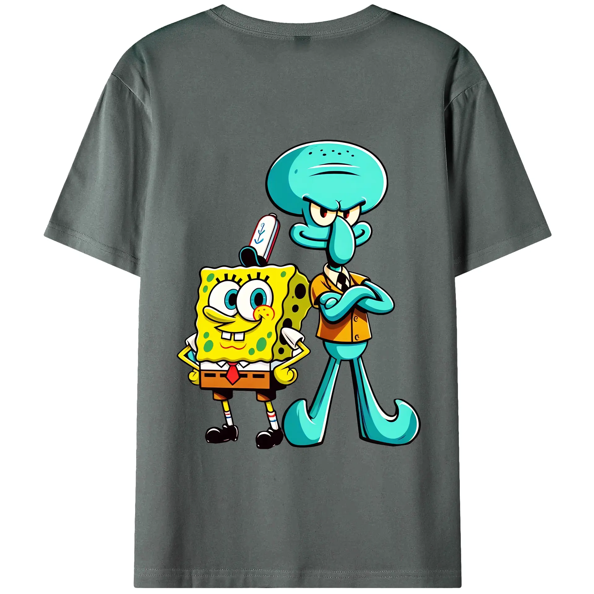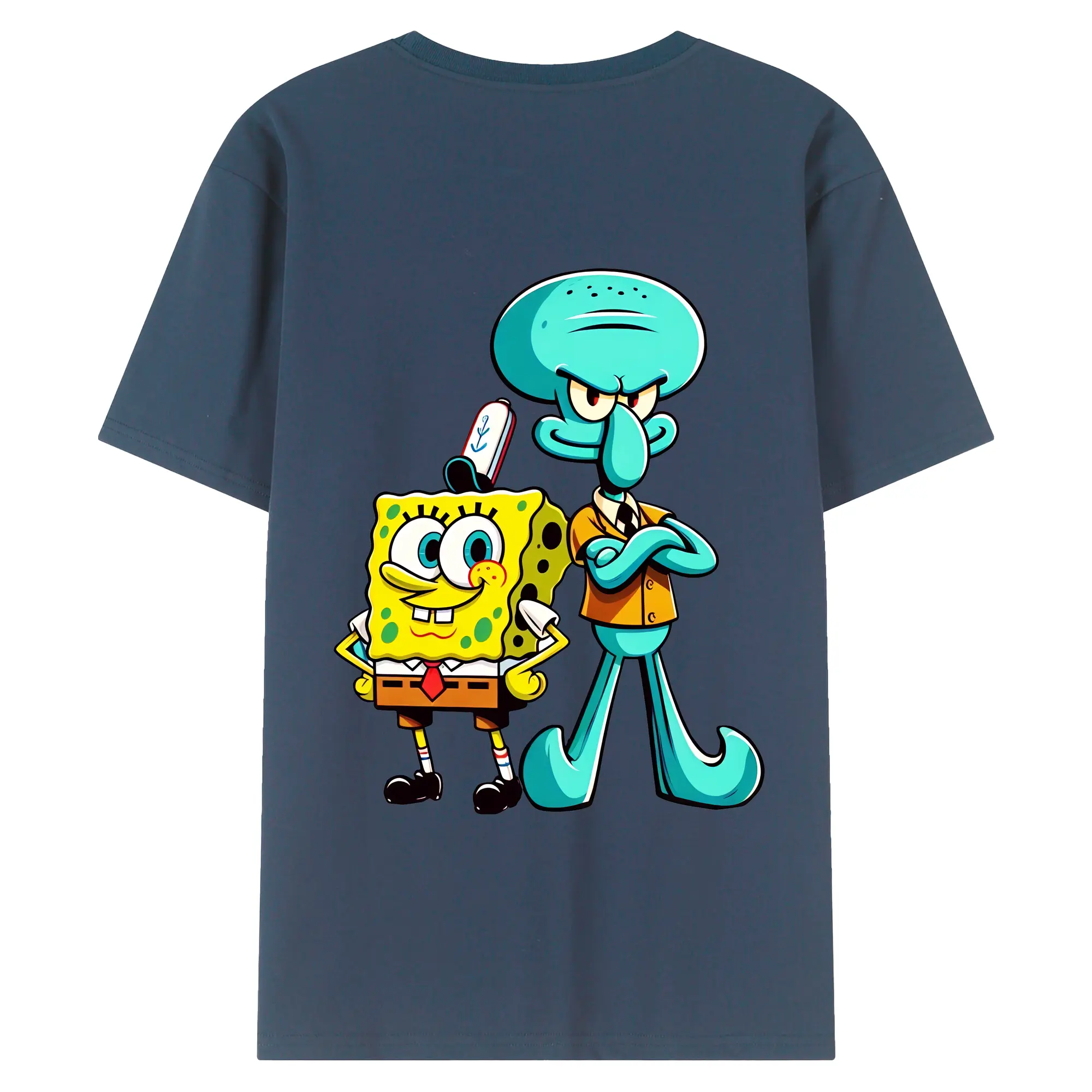 スポンジボブ グッズ イカルド - 綿100% ヴィンテージ風 半袖Tシャツ ・ 背面プリント ・ 柔らか肌触り ・ 通気性 快適 ・ スポーツ カジュアル 外出用